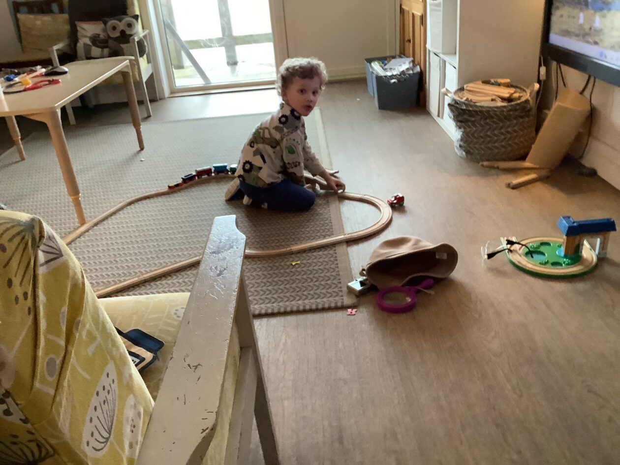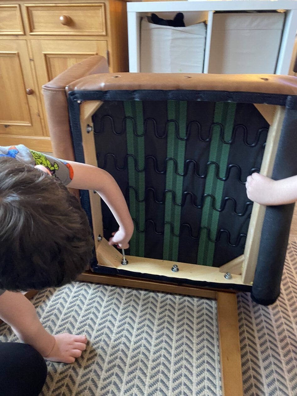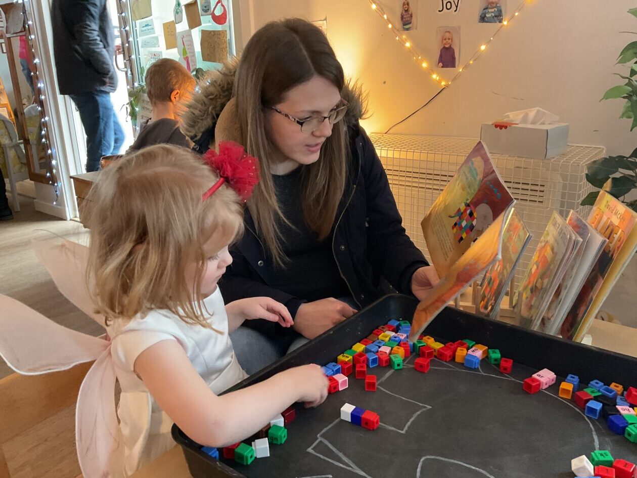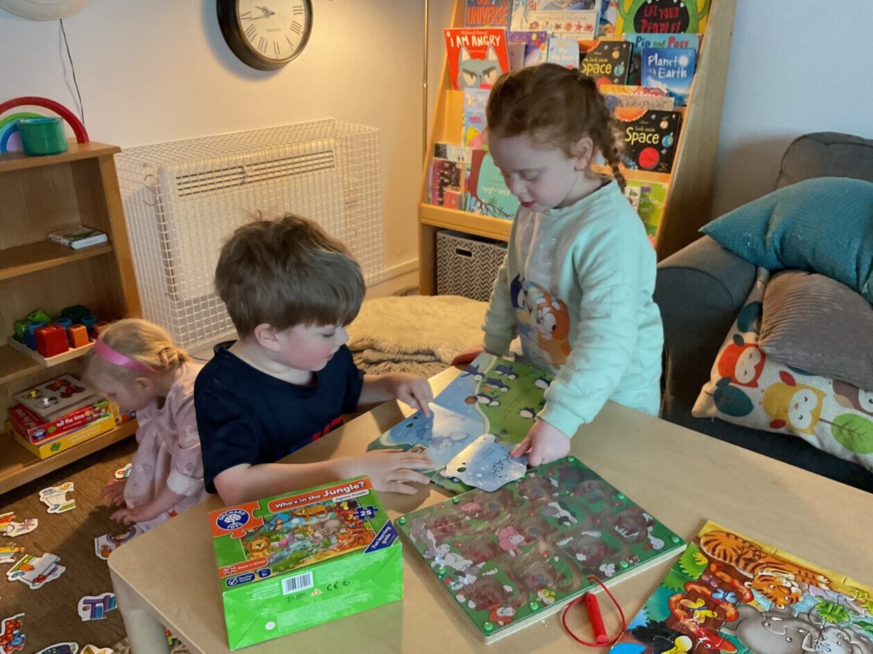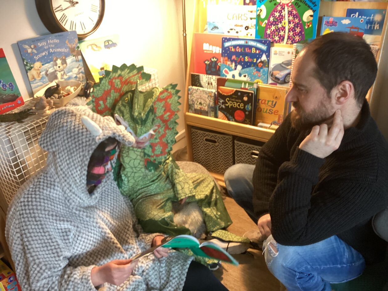 The outdoor room is always a popular choice and a great place to observe schemas (a repeated action used to explore and test theories in play). The bairns have used positioning, transporting, trajectory, enveloping, rotation and enclosure schemas in their play this week. They made paper aeroplanes and then built a platform to launch their planes from, watching how far they flew. They have also been engaged in imaginative play using the large hollow blocks and cable drums as fishing boats. “He is da een dat goes in da water. He is da fishing een and I’m da Captain.”