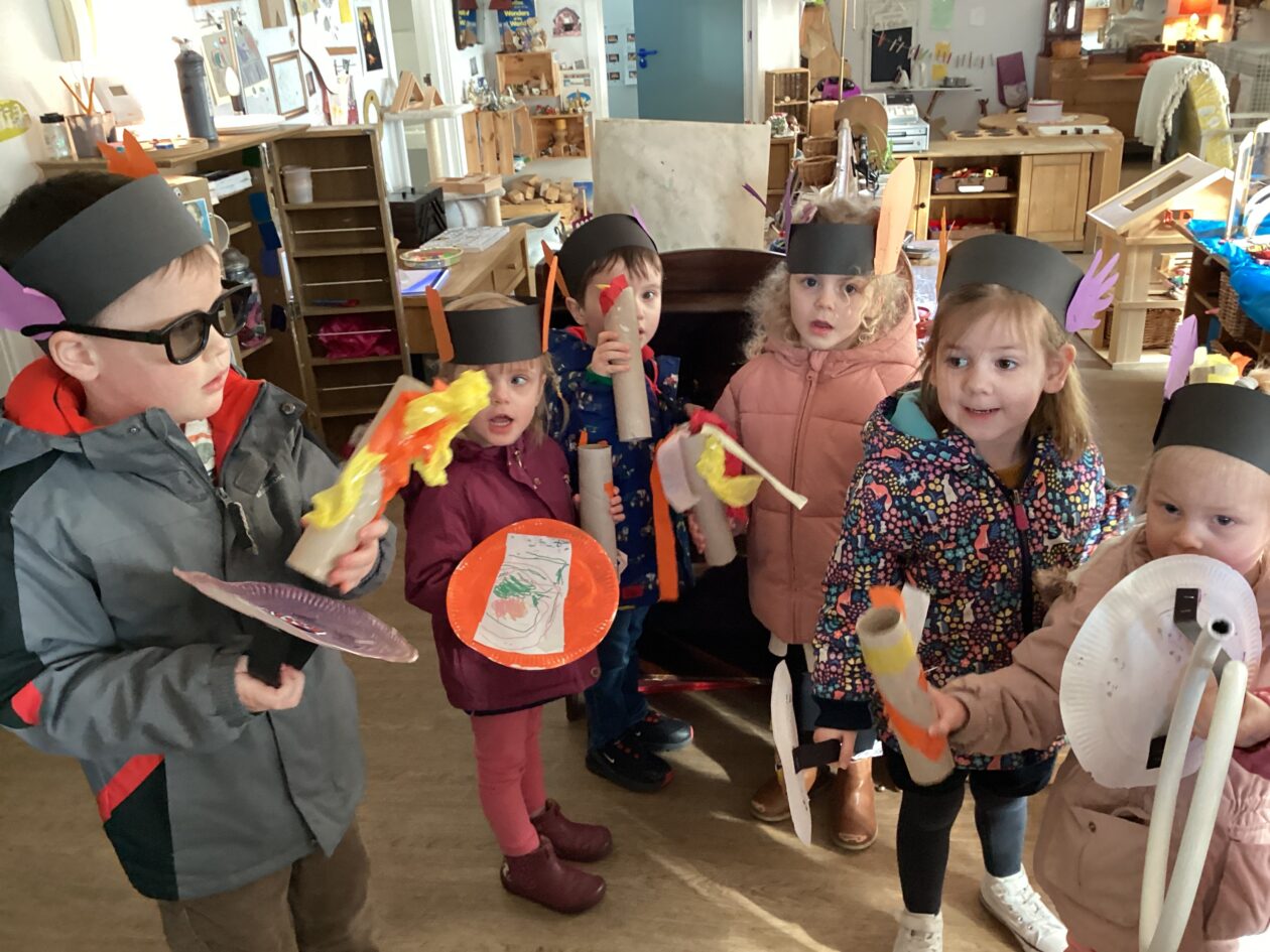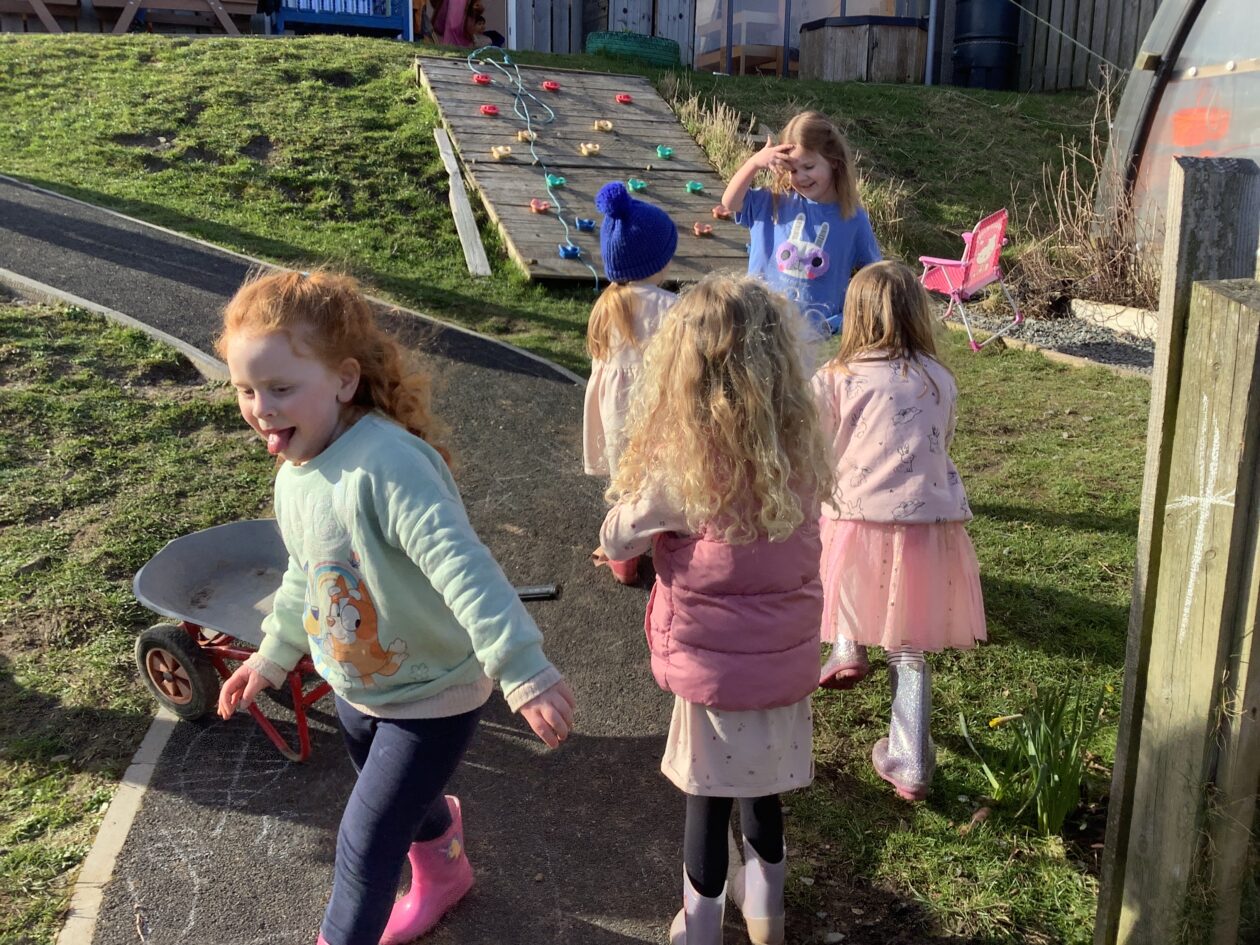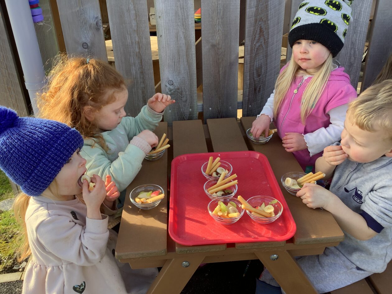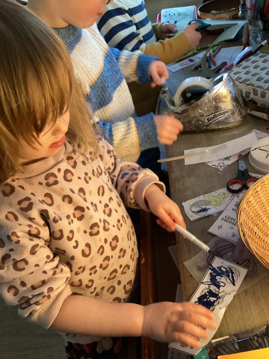 Here is a snippet of our outdoor play this week. The bairns created their own chasing game involving dragons, ghosts and zombies. We also had a cupboard clear out and sorted through hundreds of bottle tops, finding them a new home in the polycrub drawers.