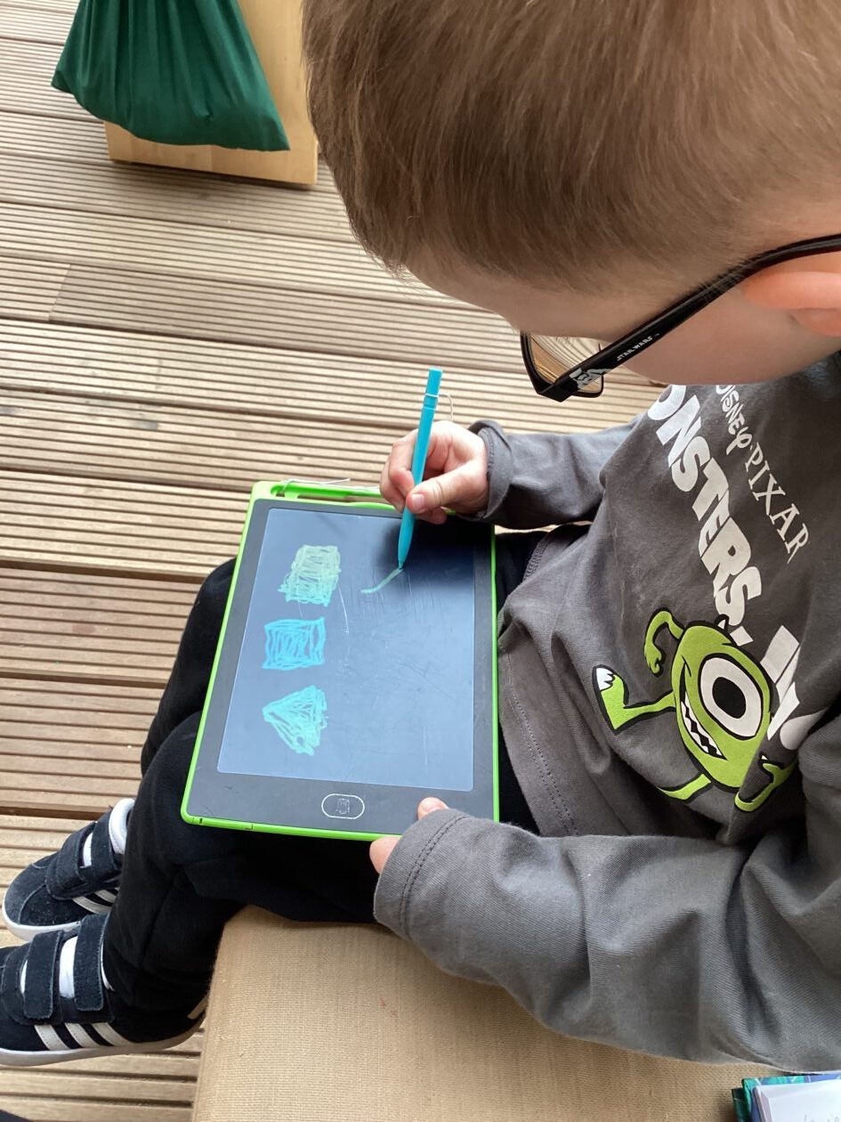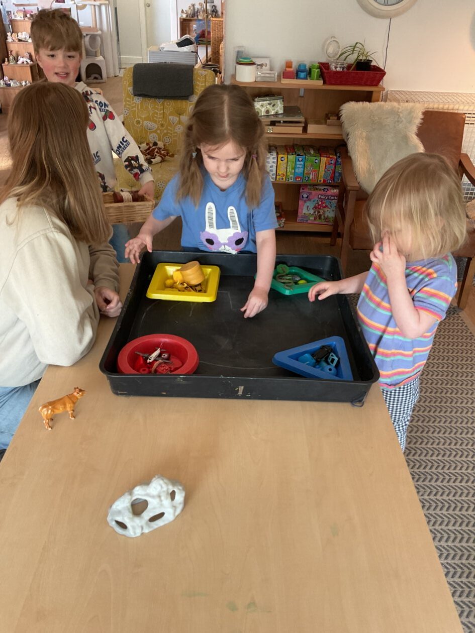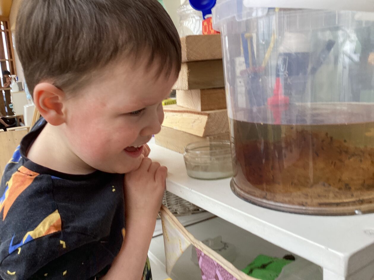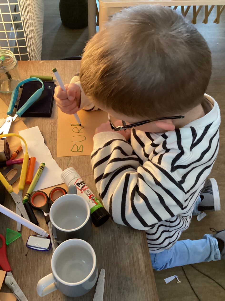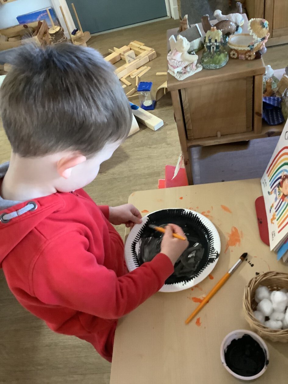 Here is a snippet of our outdoor play this week. The bairns created their own chasing game involving dragons, ghosts and zombies. We also had a cupboard clear out and sorted through hundreds of bottle tops, finding them a new home in the polycrub drawers.