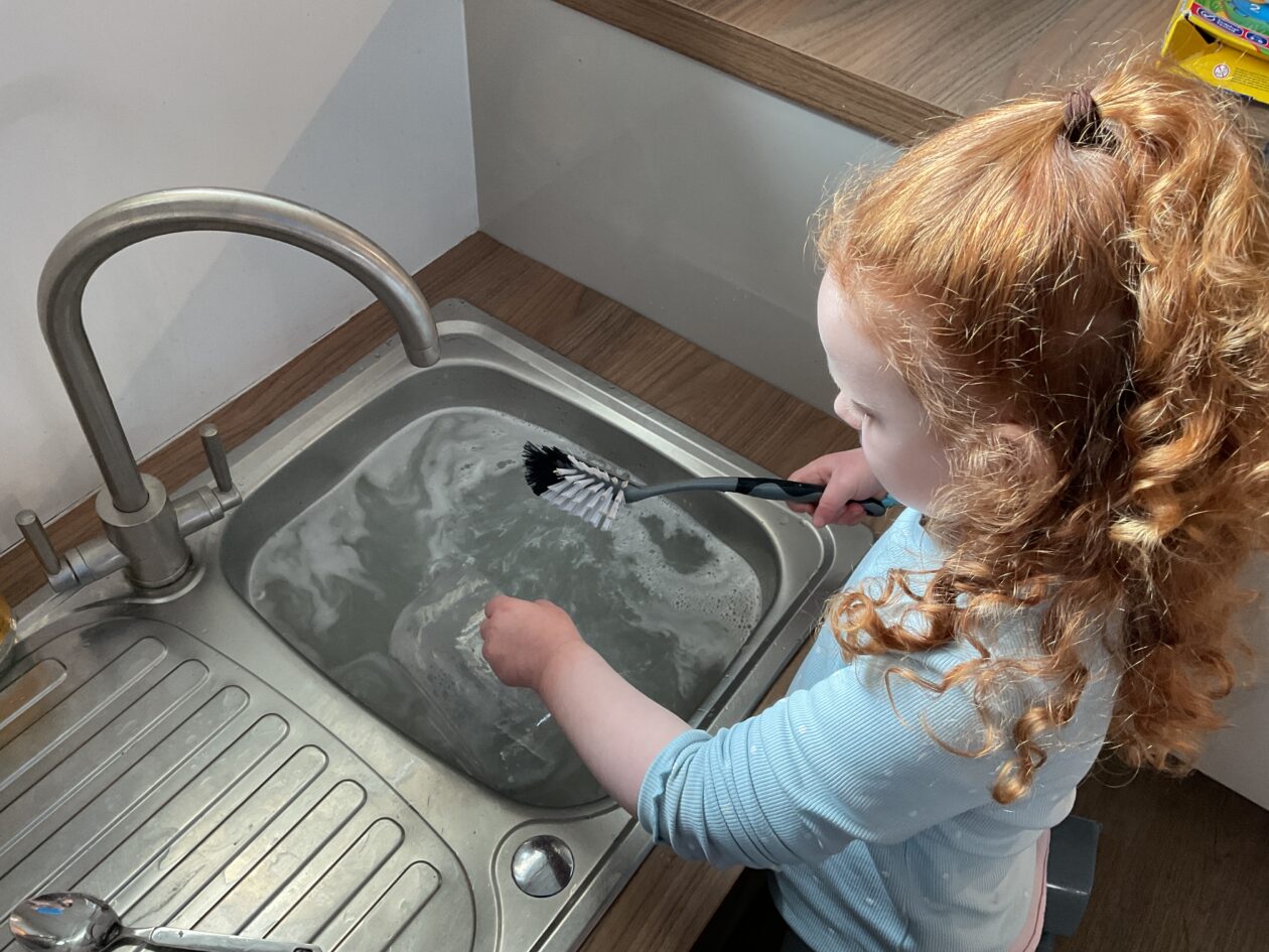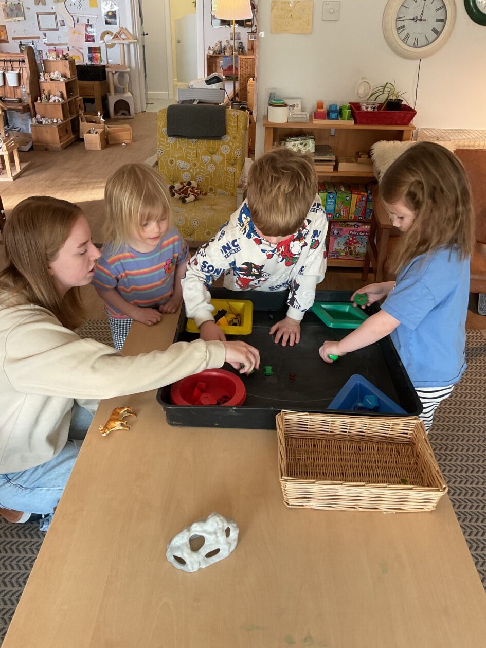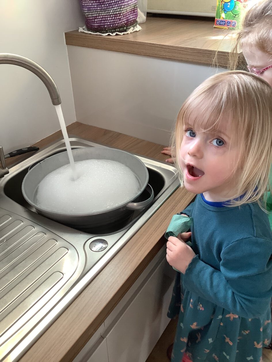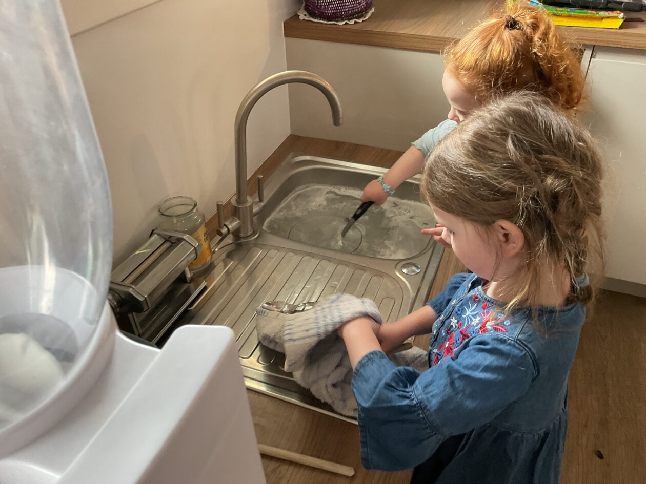 Here is a snippet of our outdoor play this week. The bairns created their own chasing game involving dragons, ghosts and zombies. We also had a cupboard clear out and sorted through hundreds of bottle tops, finding them a new home in the polycrub drawers.