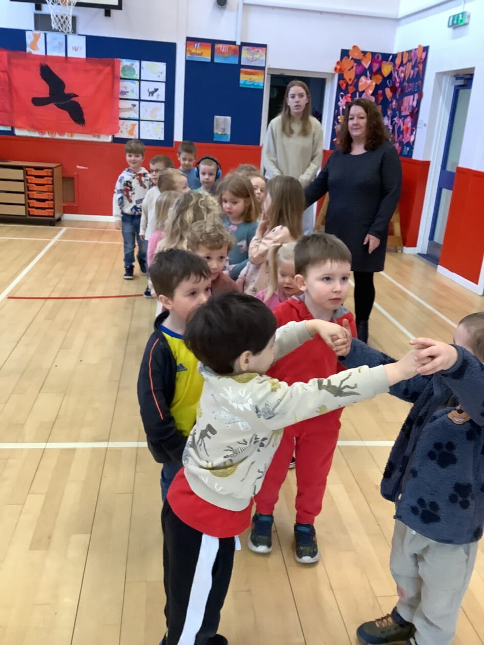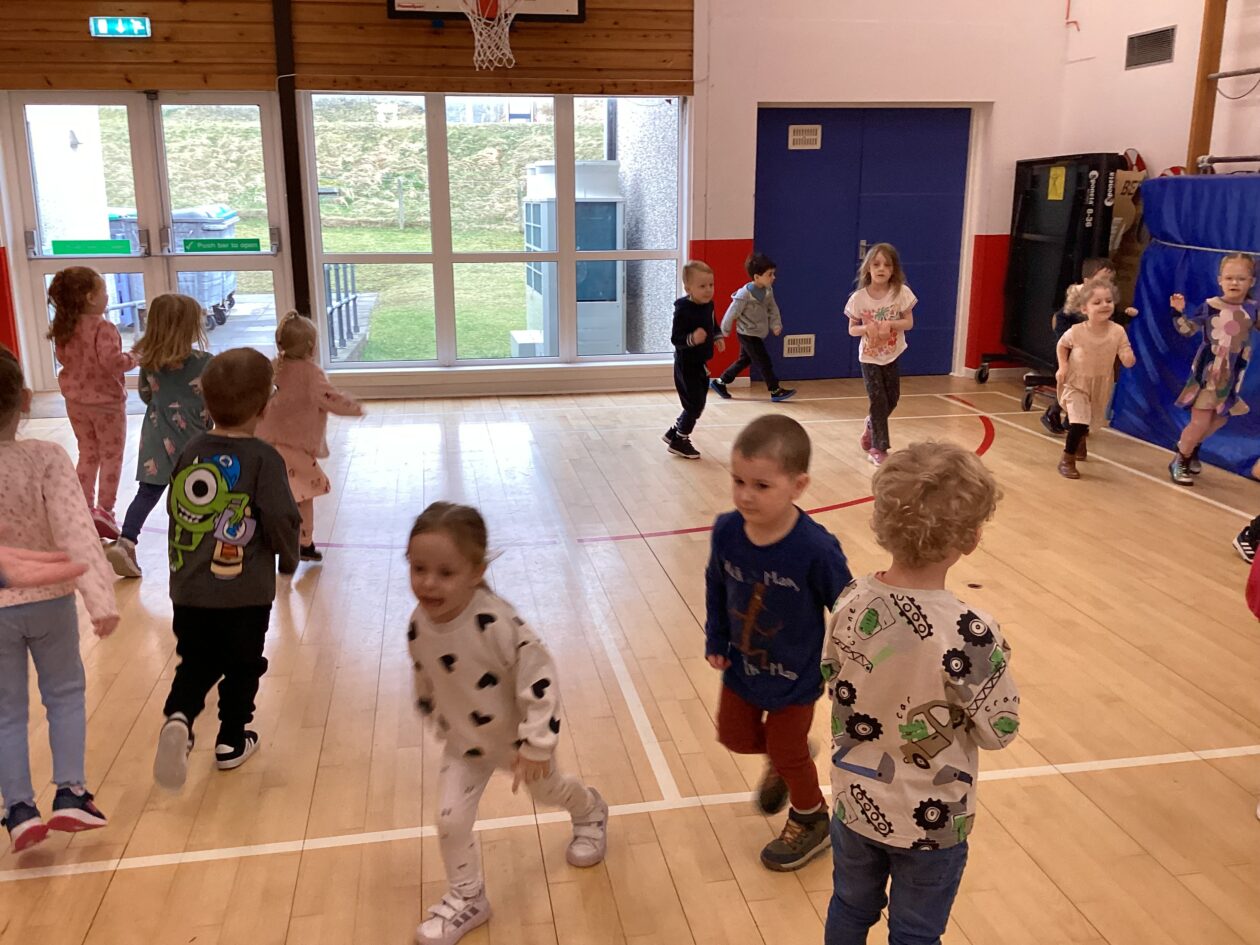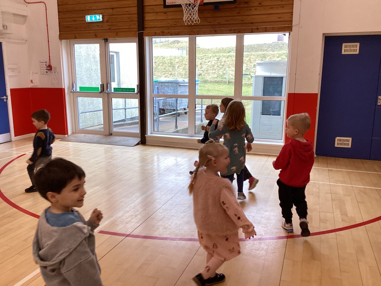 The bairns wondered if we could have some games in the hall. They took part in Duck Duck Goose, Tropical Islands, running, basketball and football. They listened to the instructions, also developing their co-operative play.