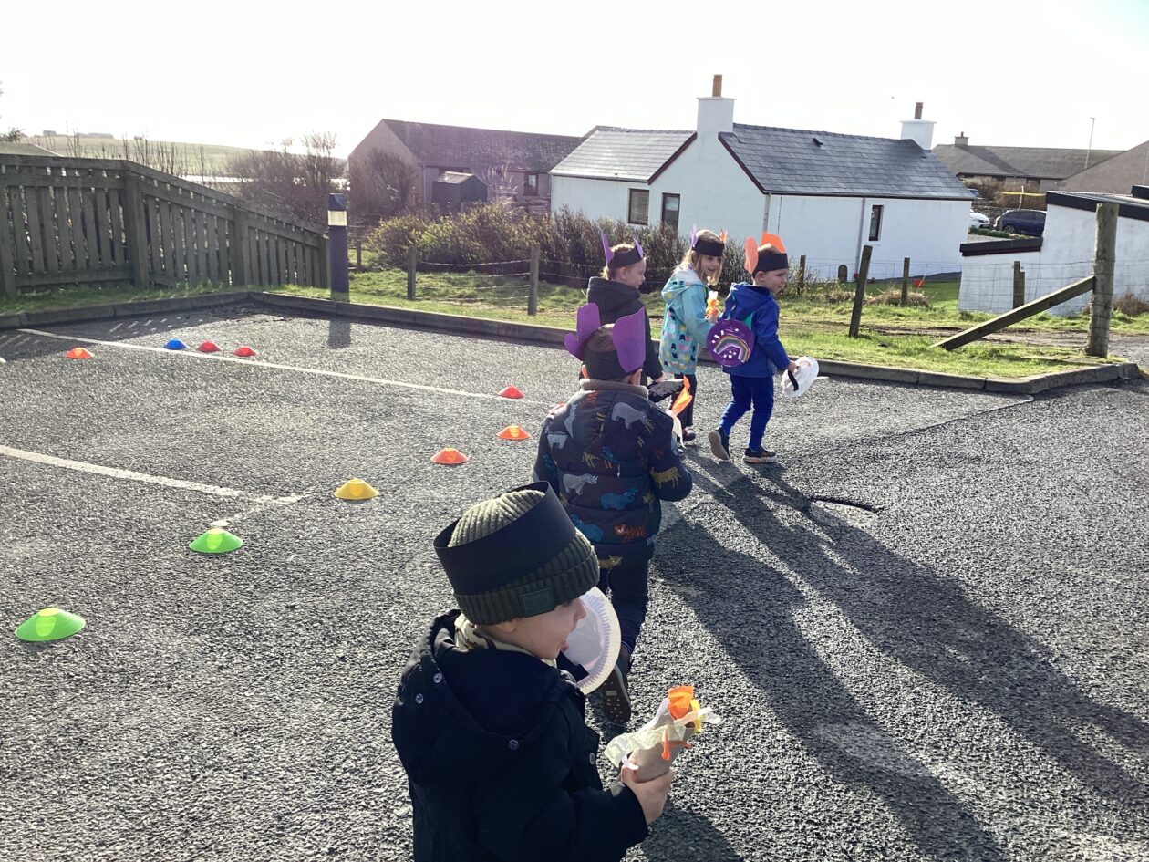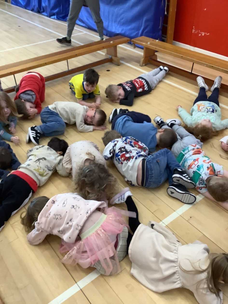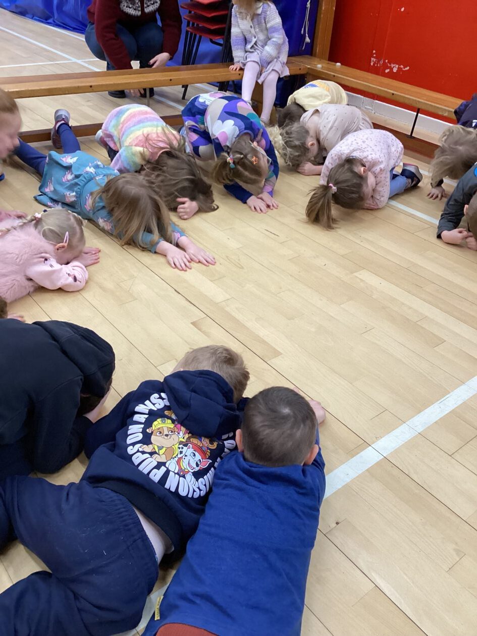 The bairns wondered if we could have some games in the hall. They took part in Duck Duck Goose, Tropical Islands, running, basketball and football. They listened to the instructions, also developing their co-operative play.
