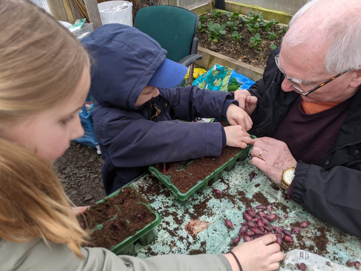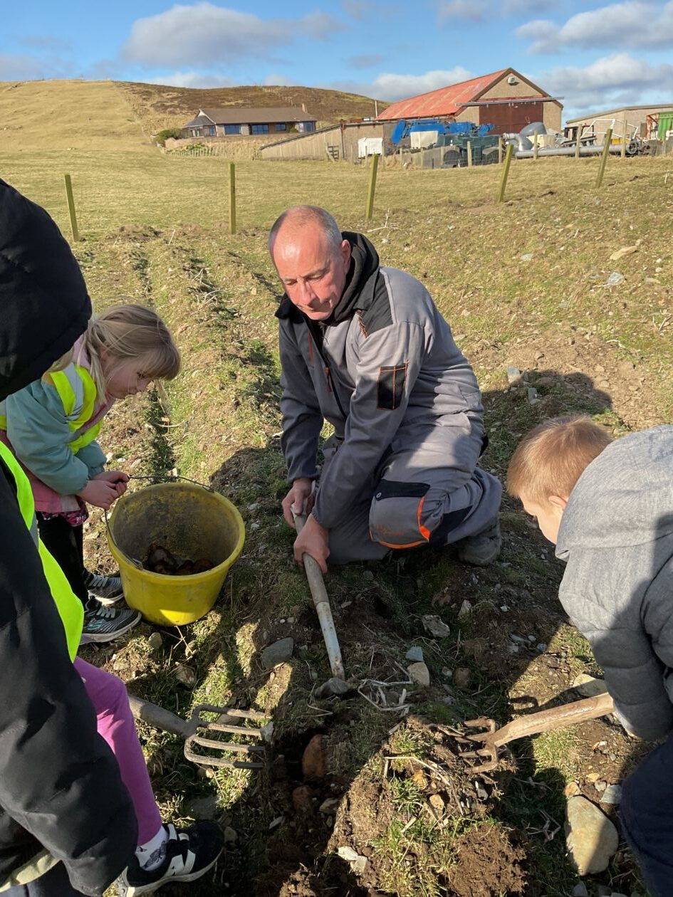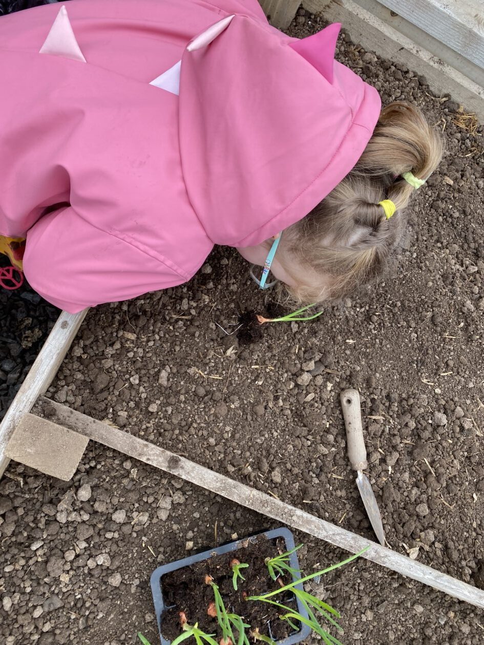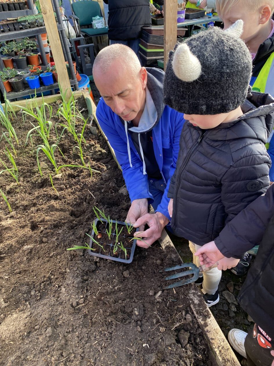 The bairns took live cuttings of geraniums, planted sunflowers and decorated their pots, planted peppers and red onions and turned the soil to make it loose and the right condition for planting carrots.