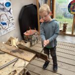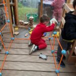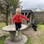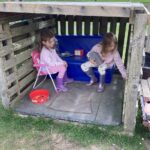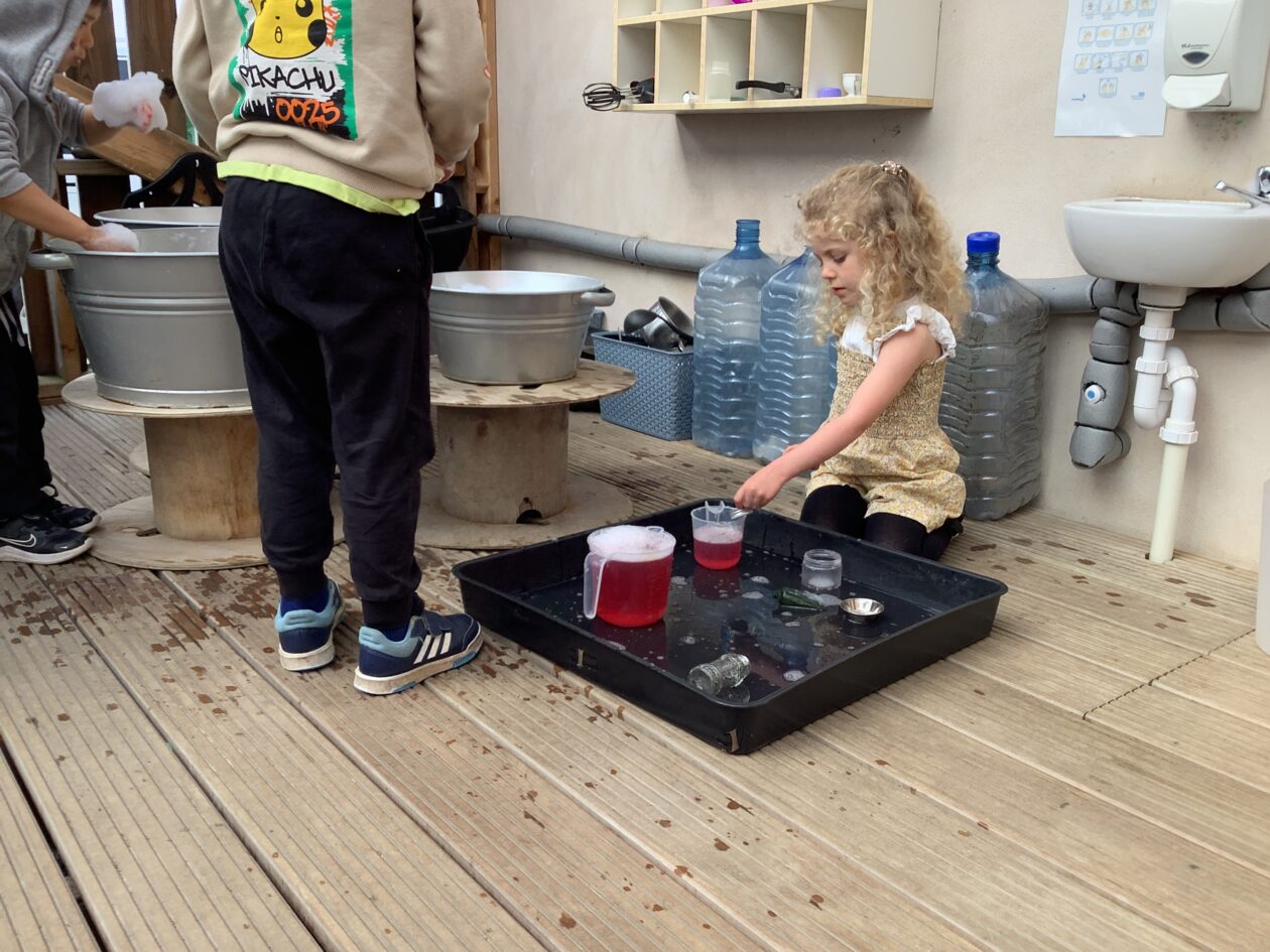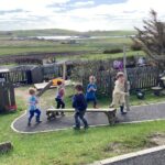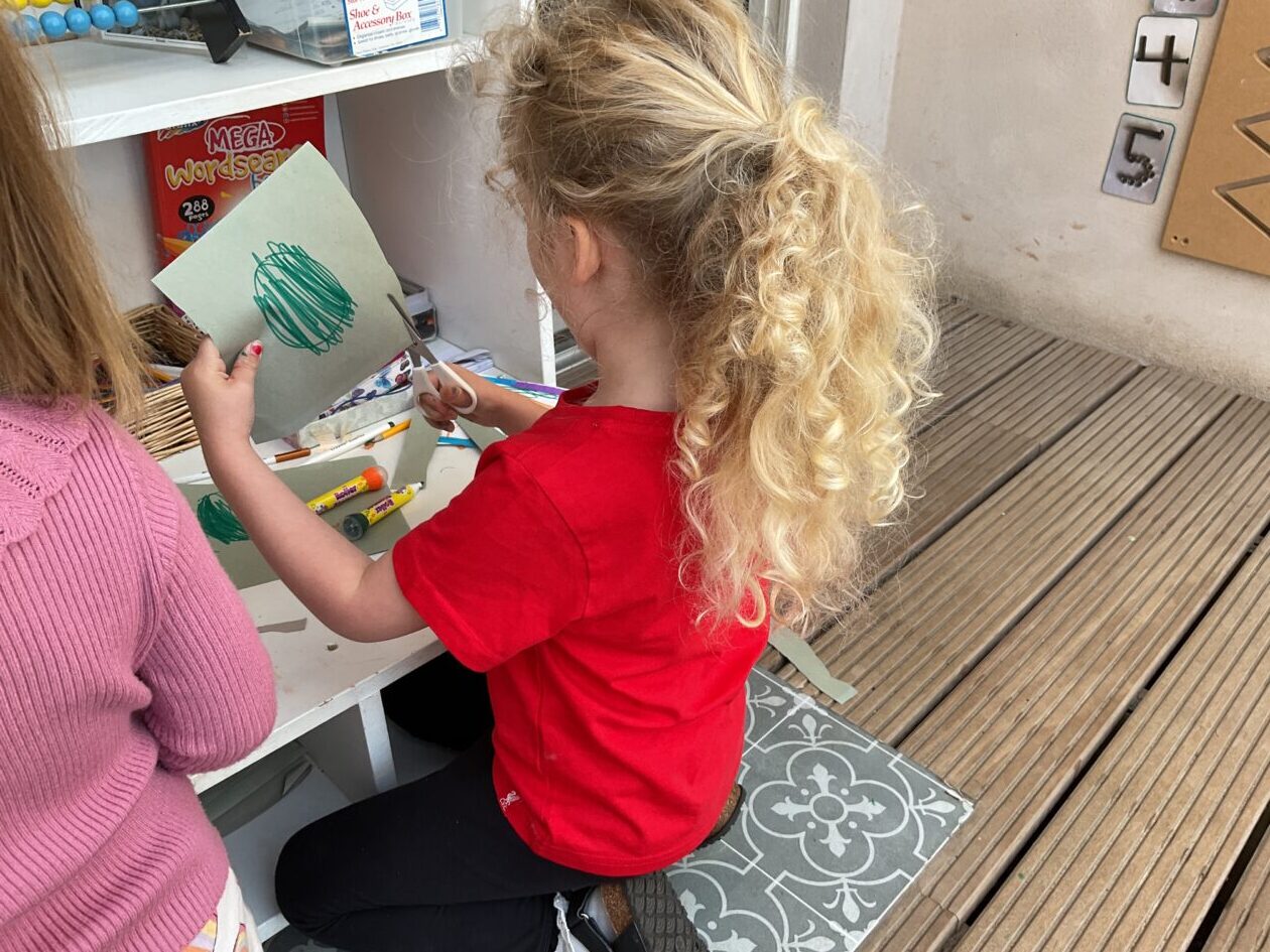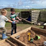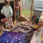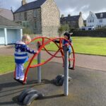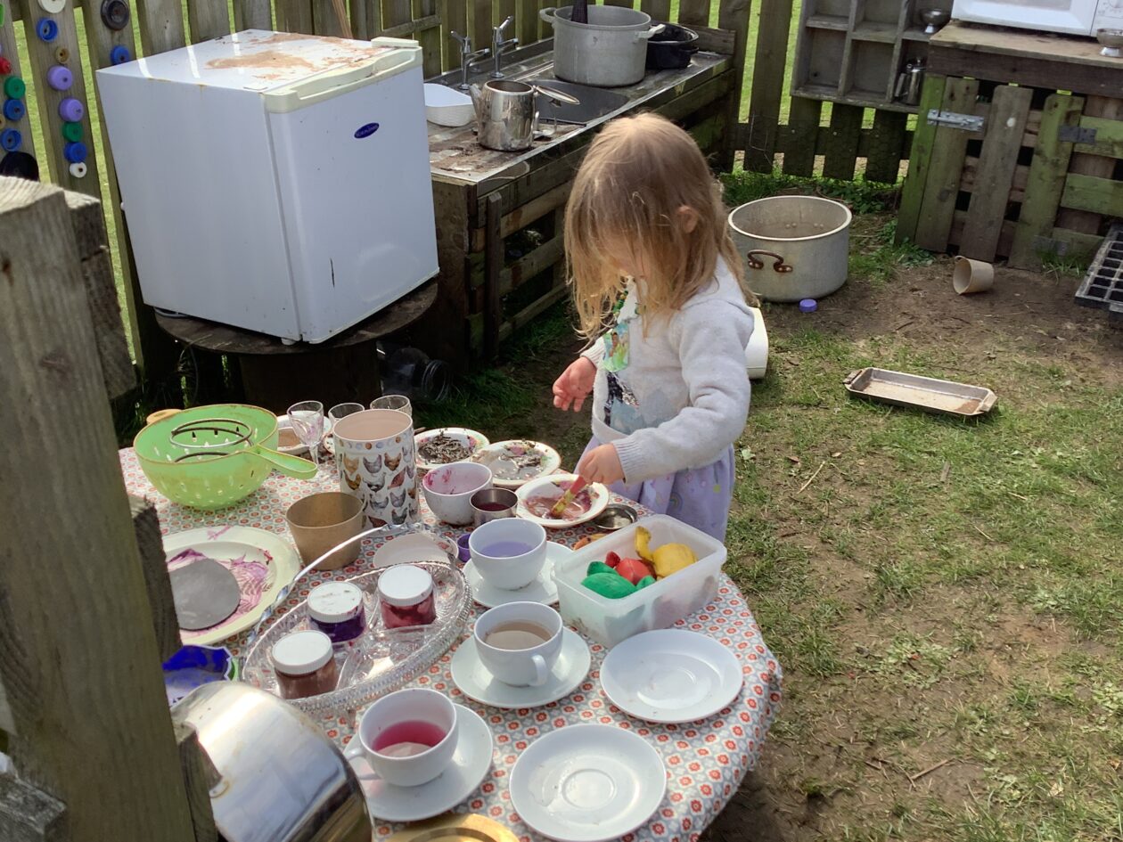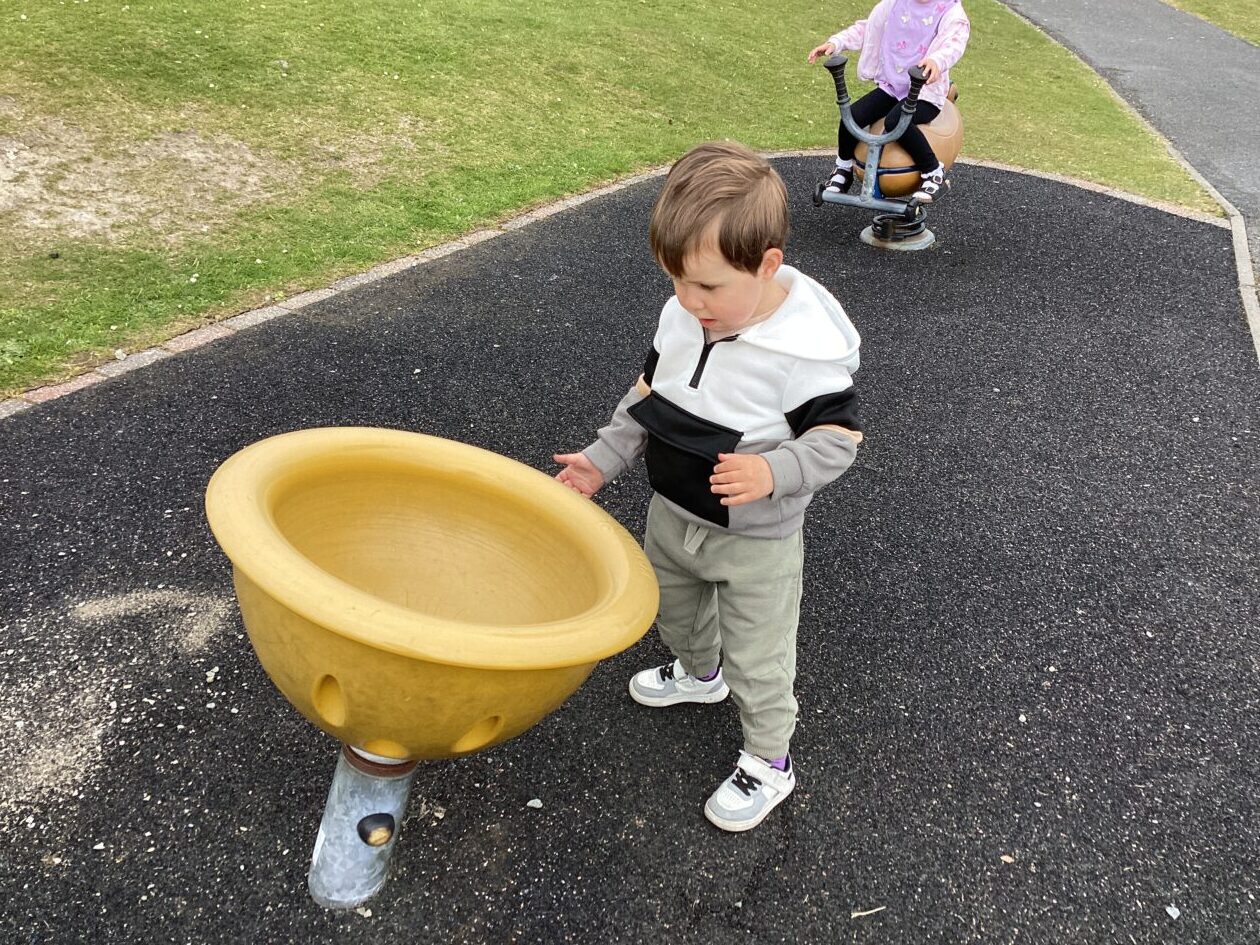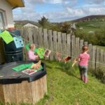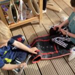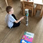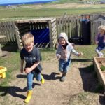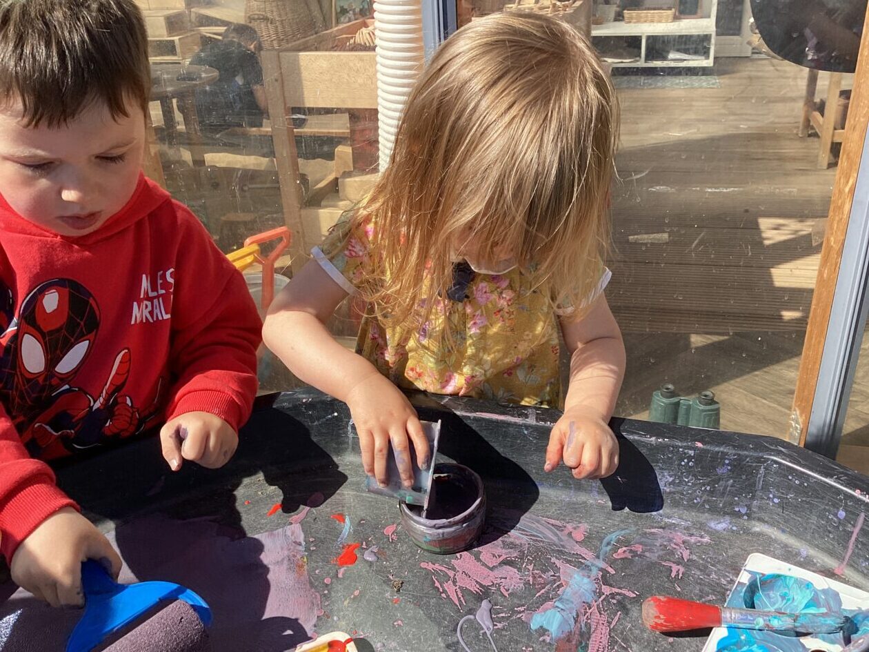 The bairns have been experimenting with different ways to slide down the steep hill in the garden. They have used cardboard, cushions, carpet tiles and slithery breeks! We have also seen lots of engagement with water play and managed to get the solar fountain working as the sun made a bit of a reappearance. We headed to the playpark one afternoon too and the bairns played chasing games, spun on the swings, tried to walk up the slide and got wobbly as jelly on a plate.