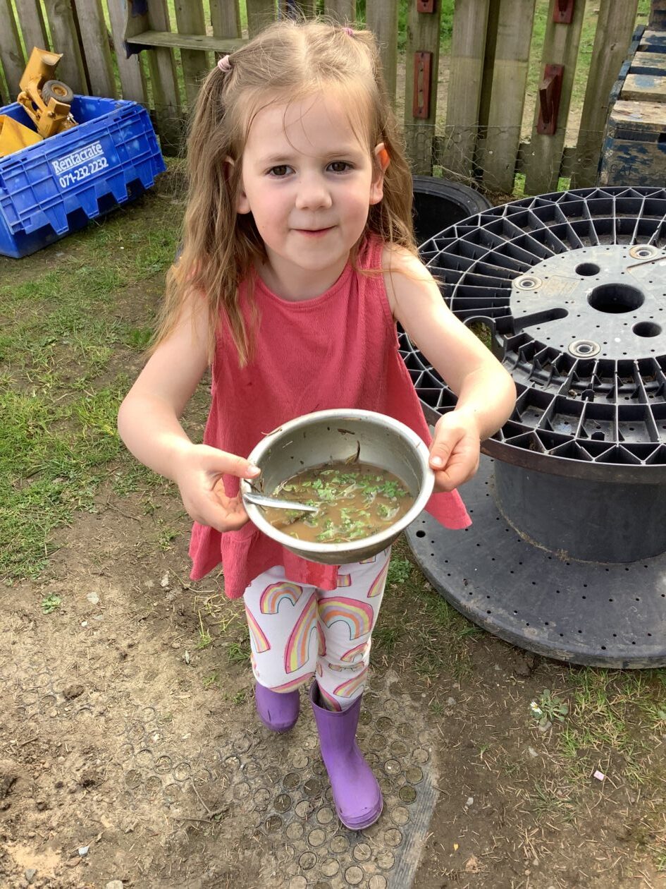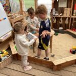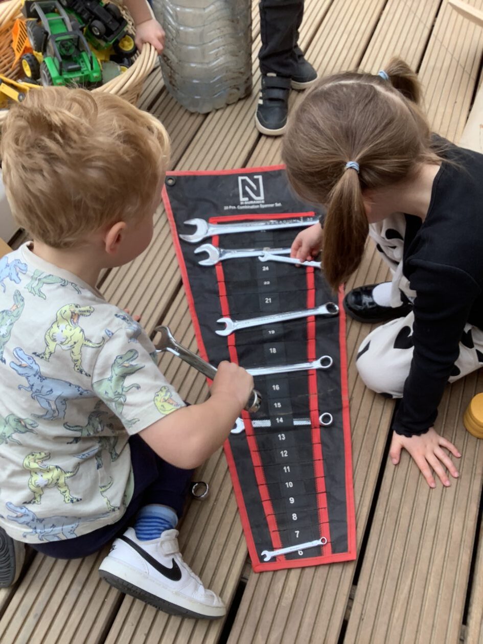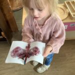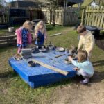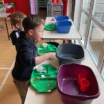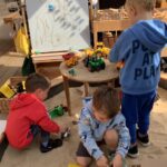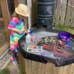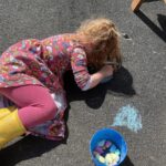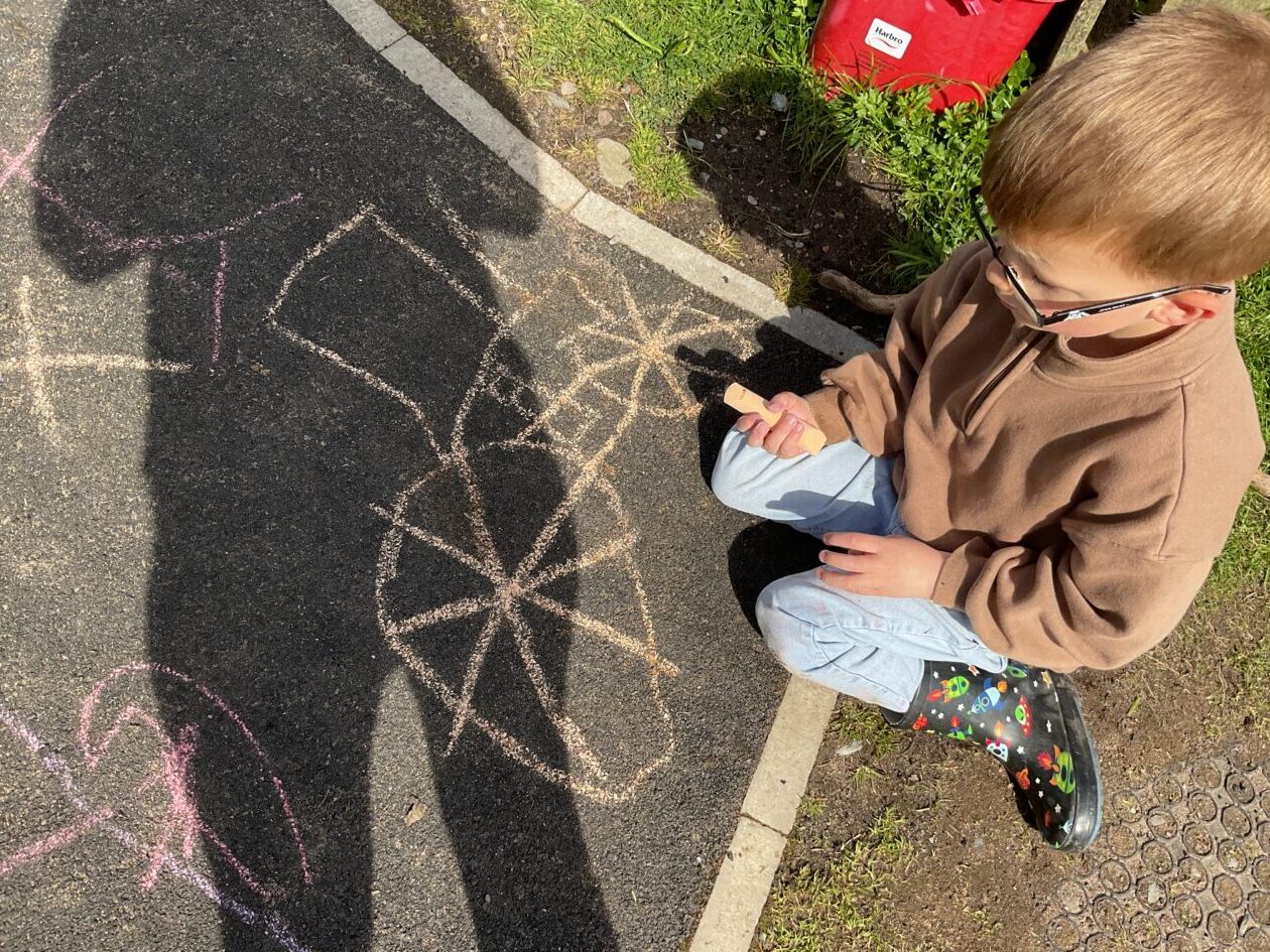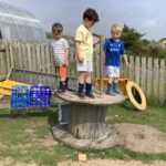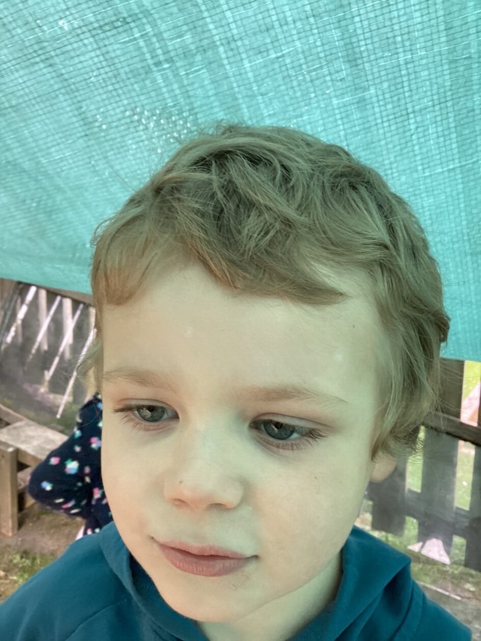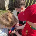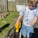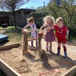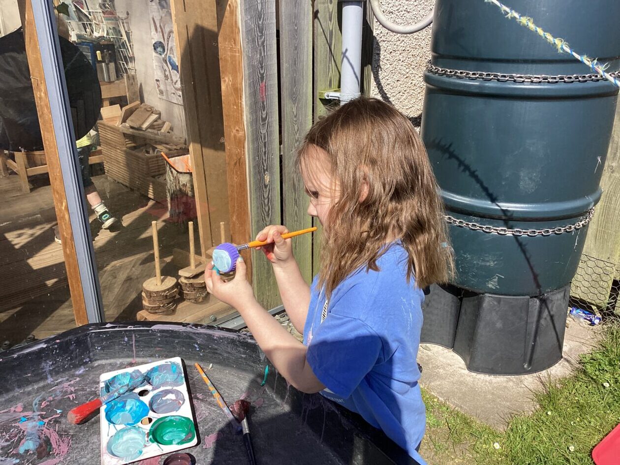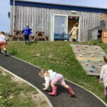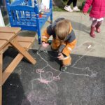 The bairns have been experimenting with different ways to slide down the steep hill in the garden. They have used cardboard, cushions, carpet tiles and slithery breeks! We have also seen lots of engagement with water play and managed to get the solar fountain working as the sun made a bit of a reappearance. We headed to the playpark one afternoon too and the bairns played chasing games, spun on the swings, tried to walk up the slide and got wobbly as jelly on a plate.