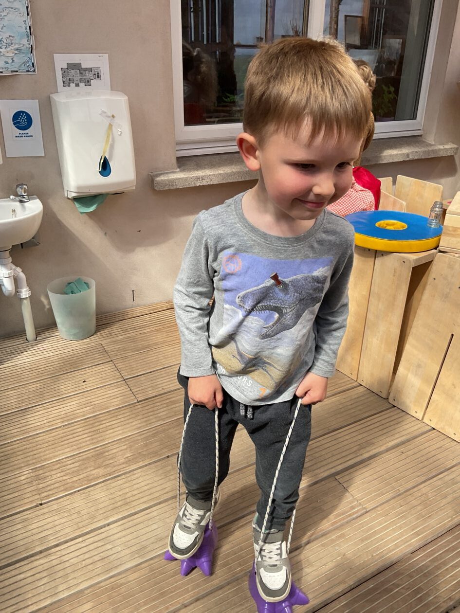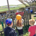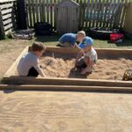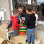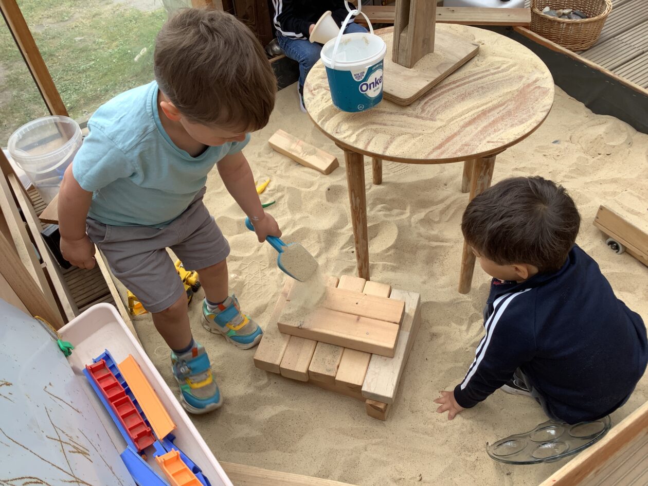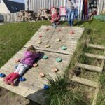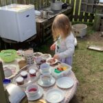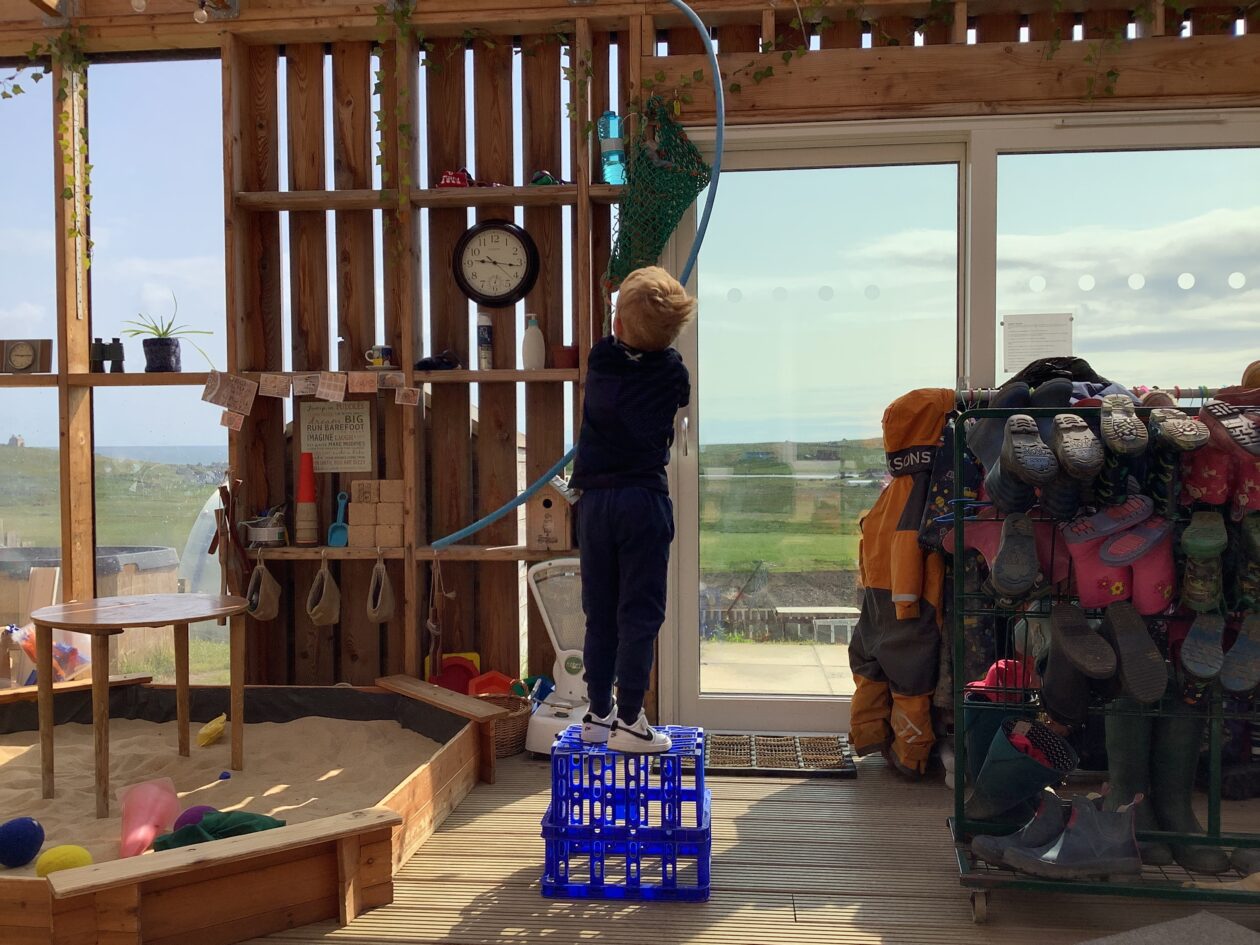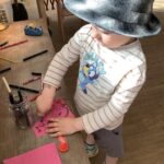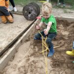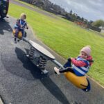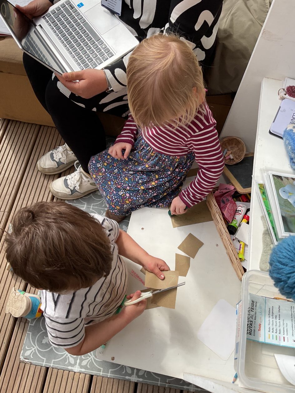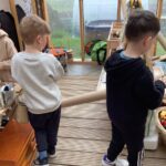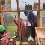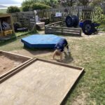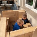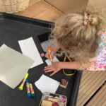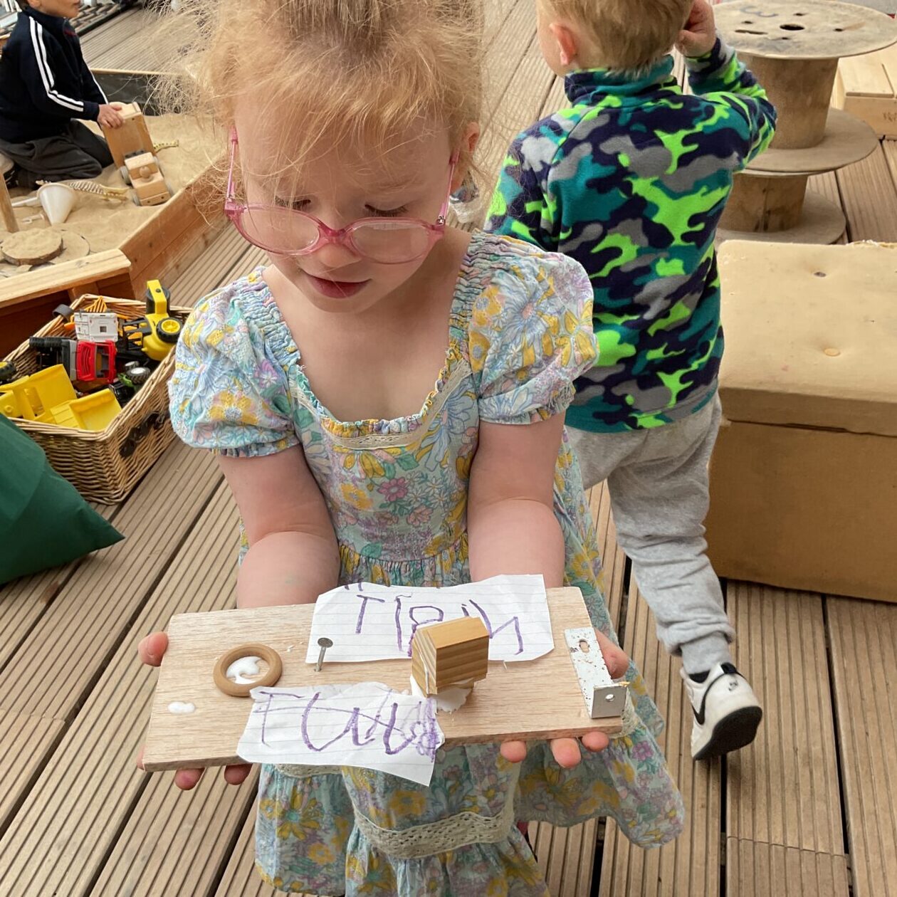 The bairns have been experimenting with different ways to slide down the steep hill in the garden. They have used cardboard, cushions, carpet tiles and slithery breeks! We have also seen lots of engagement with water play and managed to get the solar fountain working as the sun made a bit of a reappearance. We headed to the playpark one afternoon too and the bairns played chasing games, spun on the swings, tried to walk up the slide and got wobbly as jelly on a plate.