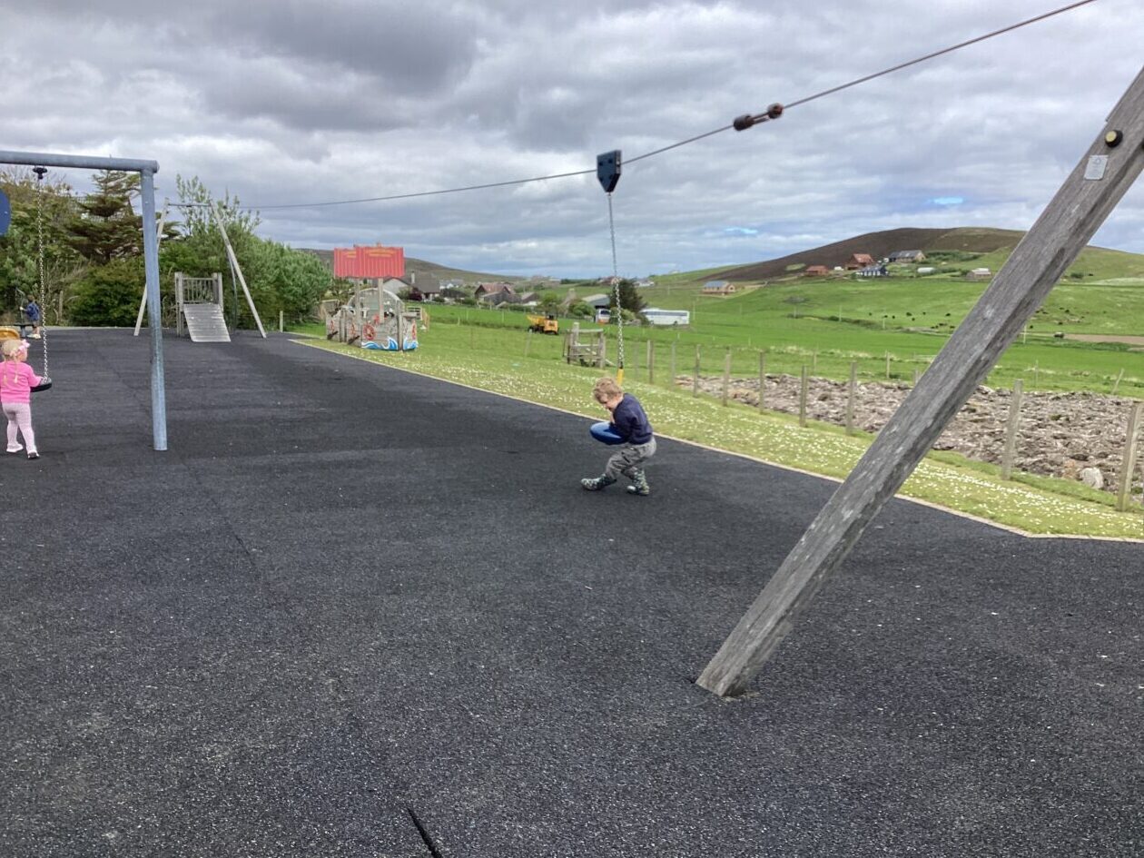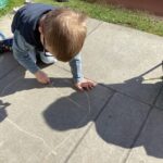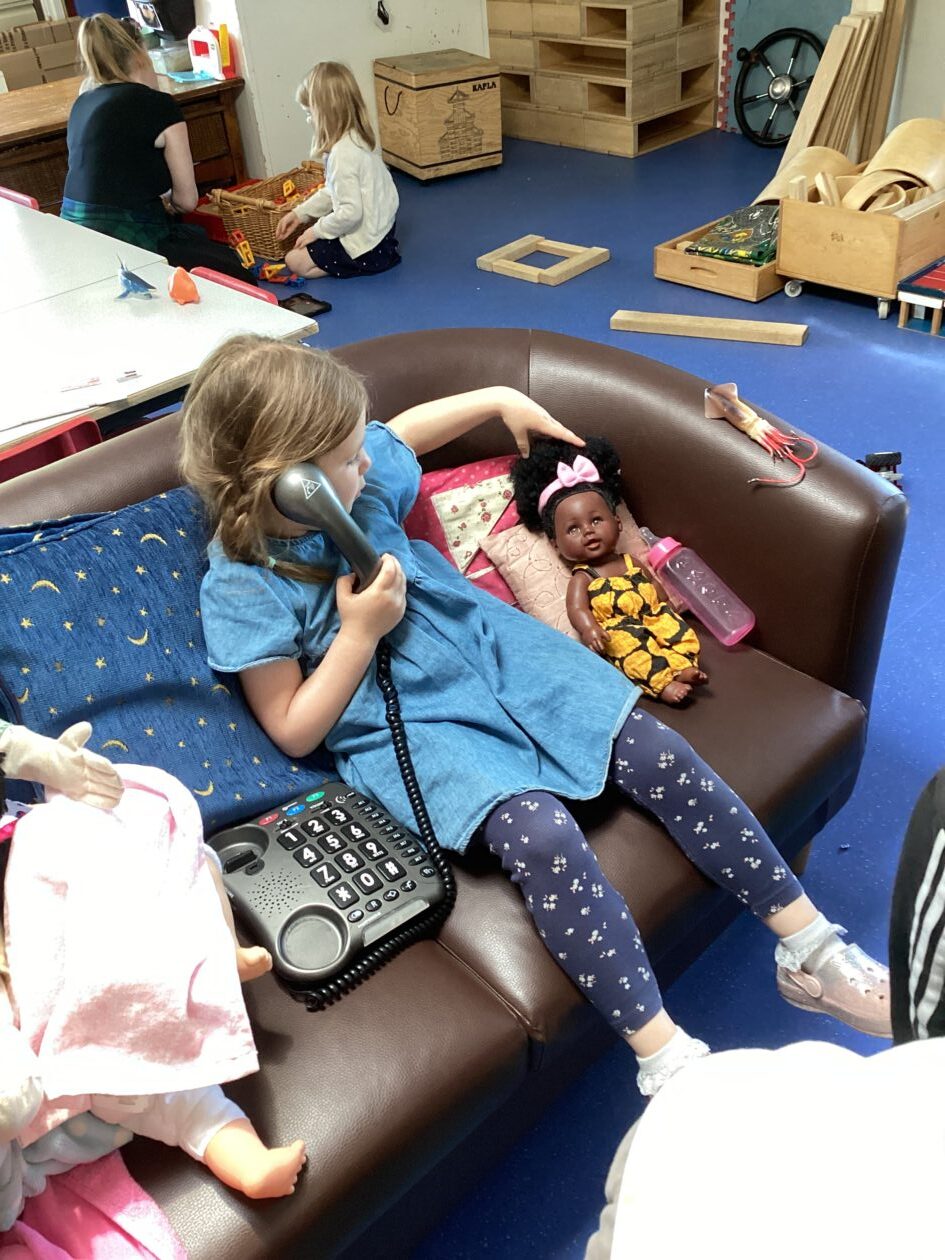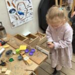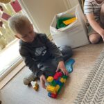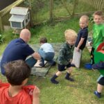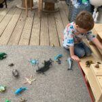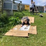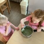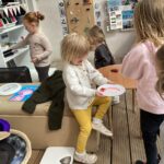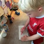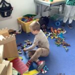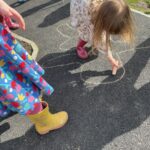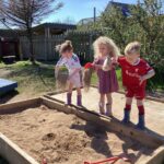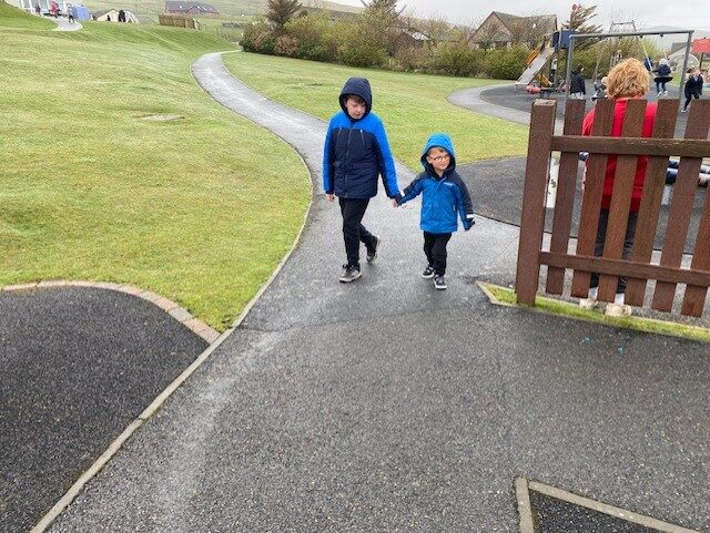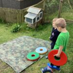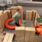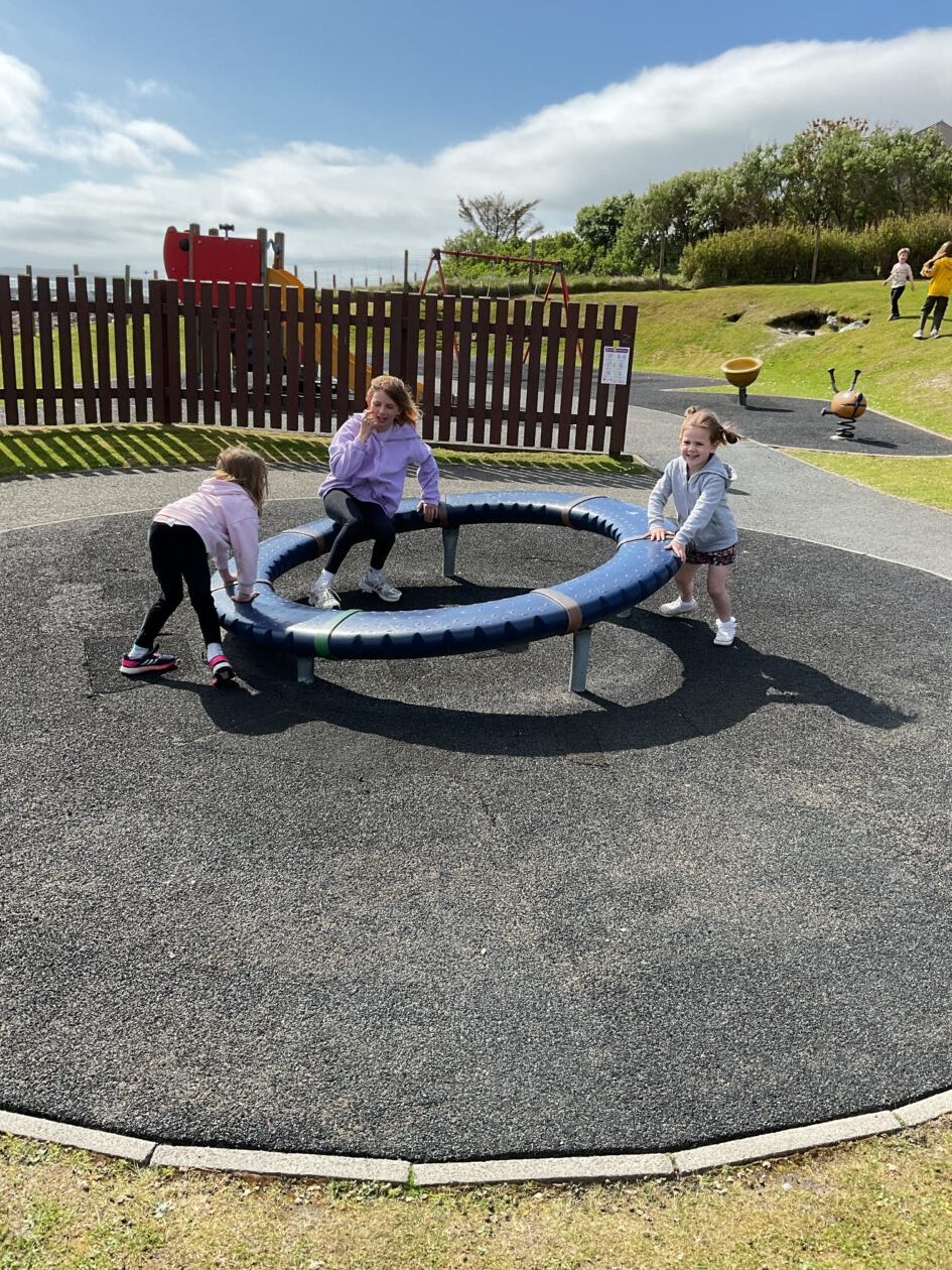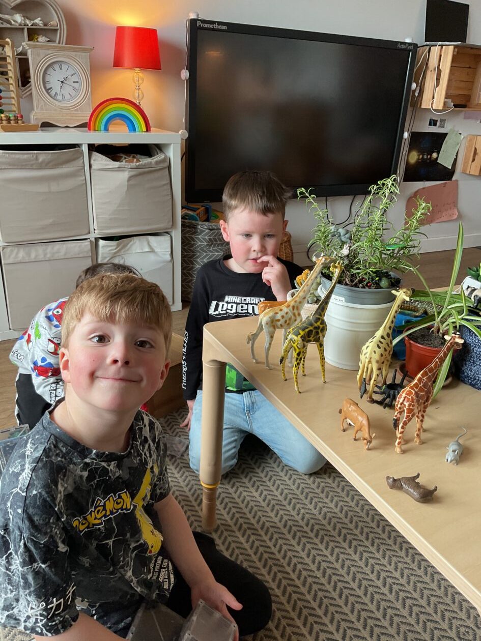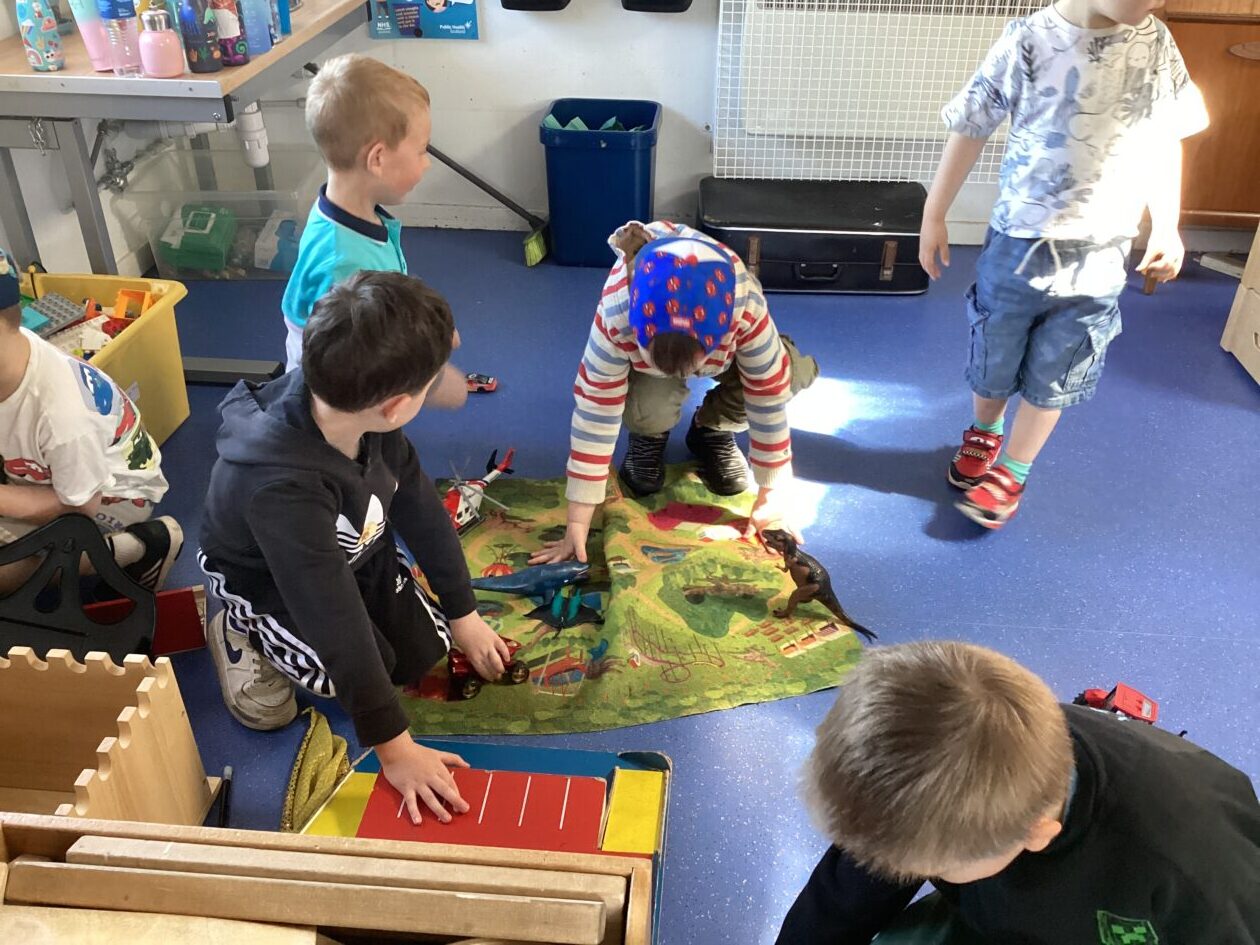 The bairns have been experimenting with different ways to slide down the steep hill in the garden. They have used cardboard, cushions, carpet tiles and slithery breeks! We have also seen lots of engagement with water play and managed to get the solar fountain working as the sun made a bit of a reappearance. We headed to the playpark one afternoon too and the bairns played chasing games, spun on the swings, tried to walk up the slide and got wobbly as jelly on a plate.