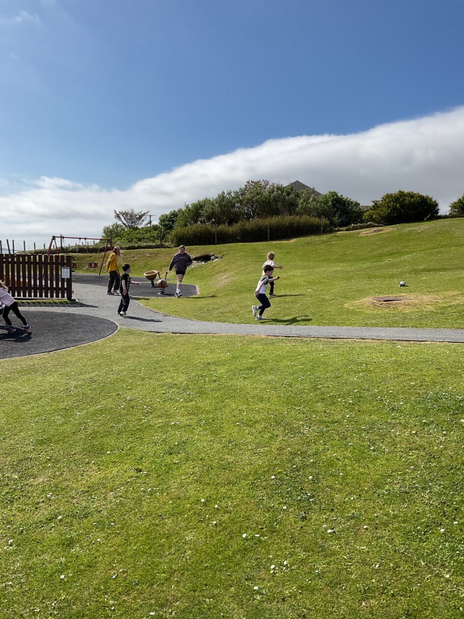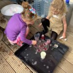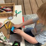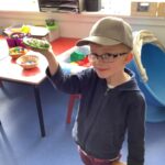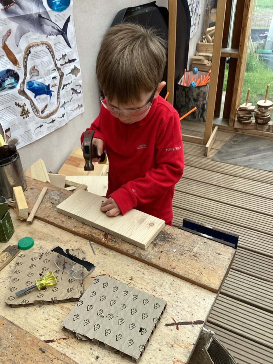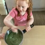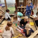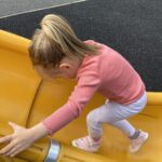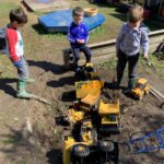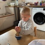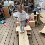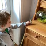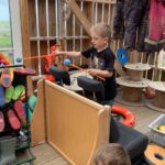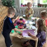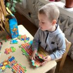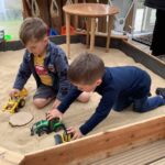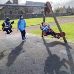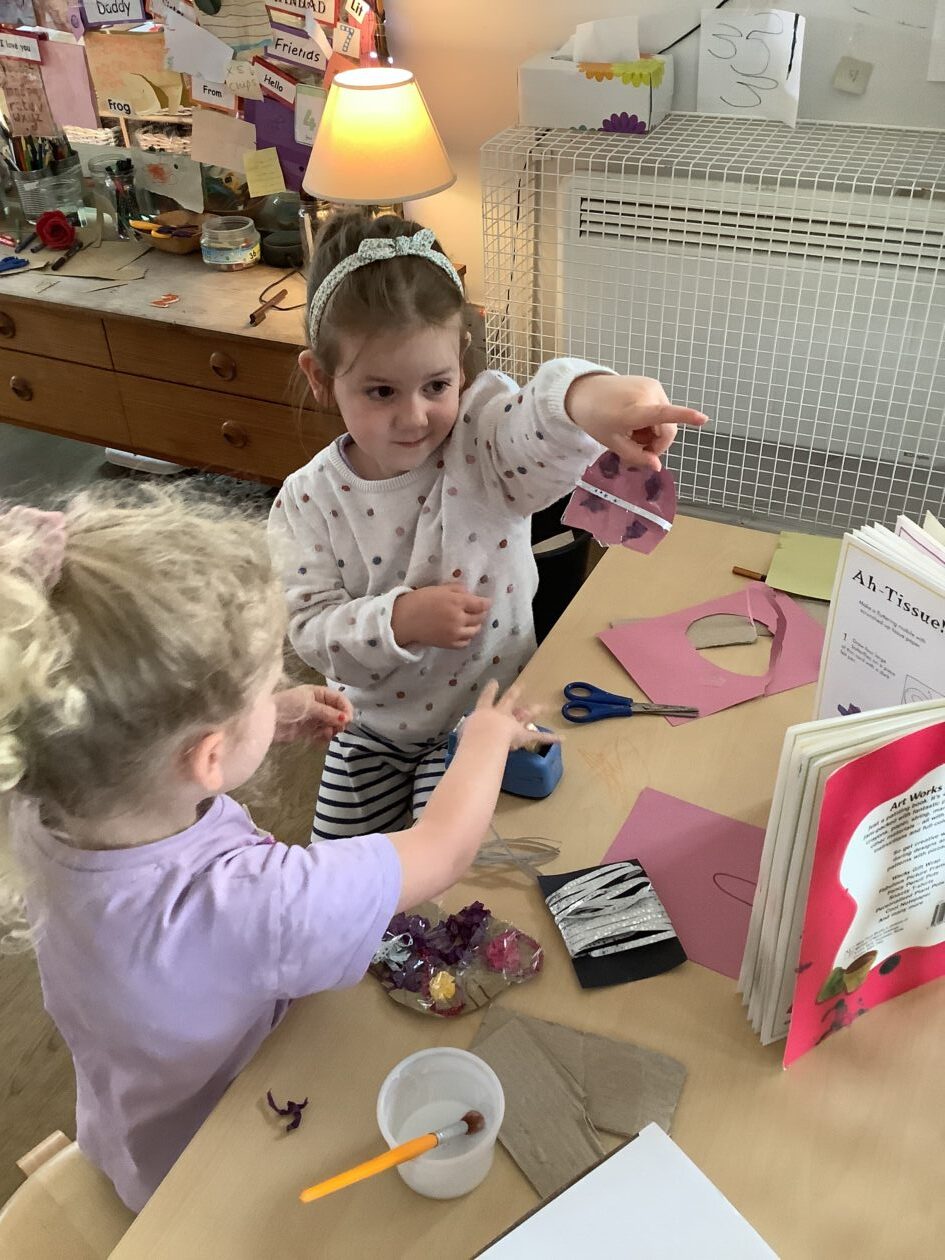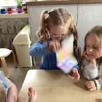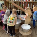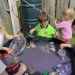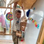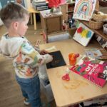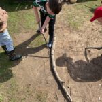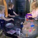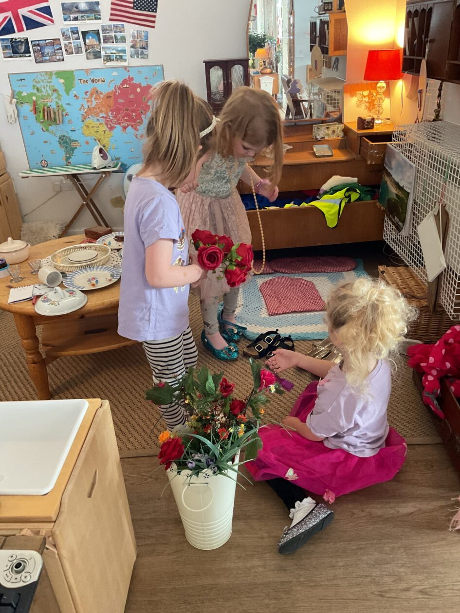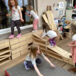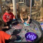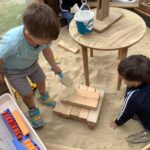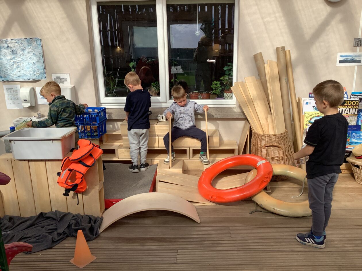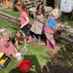 The bairns have been experimenting with different ways to slide down the steep hill in the garden. They have used cardboard, cushions, carpet tiles and slithery breeks! We have also seen lots of engagement with water play and managed to get the solar fountain working as the sun made a bit of a reappearance. We headed to the playpark one afternoon too and the bairns played chasing games, spun on the swings, tried to walk up the slide and got wobbly as jelly on a plate.