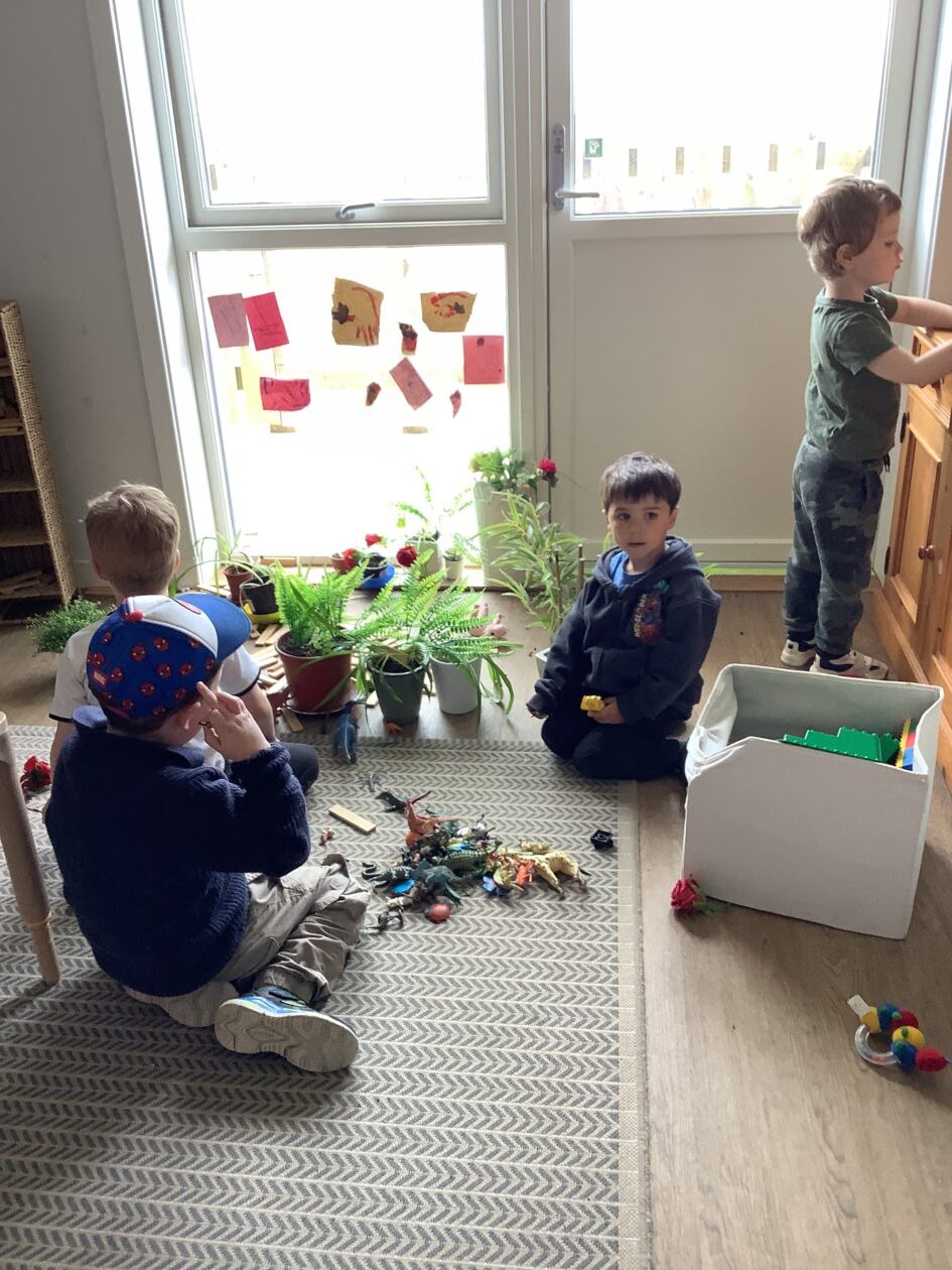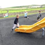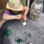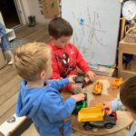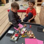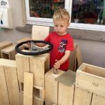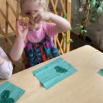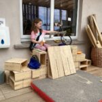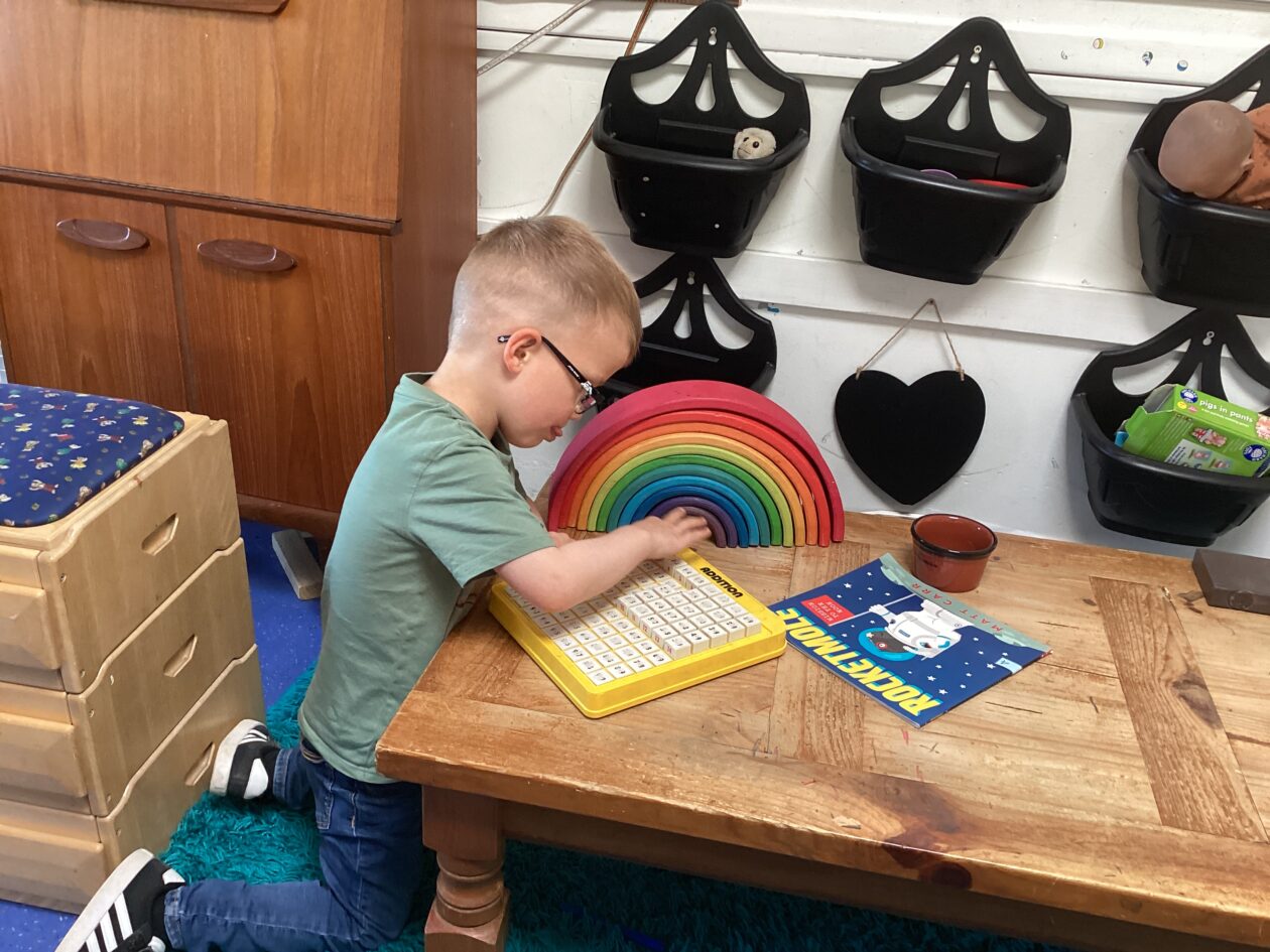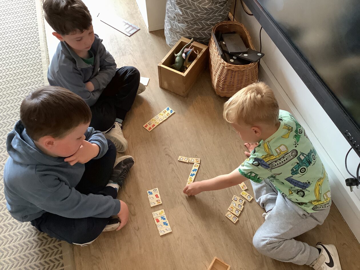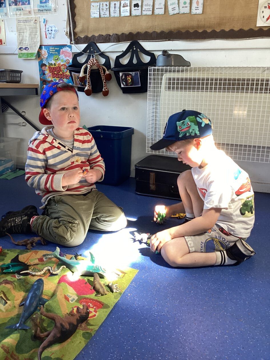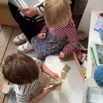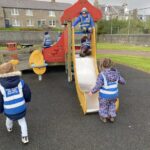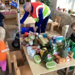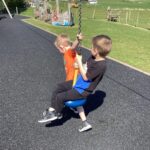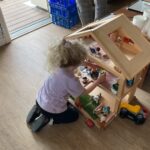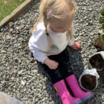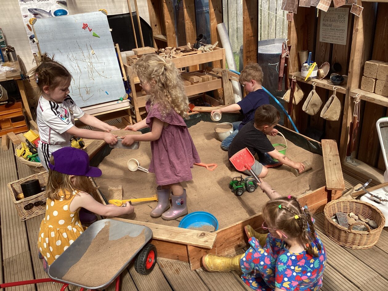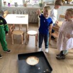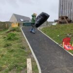 The bairns have been experimenting with different ways to slide down the steep hill in the garden. They have used cardboard, cushions, carpet tiles and slithery breeks! We have also seen lots of engagement with water play and managed to get the solar fountain working as the sun made a bit of a reappearance. We headed to the playpark one afternoon too and the bairns played chasing games, spun on the swings, tried to walk up the slide and got wobbly as jelly on a plate.