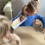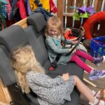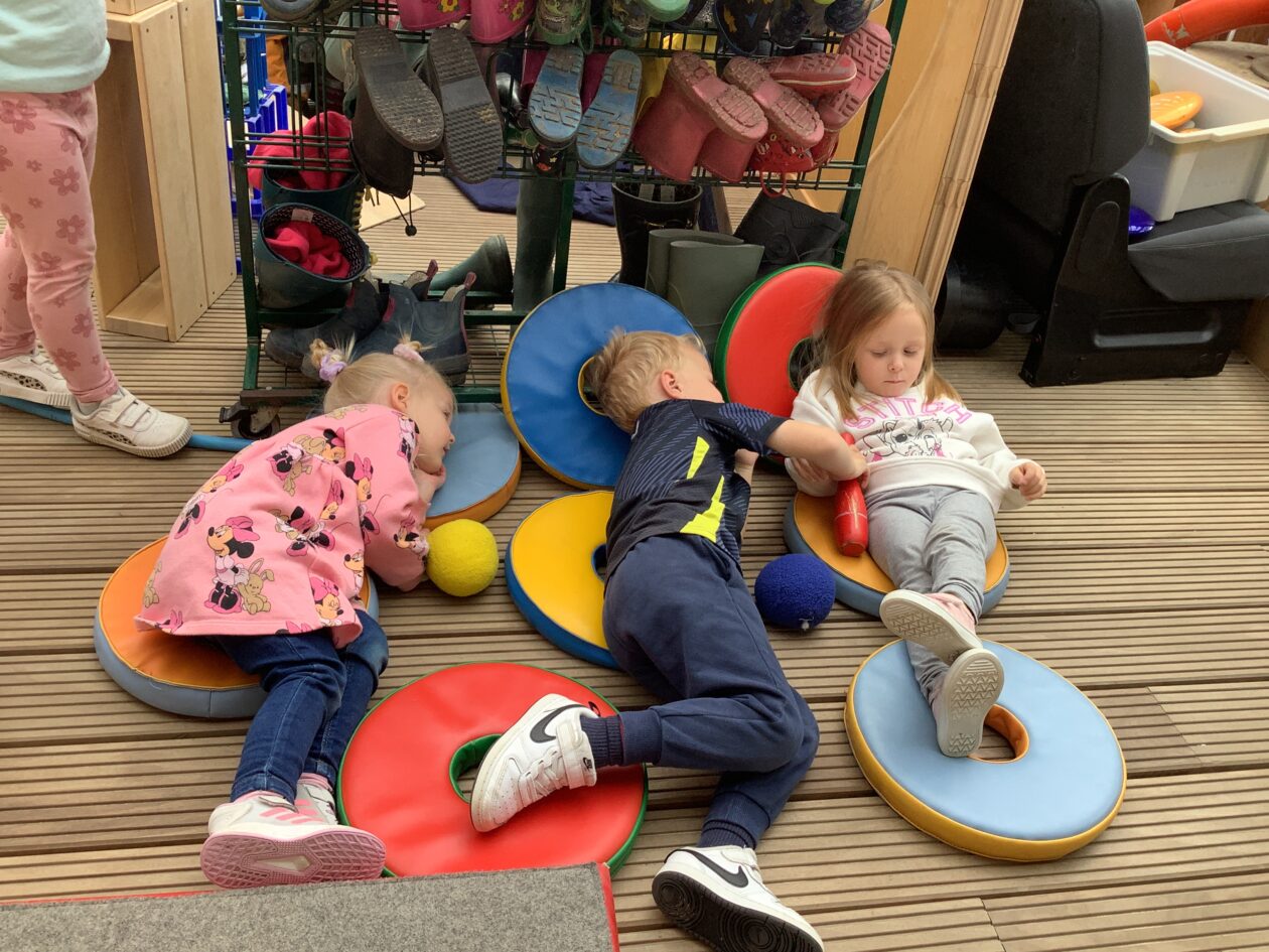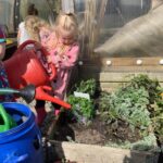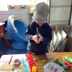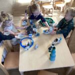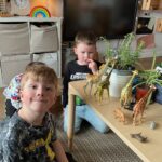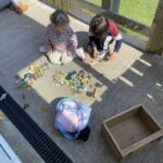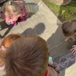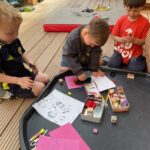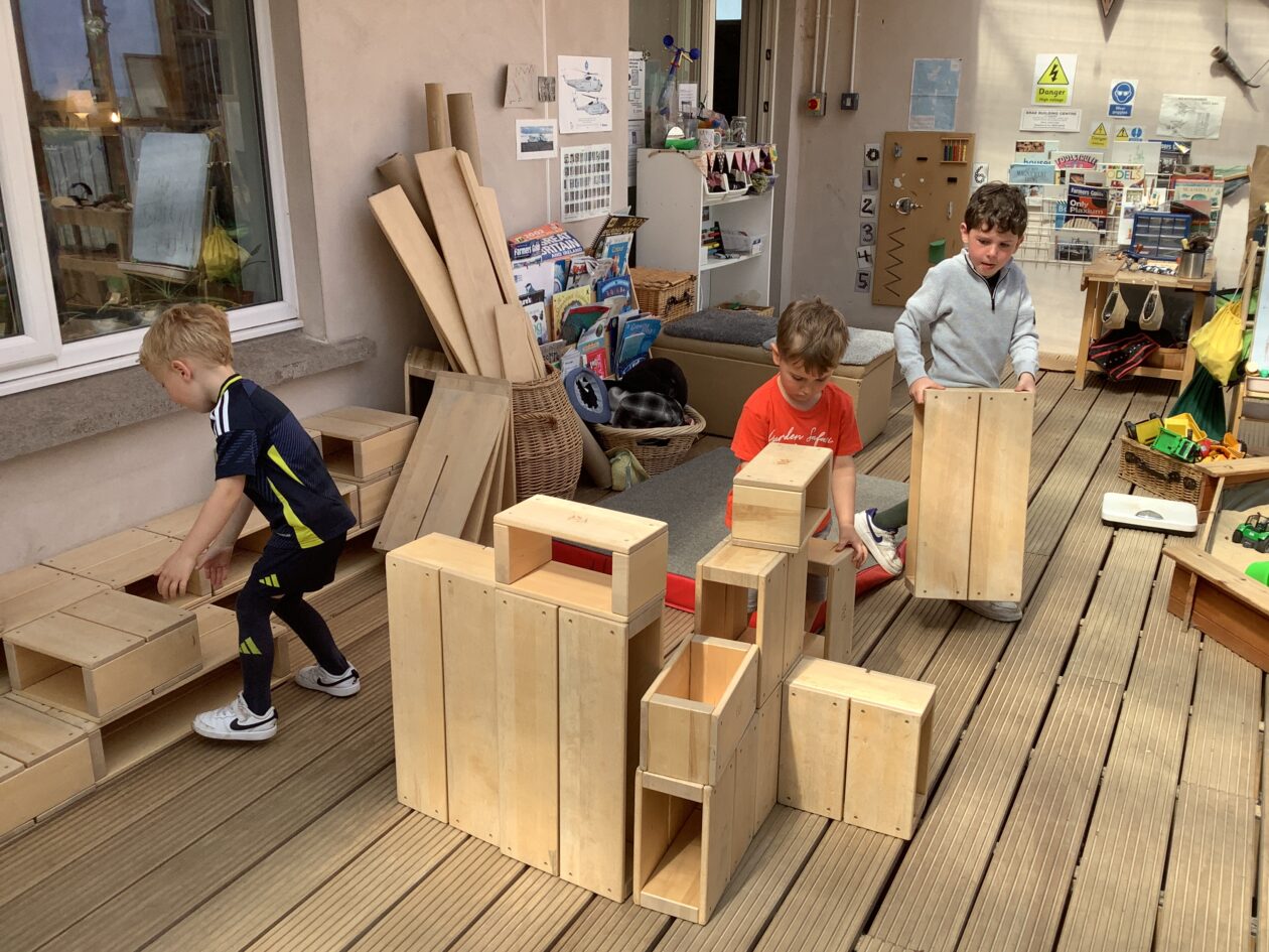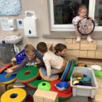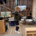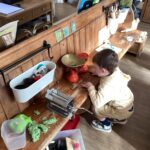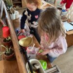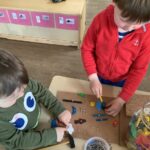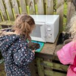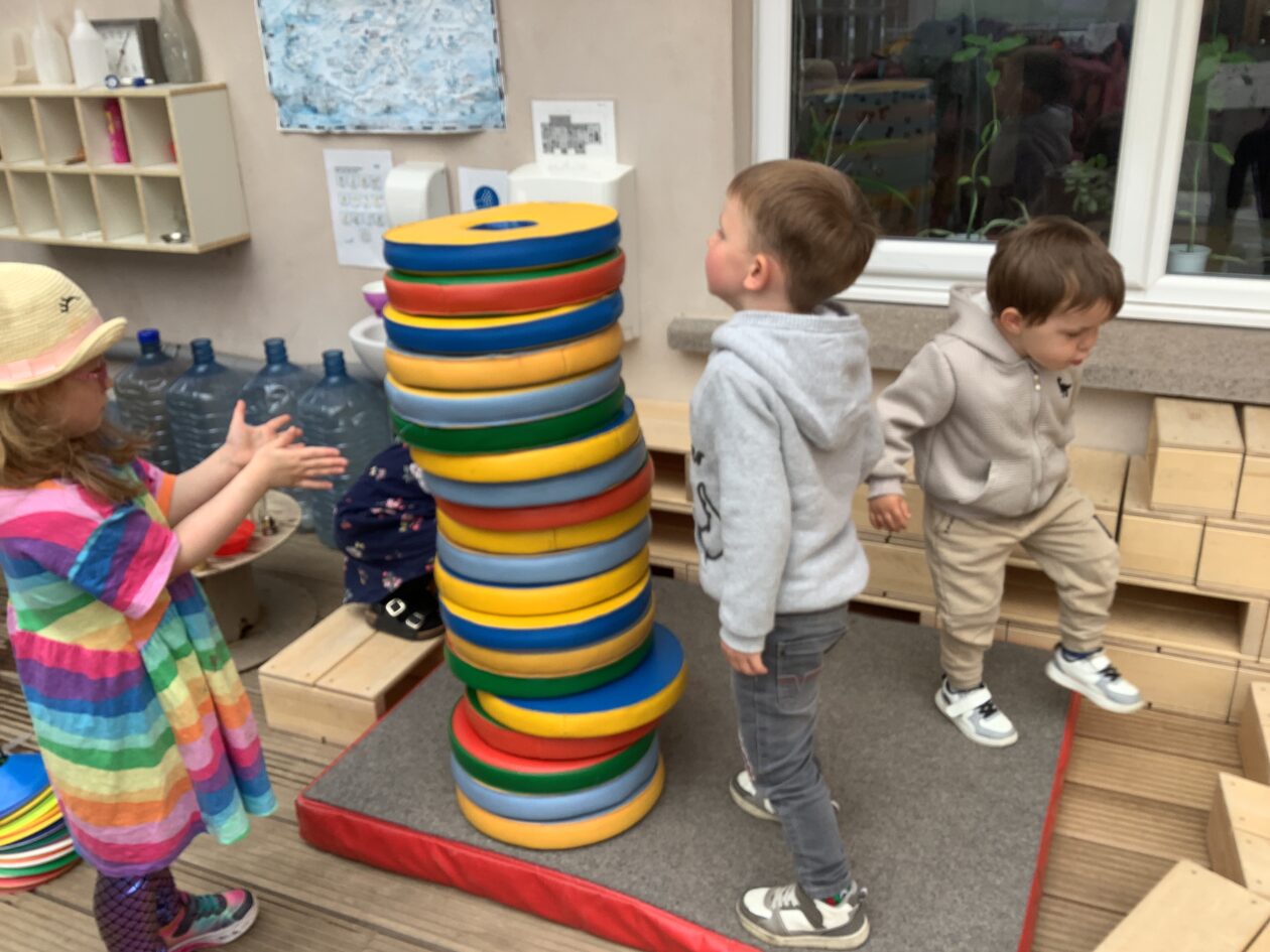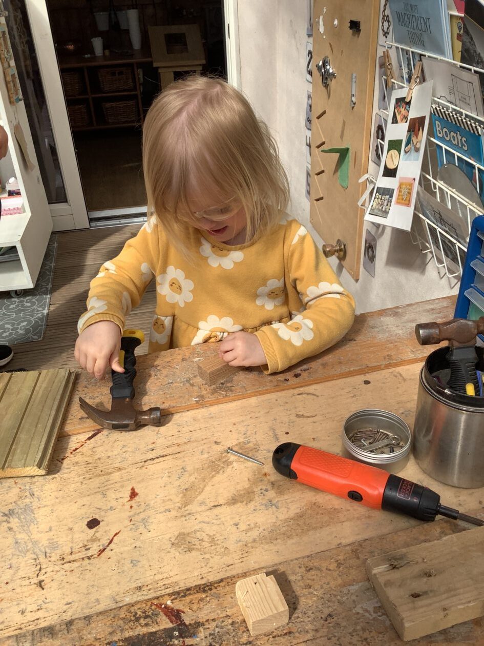 The bairns have been experimenting with different ways to slide down the steep hill in the garden. They have used cardboard, cushions, carpet tiles and slithery breeks! We have also seen lots of engagement with water play and managed to get the solar fountain working as the sun made a bit of a reappearance. We headed to the playpark one afternoon too and the bairns played chasing games, spun on the swings, tried to walk up the slide and got wobbly as jelly on a plate.