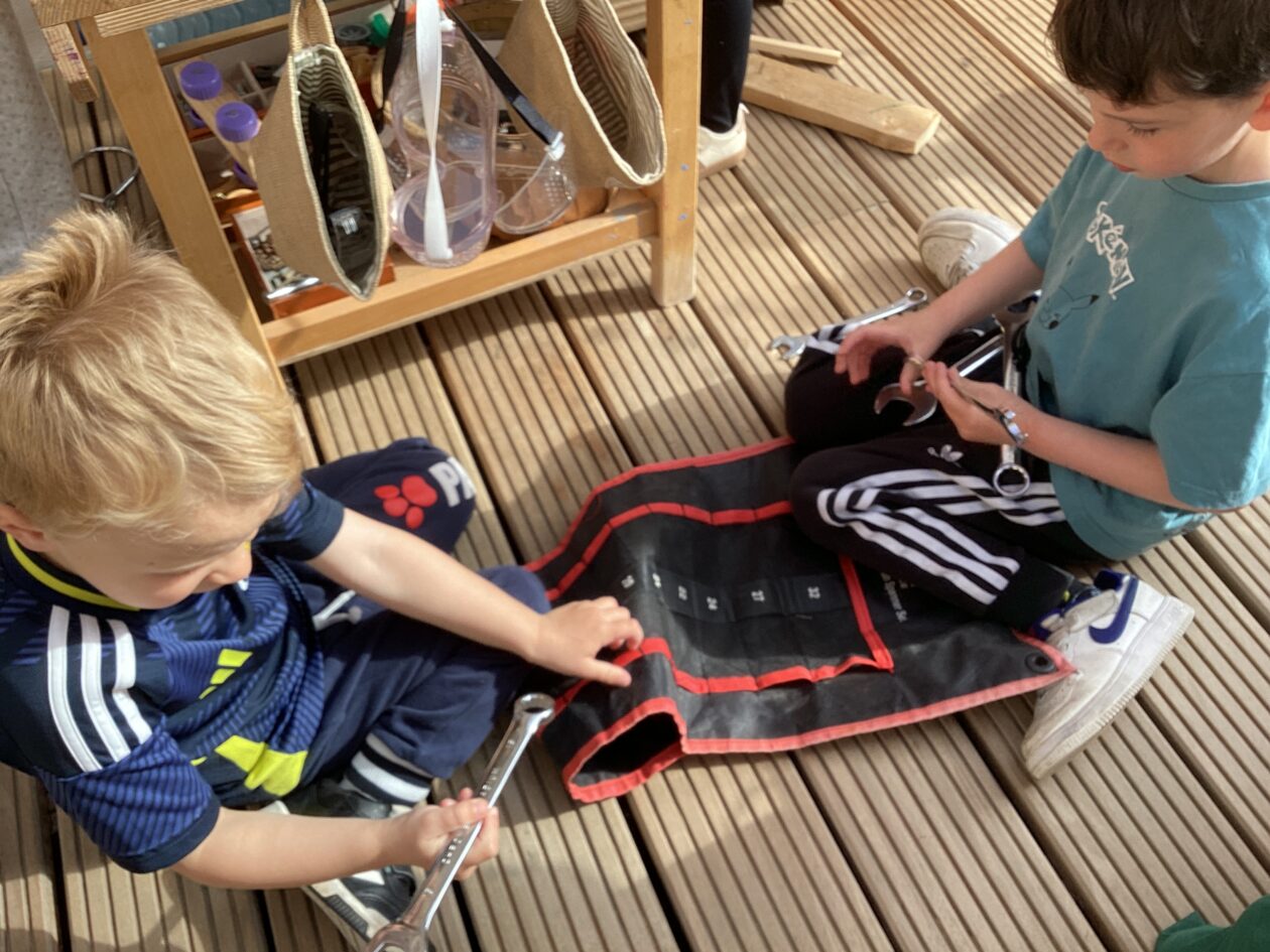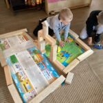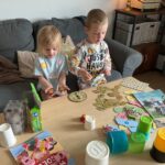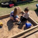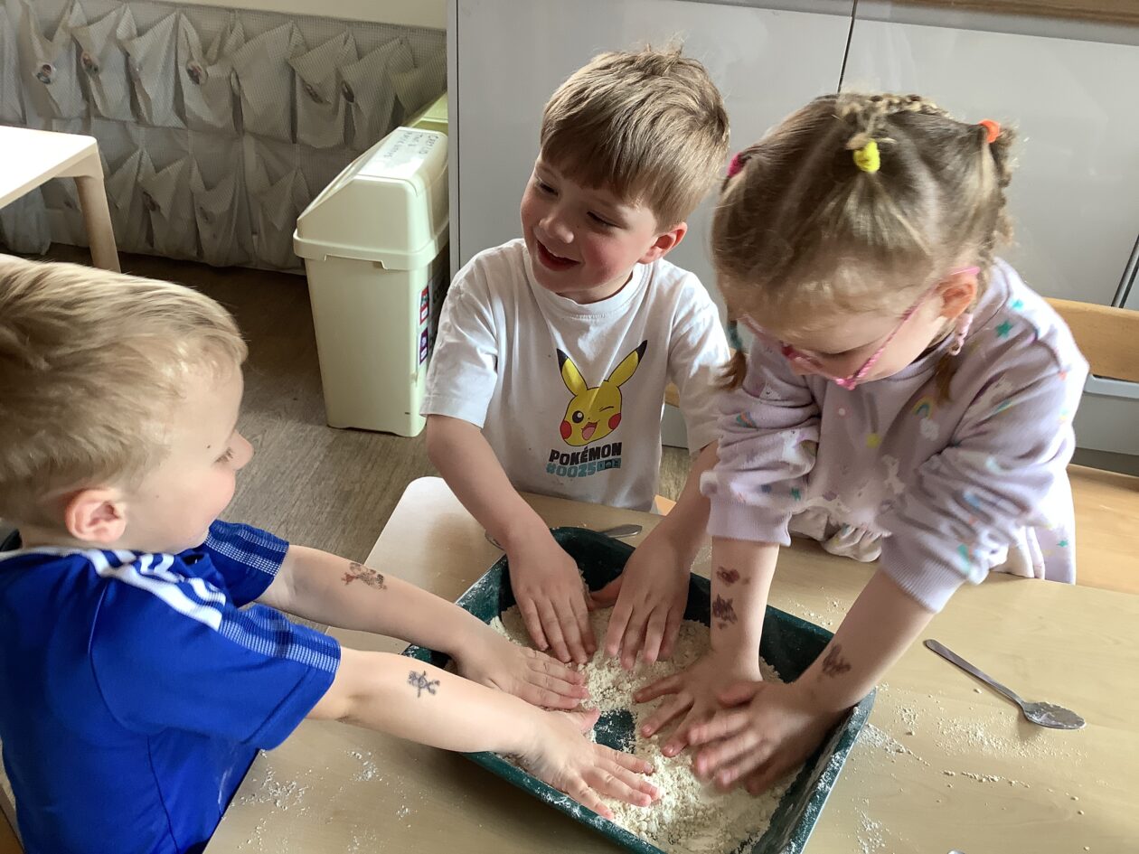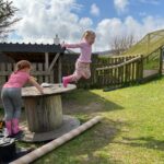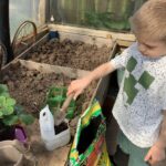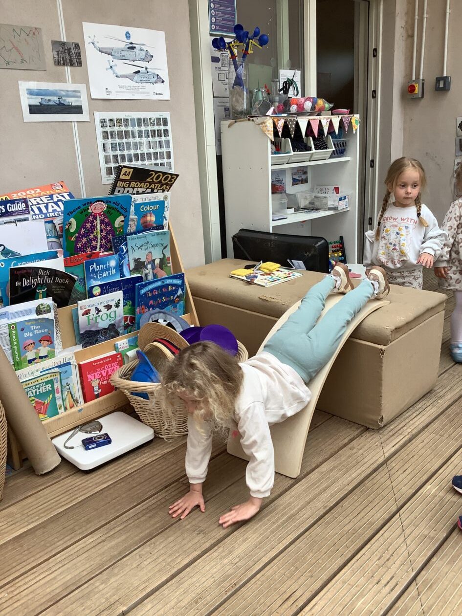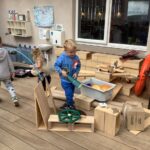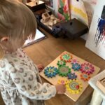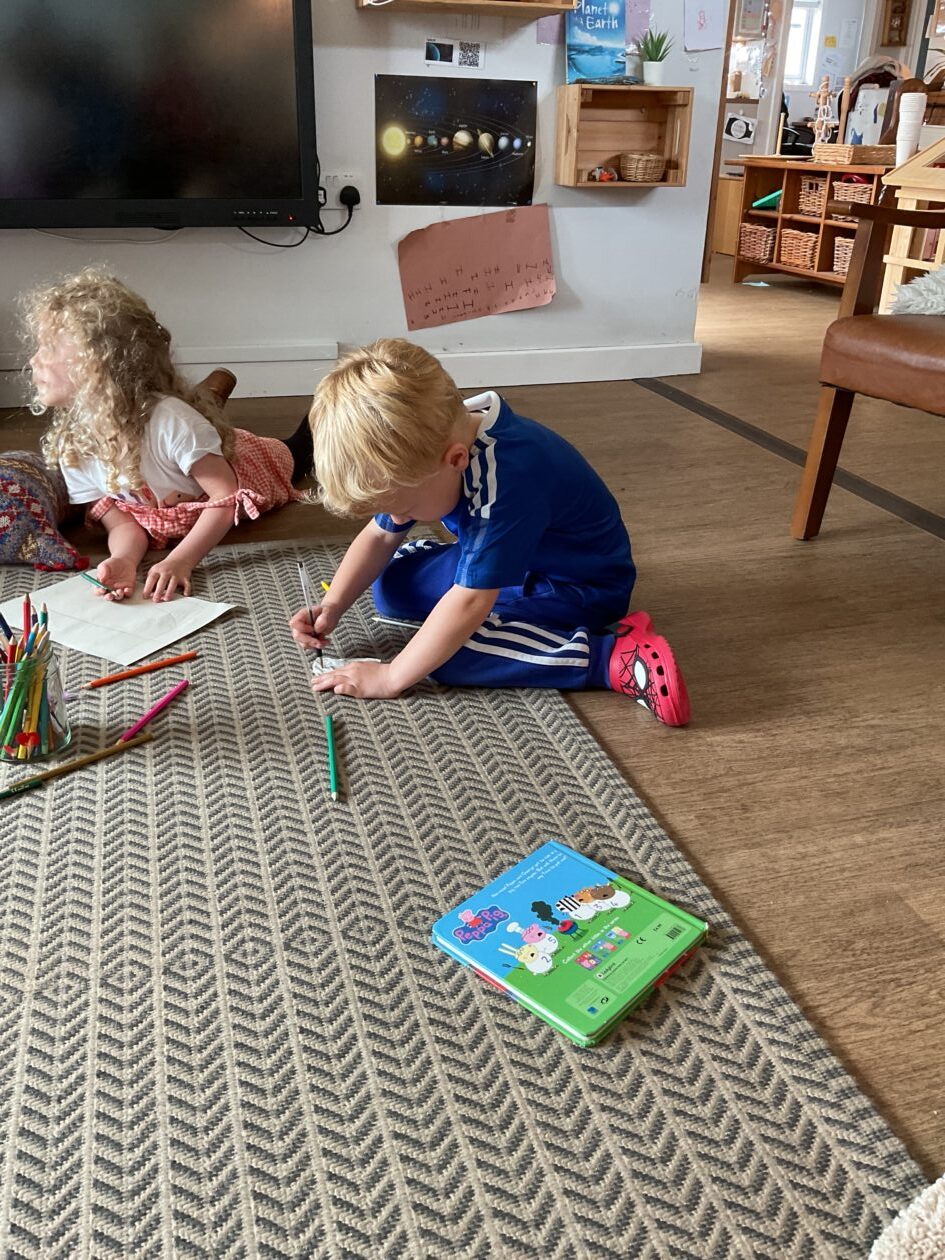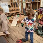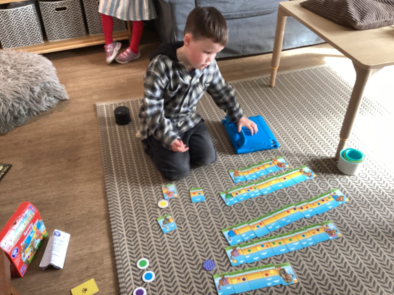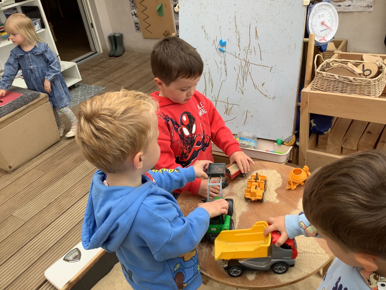 The bairns have been experimenting with different ways to slide down the steep hill in the garden. They have used cardboard, cushions, carpet tiles and slithery breeks! We have also seen lots of engagement with water play and managed to get the solar fountain working as the sun made a bit of a reappearance. We headed to the playpark one afternoon too and the bairns played chasing games, spun on the swings, tried to walk up the slide and got wobbly as jelly on a plate.