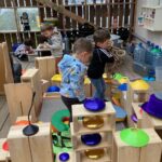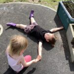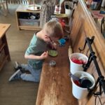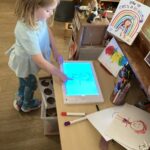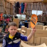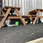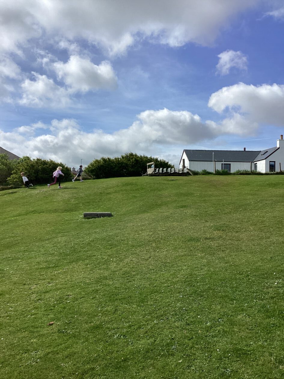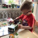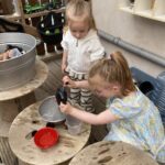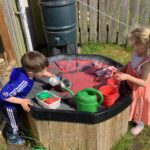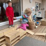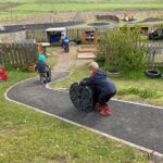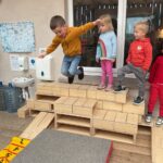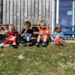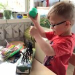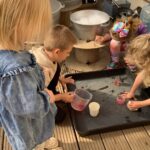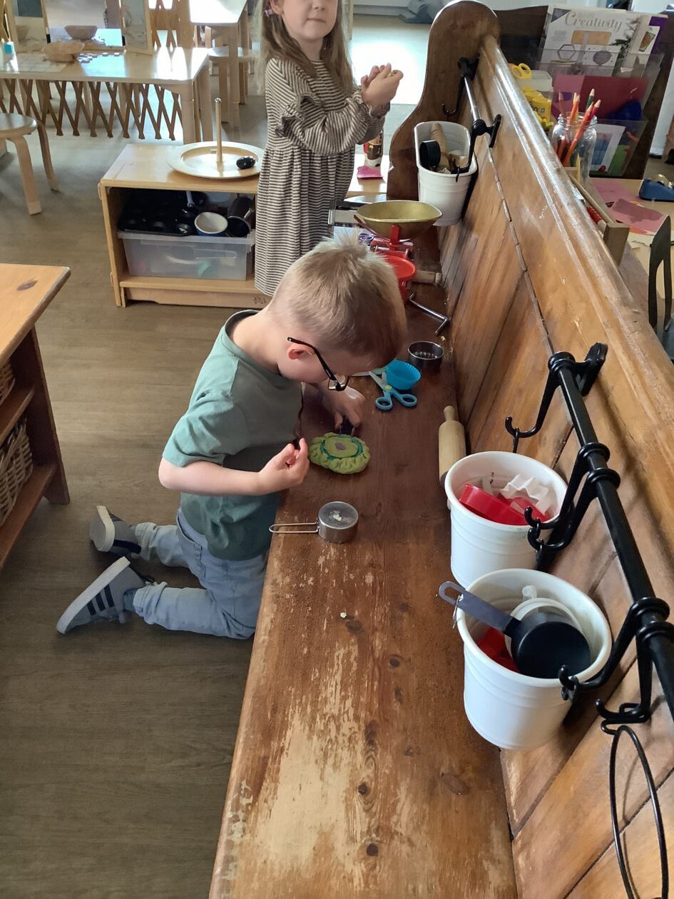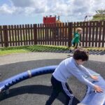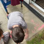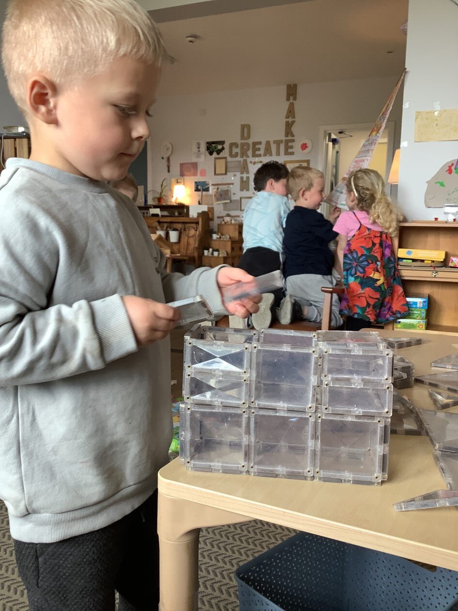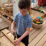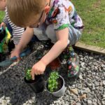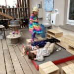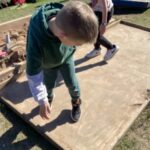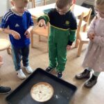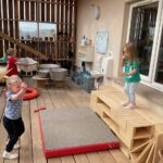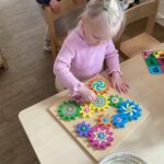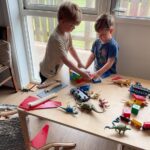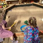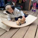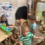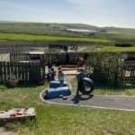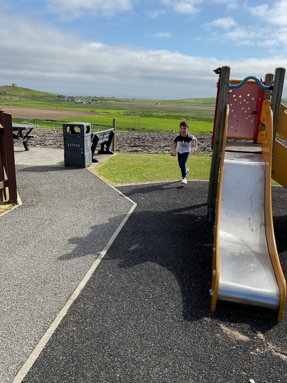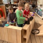 The bairns have been experimenting with different ways to slide down the steep hill in the garden. They have used cardboard, cushions, carpet tiles and slithery breeks! We have also seen lots of engagement with water play and managed to get the solar fountain working as the sun made a bit of a reappearance. We headed to the playpark one afternoon too and the bairns played chasing games, spun on the swings, tried to walk up the slide and got wobbly as jelly on a plate.