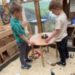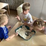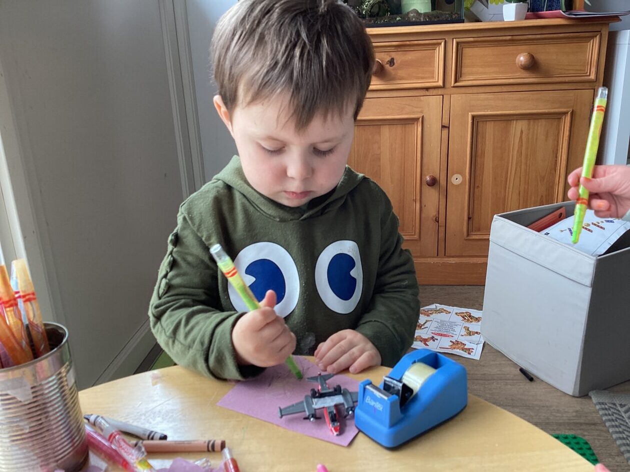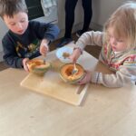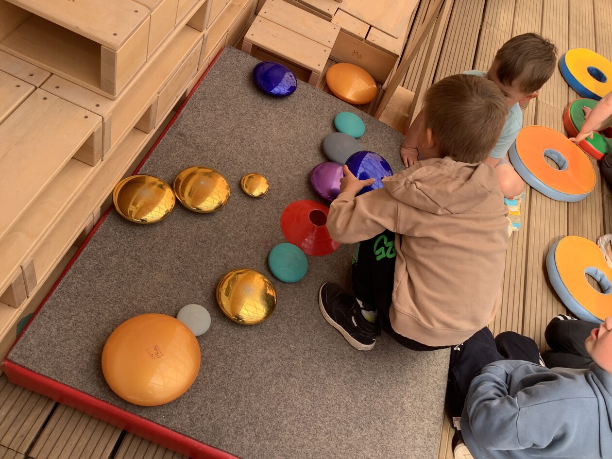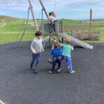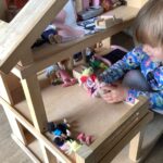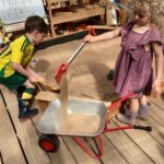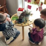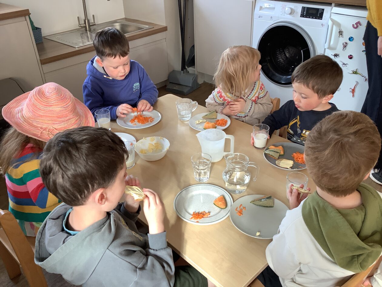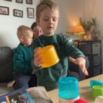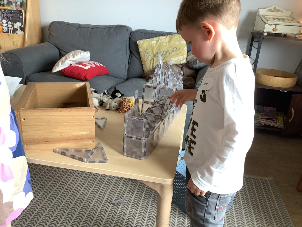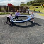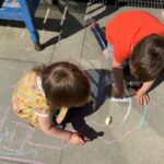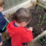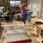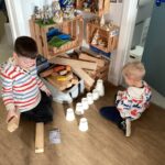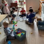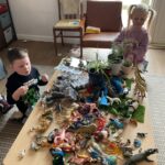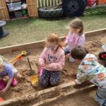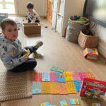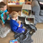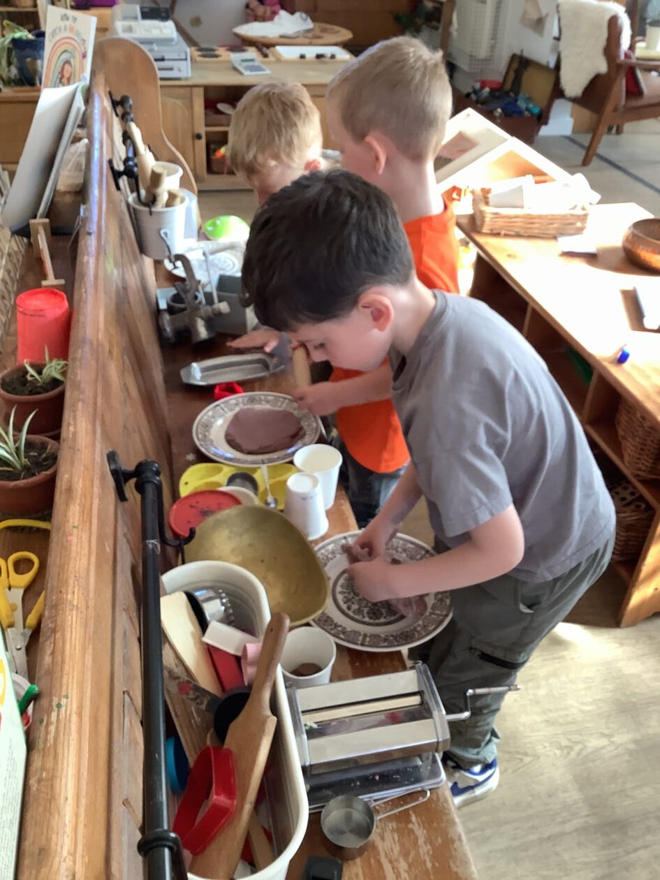 The bairns have been experimenting with different ways to slide down the steep hill in the garden. They have used cardboard, cushions, carpet tiles and slithery breeks! We have also seen lots of engagement with water play and managed to get the solar fountain working as the sun made a bit of a reappearance. We headed to the playpark one afternoon too and the bairns played chasing games, spun on the swings, tried to walk up the slide and got wobbly as jelly on a plate.