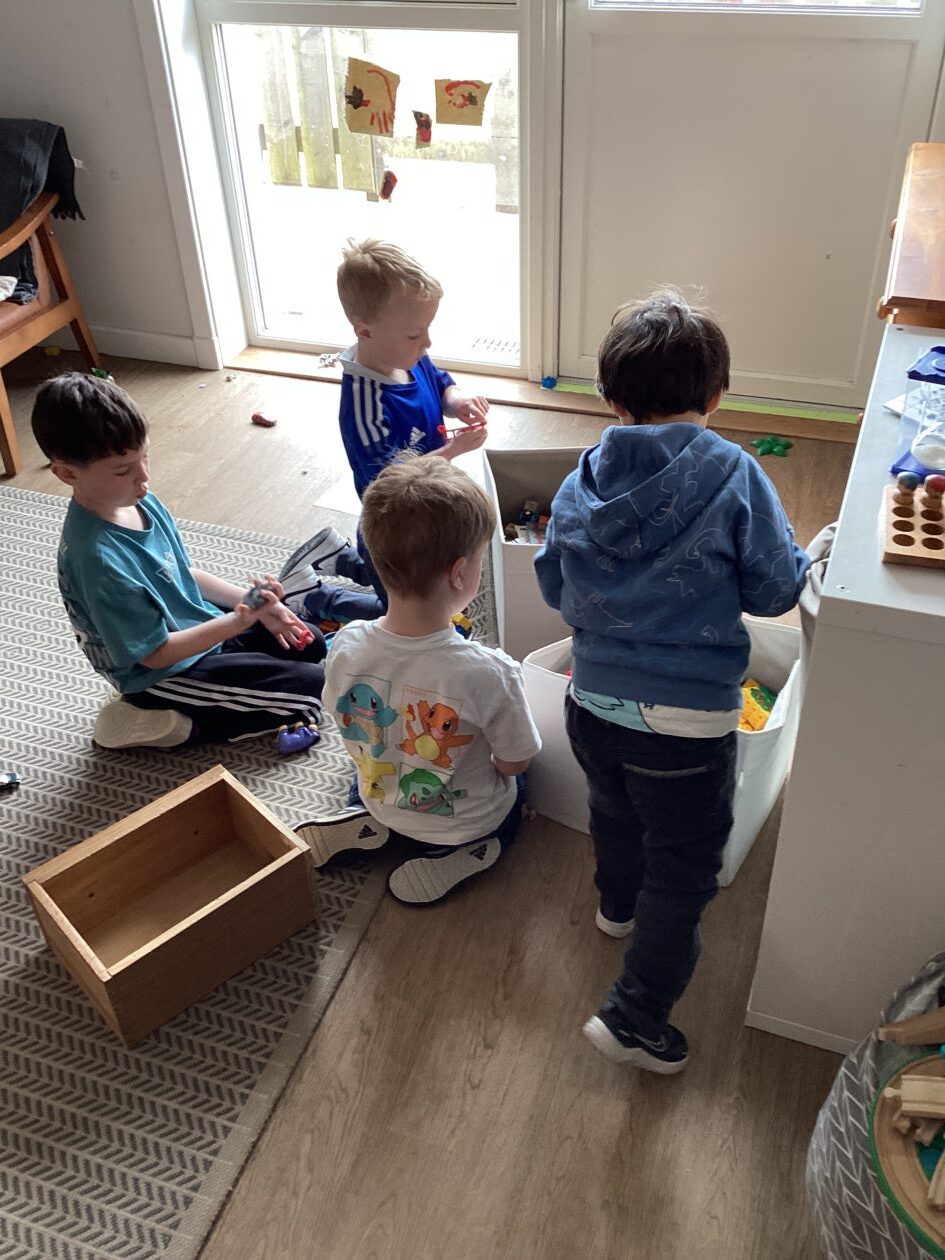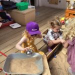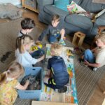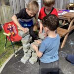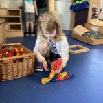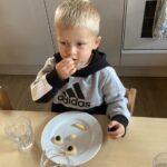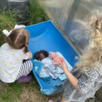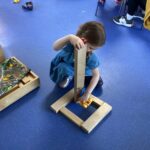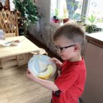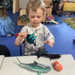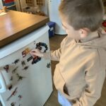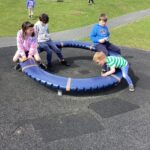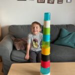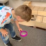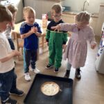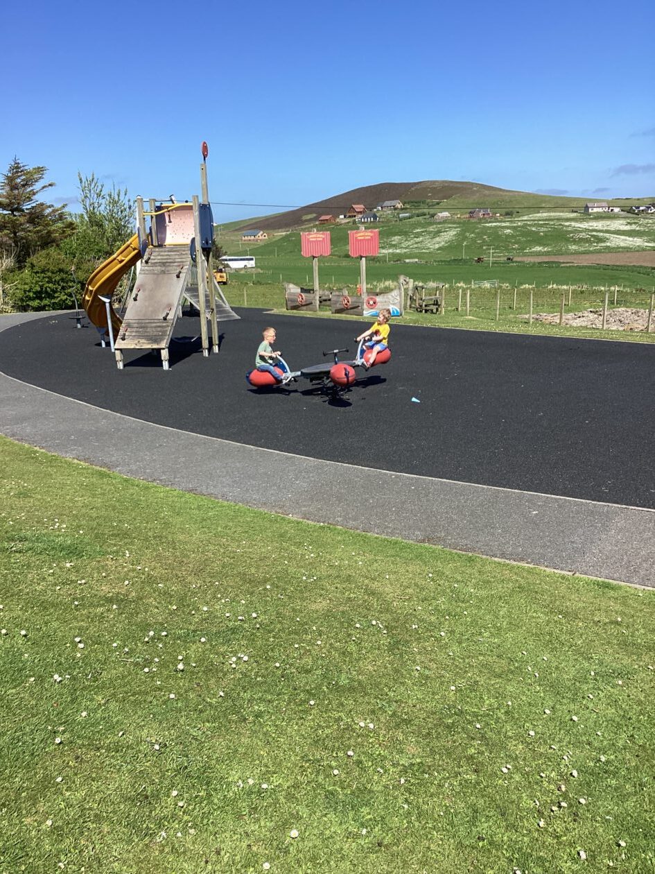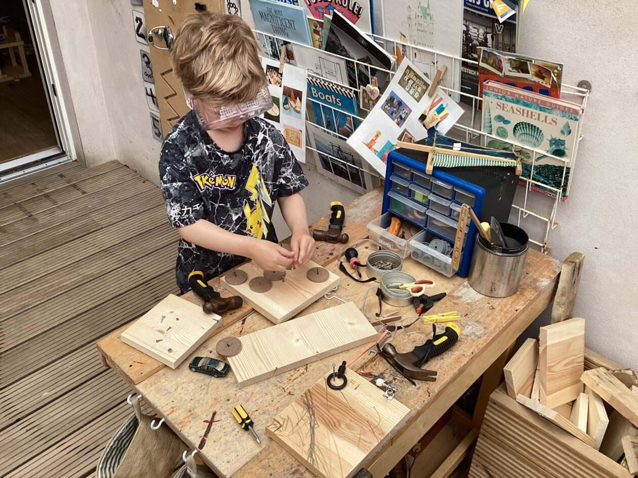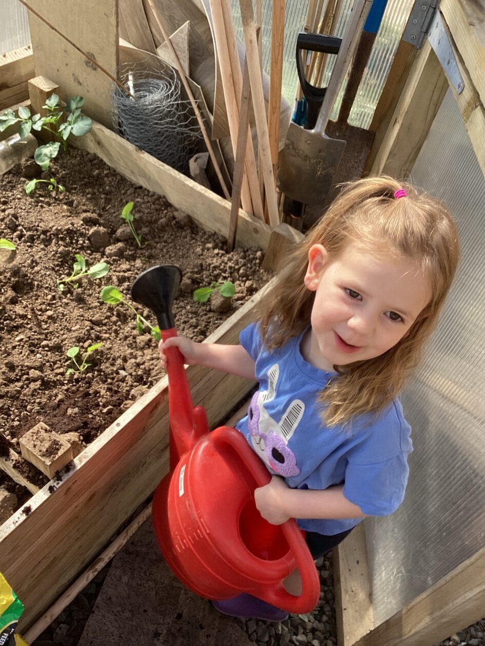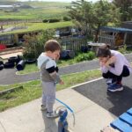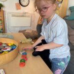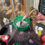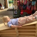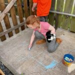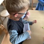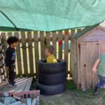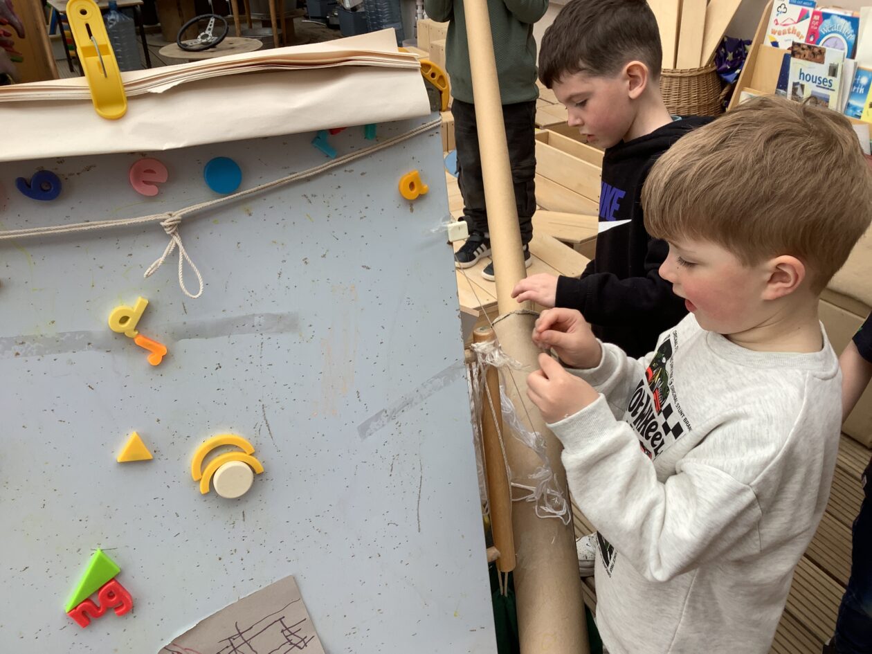 The bairns have been experimenting with different ways to slide down the steep hill in the garden. They have used cardboard, cushions, carpet tiles and slithery breeks! We have also seen lots of engagement with water play and managed to get the solar fountain working as the sun made a bit of a reappearance. We headed to the playpark one afternoon too and the bairns played chasing games, spun on the swings, tried to walk up the slide and got wobbly as jelly on a plate.