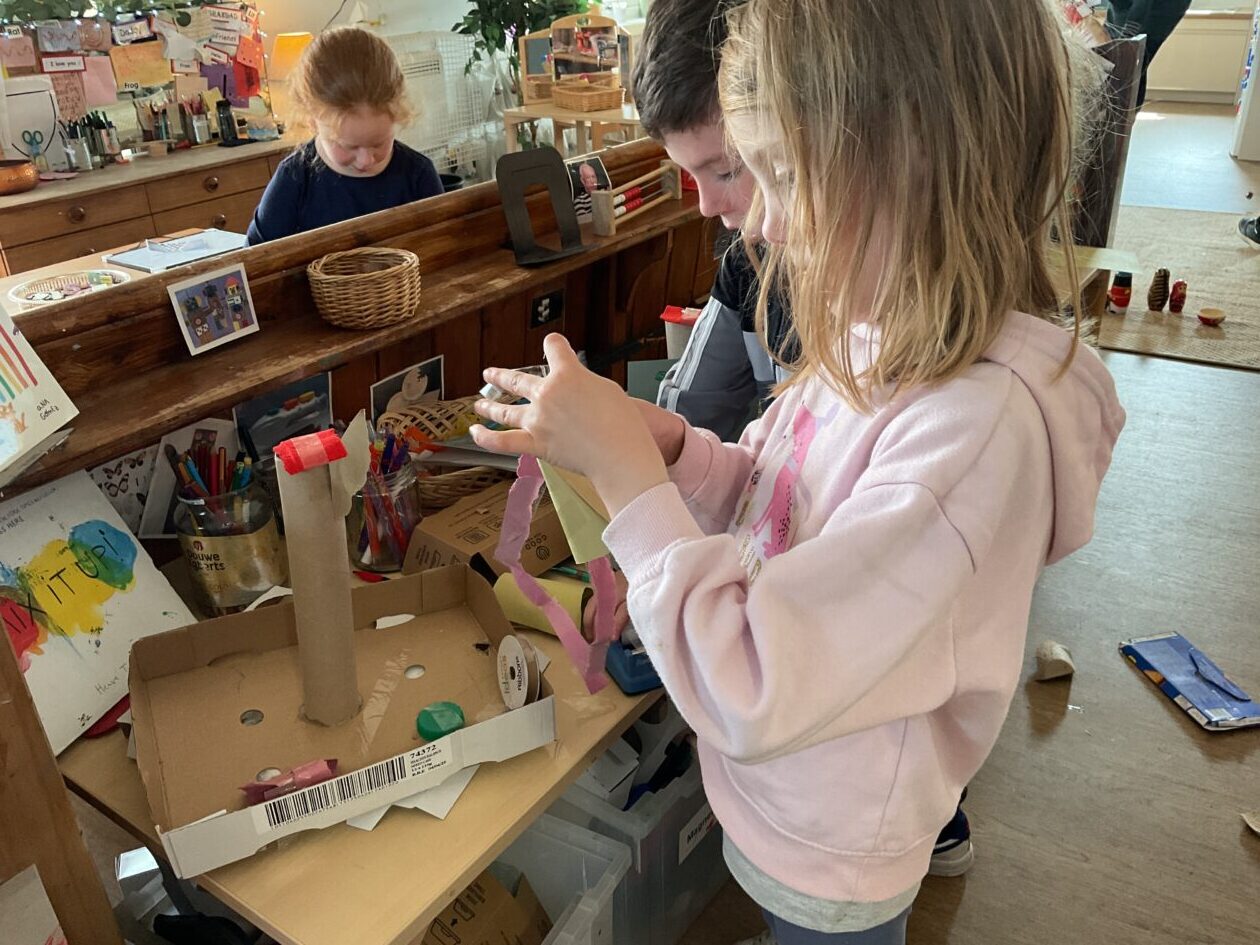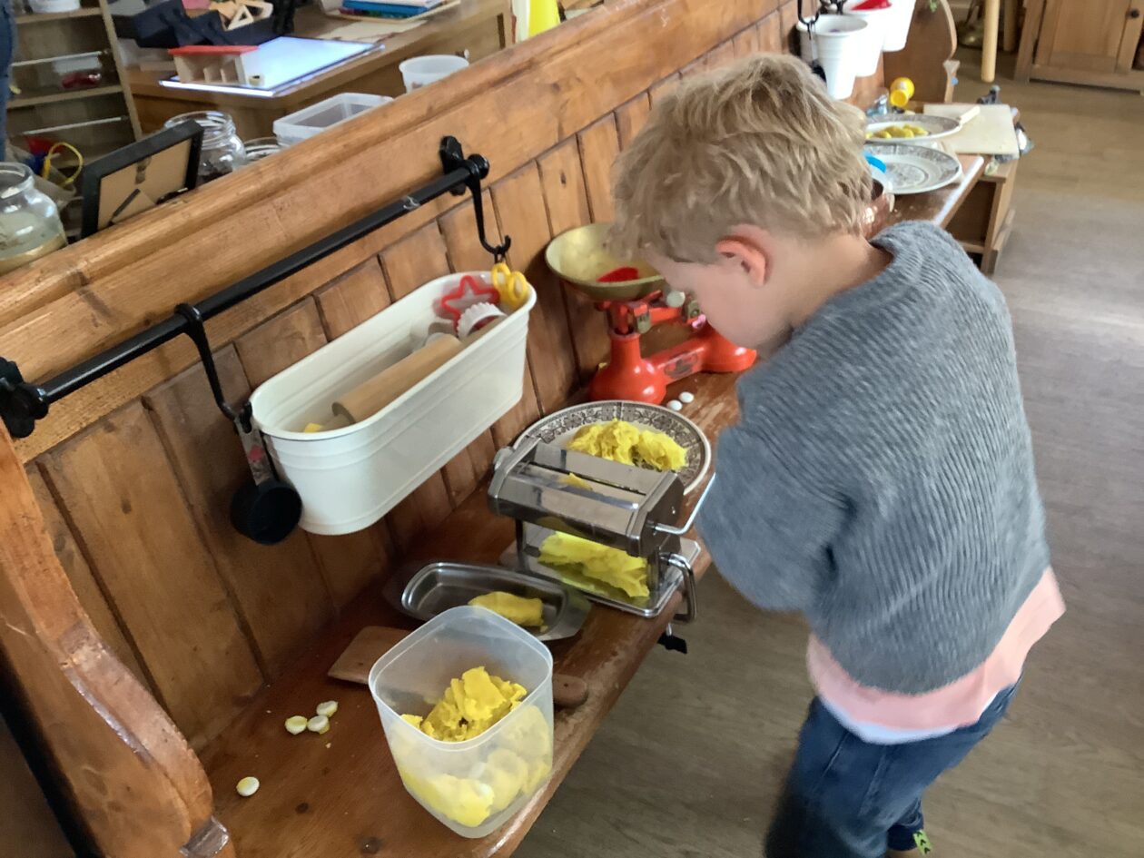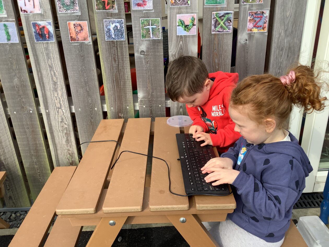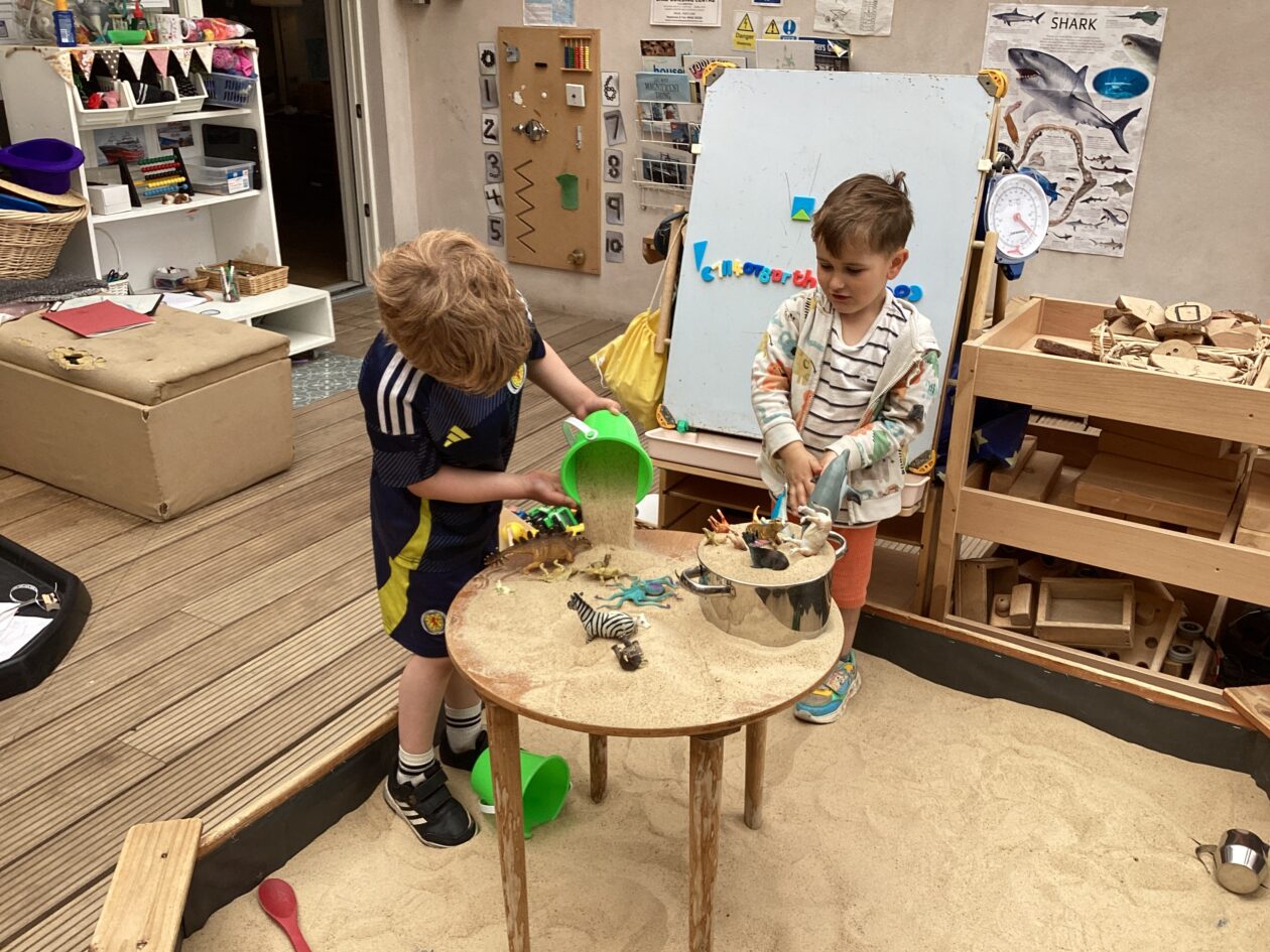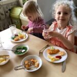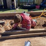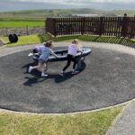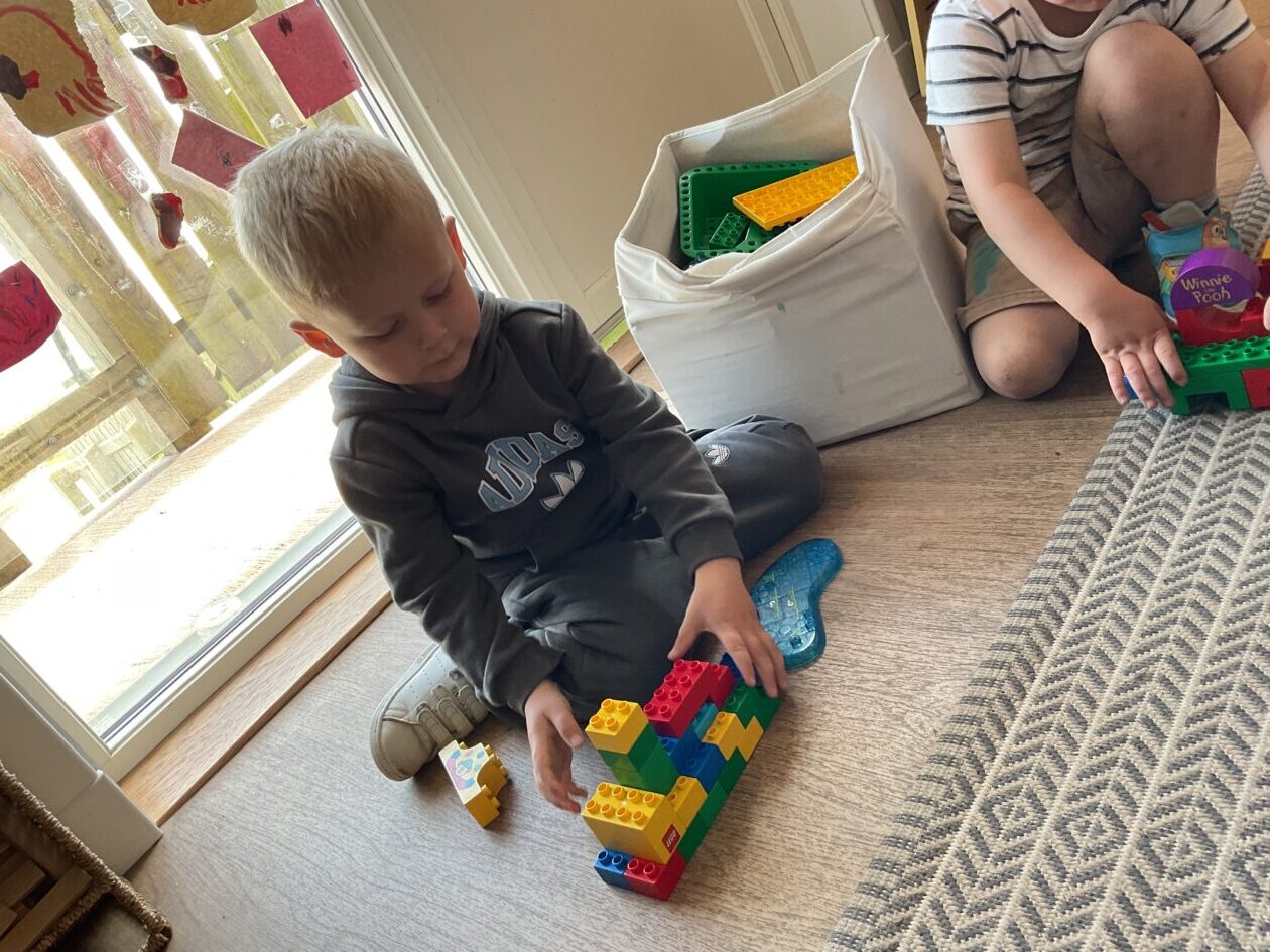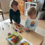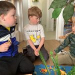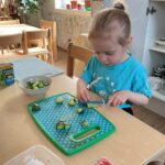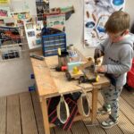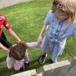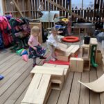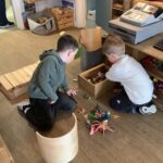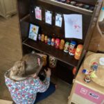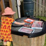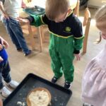 The bairns have been experimenting with different ways to slide down the steep hill in the garden. They have used cardboard, cushions, carpet tiles and slithery breeks! We have also seen lots of engagement with water play and managed to get the solar fountain working as the sun made a bit of a reappearance. We headed to the playpark one afternoon too and the bairns played chasing games, spun on the swings, tried to walk up the slide and got wobbly as jelly on a plate.
