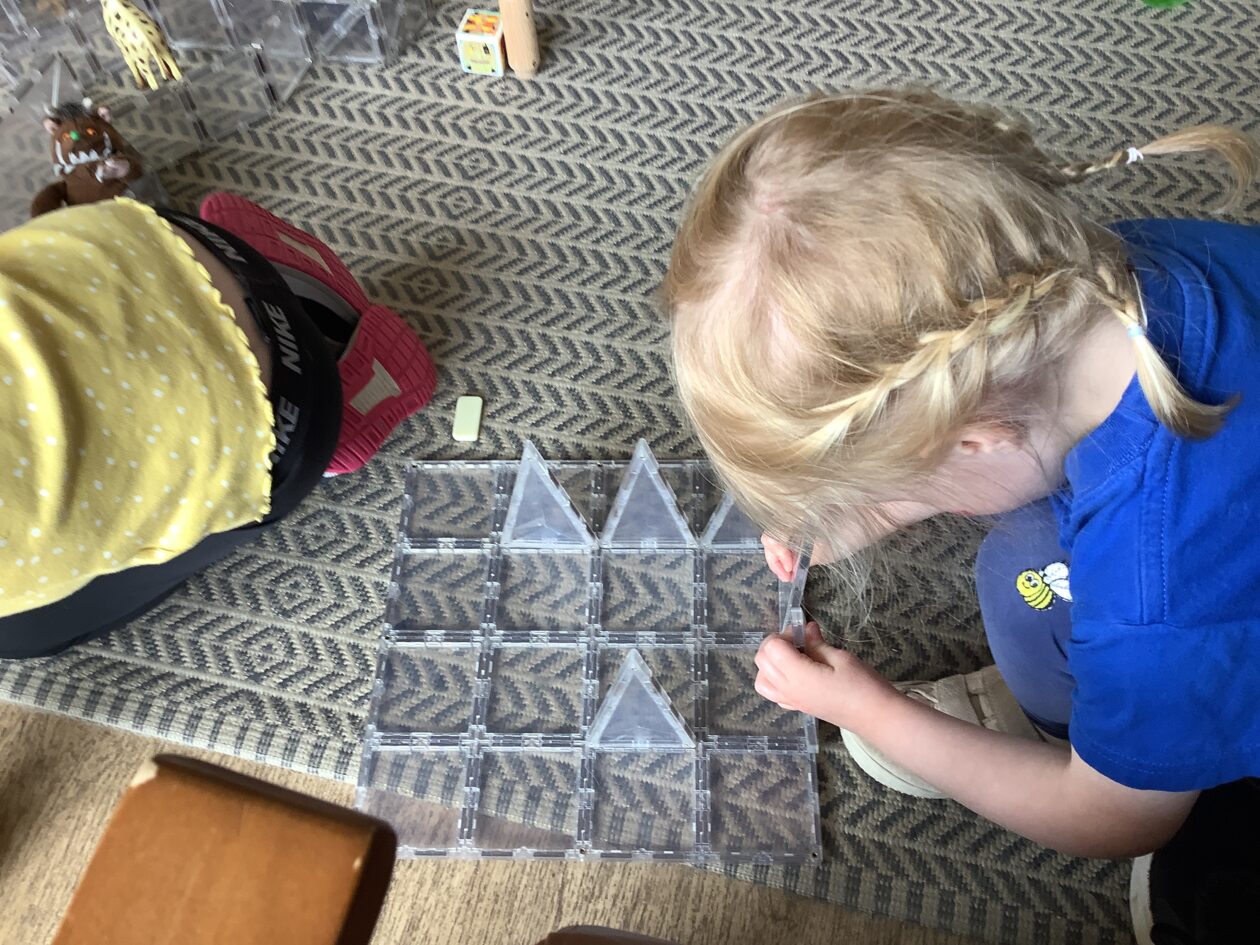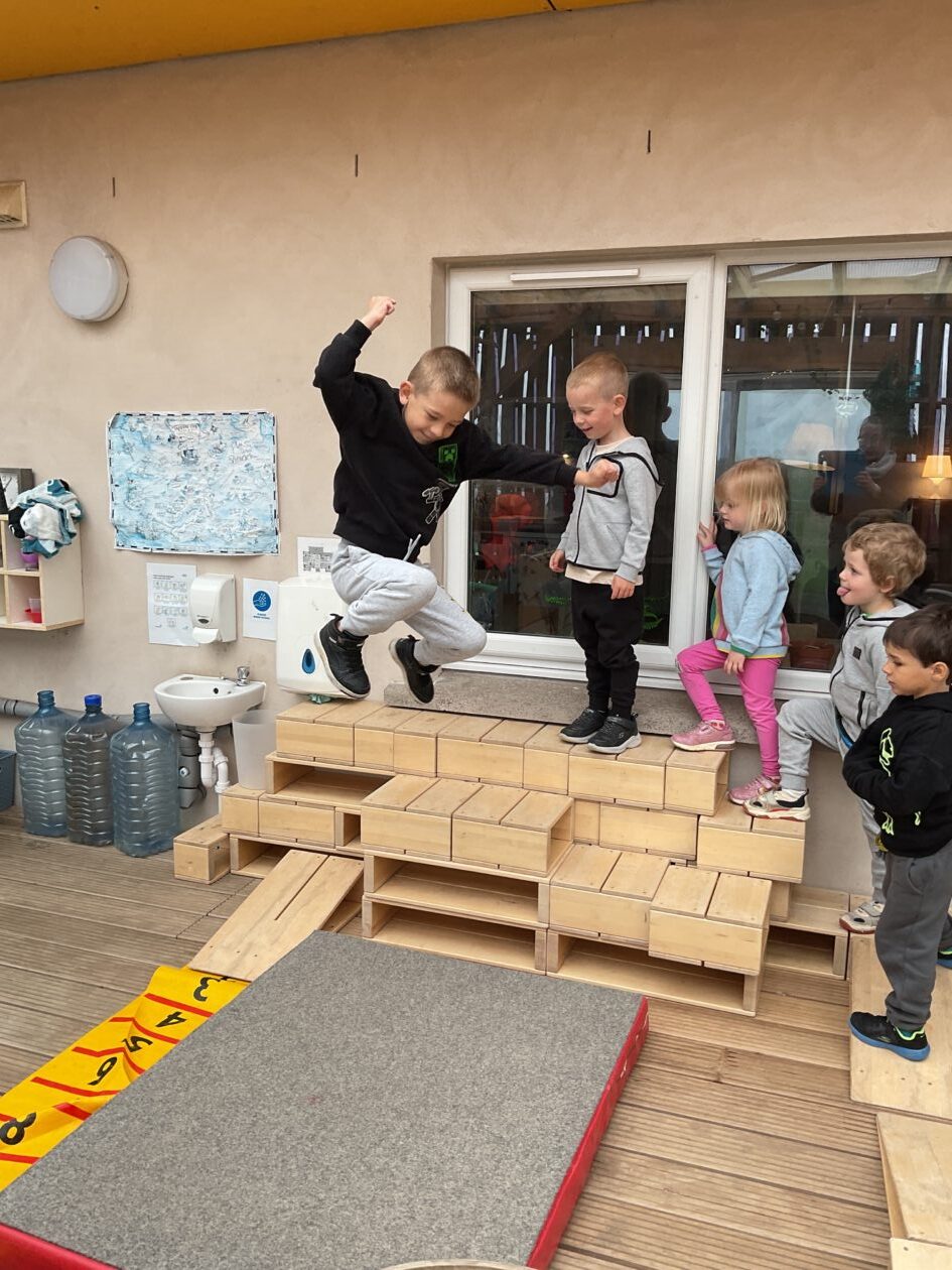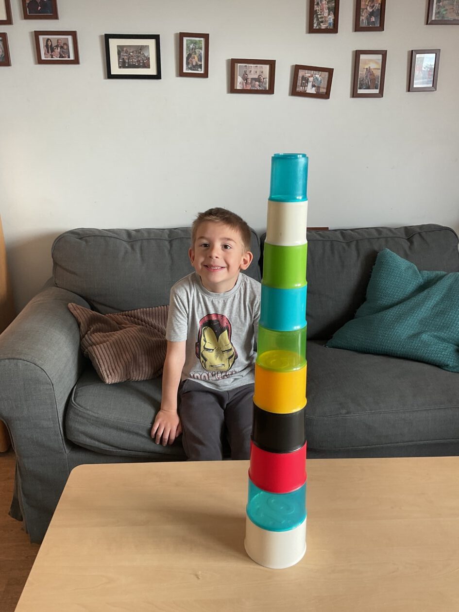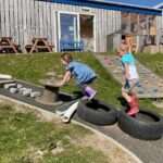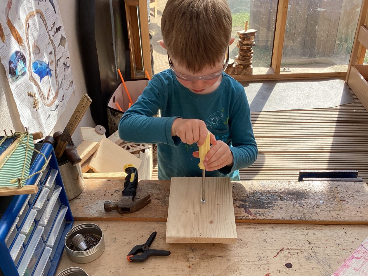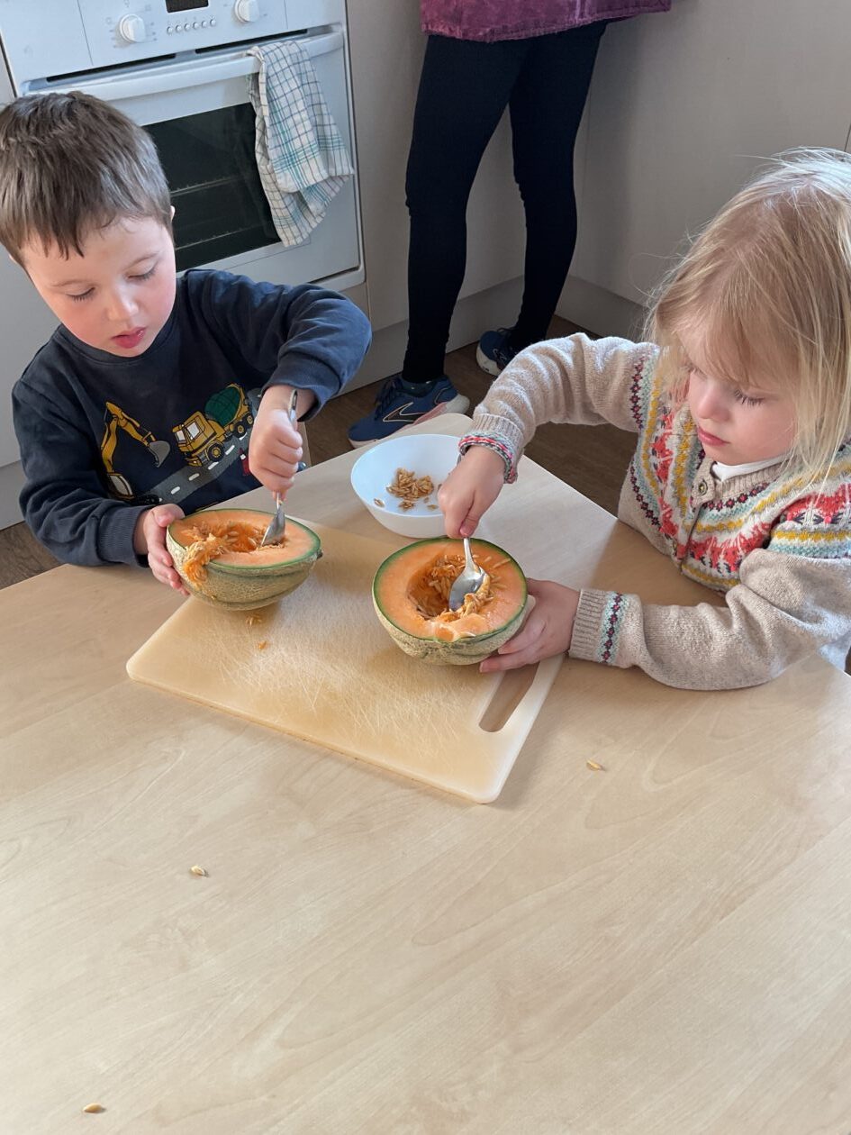 The bairns have been experimenting with different ways to slide down the steep hill in the garden. They have used cardboard, cushions, carpet tiles and slithery breeks! We have also seen lots of engagement with water play and managed to get the solar fountain working as the sun made a bit of a reappearance. We headed to the playpark one afternoon too and the bairns played chasing games, spun on the swings, tried to walk up the slide and got wobbly as jelly on a plate.