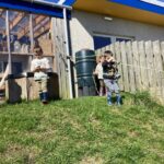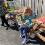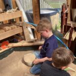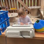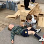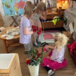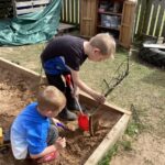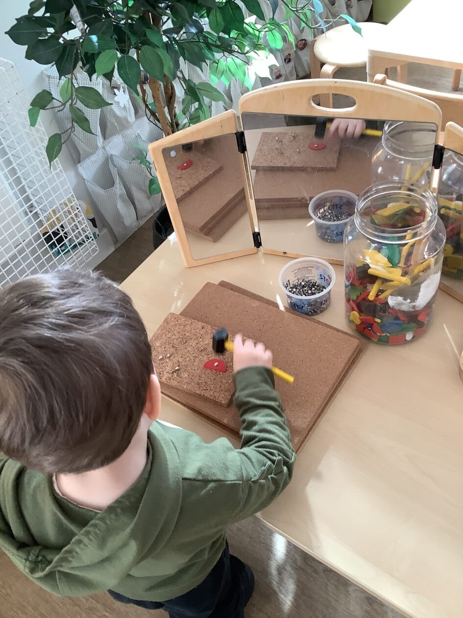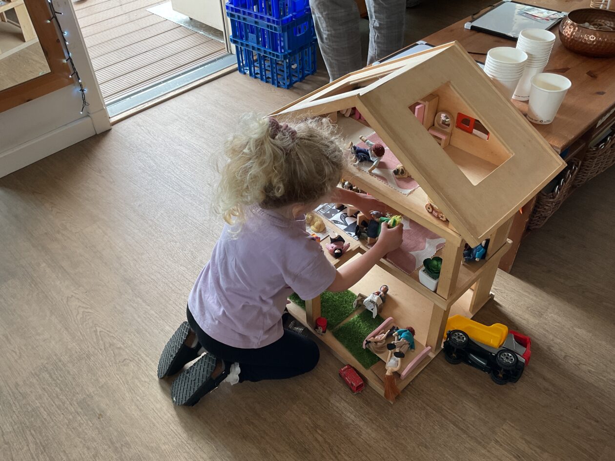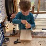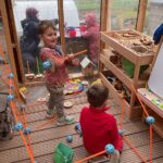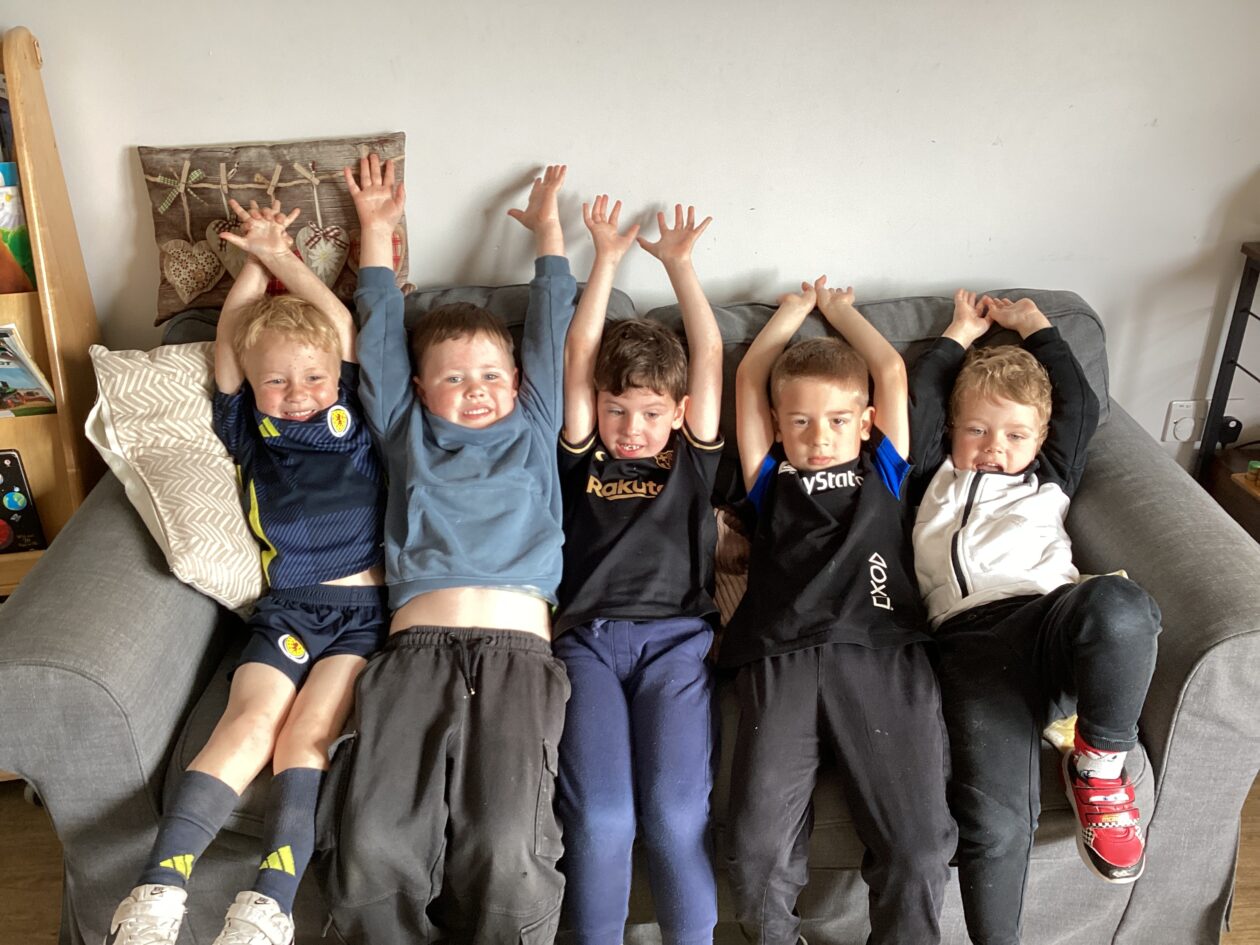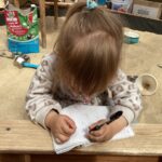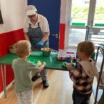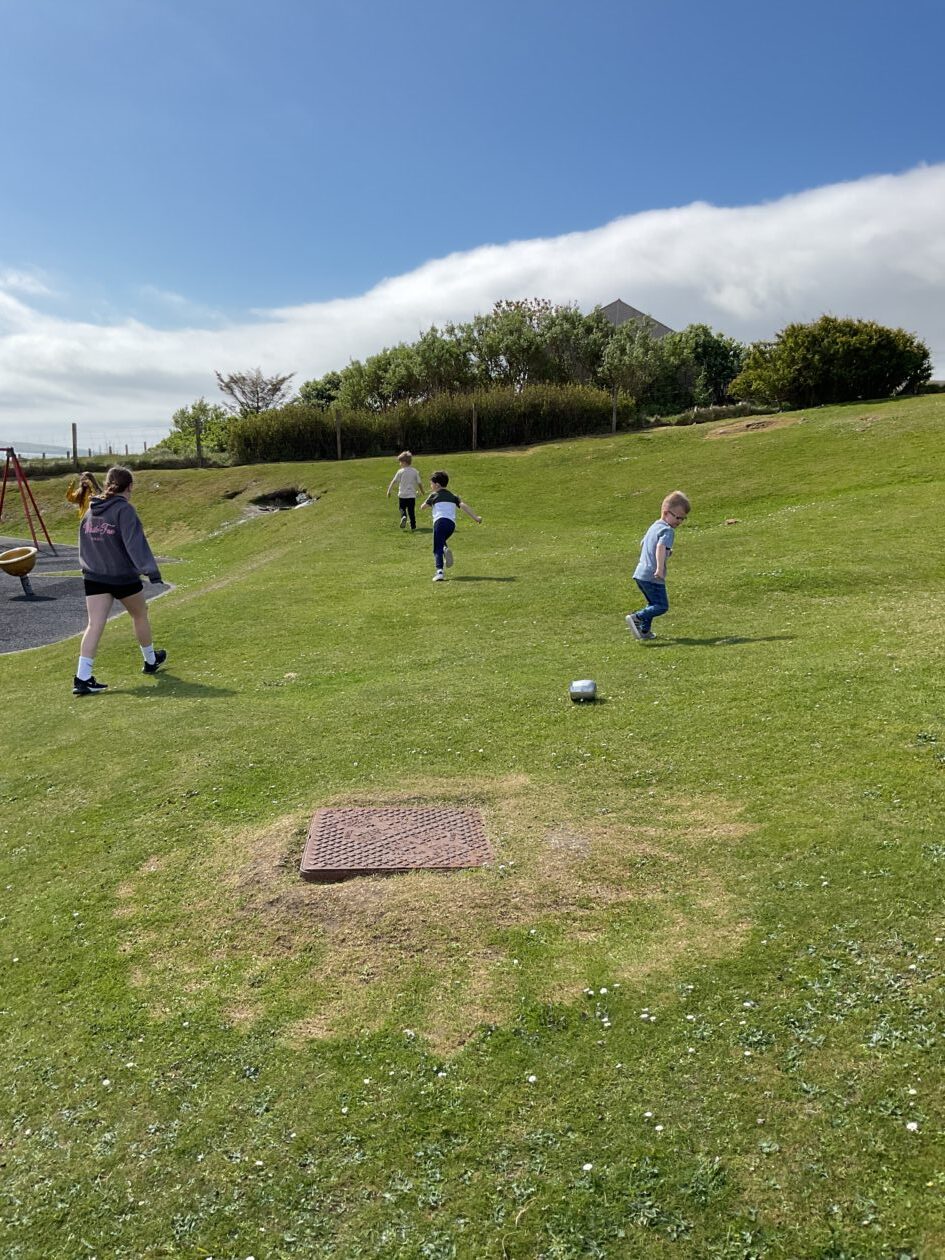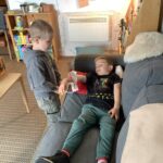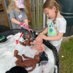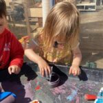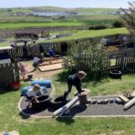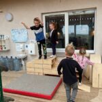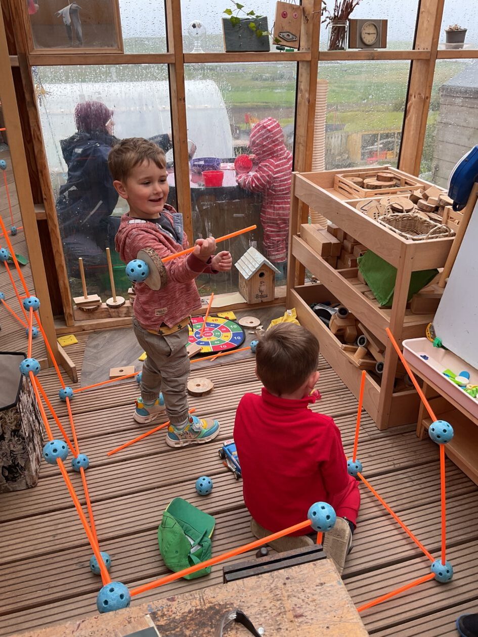 The bairns have been experimenting with different ways to slide down the steep hill in the garden. They have used cardboard, cushions, carpet tiles and slithery breeks! We have also seen lots of engagement with water play and managed to get the solar fountain working as the sun made a bit of a reappearance. We headed to the playpark one afternoon too and the bairns played chasing games, spun on the swings, tried to walk up the slide and got wobbly as jelly on a plate.