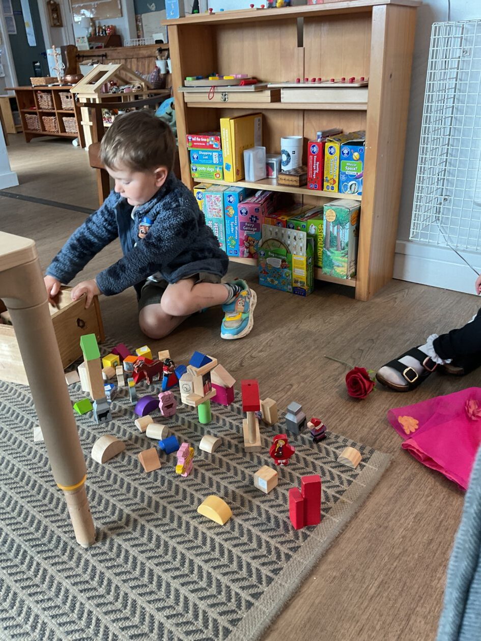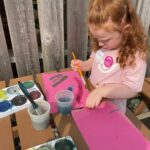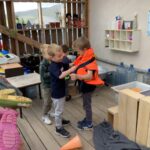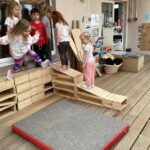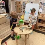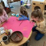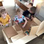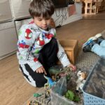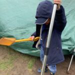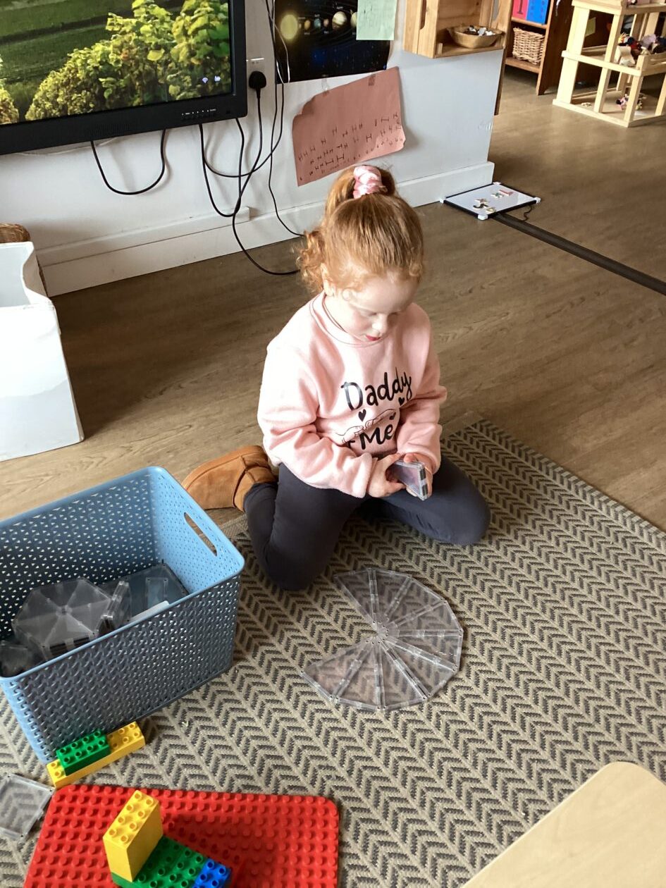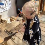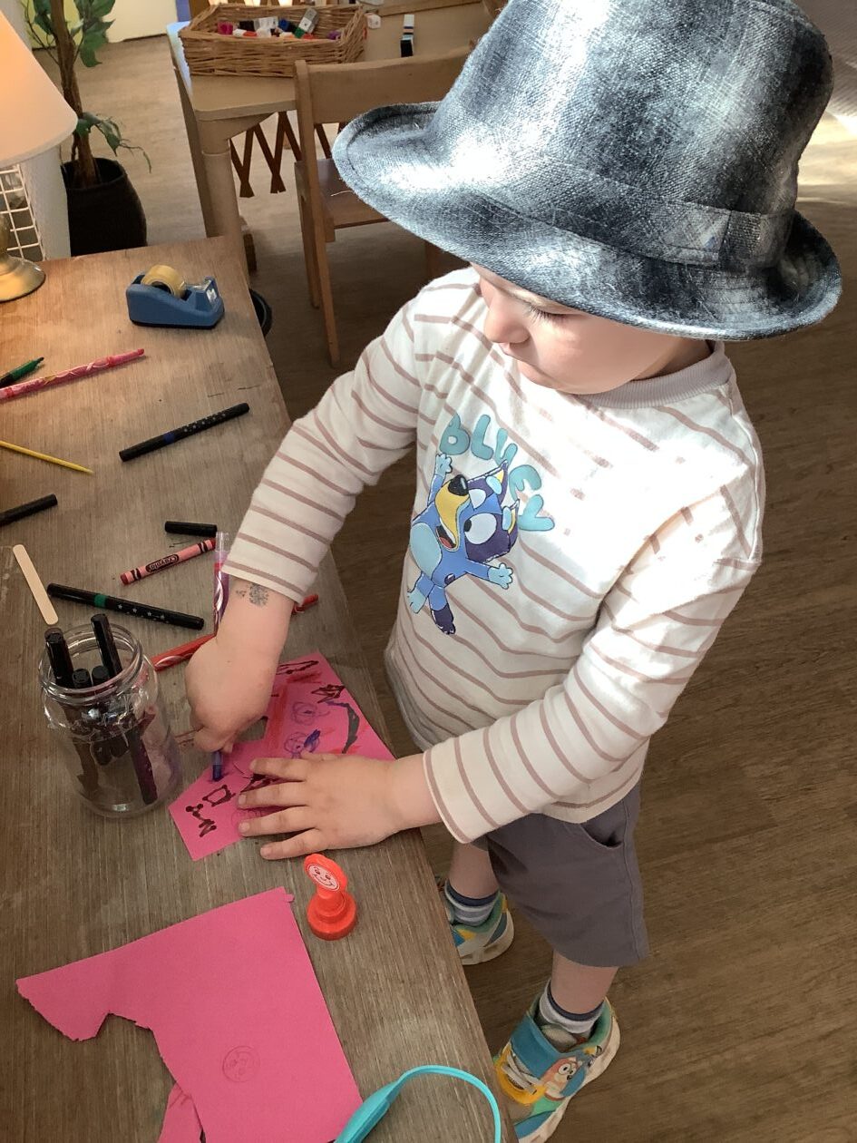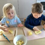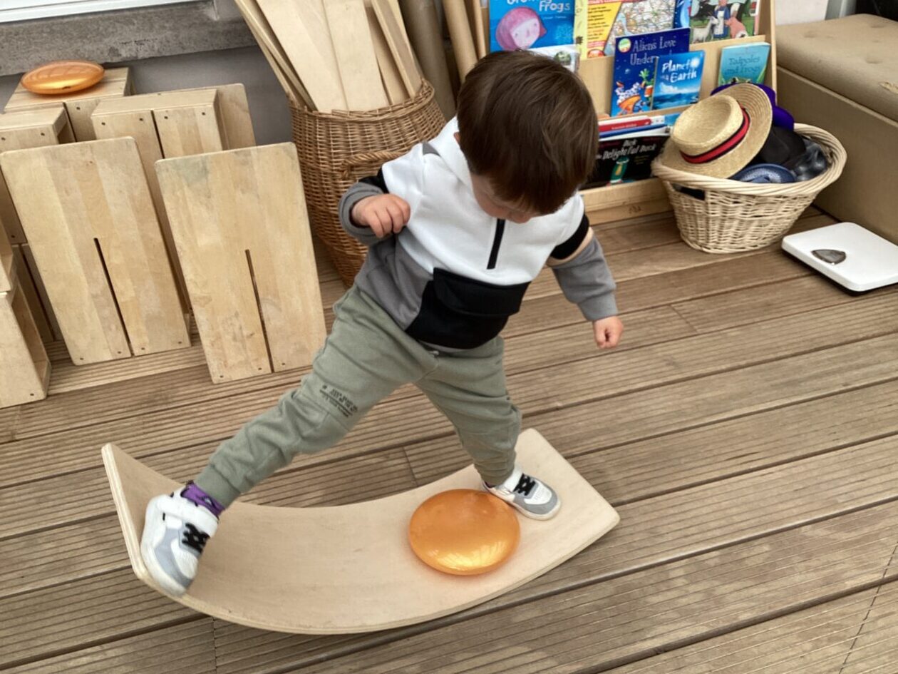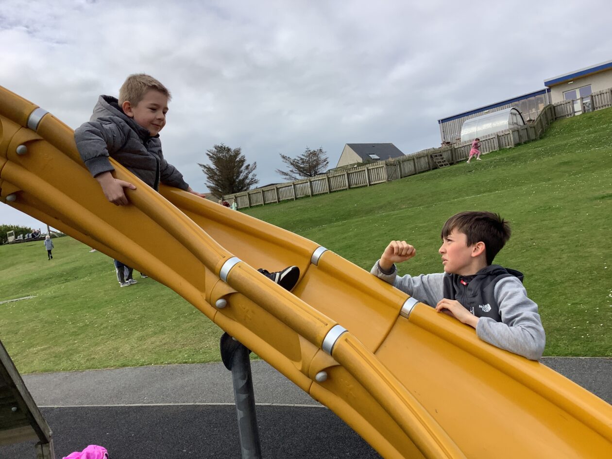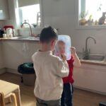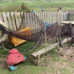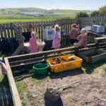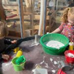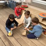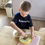 The bairns have been experimenting with different ways to slide down the steep hill in the garden. They have used cardboard, cushions, carpet tiles and slithery breeks! We have also seen lots of engagement with water play and managed to get the solar fountain working as the sun made a bit of a reappearance. We headed to the playpark one afternoon too and the bairns played chasing games, spun on the swings, tried to walk up the slide and got wobbly as jelly on a plate.