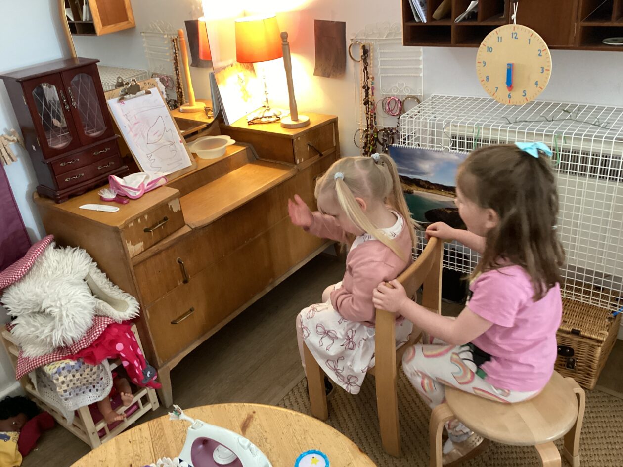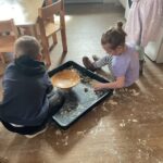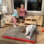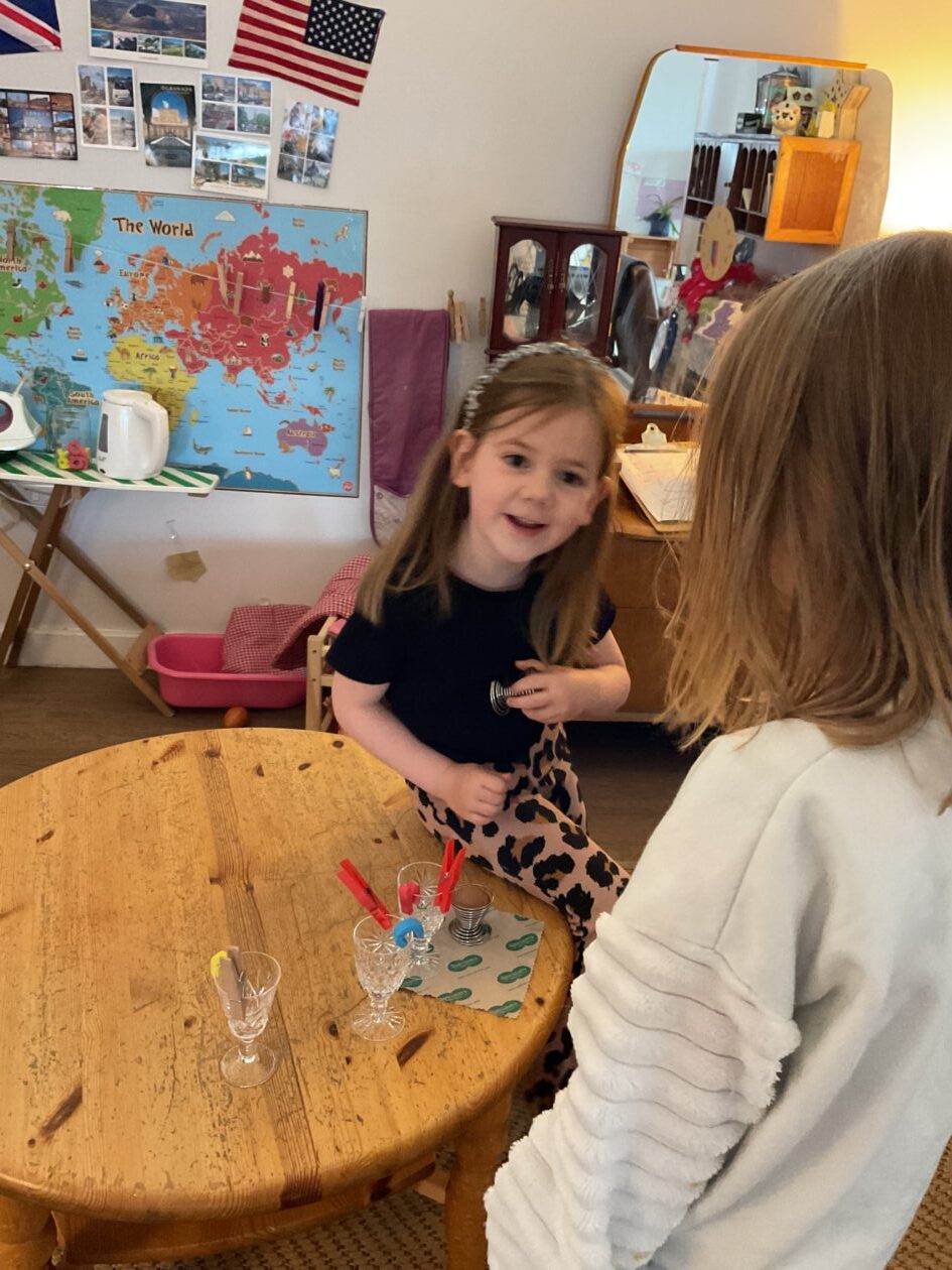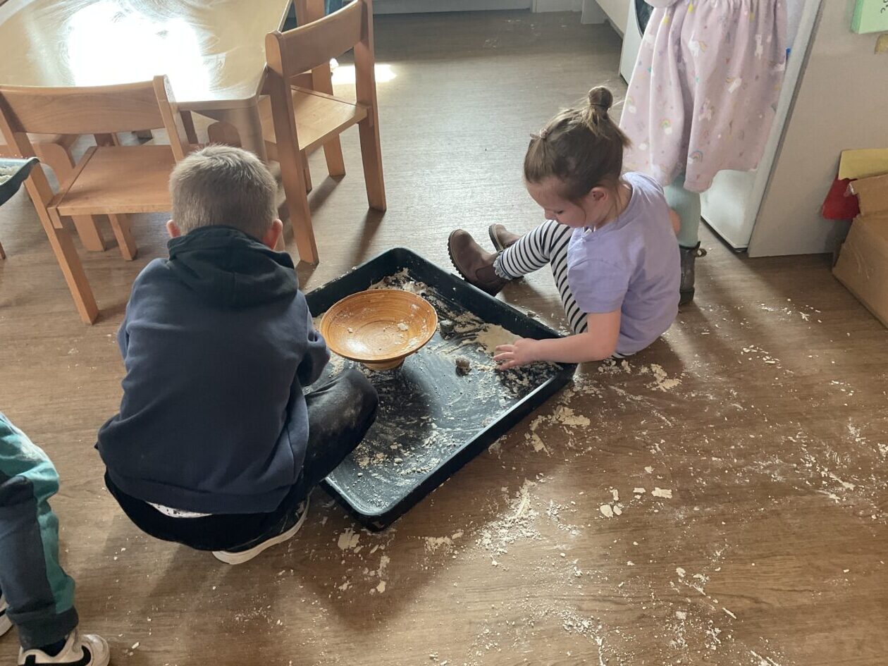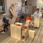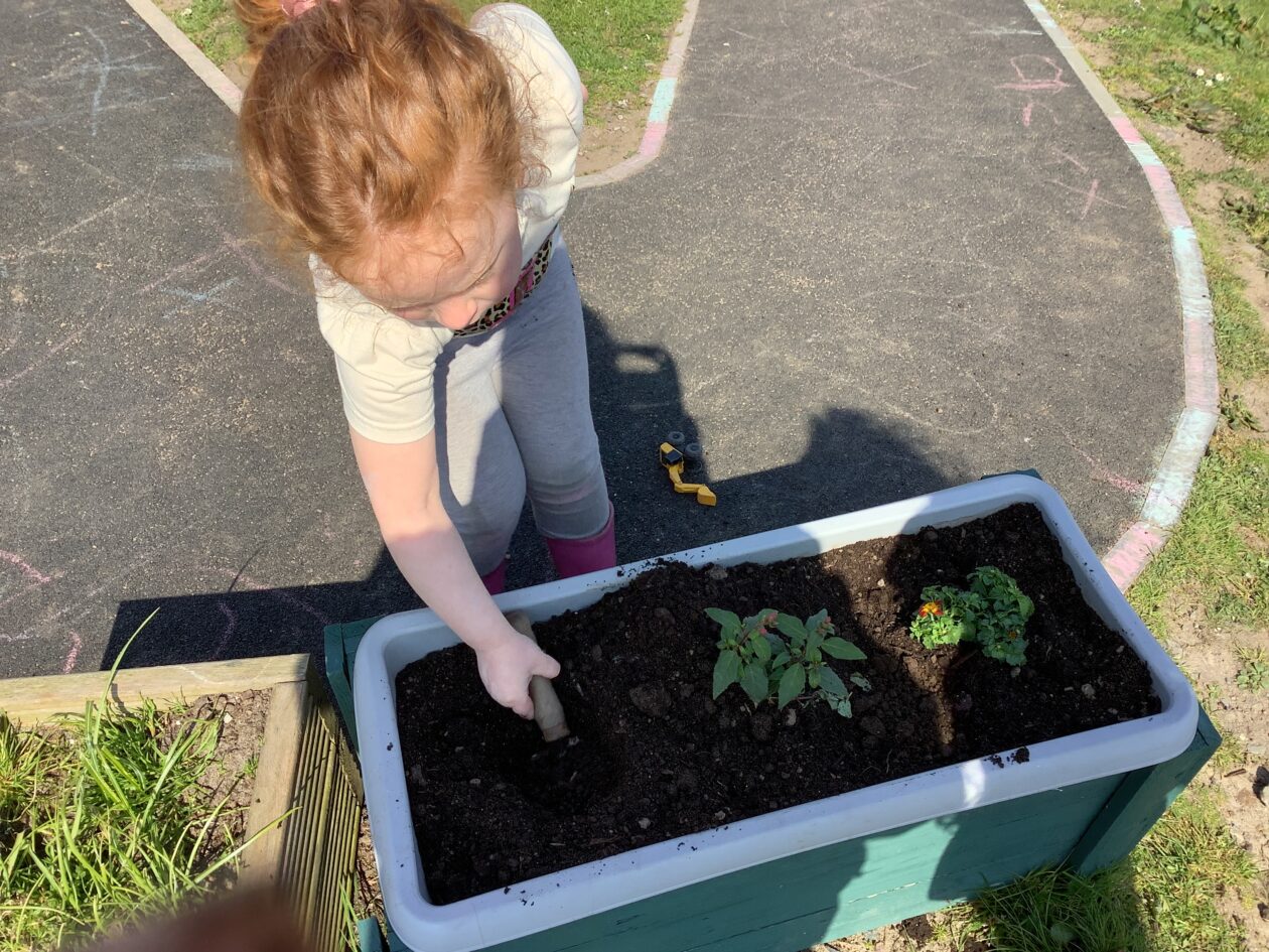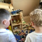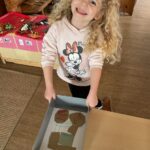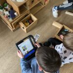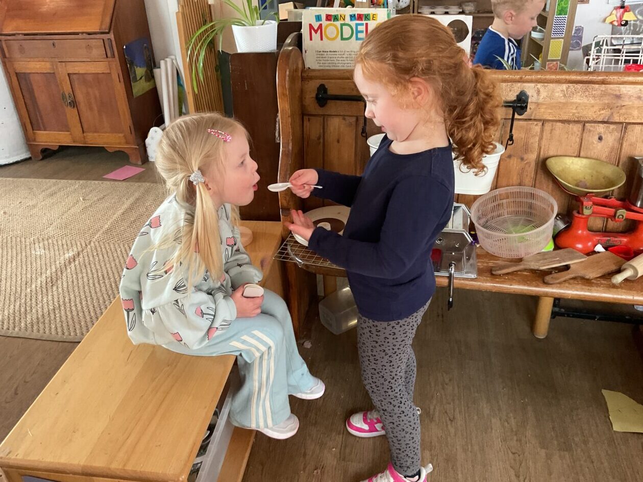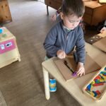 The bairns have been experimenting with different ways to slide down the steep hill in the garden. They have used cardboard, cushions, carpet tiles and slithery breeks! We have also seen lots of engagement with water play and managed to get the solar fountain working as the sun made a bit of a reappearance. We headed to the playpark one afternoon too and the bairns played chasing games, spun on the swings, tried to walk up the slide and got wobbly as jelly on a plate.
