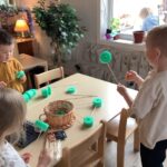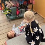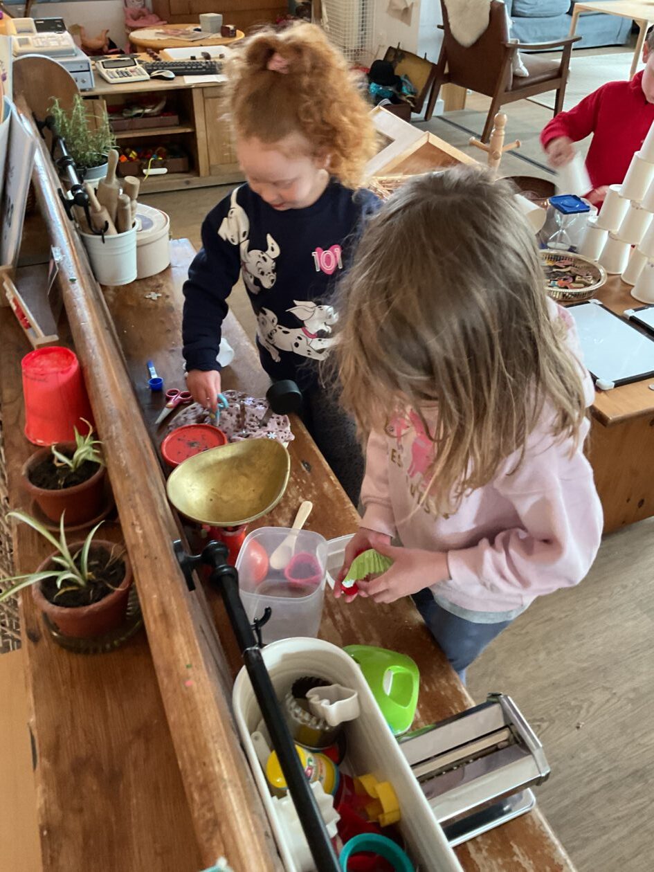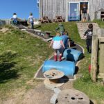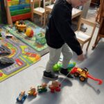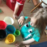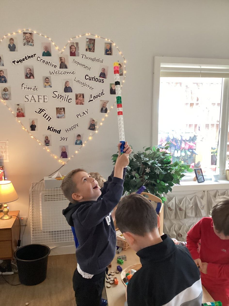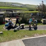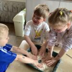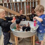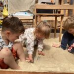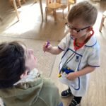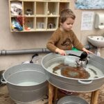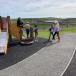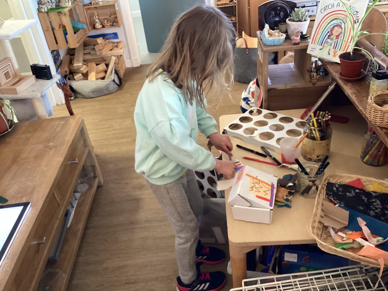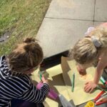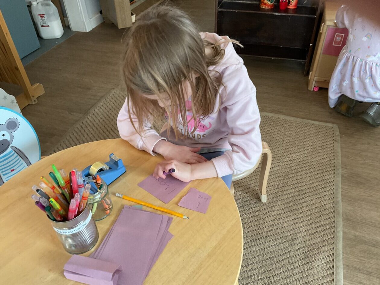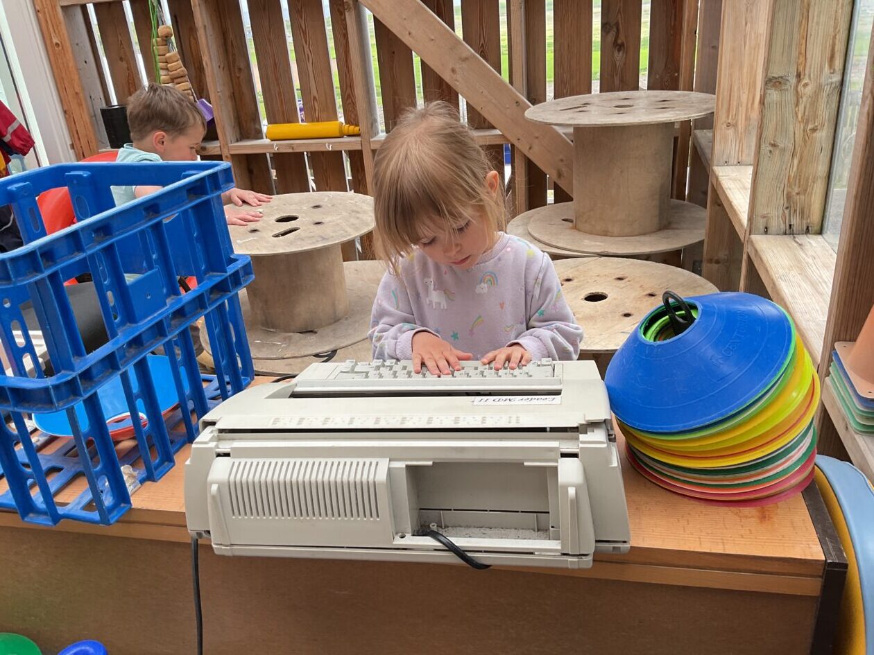 The bairns have been experimenting with different ways to slide down the steep hill in the garden. They have used cardboard, cushions, carpet tiles and slithery breeks! We have also seen lots of engagement with water play and managed to get the solar fountain working as the sun made a bit of a reappearance. We headed to the playpark one afternoon too and the bairns played chasing games, spun on the swings, tried to walk up the slide and got wobbly as jelly on a plate.