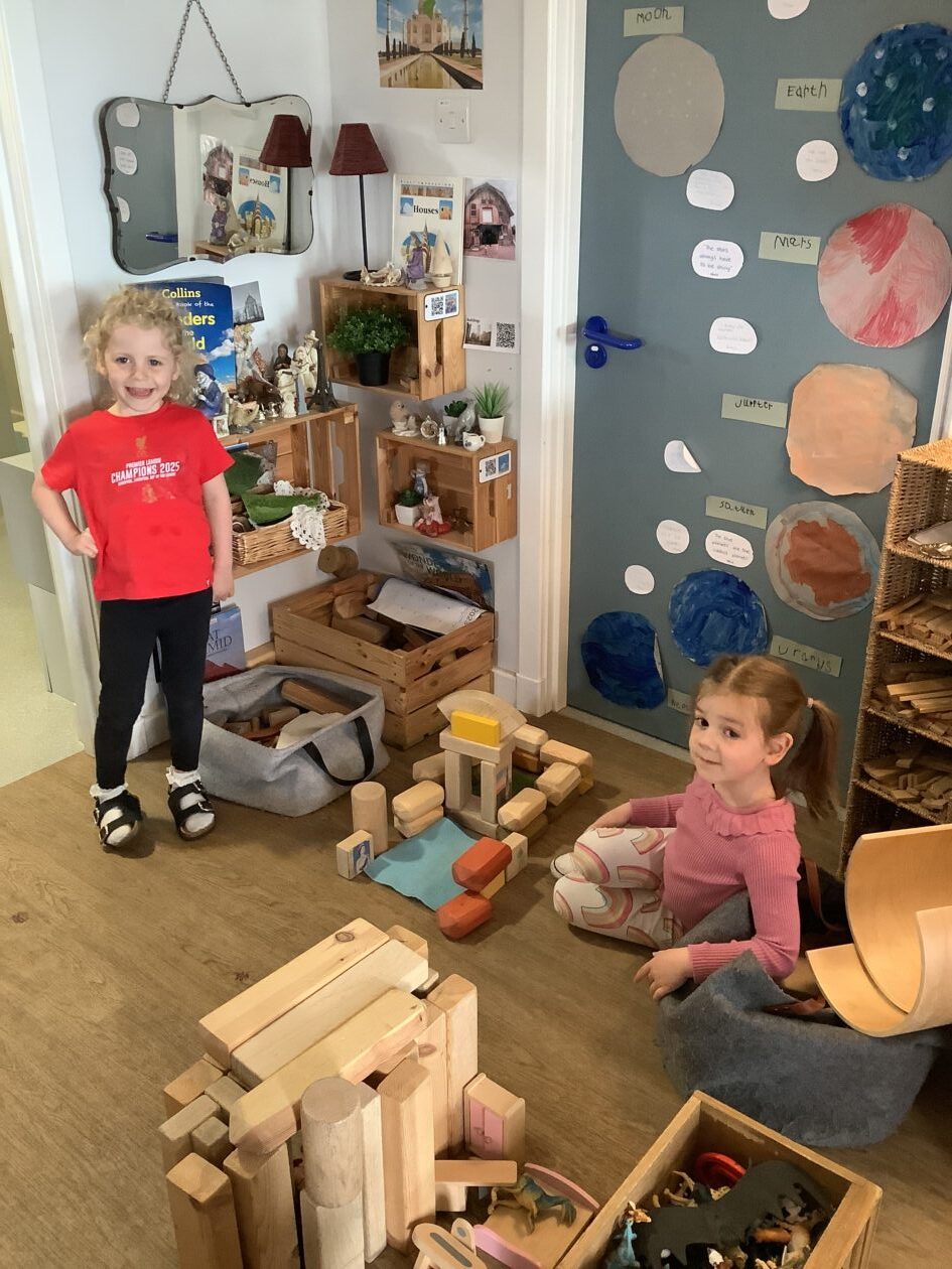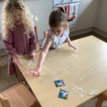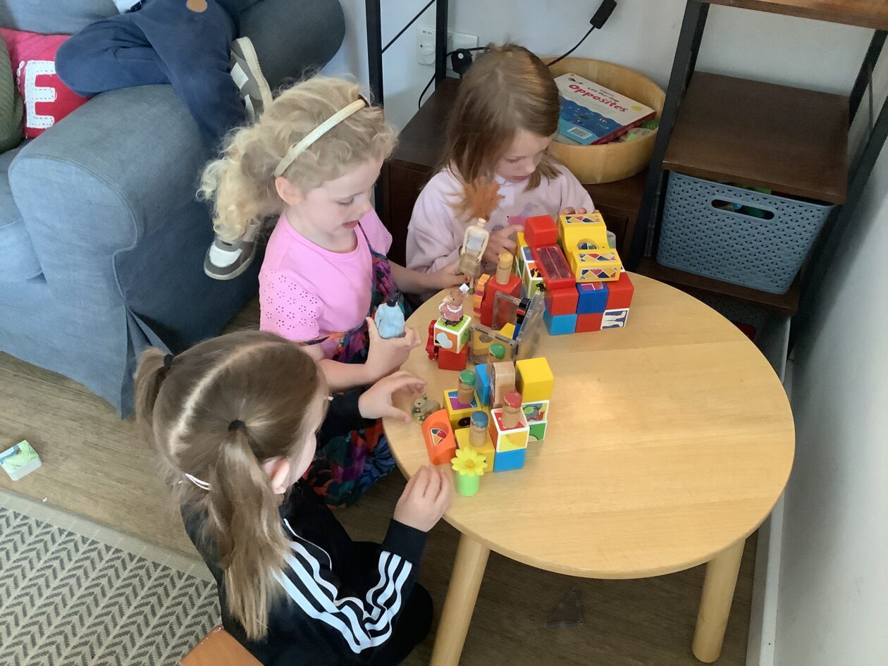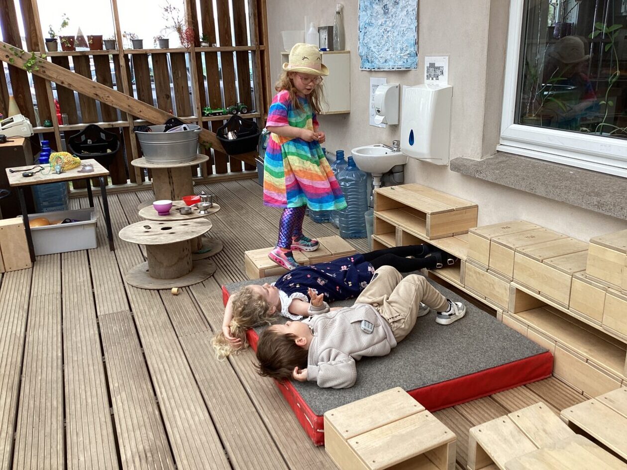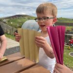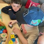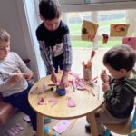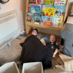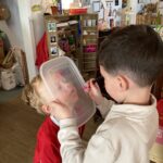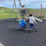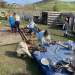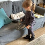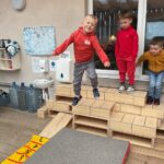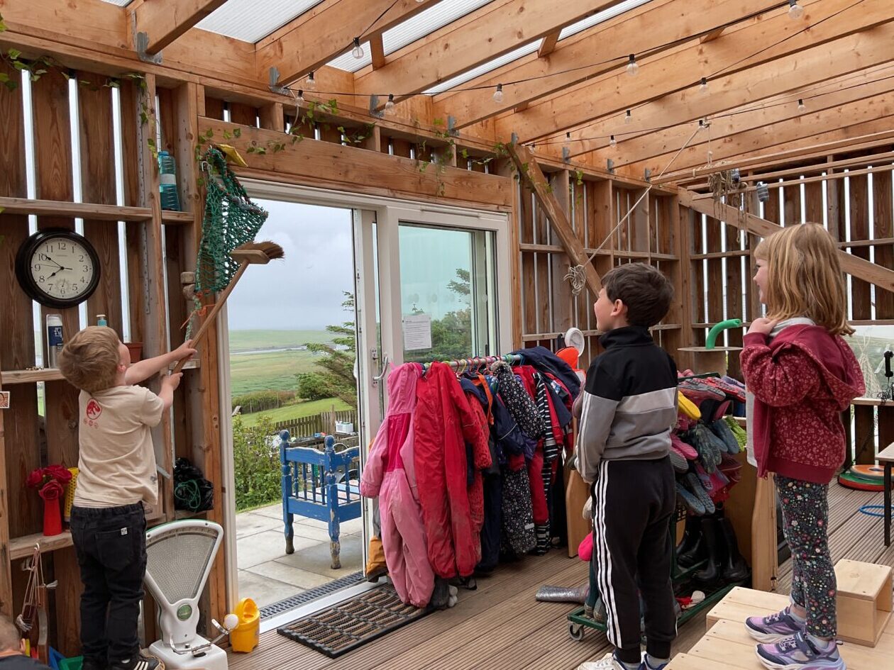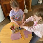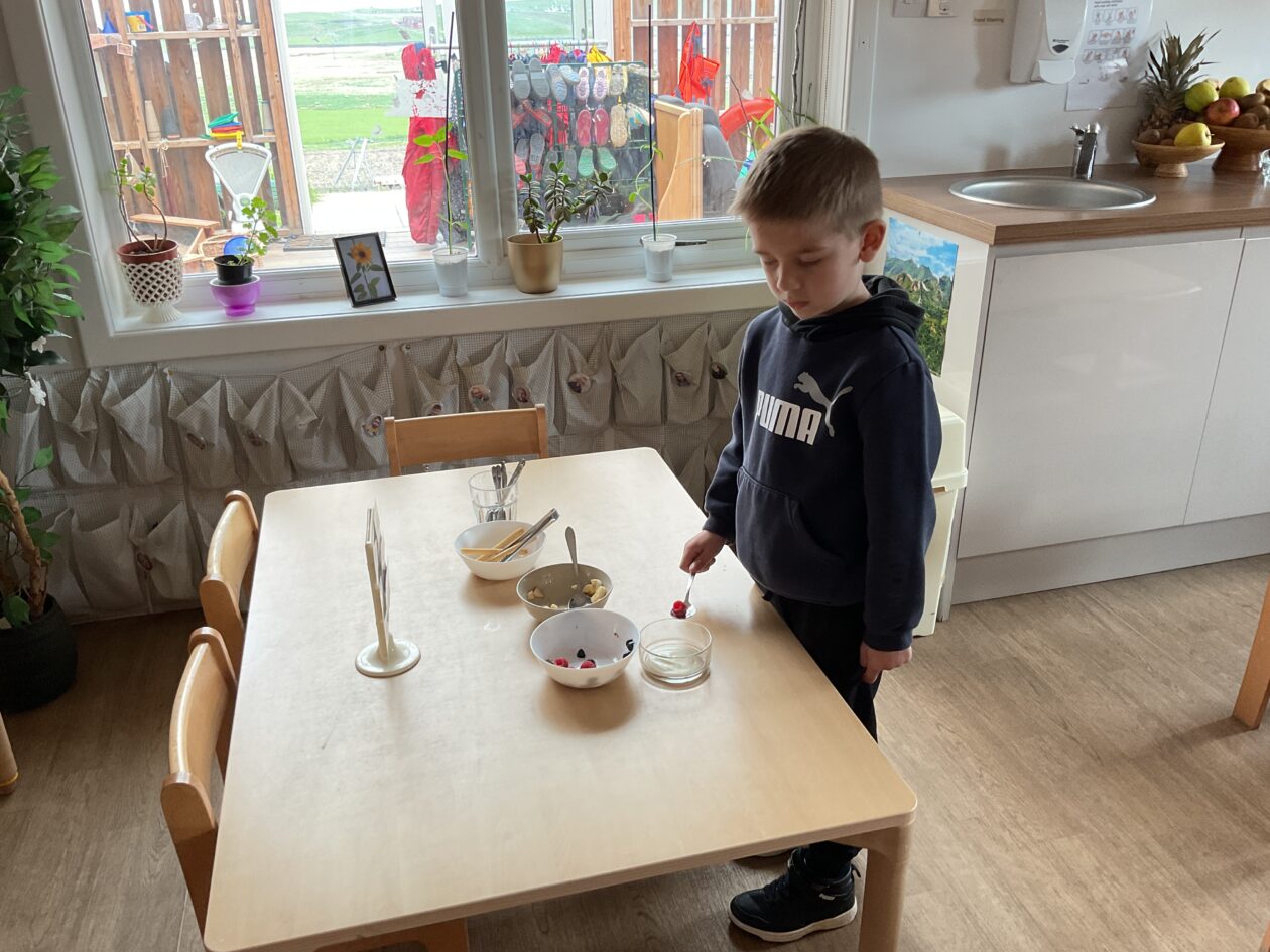 The bairns have been experimenting with different ways to slide down the steep hill in the garden. They have used cardboard, cushions, carpet tiles and slithery breeks! We have also seen lots of engagement with water play and managed to get the solar fountain working as the sun made a bit of a reappearance. We headed to the playpark one afternoon too and the bairns played chasing games, spun on the swings, tried to walk up the slide and got wobbly as jelly on a plate.