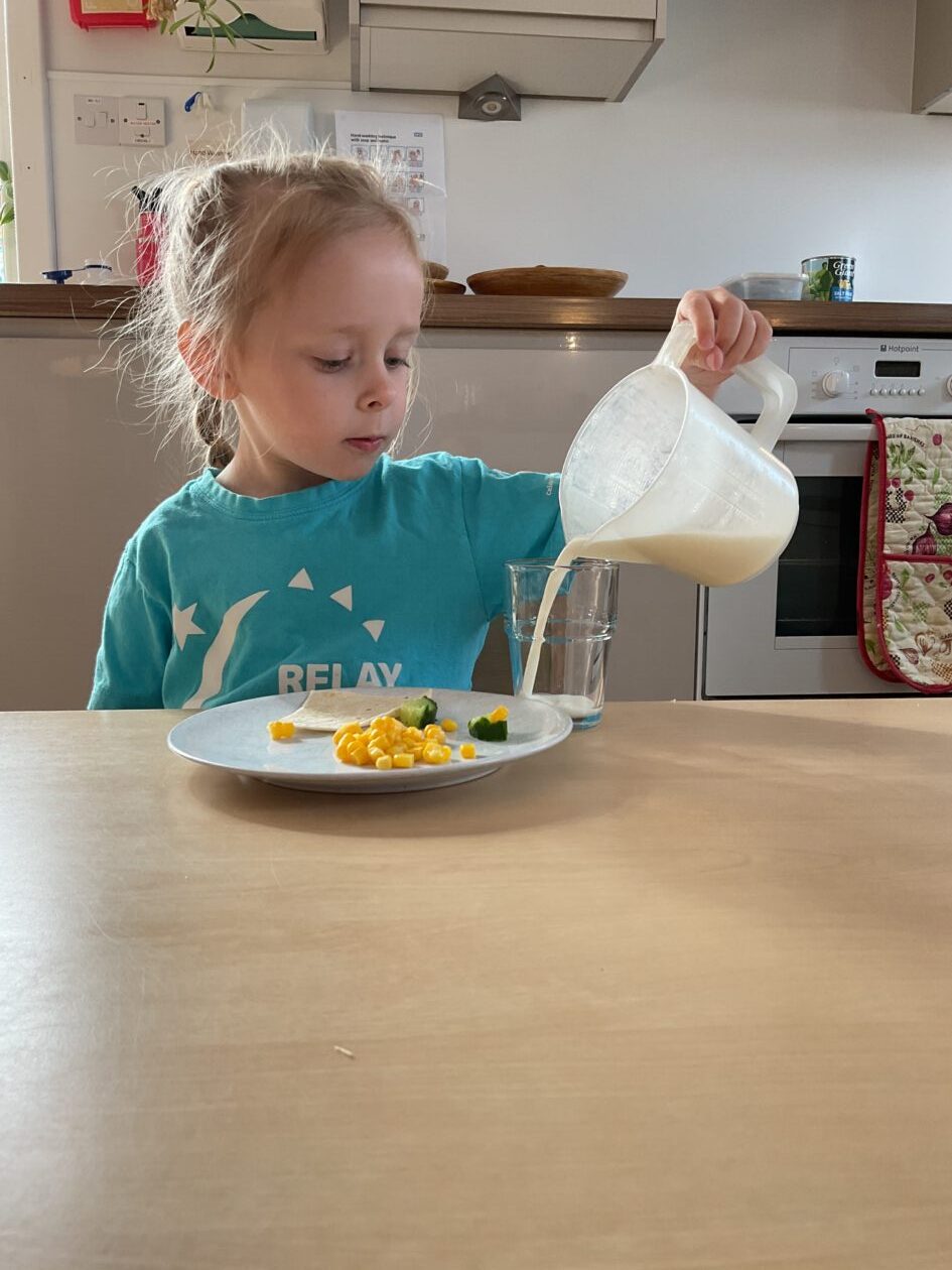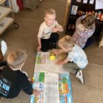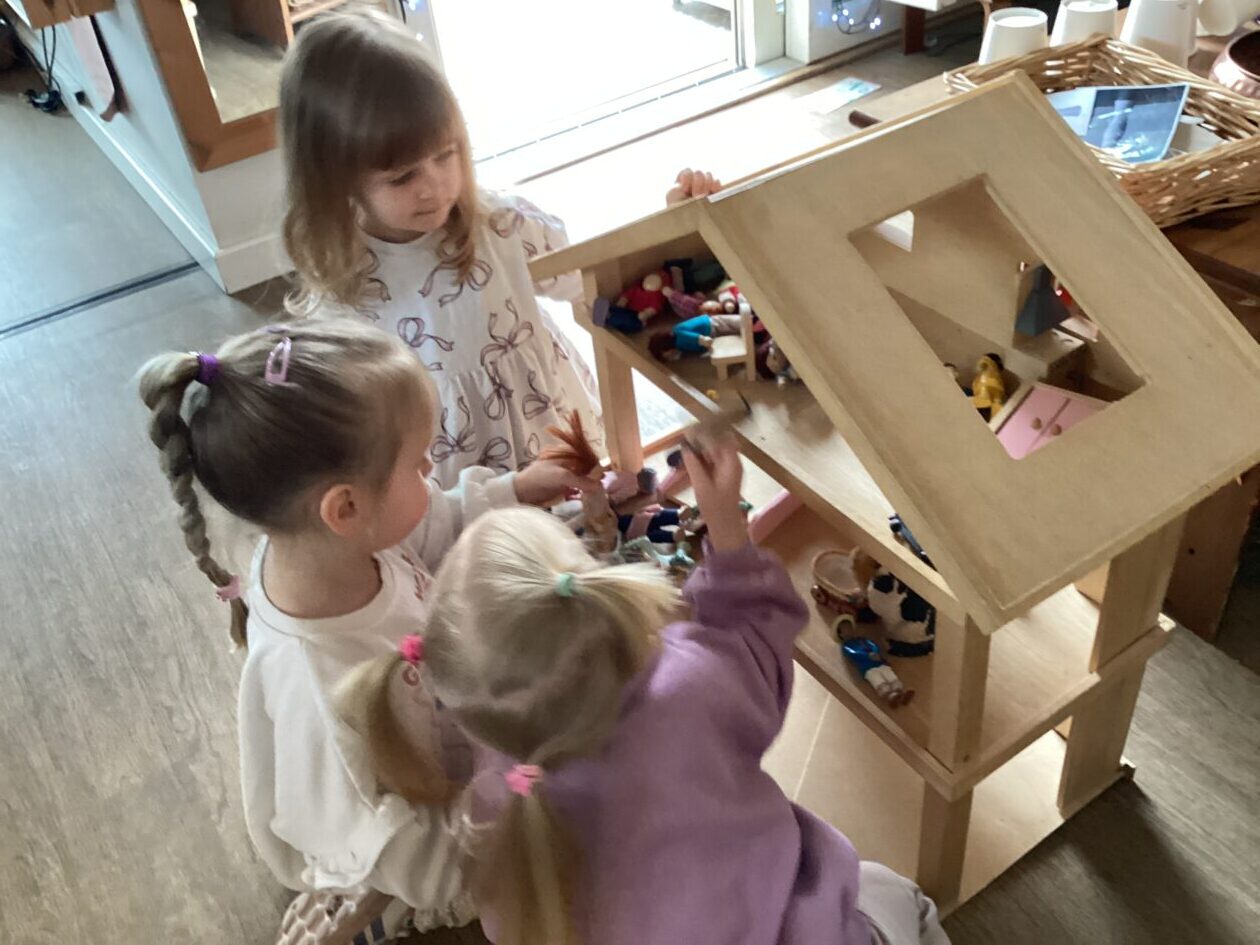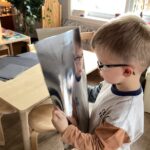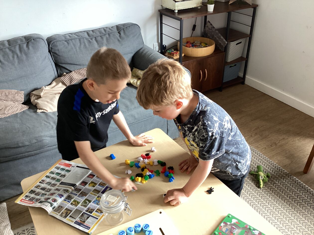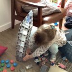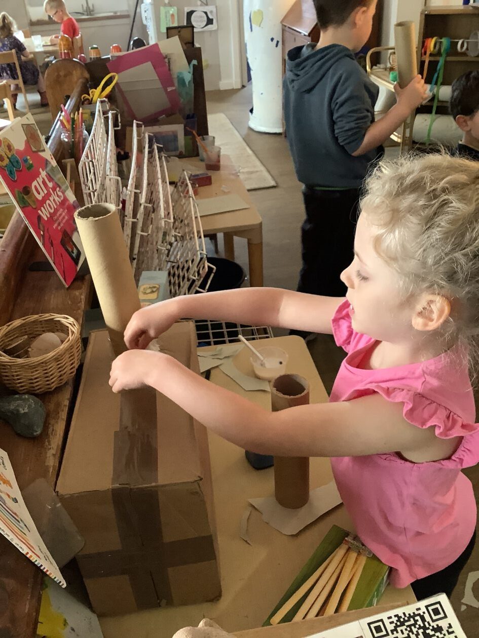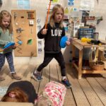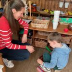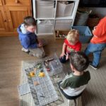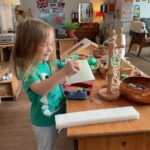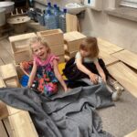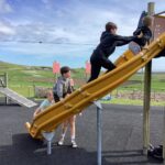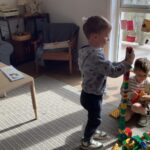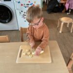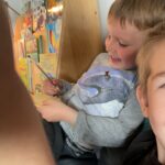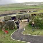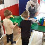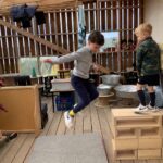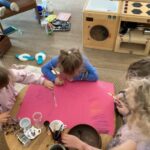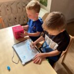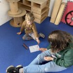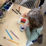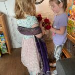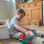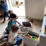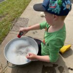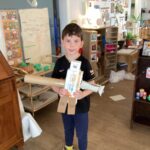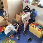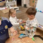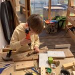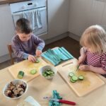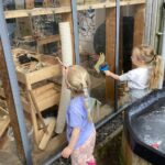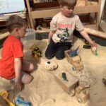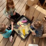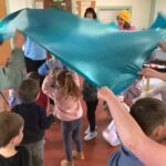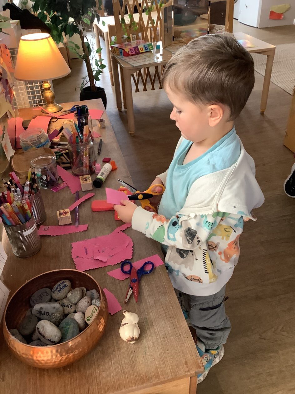 The bairns have been experimenting with different ways to slide down the steep hill in the garden. They have used cardboard, cushions, carpet tiles and slithery breeks! We have also seen lots of engagement with water play and managed to get the solar fountain working as the sun made a bit of a reappearance. We headed to the playpark one afternoon too and the bairns played chasing games, spun on the swings, tried to walk up the slide and got wobbly as jelly on a plate.