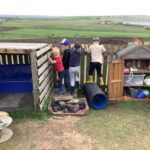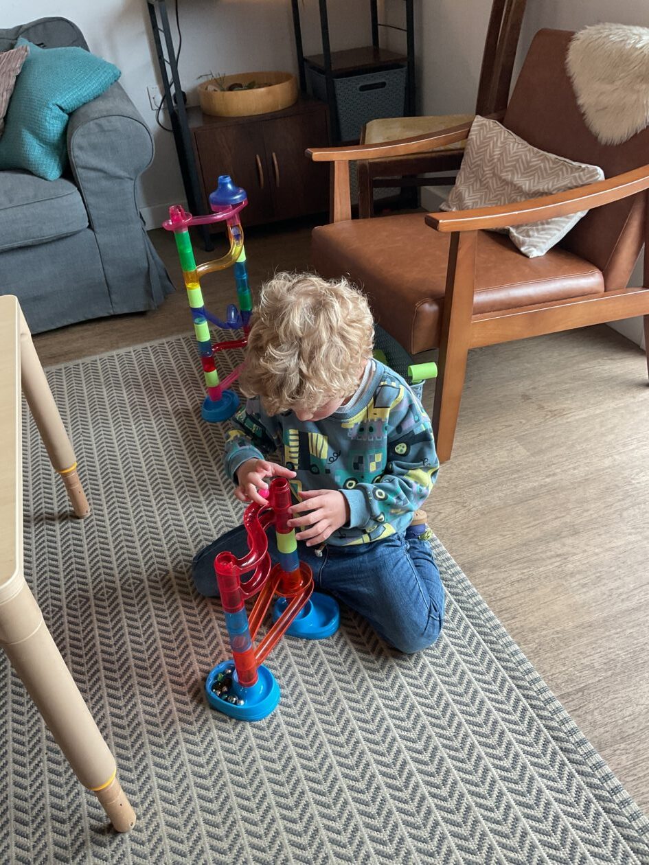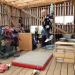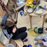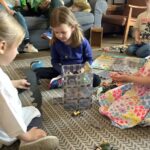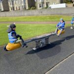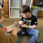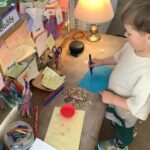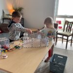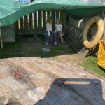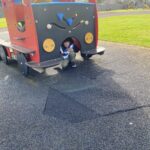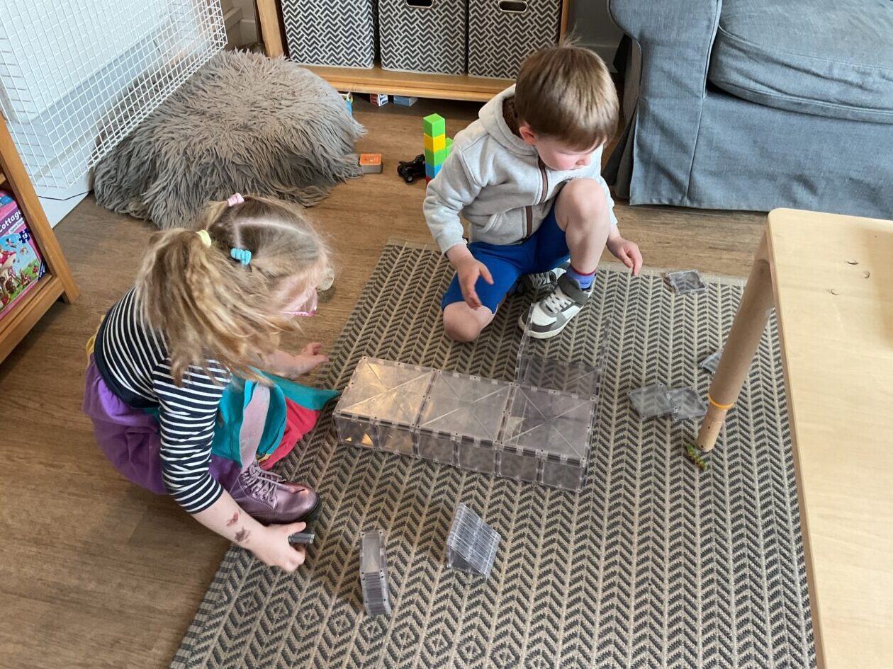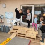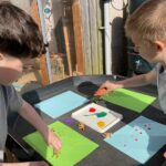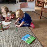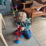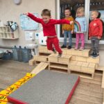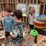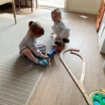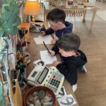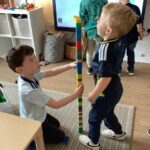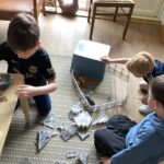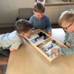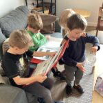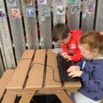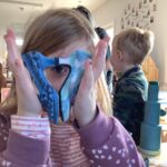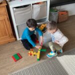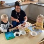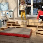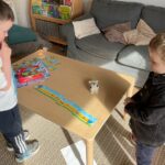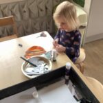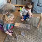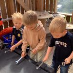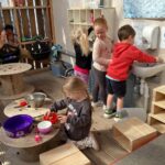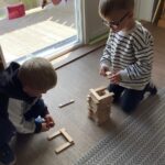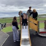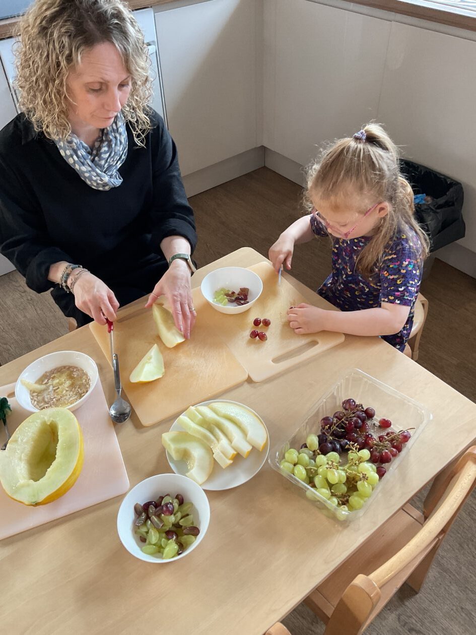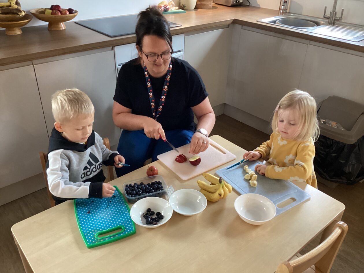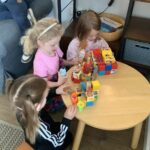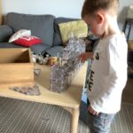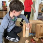 The bairns have been experimenting with different ways to slide down the steep hill in the garden. They have used cardboard, cushions, carpet tiles and slithery breeks! We have also seen lots of engagement with water play and managed to get the solar fountain working as the sun made a bit of a reappearance. We headed to the playpark one afternoon too and the bairns played chasing games, spun on the swings, tried to walk up the slide and got wobbly as jelly on a plate.