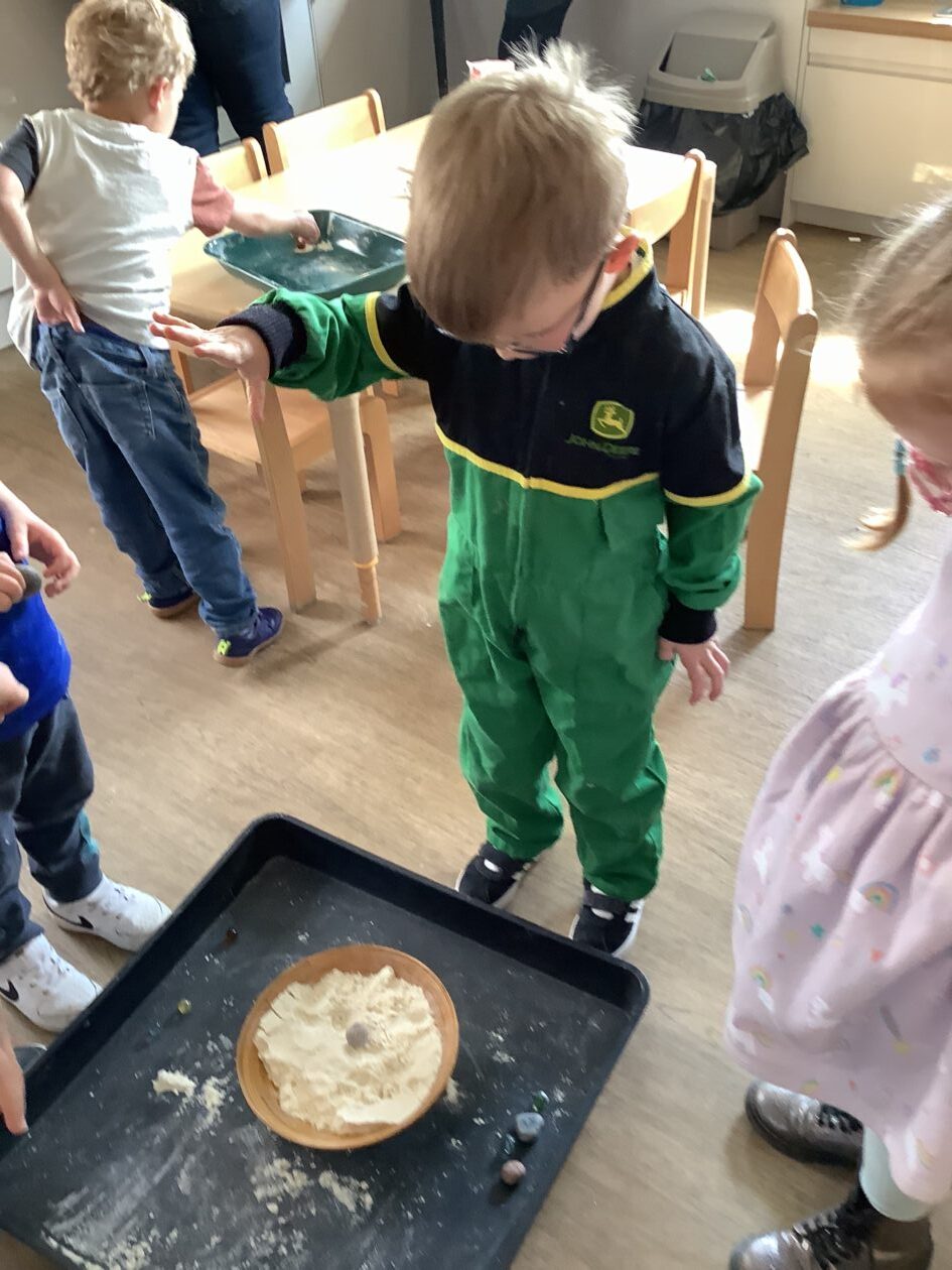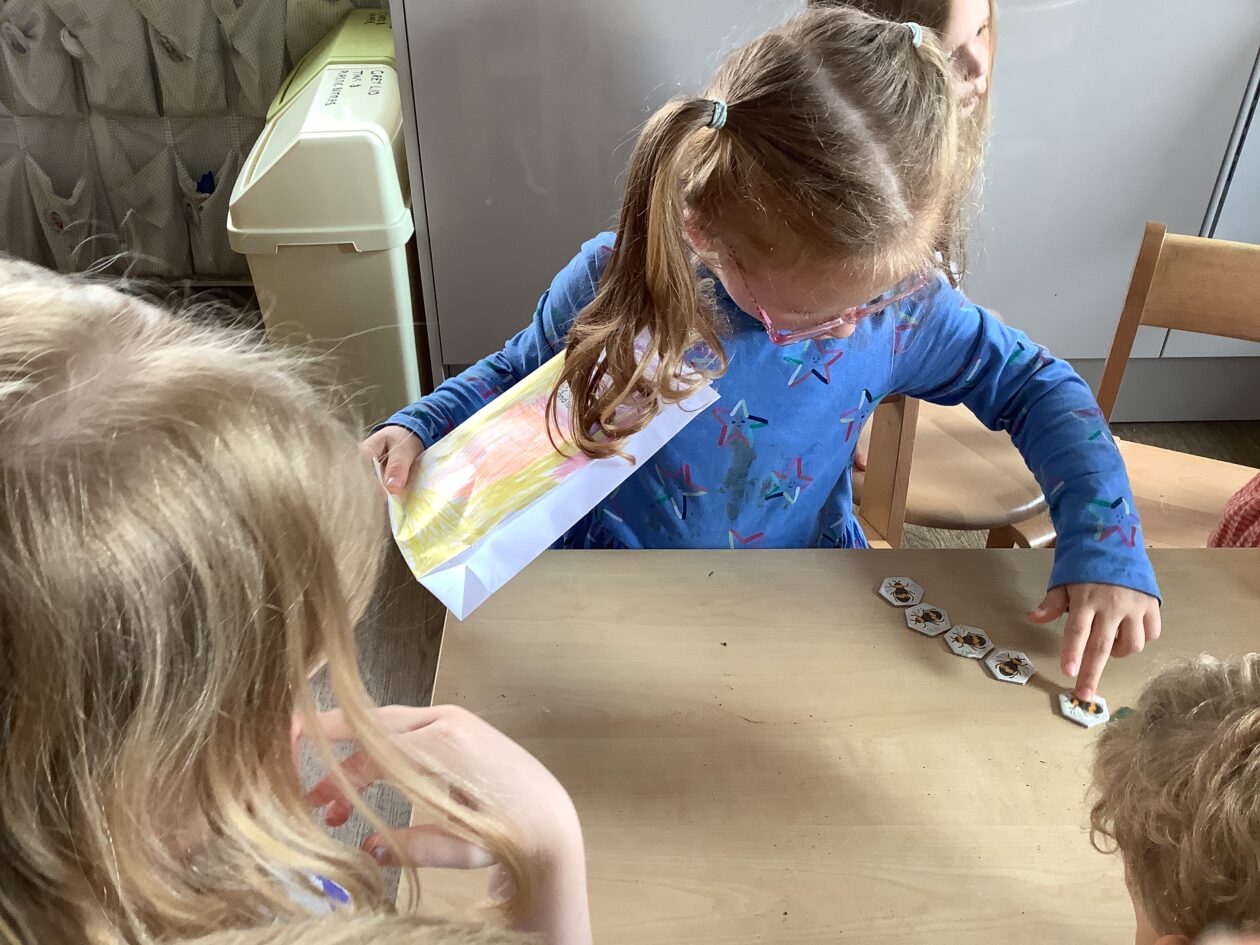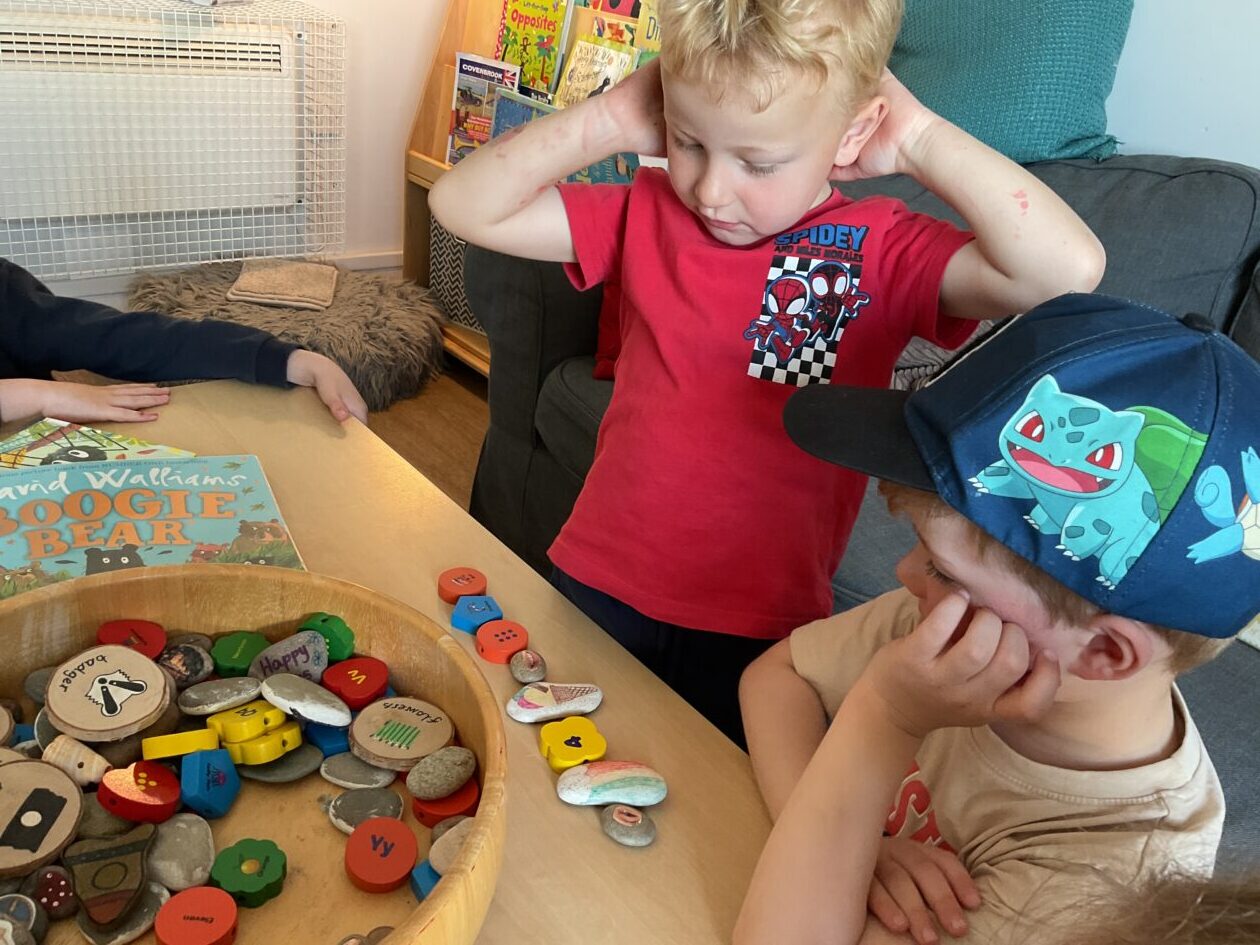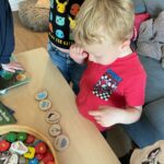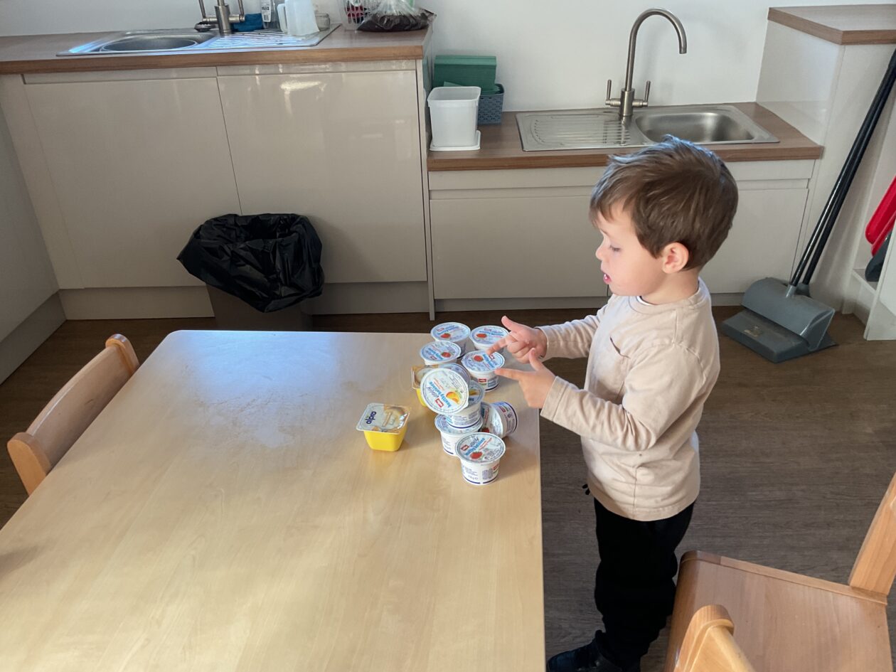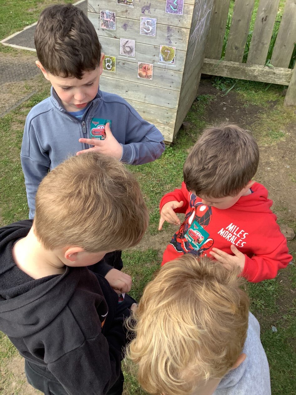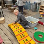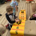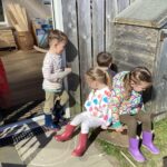 The suspense is over! Out of the 150 bees that were hidden all around the setting, there were 131 that were found during the stay and play. We have found a few since but there are still some that have stayed hidden. The bairns took turns counting out their bees and adding their number to the tally.