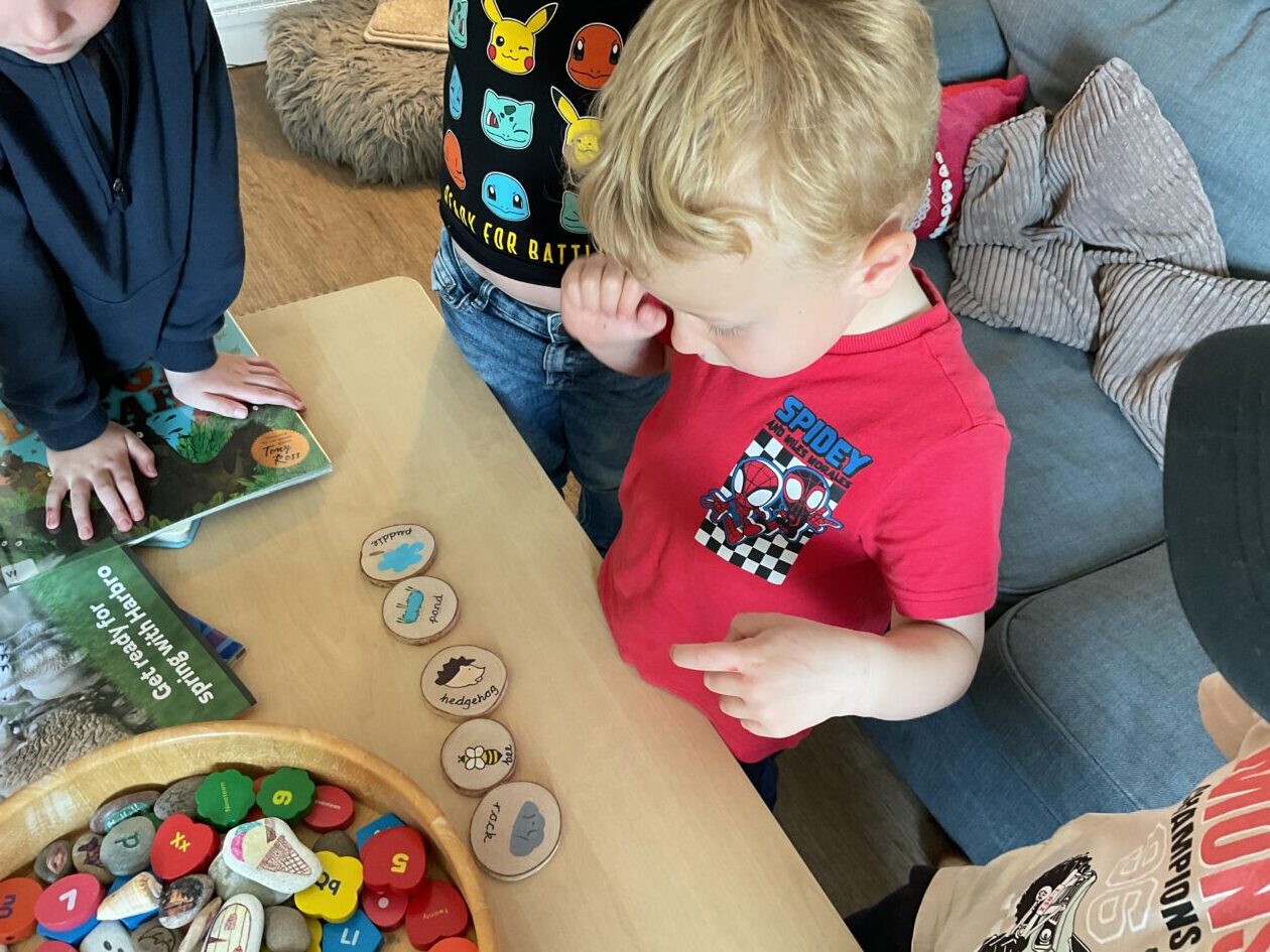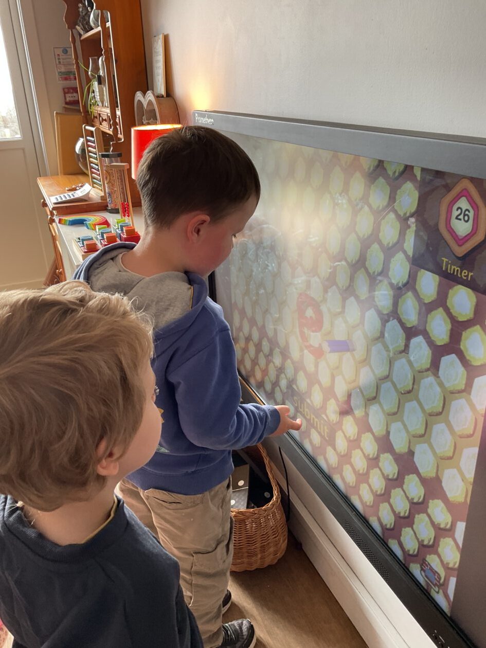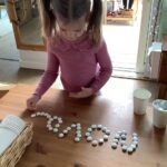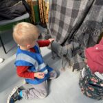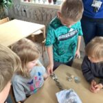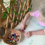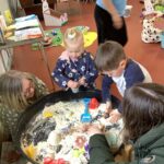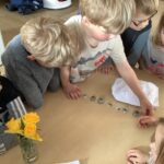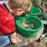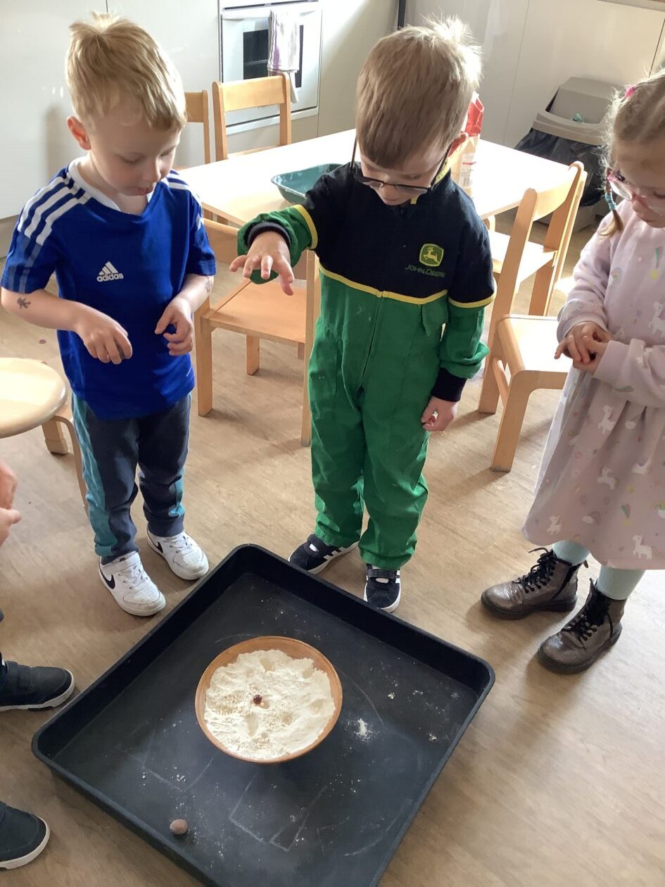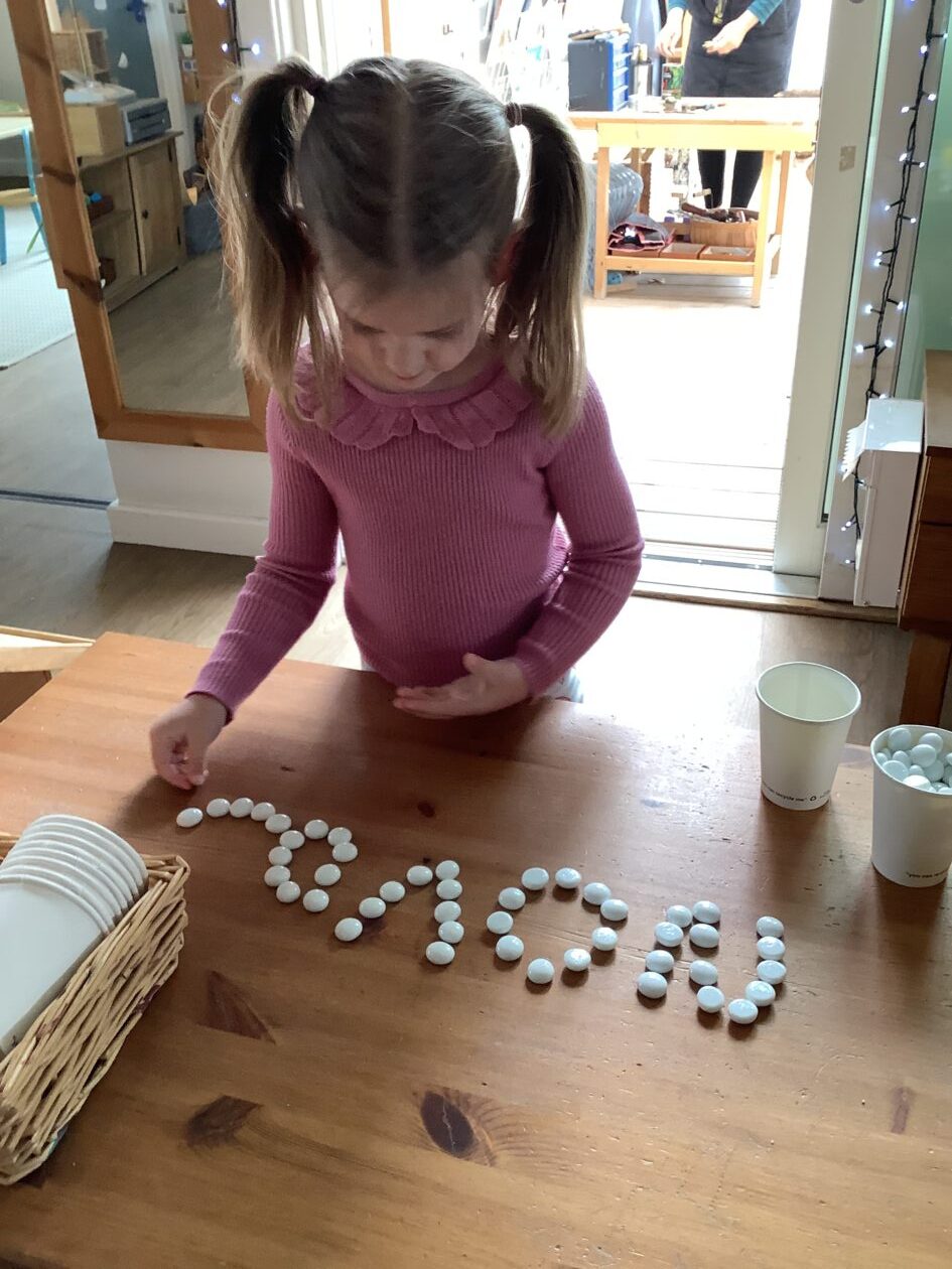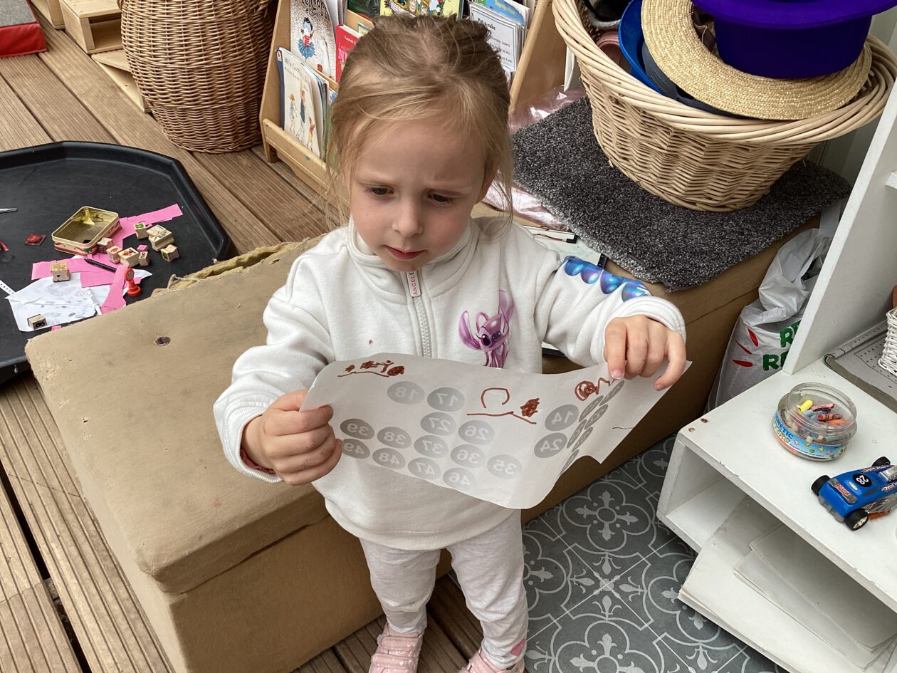 The suspense is over! Out of the 150 bees that were hidden all around the setting, there were 131 that were found during the stay and play. We have found a few since but there are still some that have stayed hidden. The bairns took turns counting out their bees and adding their number to the tally.