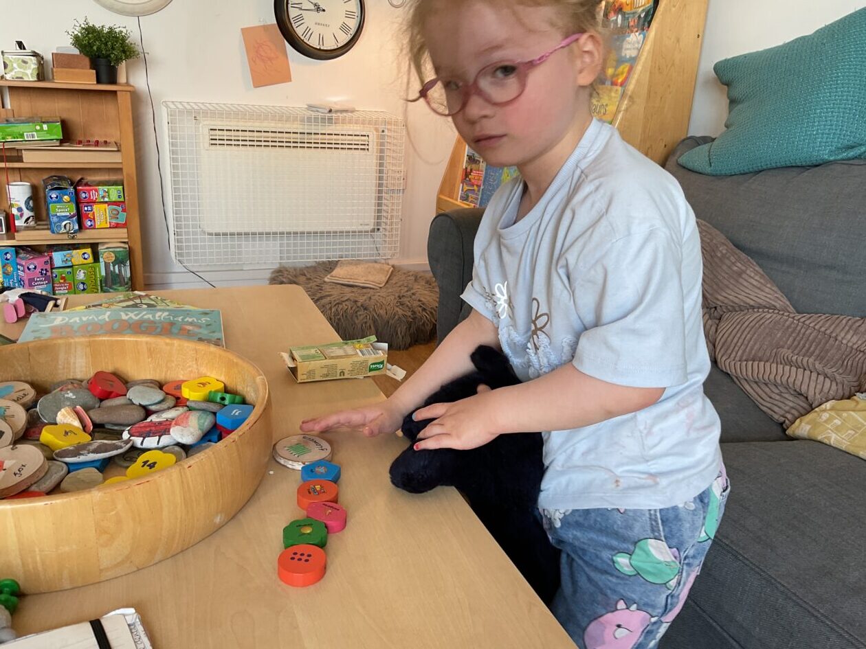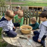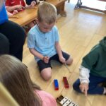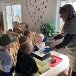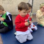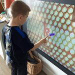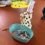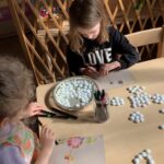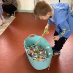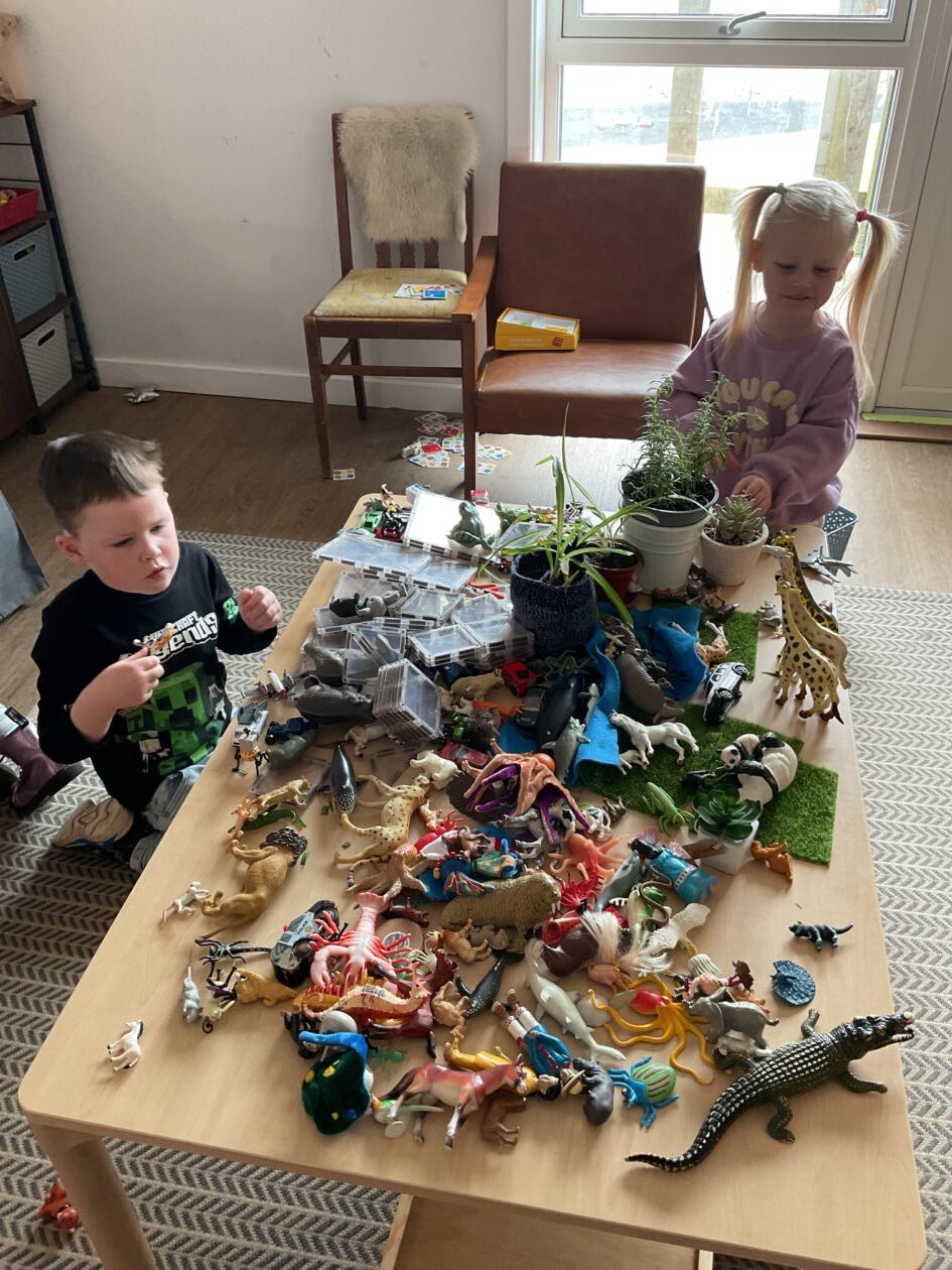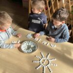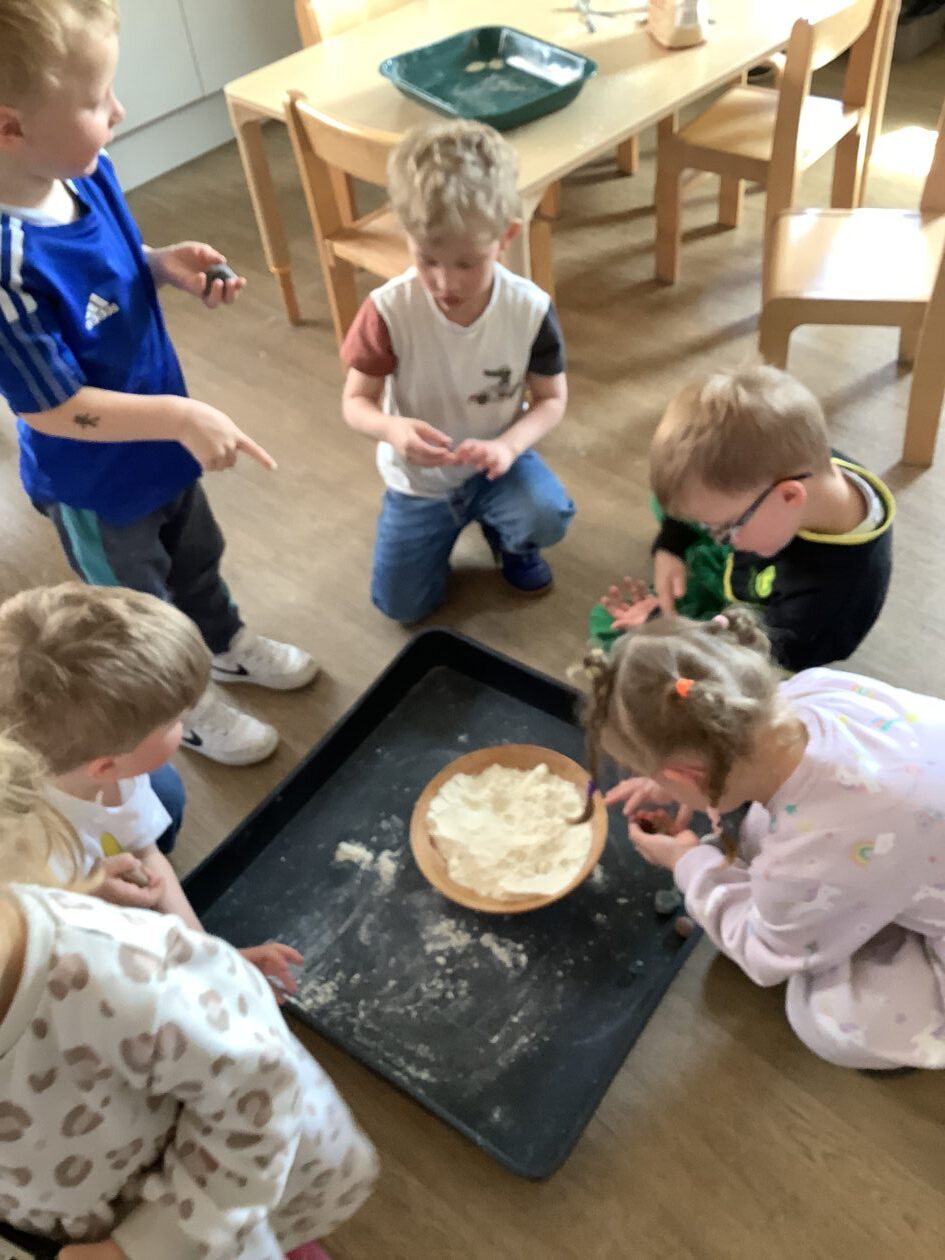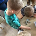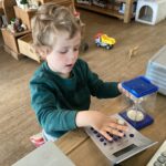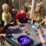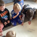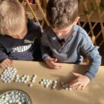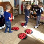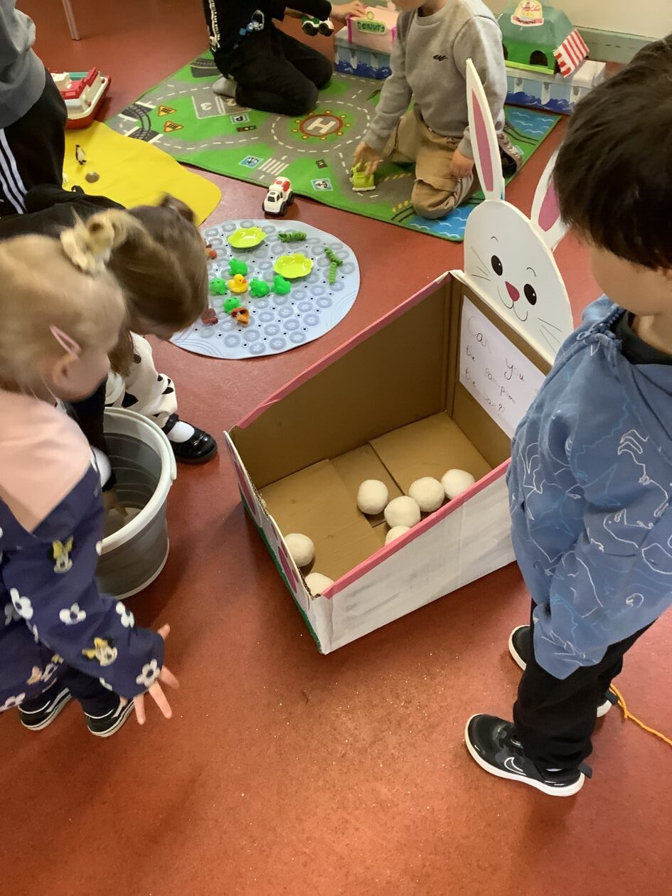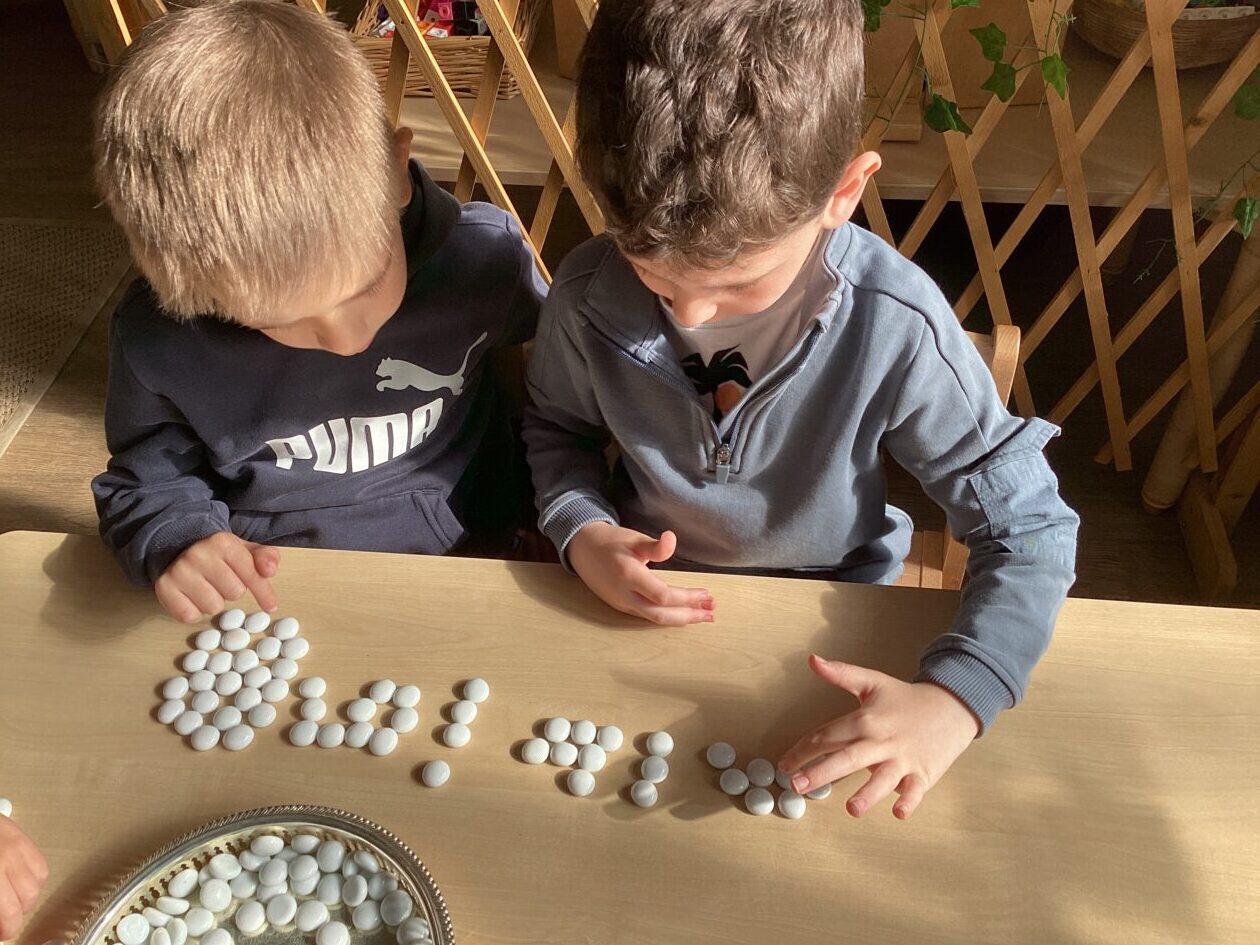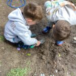 The suspense is over! Out of the 150 bees that were hidden all around the setting, there were 131 that were found during the stay and play. We have found a few since but there are still some that have stayed hidden. The bairns took turns counting out their bees and adding their number to the tally.