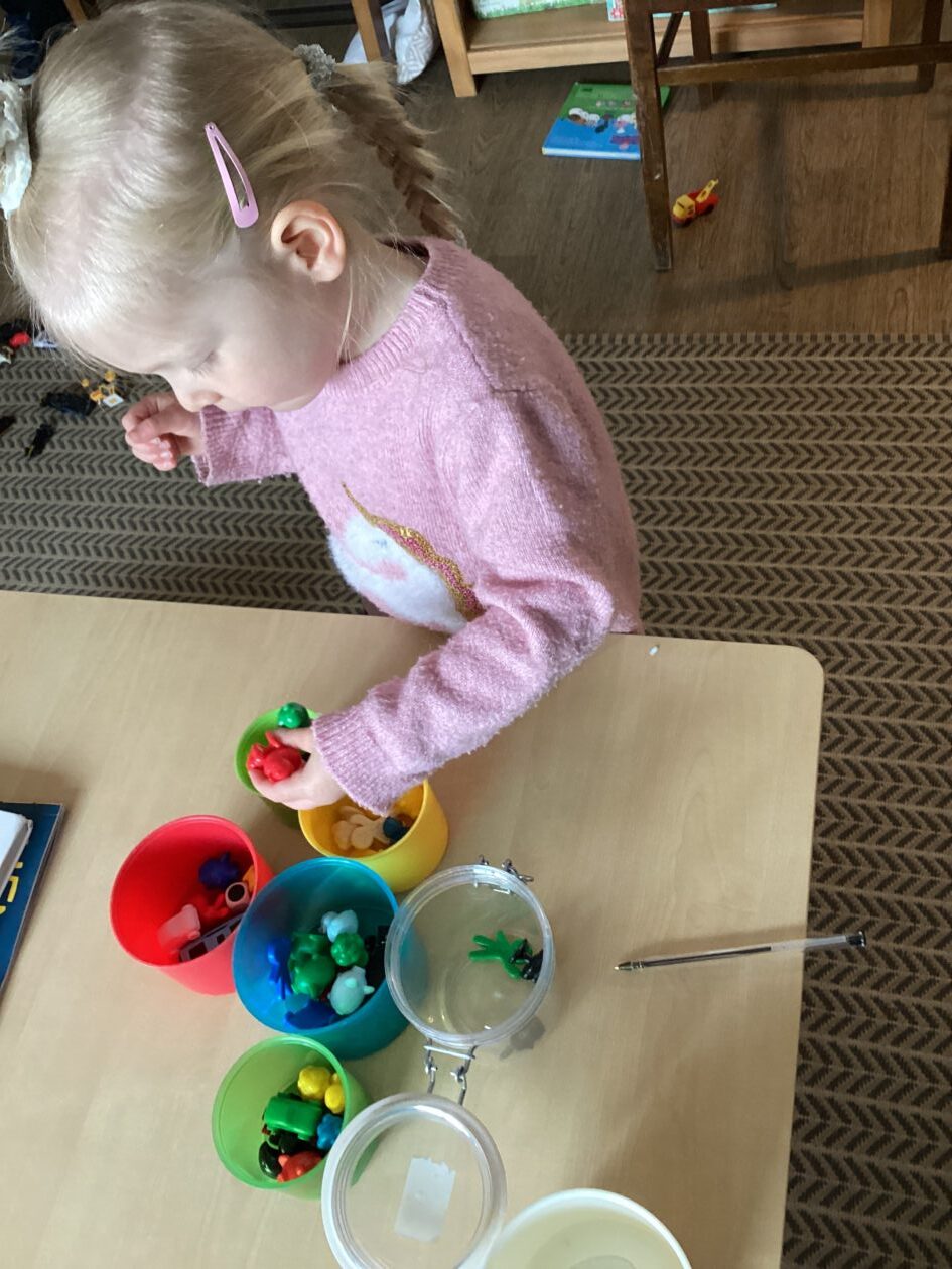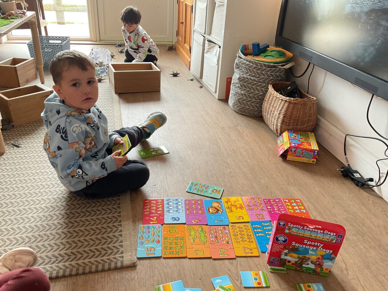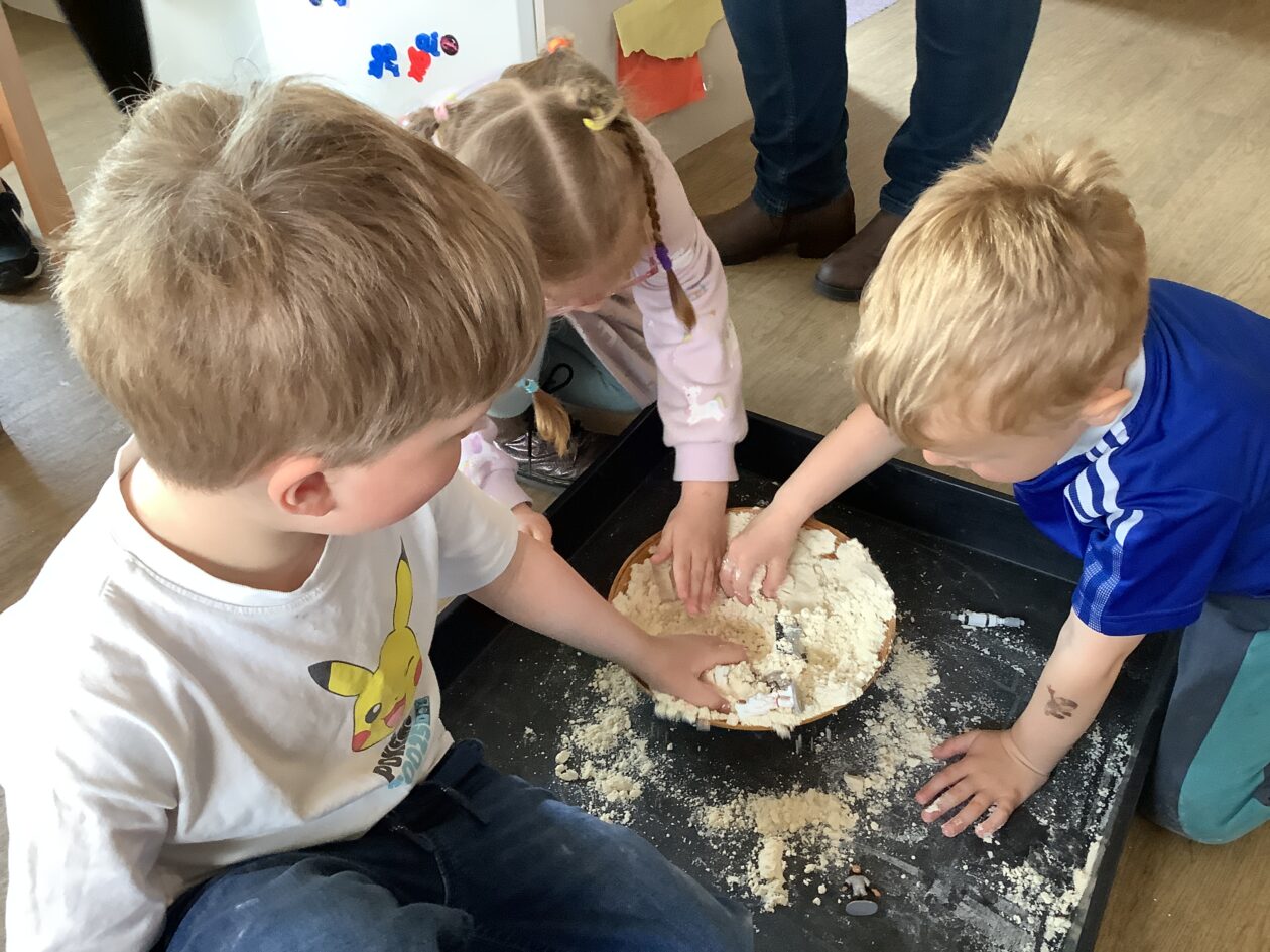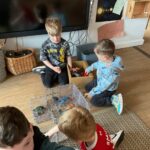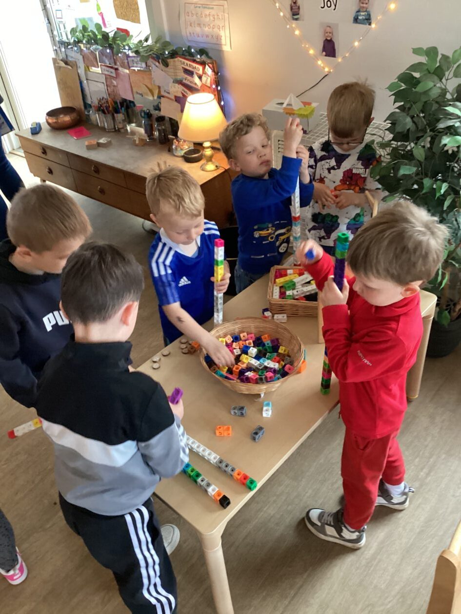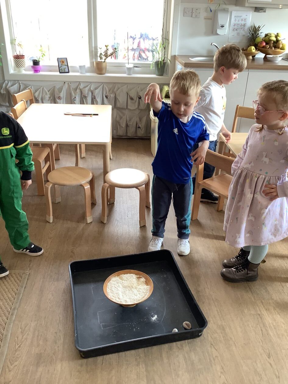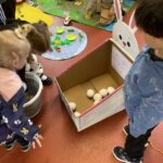 The suspense is over! Out of the 150 bees that were hidden all around the setting, there were 131 that were found during the stay and play. We have found a few since but there are still some that have stayed hidden. The bairns took turns counting out their bees and adding their number to the tally.