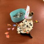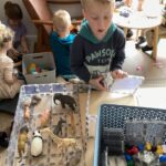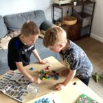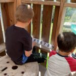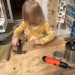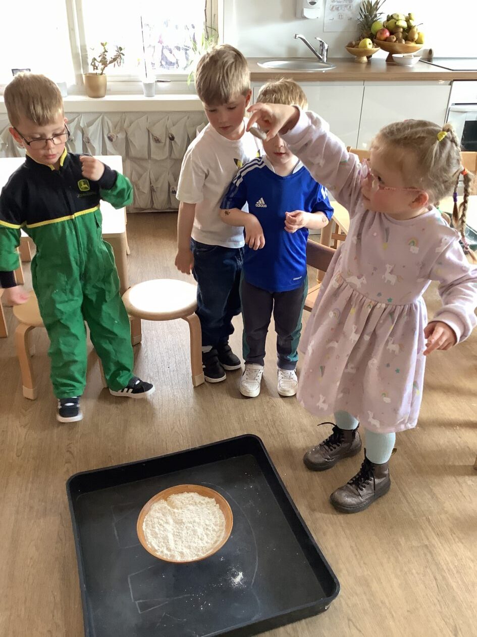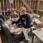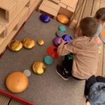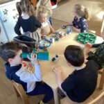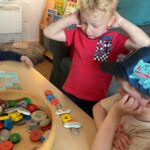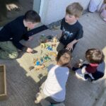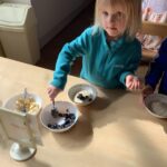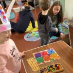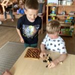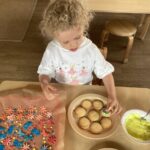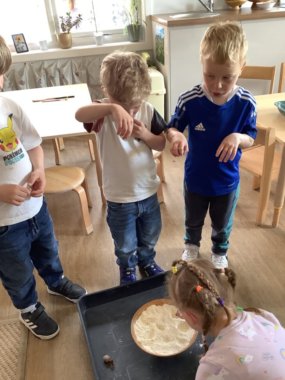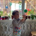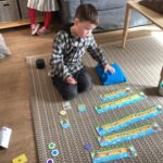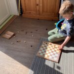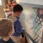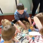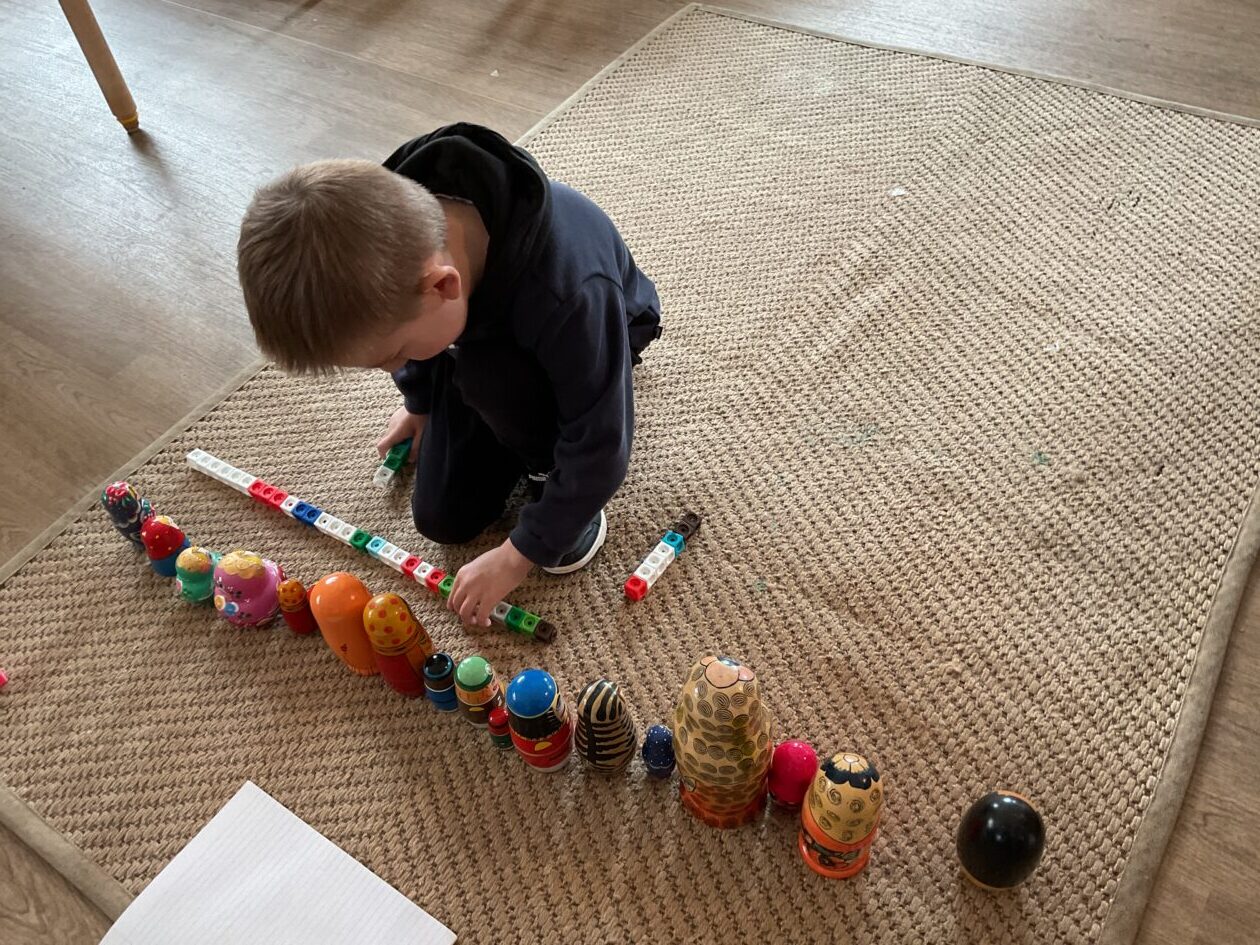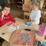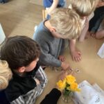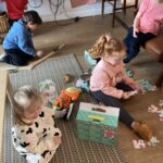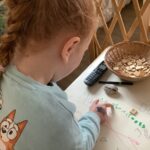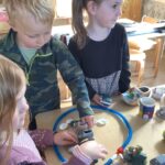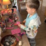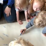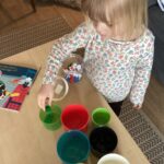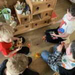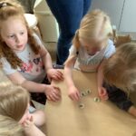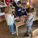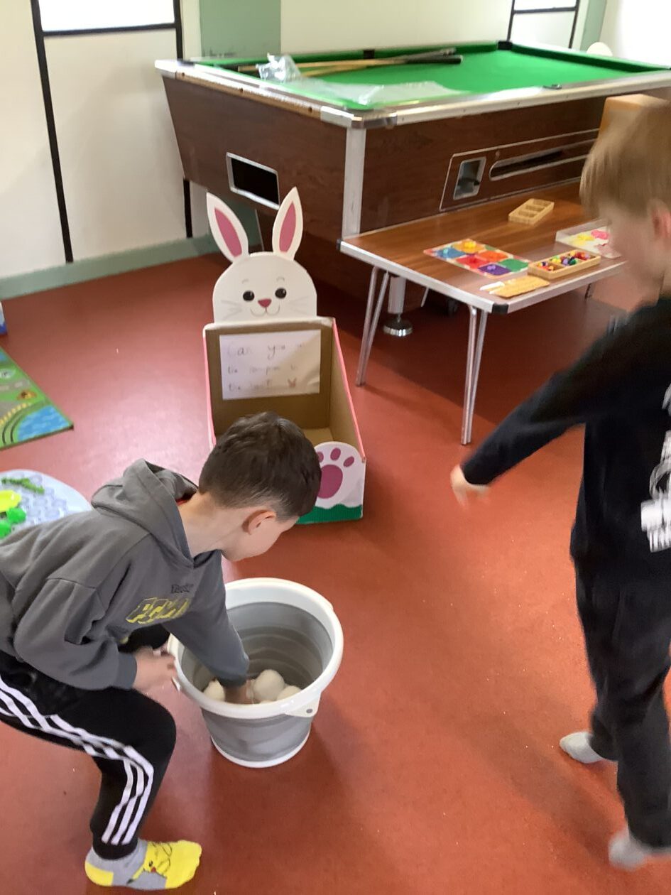 The suspense is over! Out of the 150 bees that were hidden all around the setting, there were 131 that were found during the stay and play. We have found a few since but there are still some that have stayed hidden. The bairns took turns counting out their bees and adding their number to the tally.