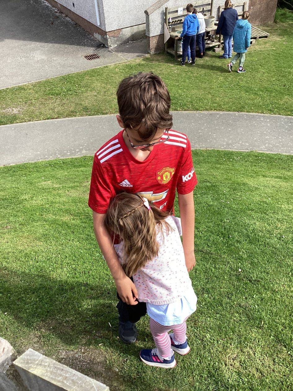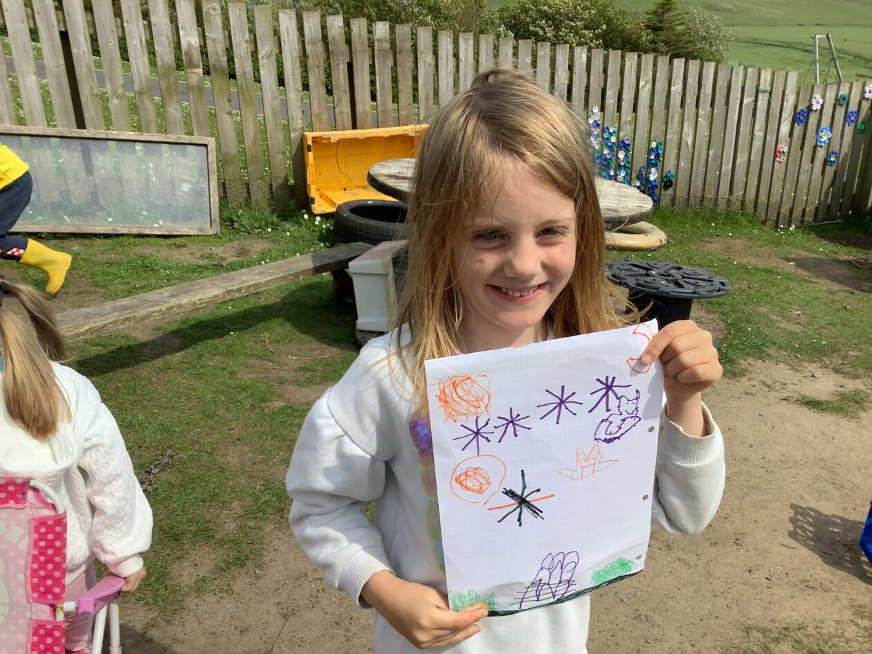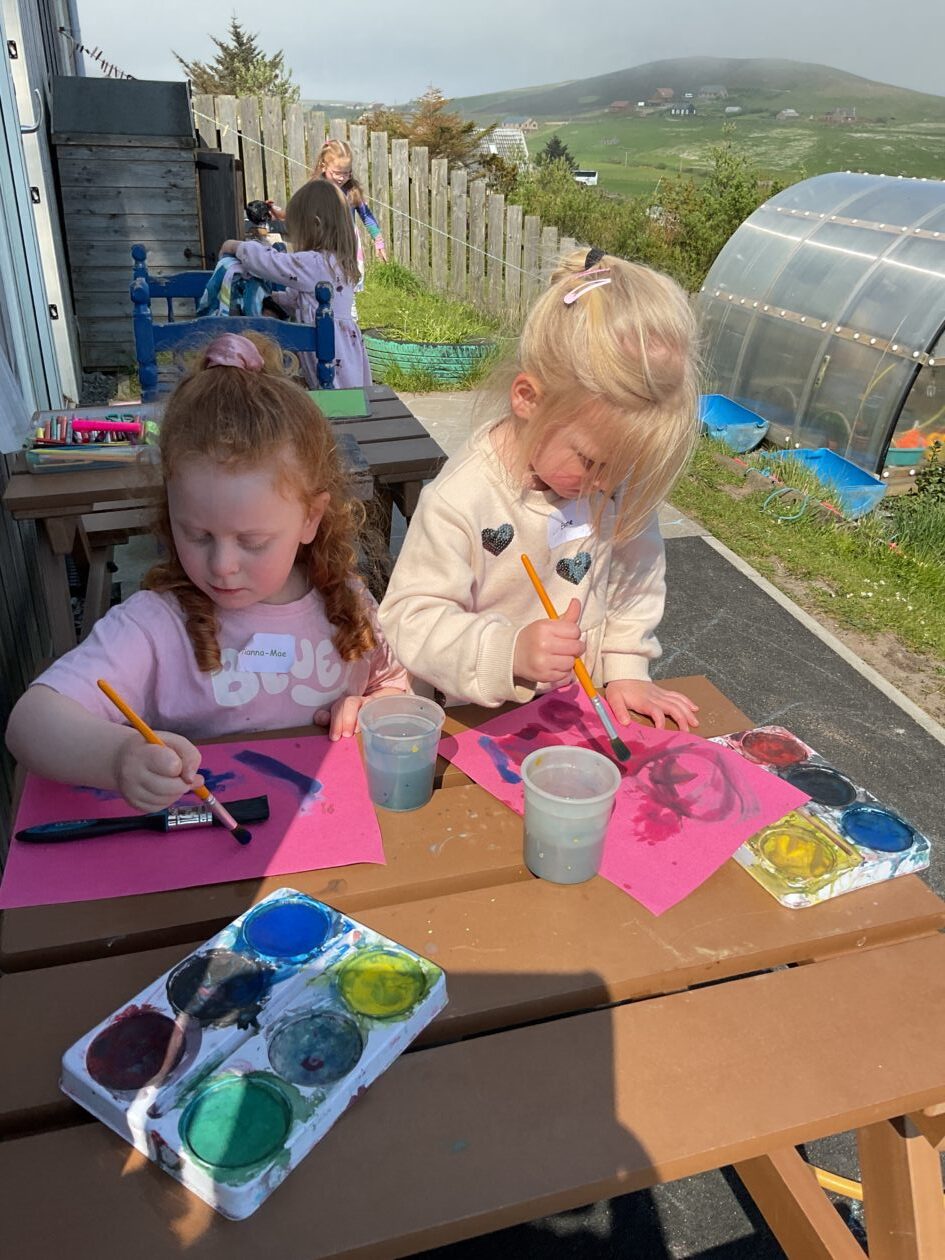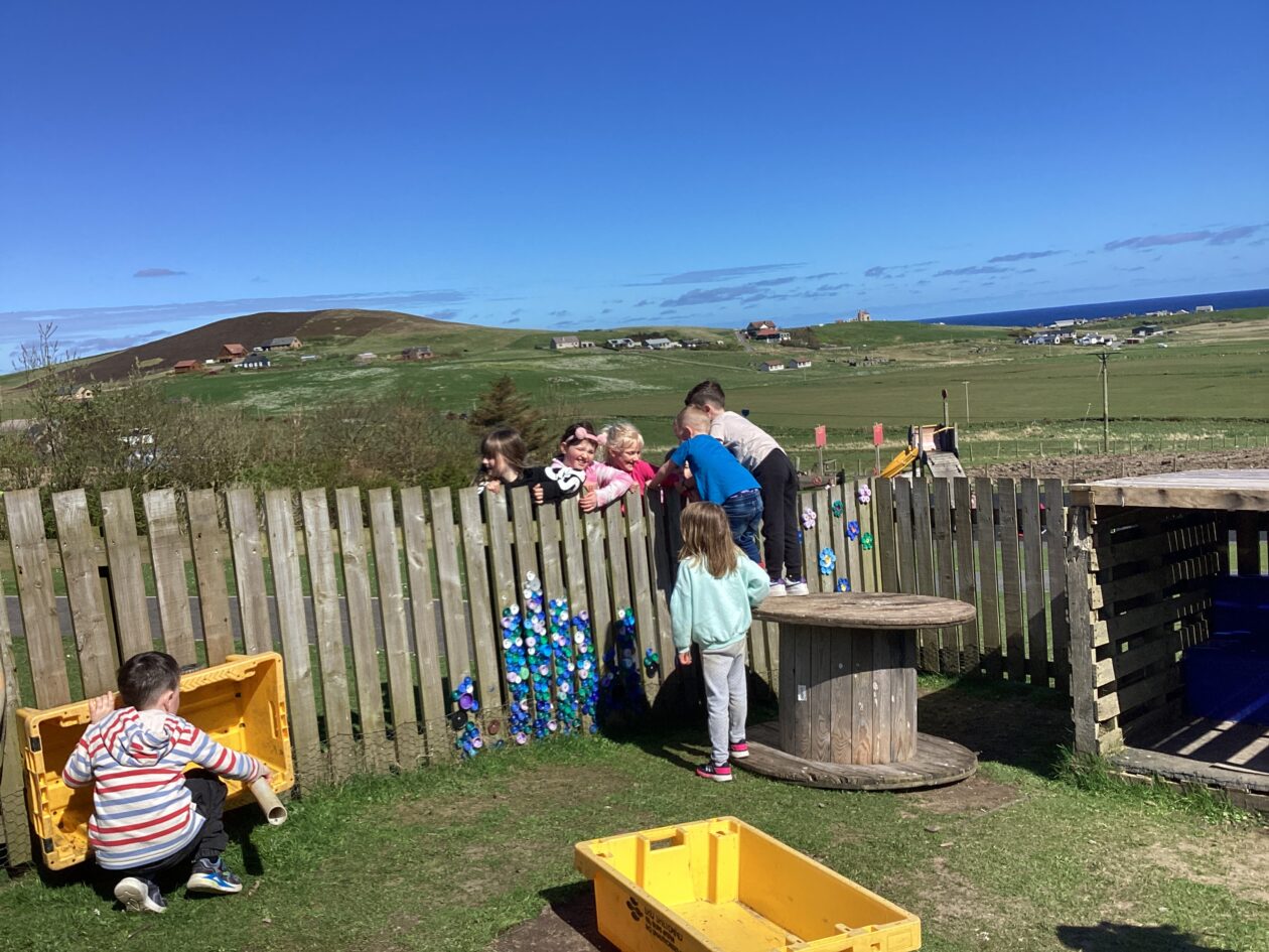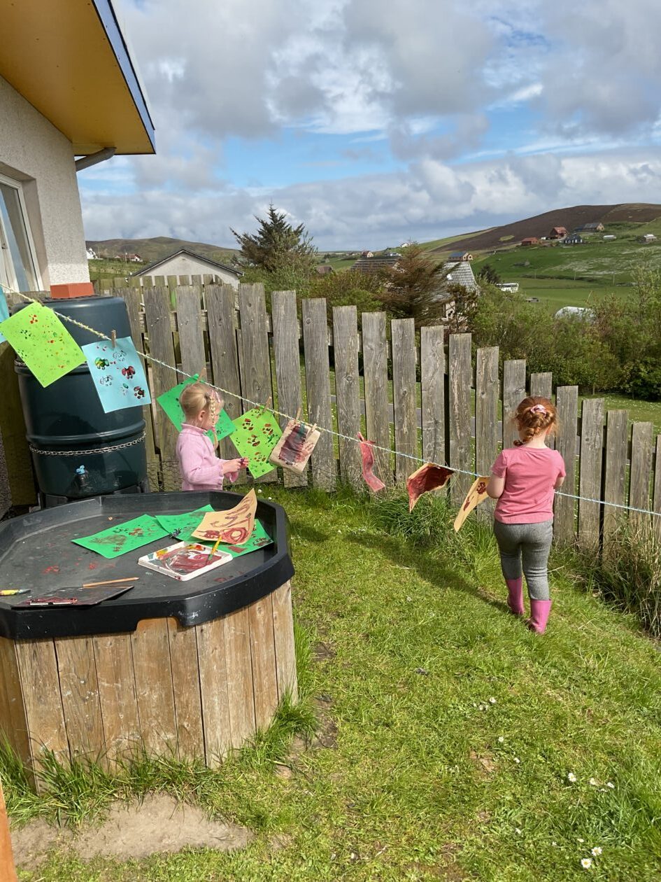 The bairns decorated plates as bees for the backdrop for the Leavers’ Assembly and added messages for Father’s Day as a peerie surprise. Everybody did a splendid job on the day, singing and playing their kazoos. We are all super proud of our peerie superstars heading off to Primary 1 after the holidays.