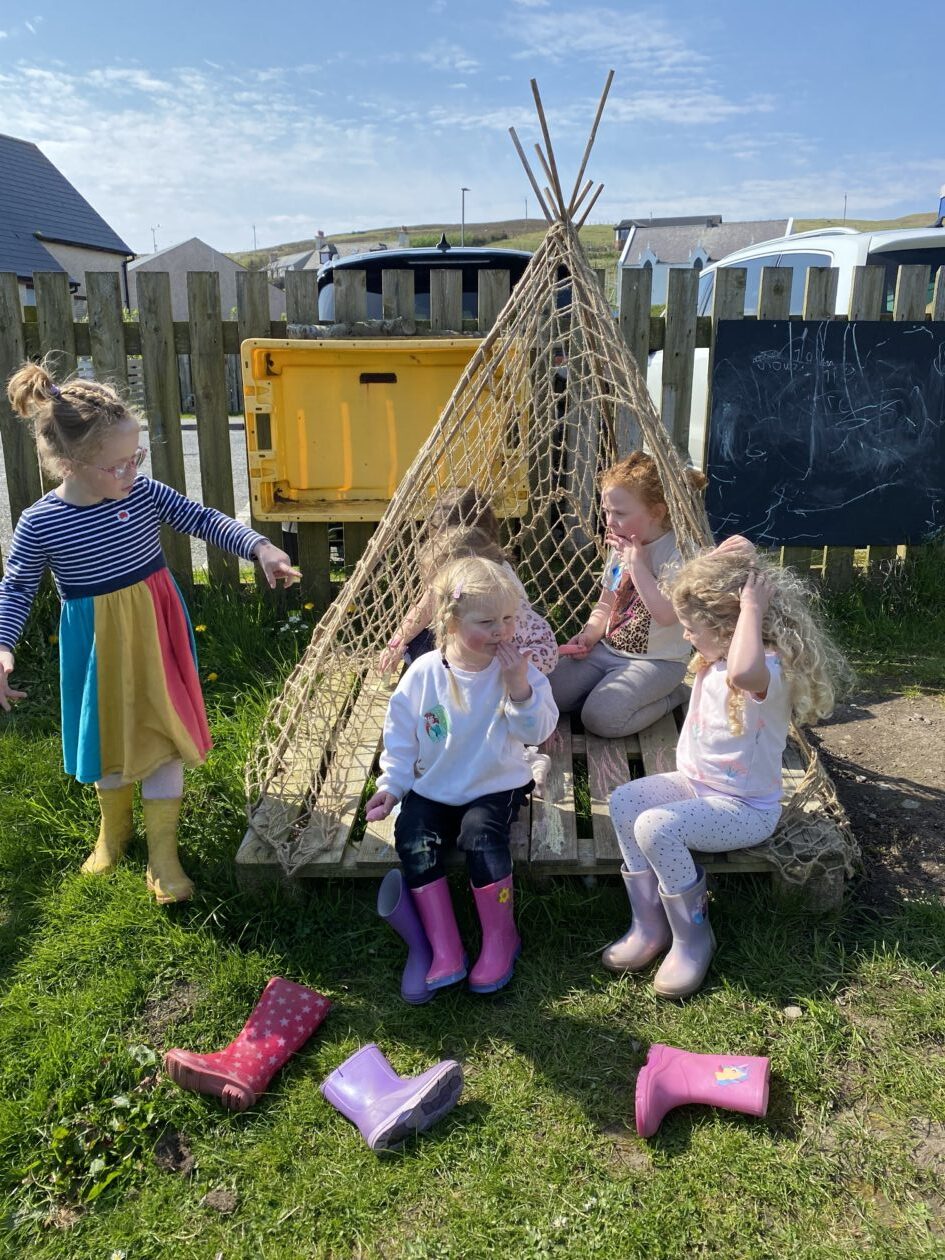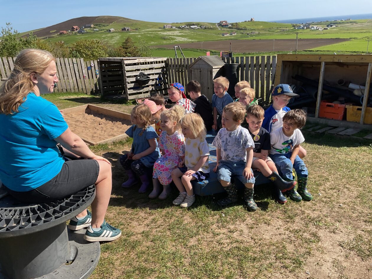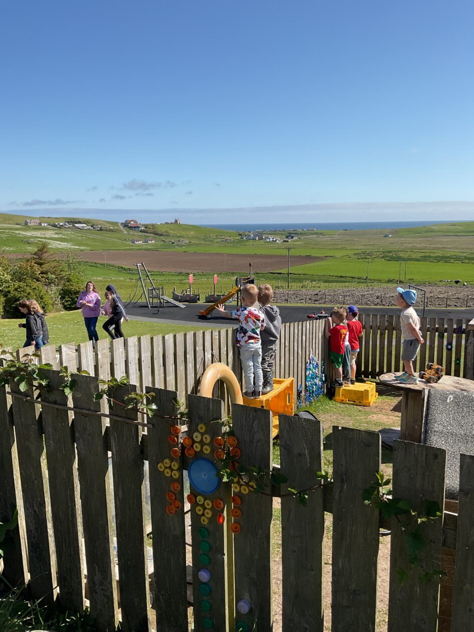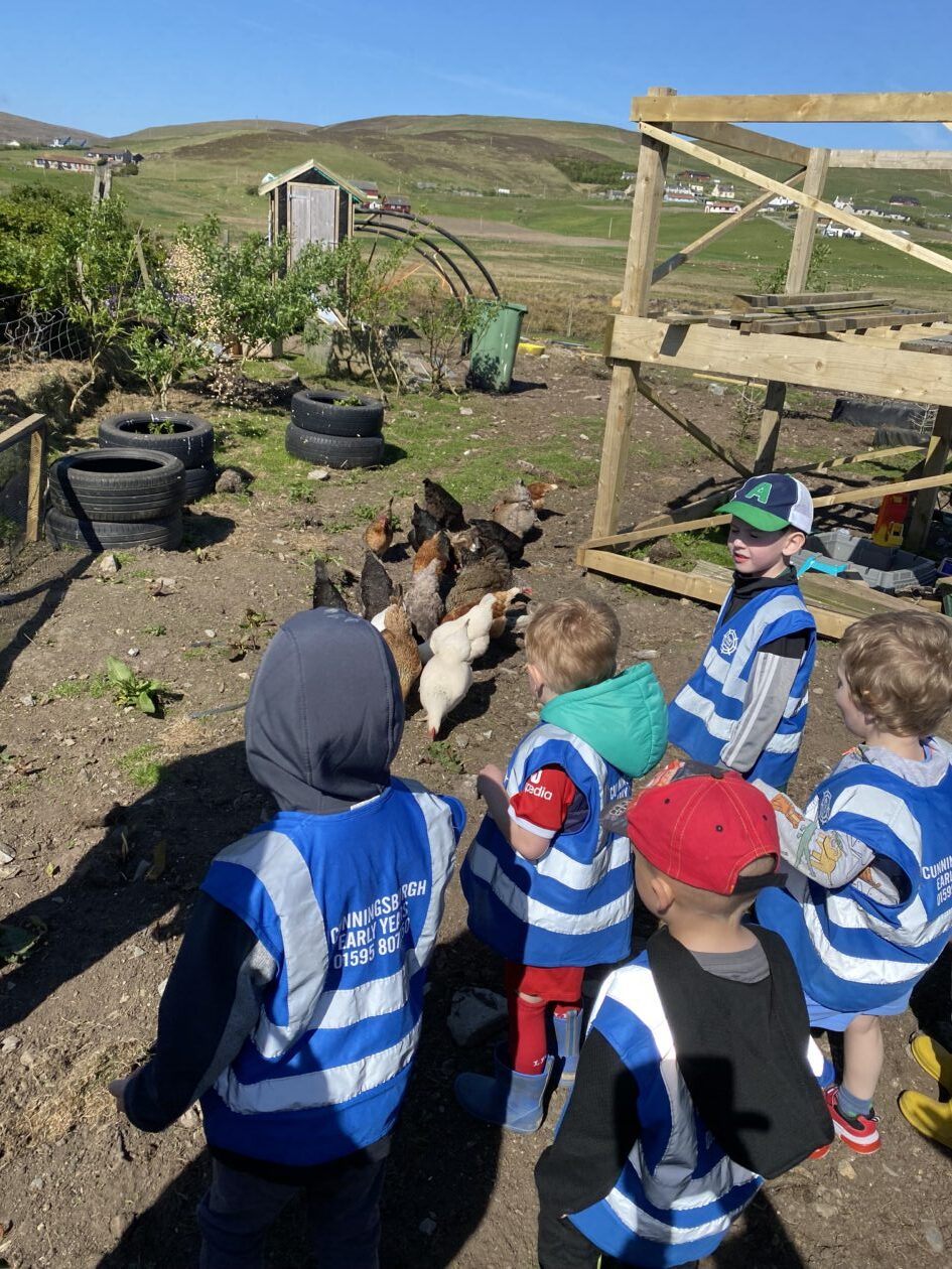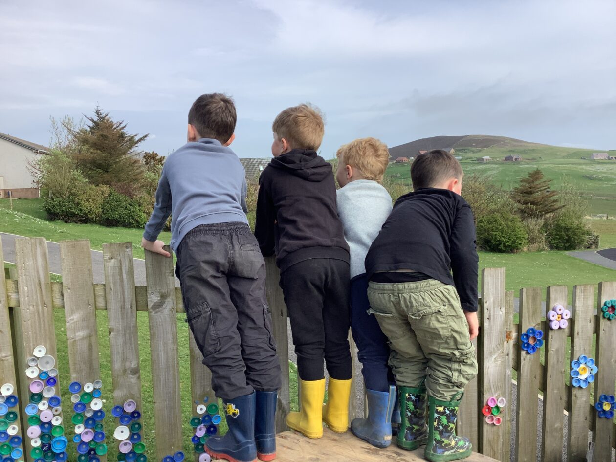 The bairns decorated plates as bees for the backdrop for the Leavers’ Assembly and added messages for Father’s Day as a peerie surprise. Everybody did a splendid job on the day, singing and playing their kazoos. We are all super proud of our peerie superstars heading off to Primary 1 after the holidays.
