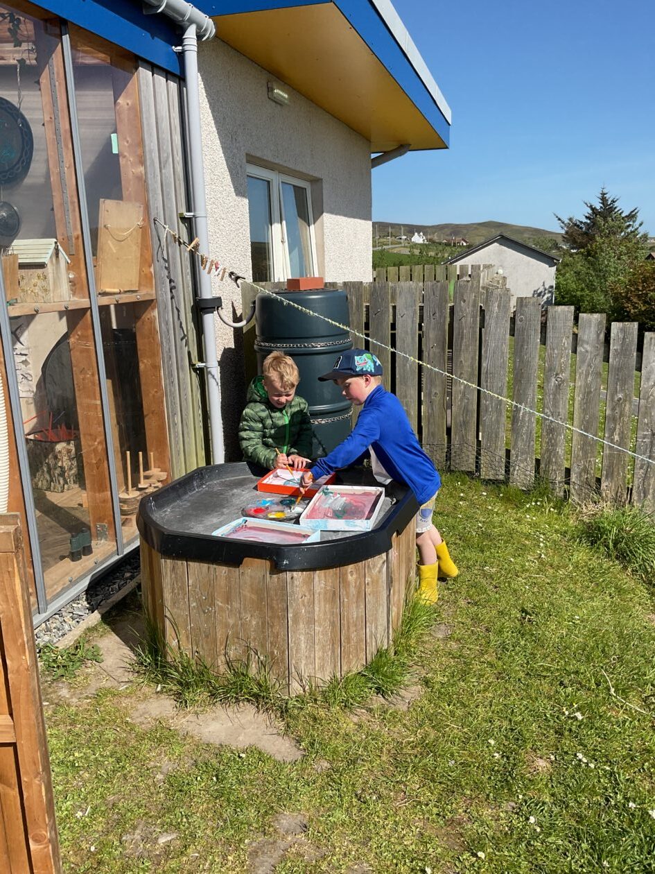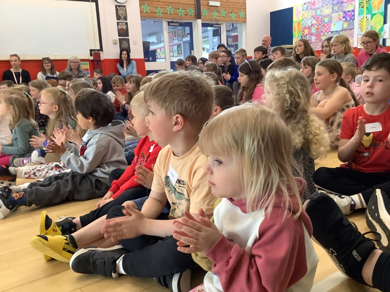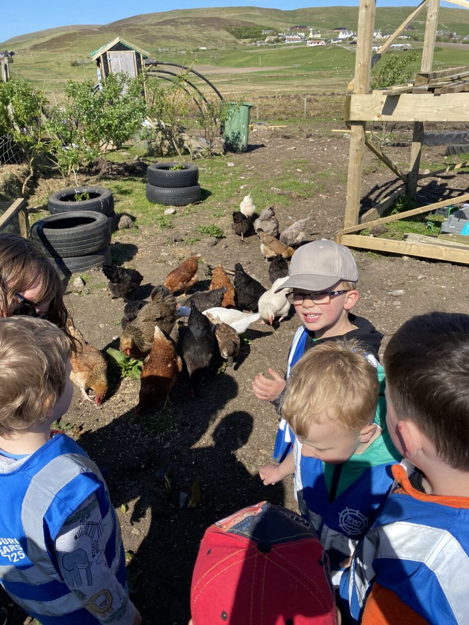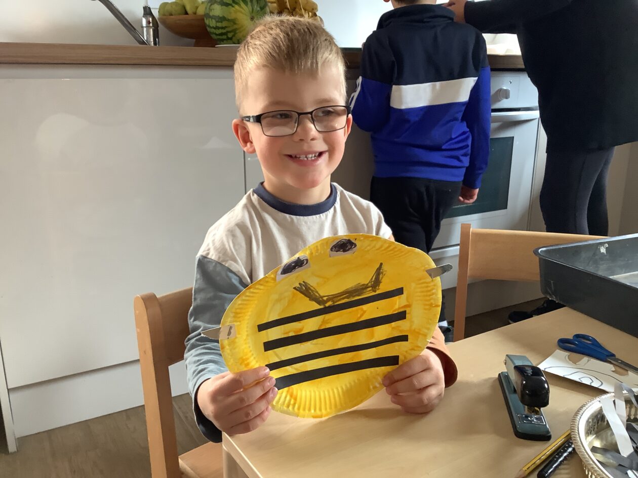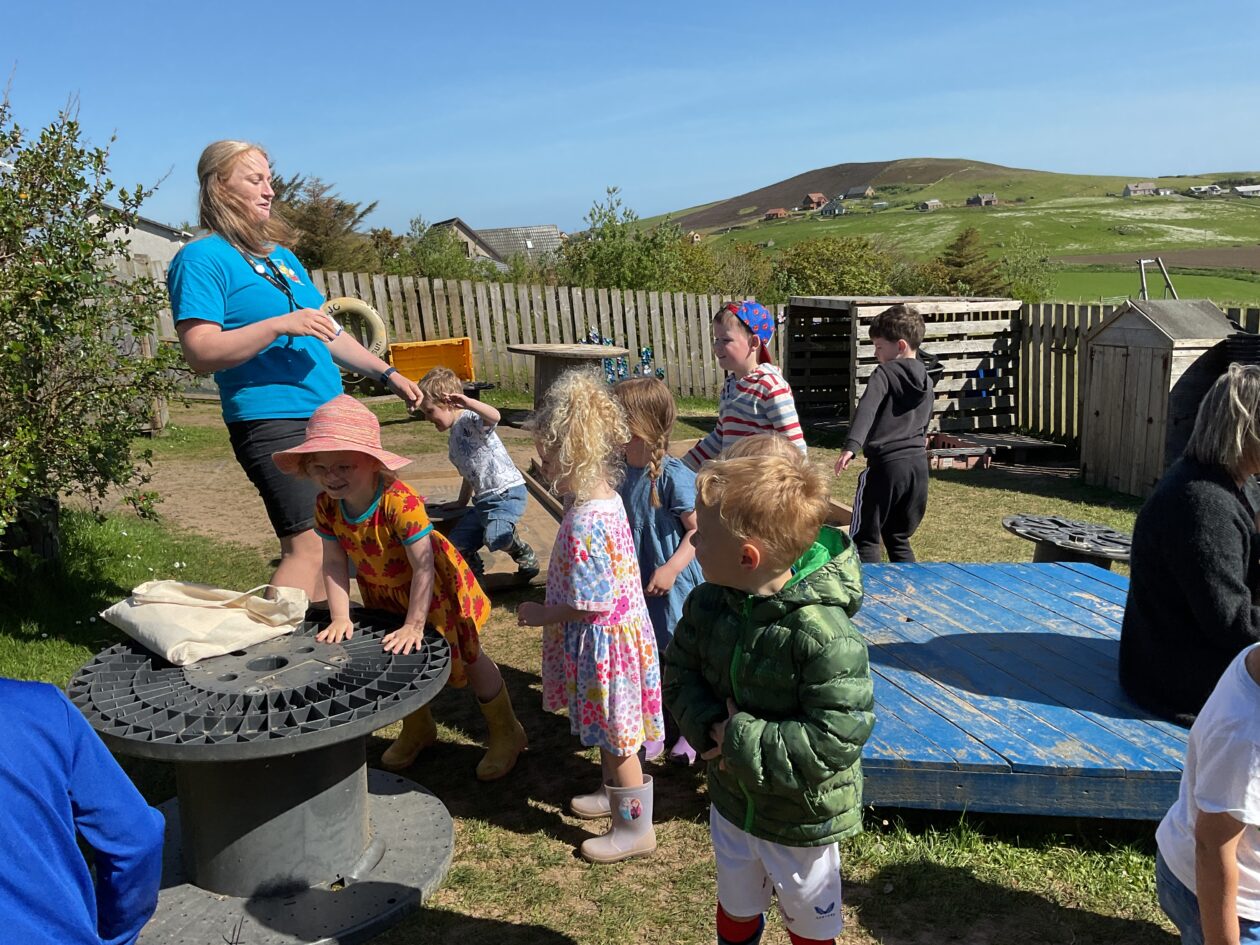 The bairns decorated plates as bees for the backdrop for the Leavers’ Assembly and added messages for Father’s Day as a peerie surprise. Everybody did a splendid job on the day, singing and playing their kazoos. We are all super proud of our peerie superstars heading off to Primary 1 after the holidays.