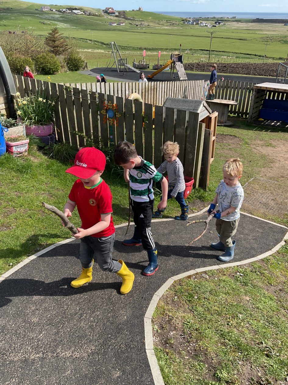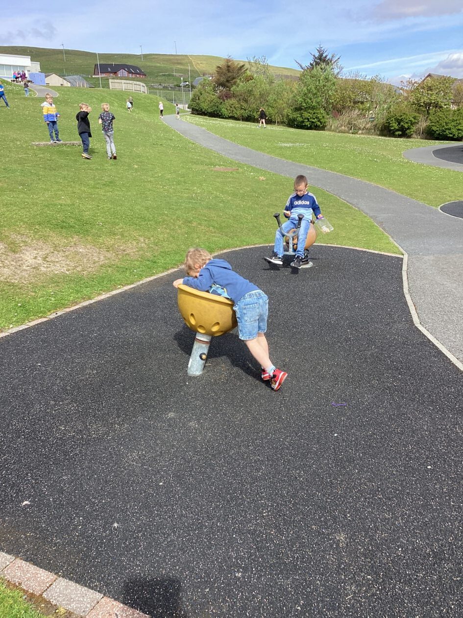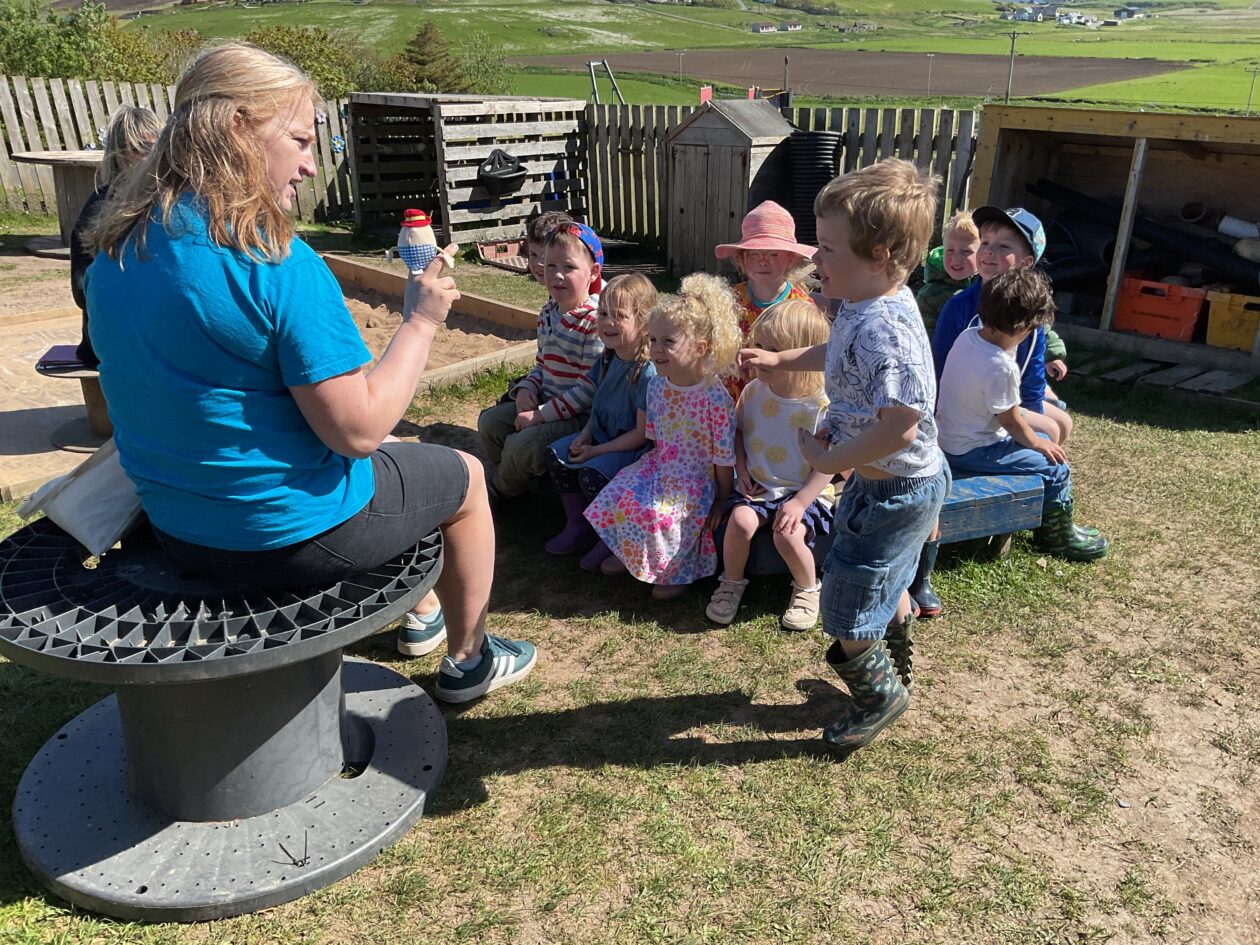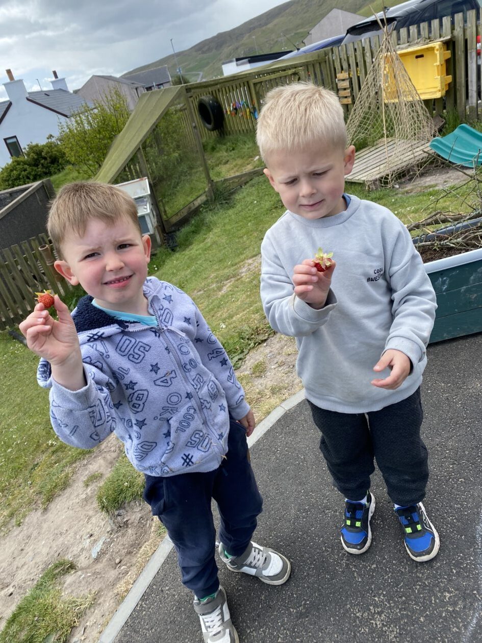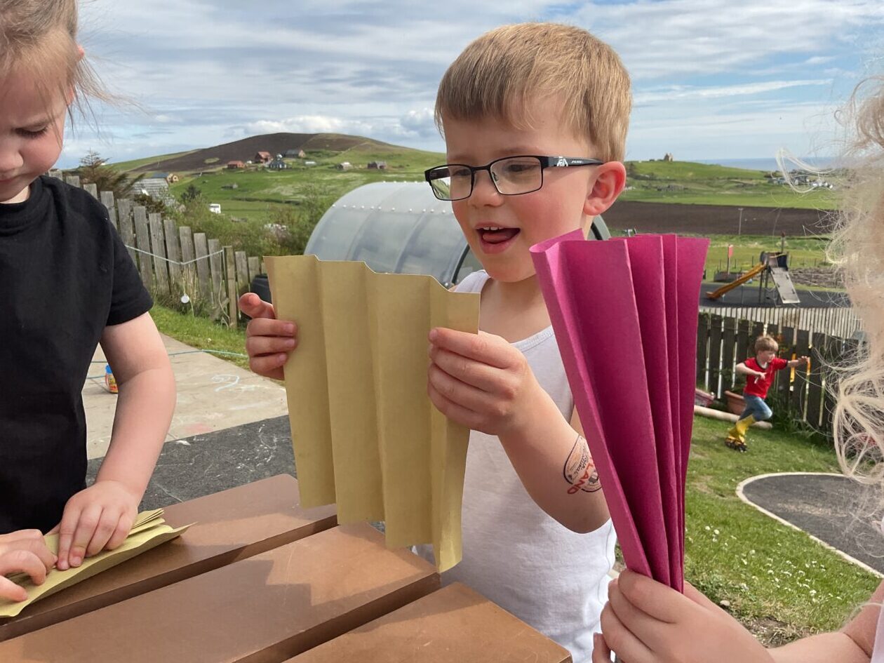 The bairns decorated plates as bees for the backdrop for the Leavers’ Assembly and added messages for Father’s Day as a peerie surprise. Everybody did a splendid job on the day, singing and playing their kazoos. We are all super proud of our peerie superstars heading off to Primary 1 after the holidays.
