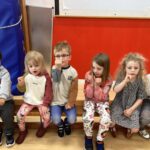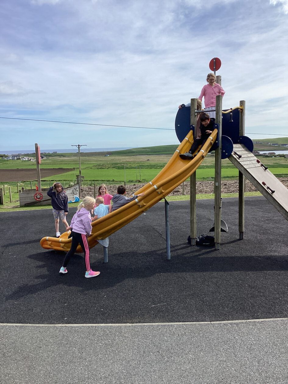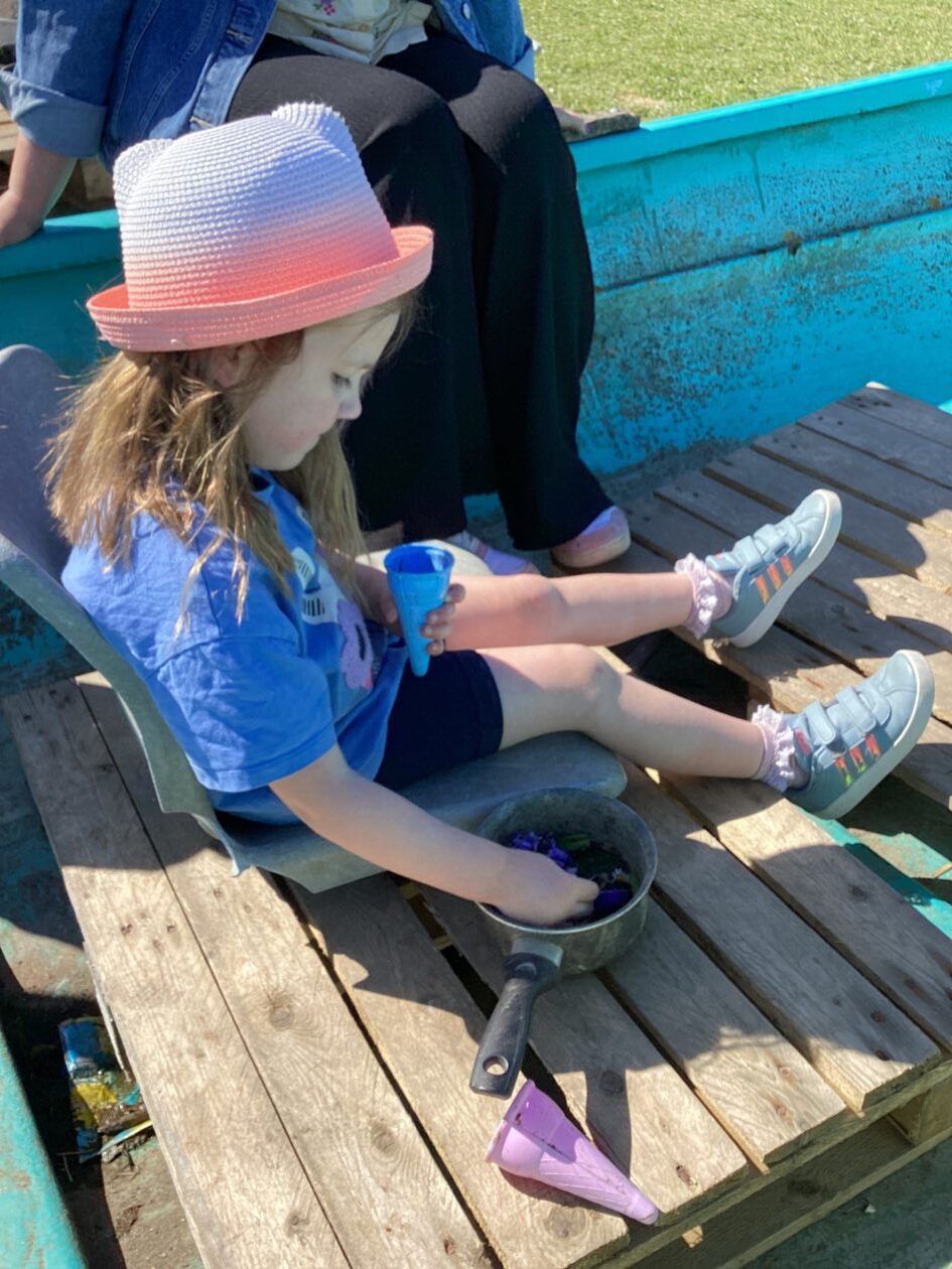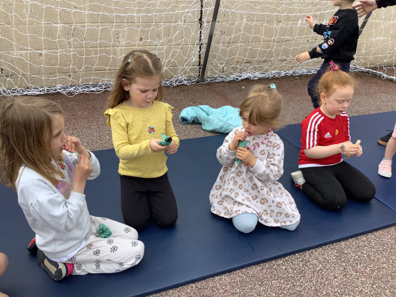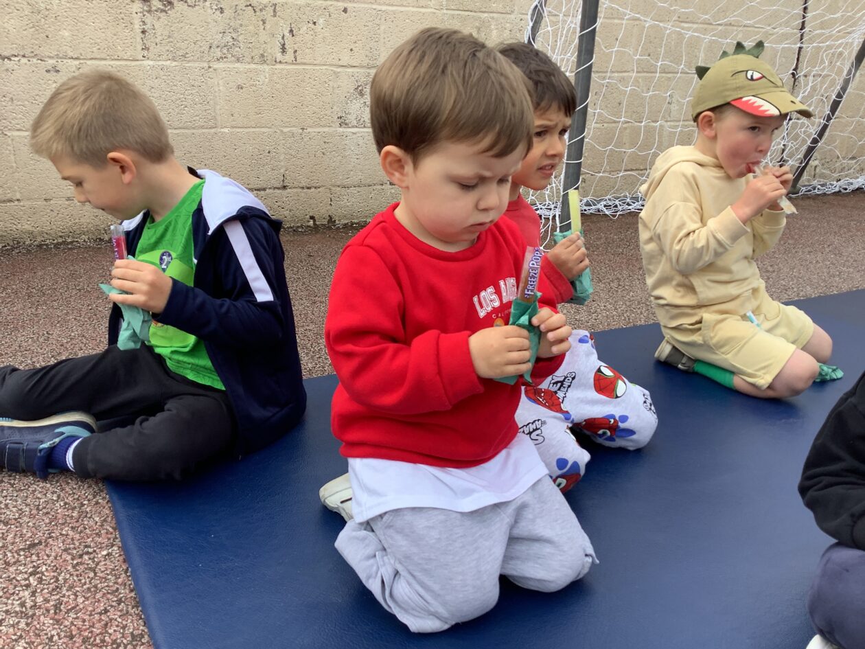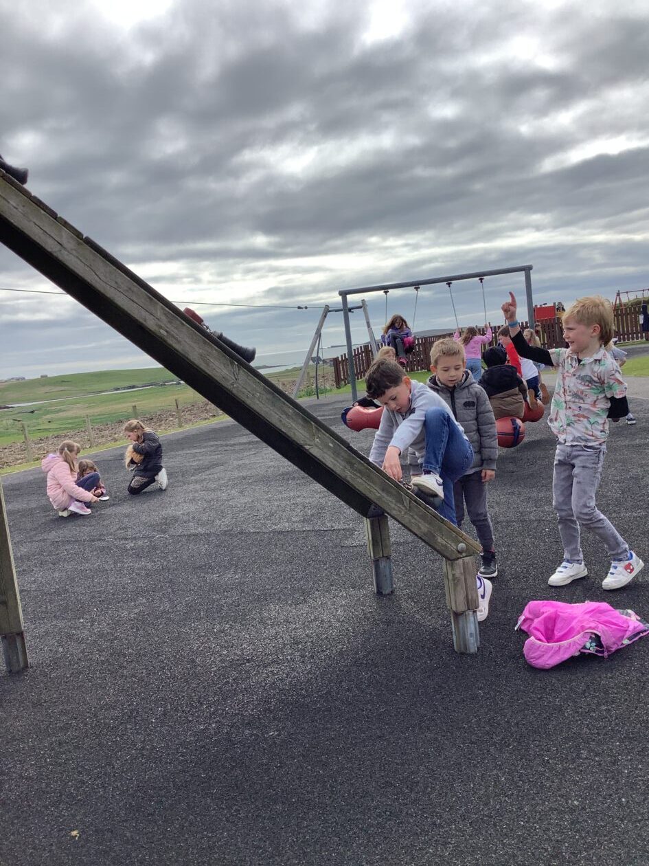 The bairns decorated plates as bees for the backdrop for the Leavers’ Assembly and added messages for Father’s Day as a peerie surprise. Everybody did a splendid job on the day, singing and playing their kazoos. We are all super proud of our peerie superstars heading off to Primary 1 after the holidays.