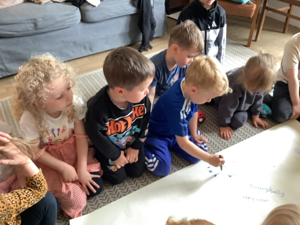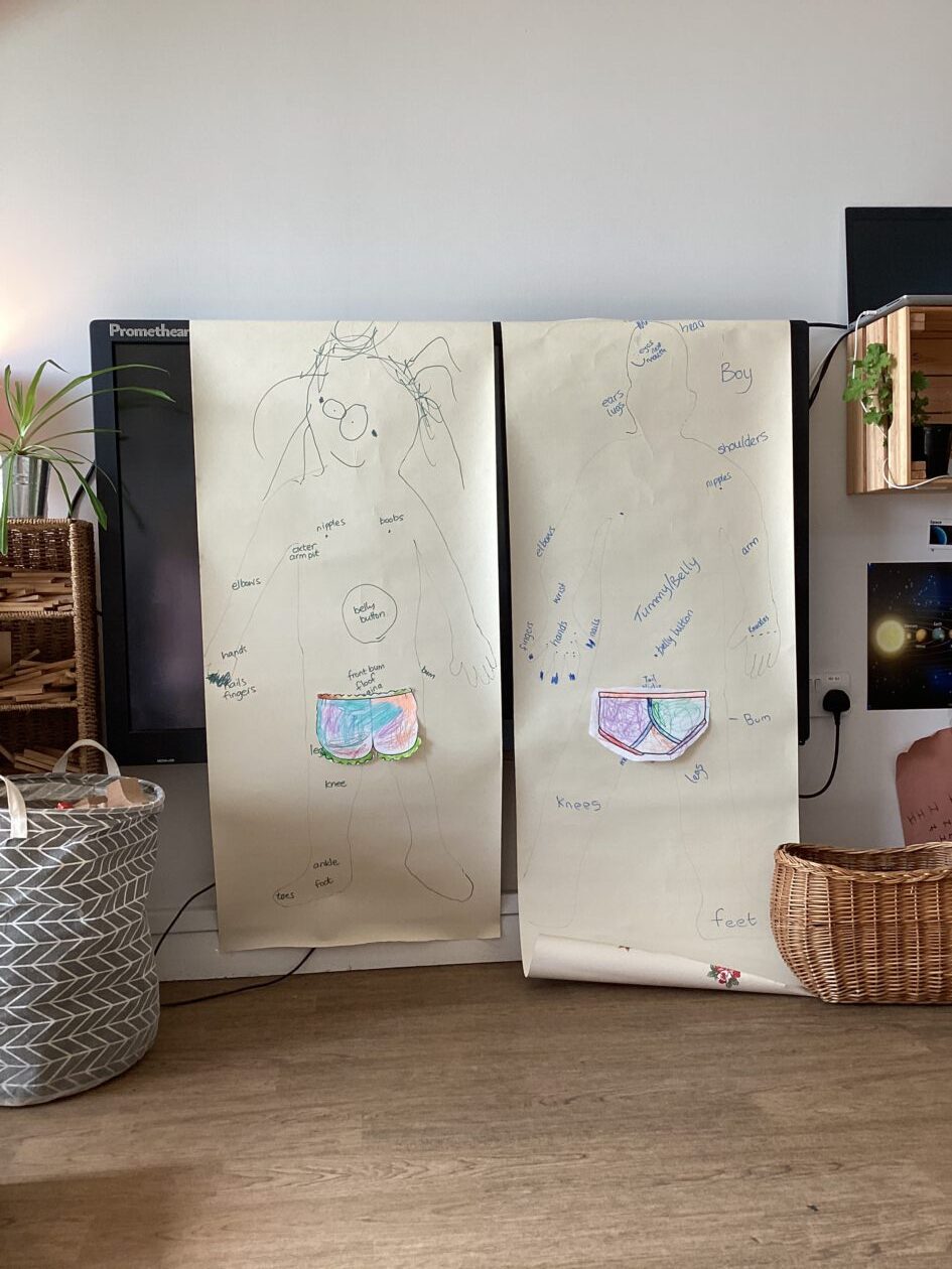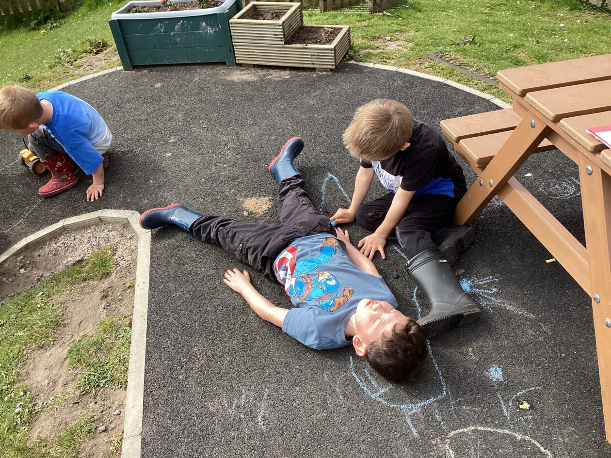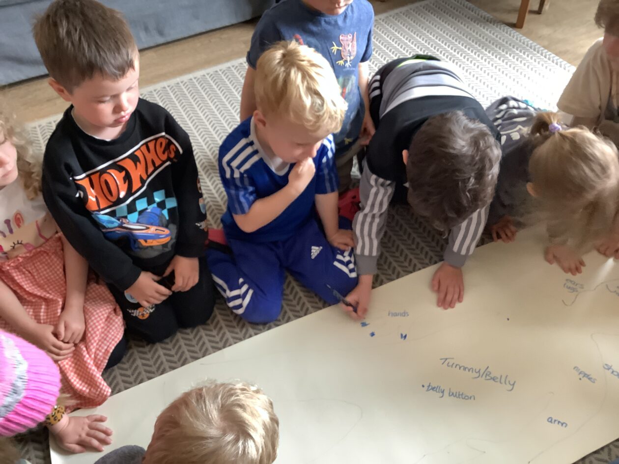 We started Wir Ain Peerie Bodies this week. We have read several books which cover the differences and similarities between male and female bodies, our feelings, what to do if someone tries to touch us under our pants and who we can speak to if something makes us uncomfortable. We drew around a boy and a girl to create a male and a female body. The bairns then named all the body parts, remembering what they had learned from the books. The bairns decorated pants to protect their privacy and we will revisit this again next week.