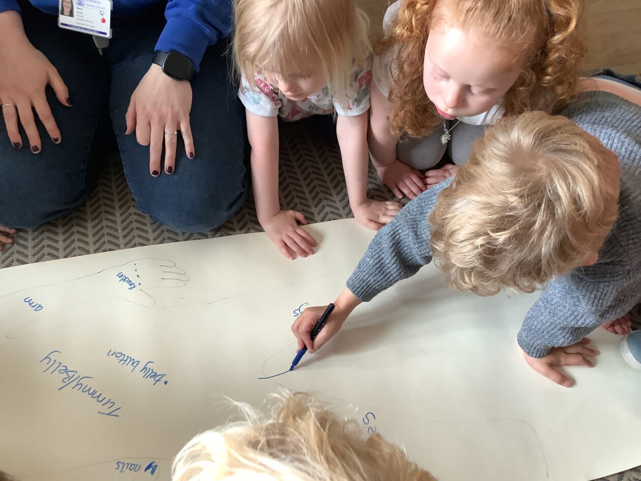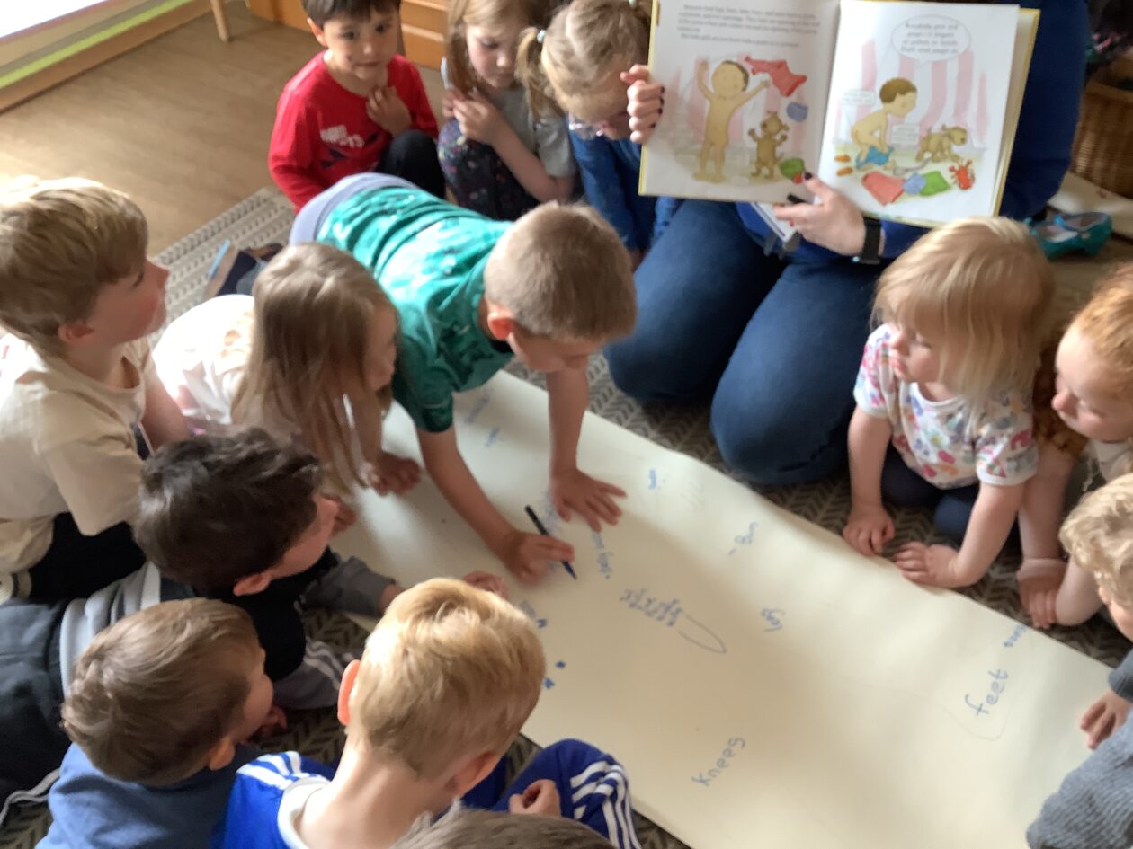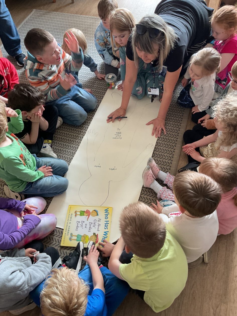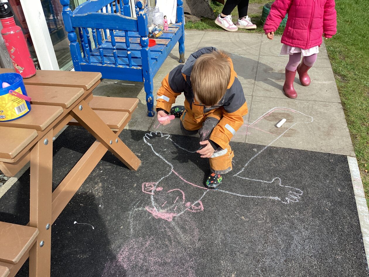 We started Wir Ain Peerie Bodies this week. We have read several books which cover the differences and similarities between male and female bodies, our feelings, what to do if someone tries to touch us under our pants and who we can speak to if something makes us uncomfortable. We drew around a boy and a girl to create a male and a female body. The bairns then named all the body parts, remembering what they had learned from the books. The bairns decorated pants to protect their privacy and we will revisit this again next week.