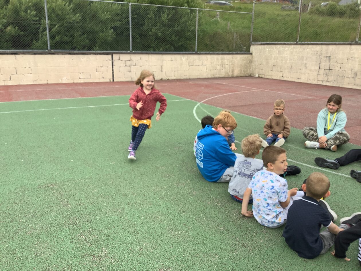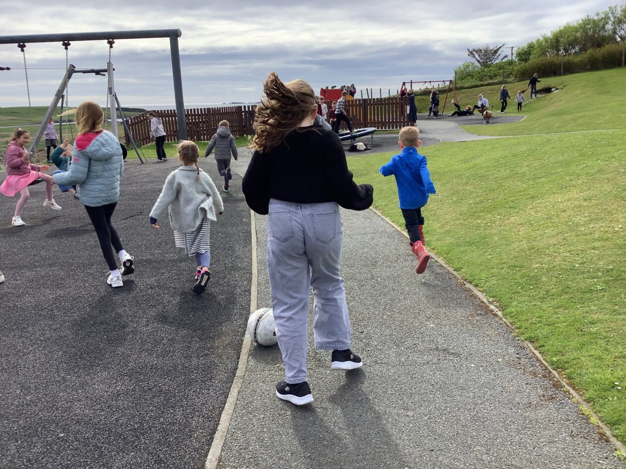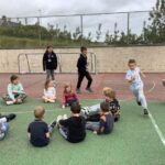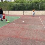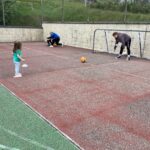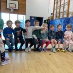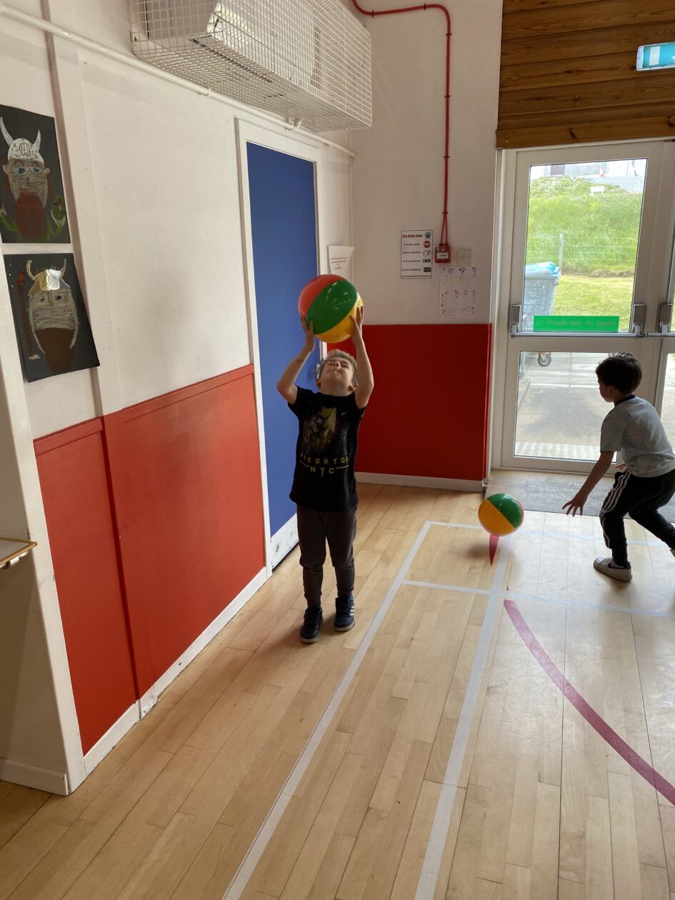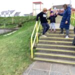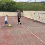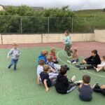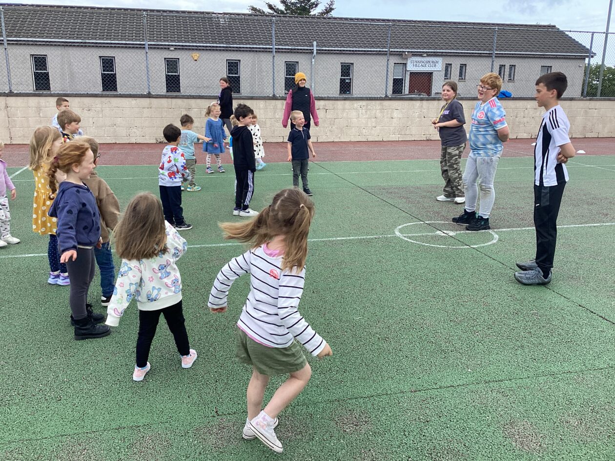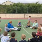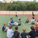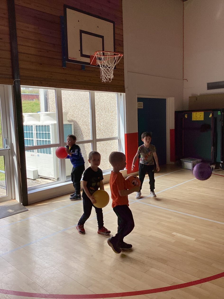 The Primary 7 bairns held another Monster Kickabout and took the nursery bairns to the multicourt for coaching sessions focusing on football skills. They played games like Duck Duck Goose, Simon Says and Ship Shore Sea. The bairns had a turn at dribbling and a penalty shoot-out. They made a circle and practiced passing the ball to each other. The bairns also submitted their medal colouring in sheets.