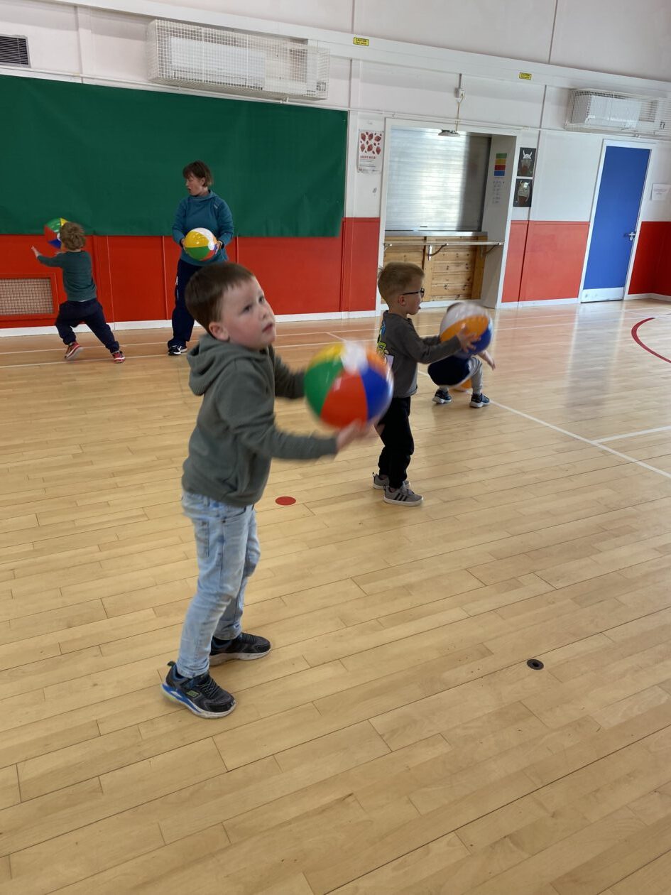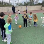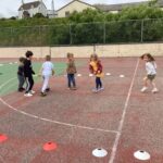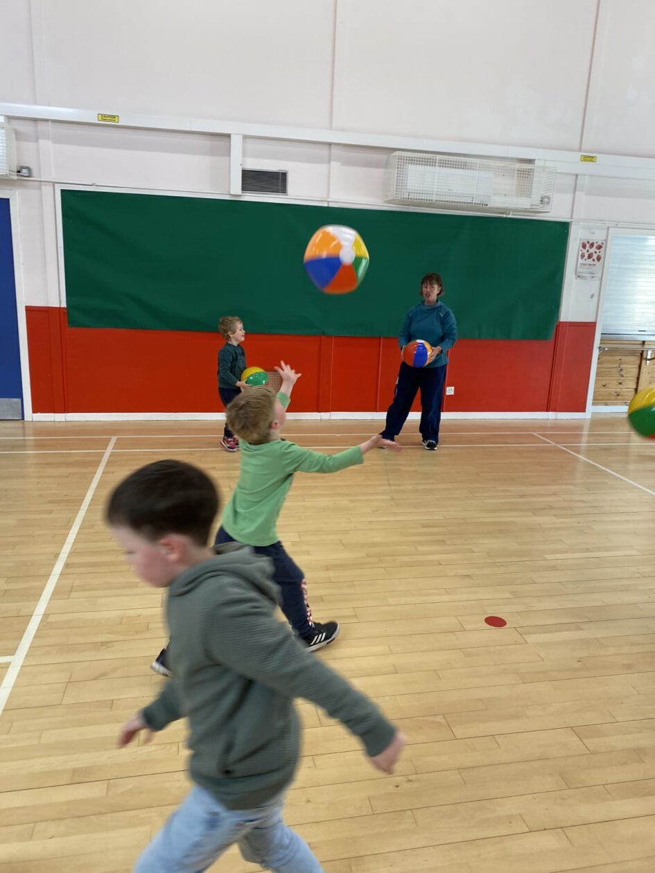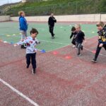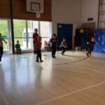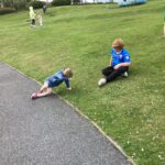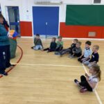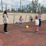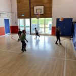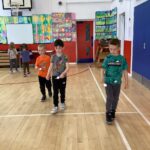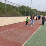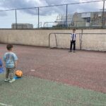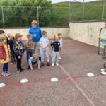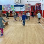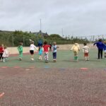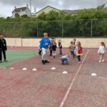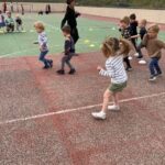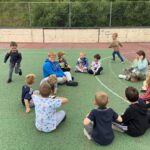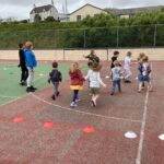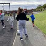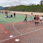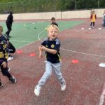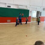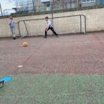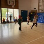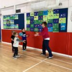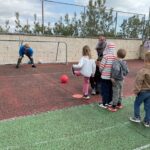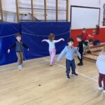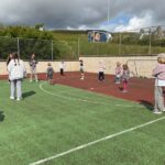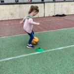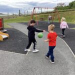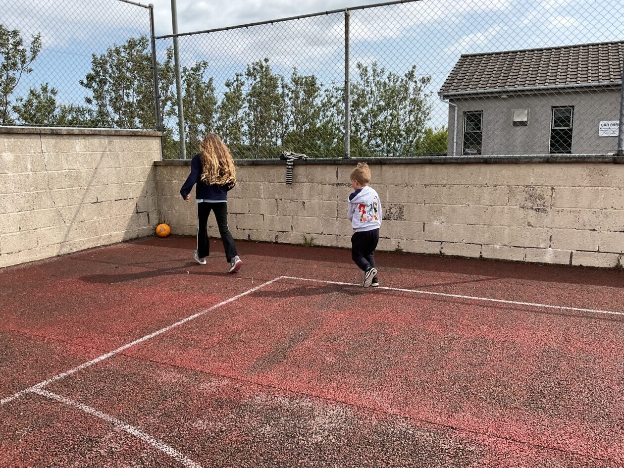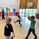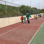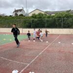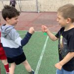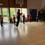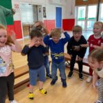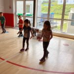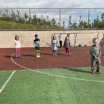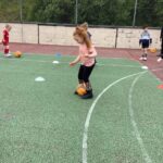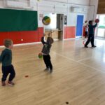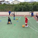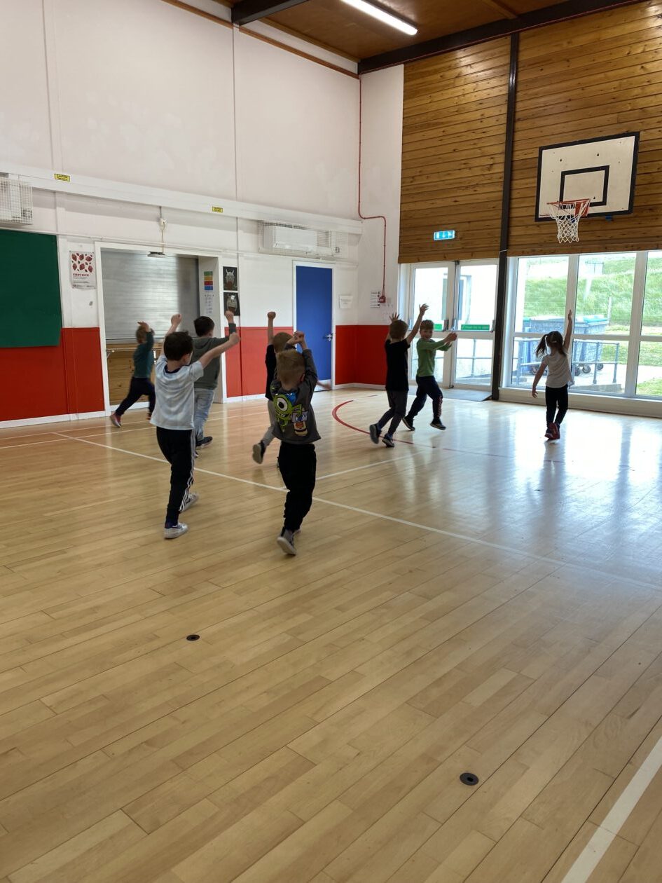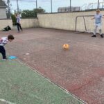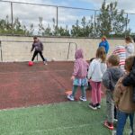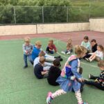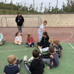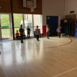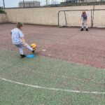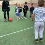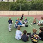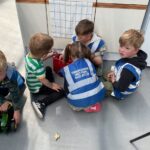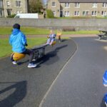 The Primary 7 bairns held another Monster Kickabout and took the nursery bairns to the multicourt for coaching sessions focusing on football skills. They played games like Duck Duck Goose, Simon Says and Ship Shore Sea. The bairns had a turn at dribbling and a penalty shoot-out. They made a circle and practiced passing the ball to each other. The bairns also submitted their medal colouring in sheets.