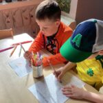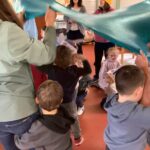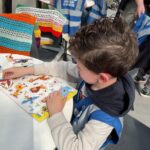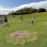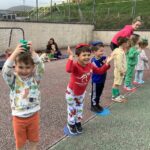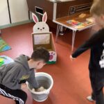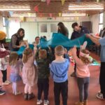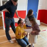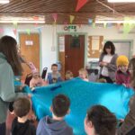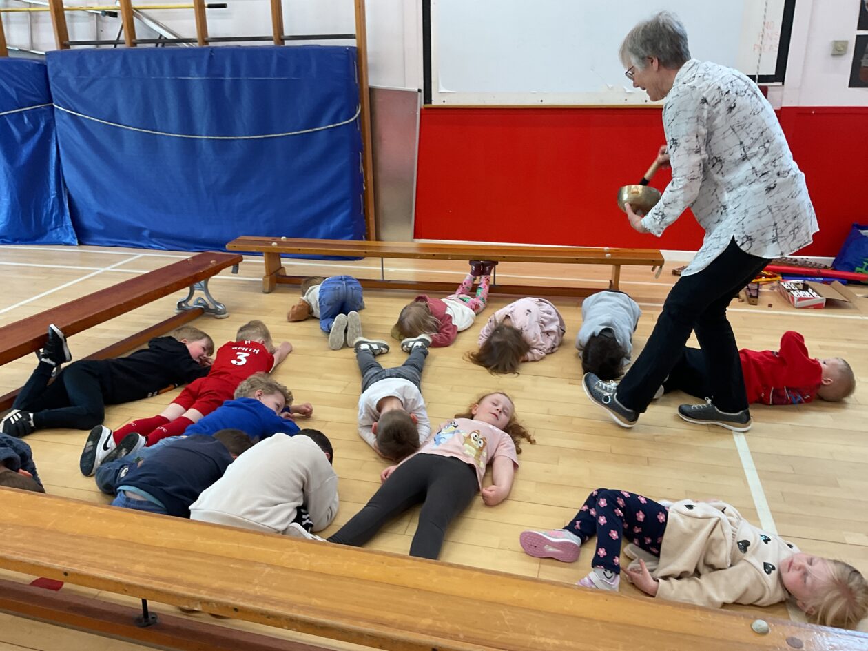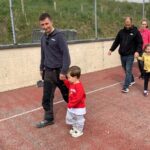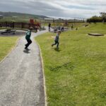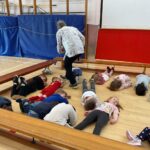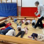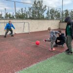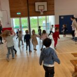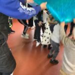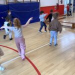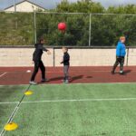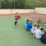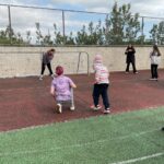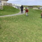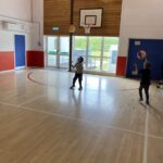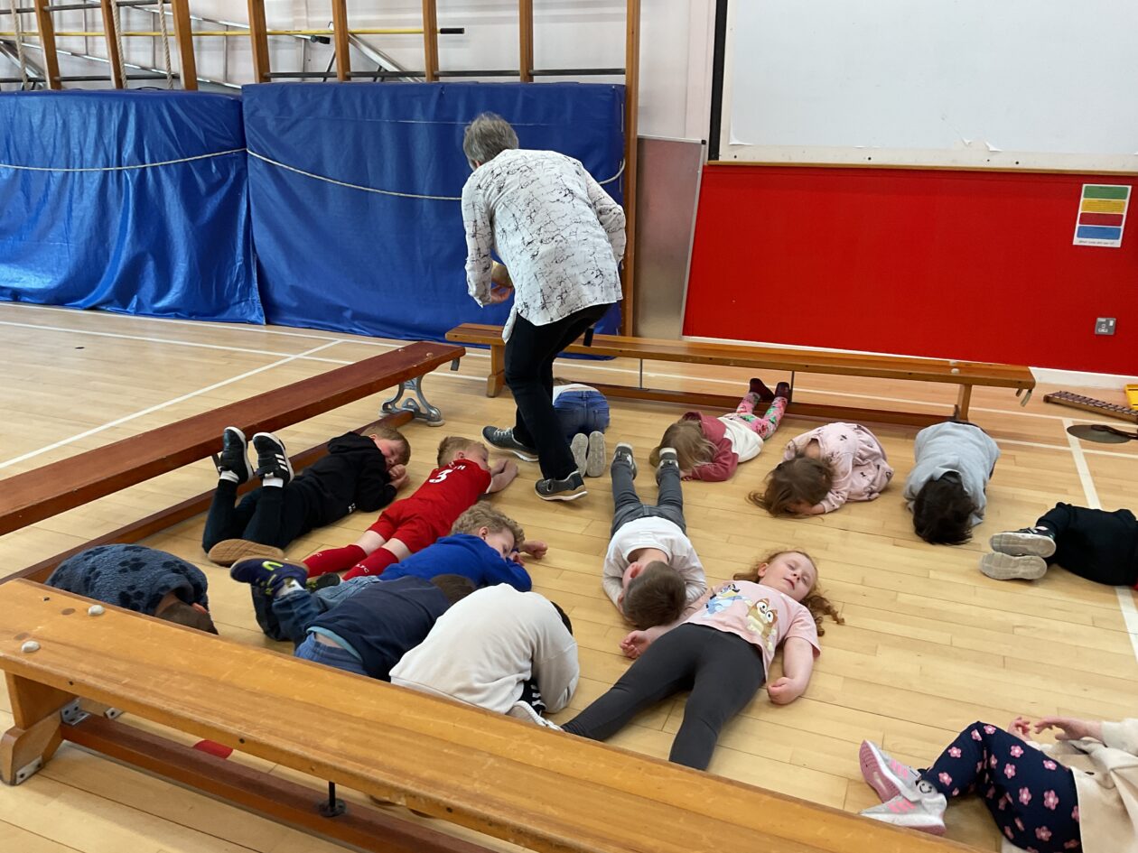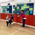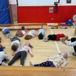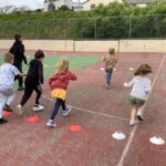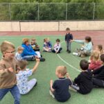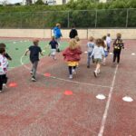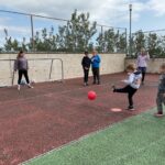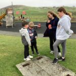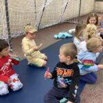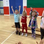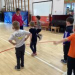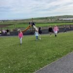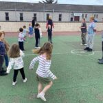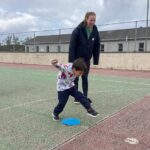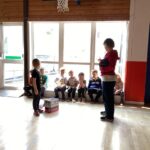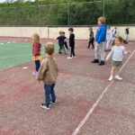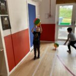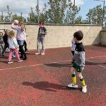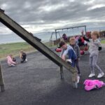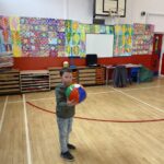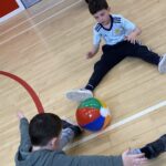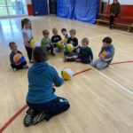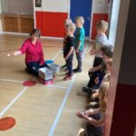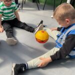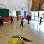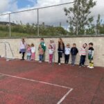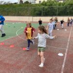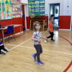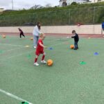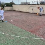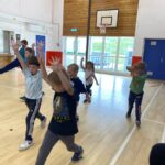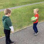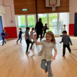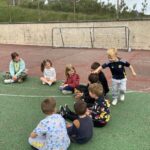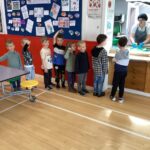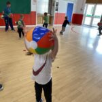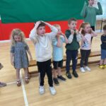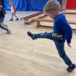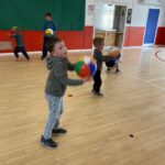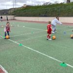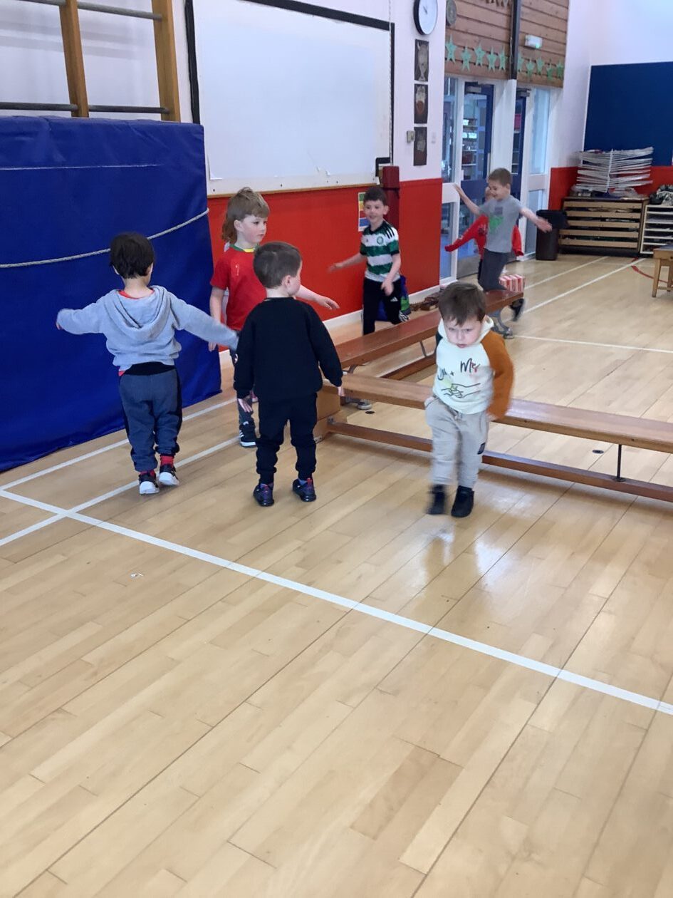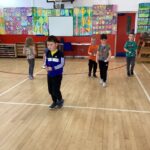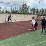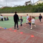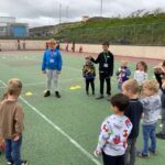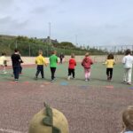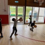 The Primary 7 bairns held another Monster Kickabout and took the nursery bairns to the multicourt for coaching sessions focusing on football skills. They played games like Duck Duck Goose, Simon Says and Ship Shore Sea. The bairns had a turn at dribbling and a penalty shoot-out. They made a circle and practiced passing the ball to each other. The bairns also submitted their medal colouring in sheets.
