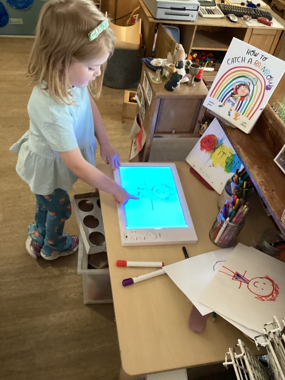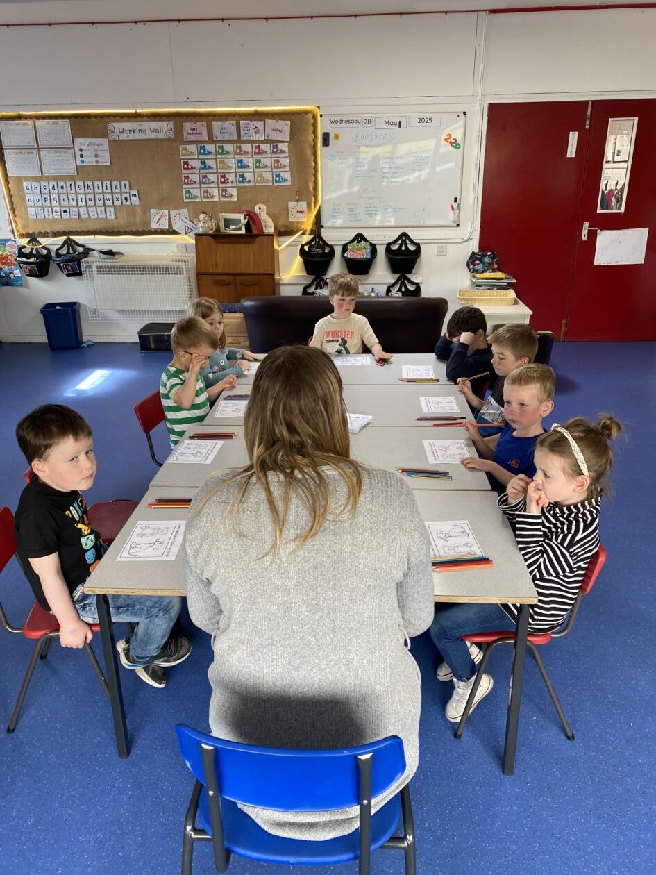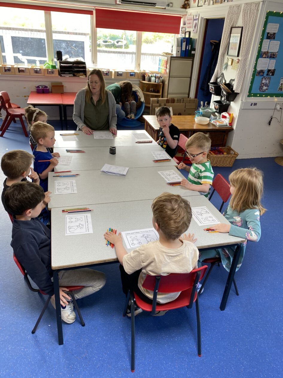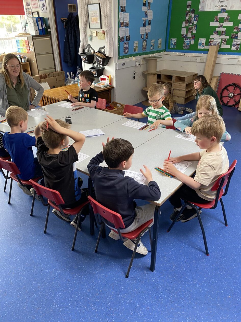 The preschoolers had a longer session in Primary 1 for Moving Up Day. They met up with their classmates, explored the resources and completed a colouring-in task.