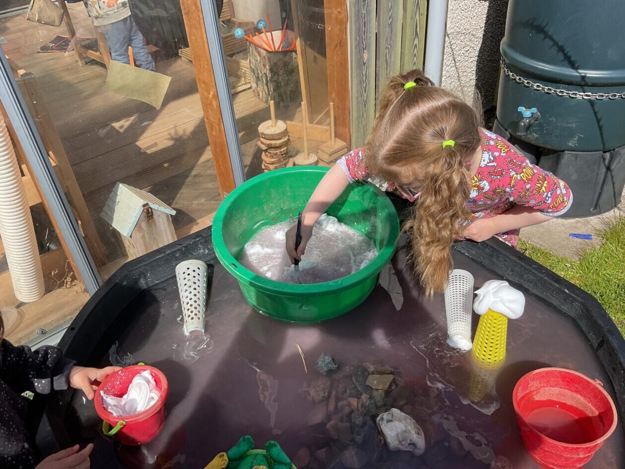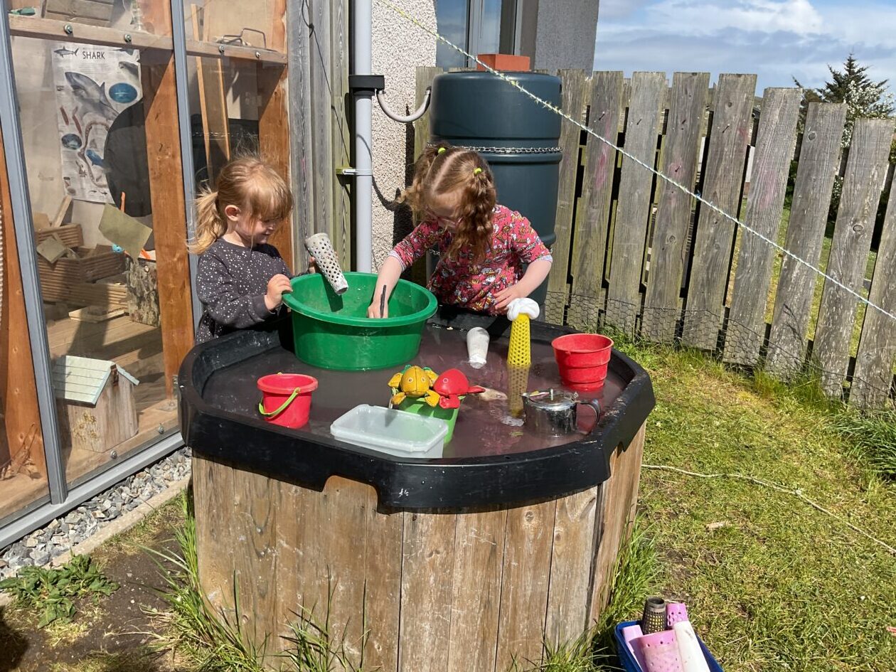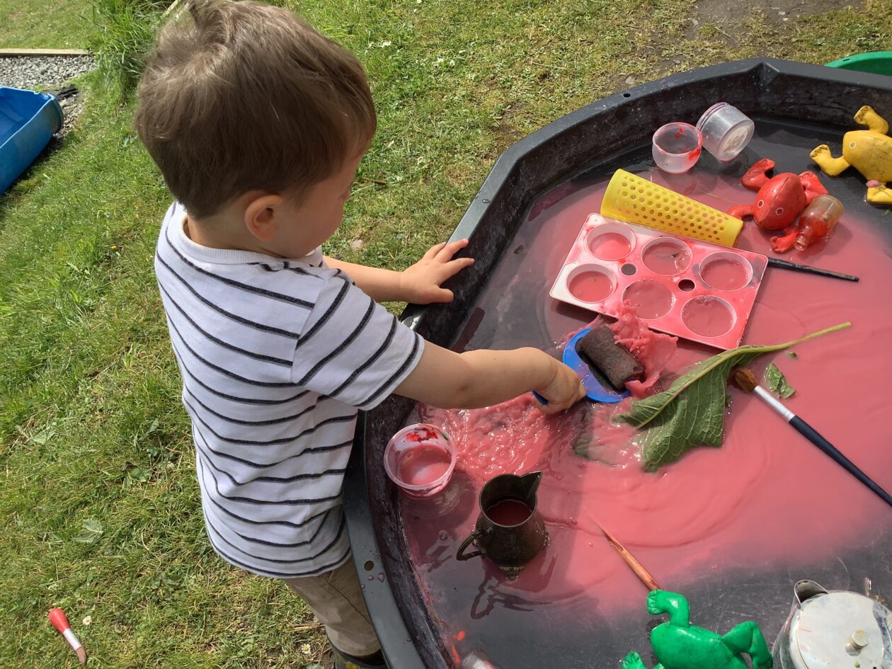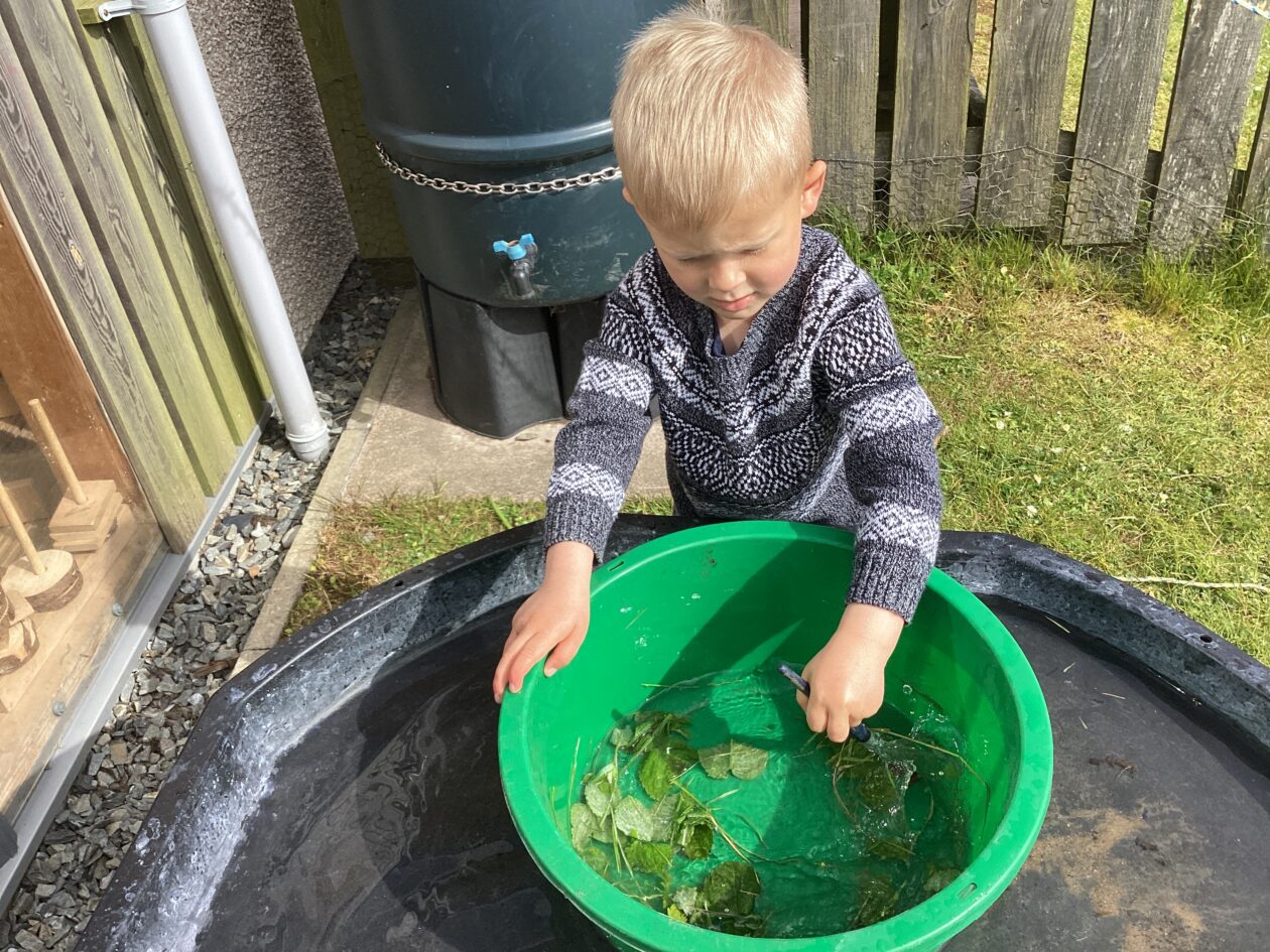 Our outdoor play has focused on water play, bug hunting and singing about the rain. The bairns have been engaged in sensory play with water, paint and shaving foam. Trevor put up our new basketball hoop and we’ve planted neeps.