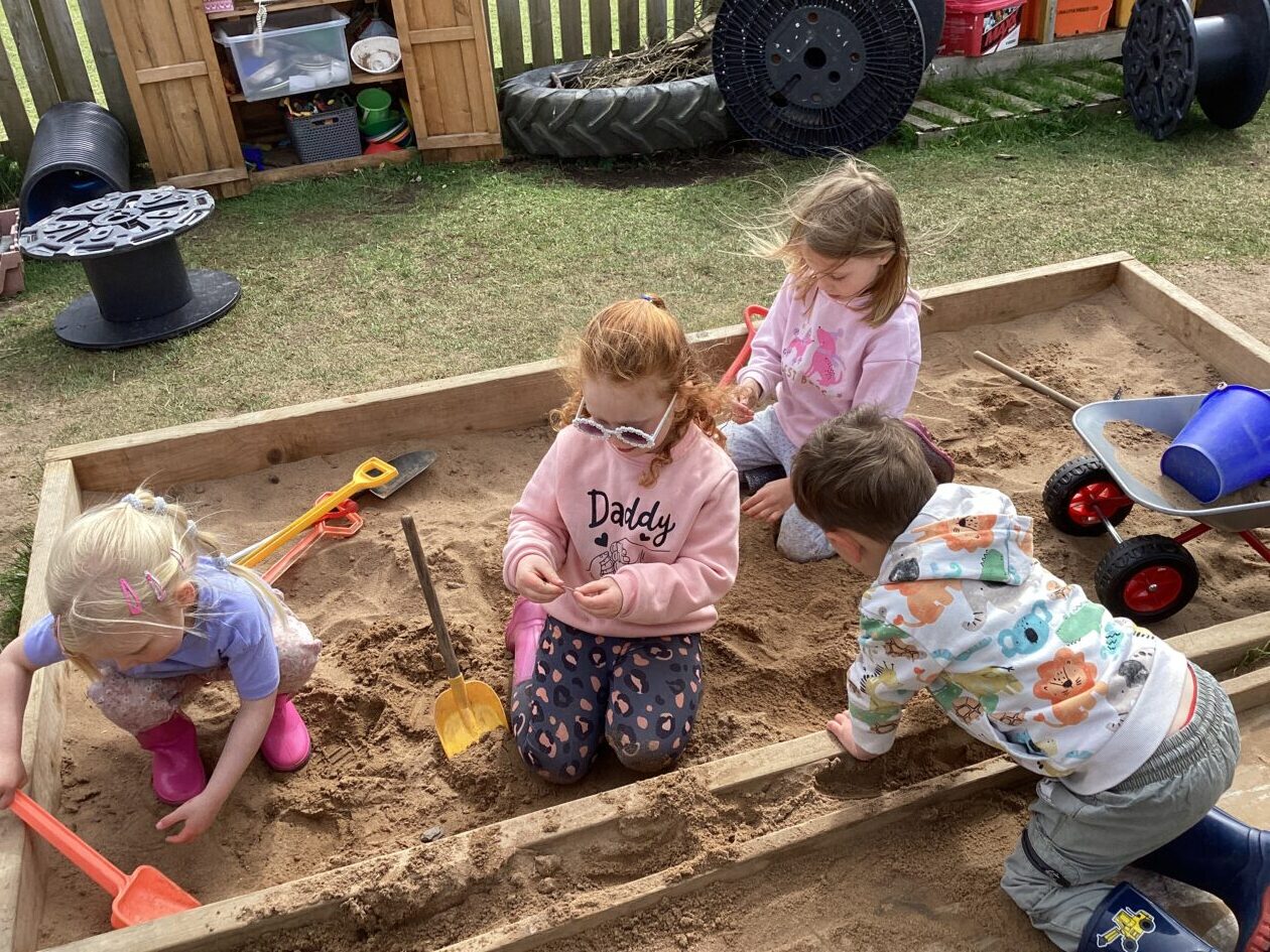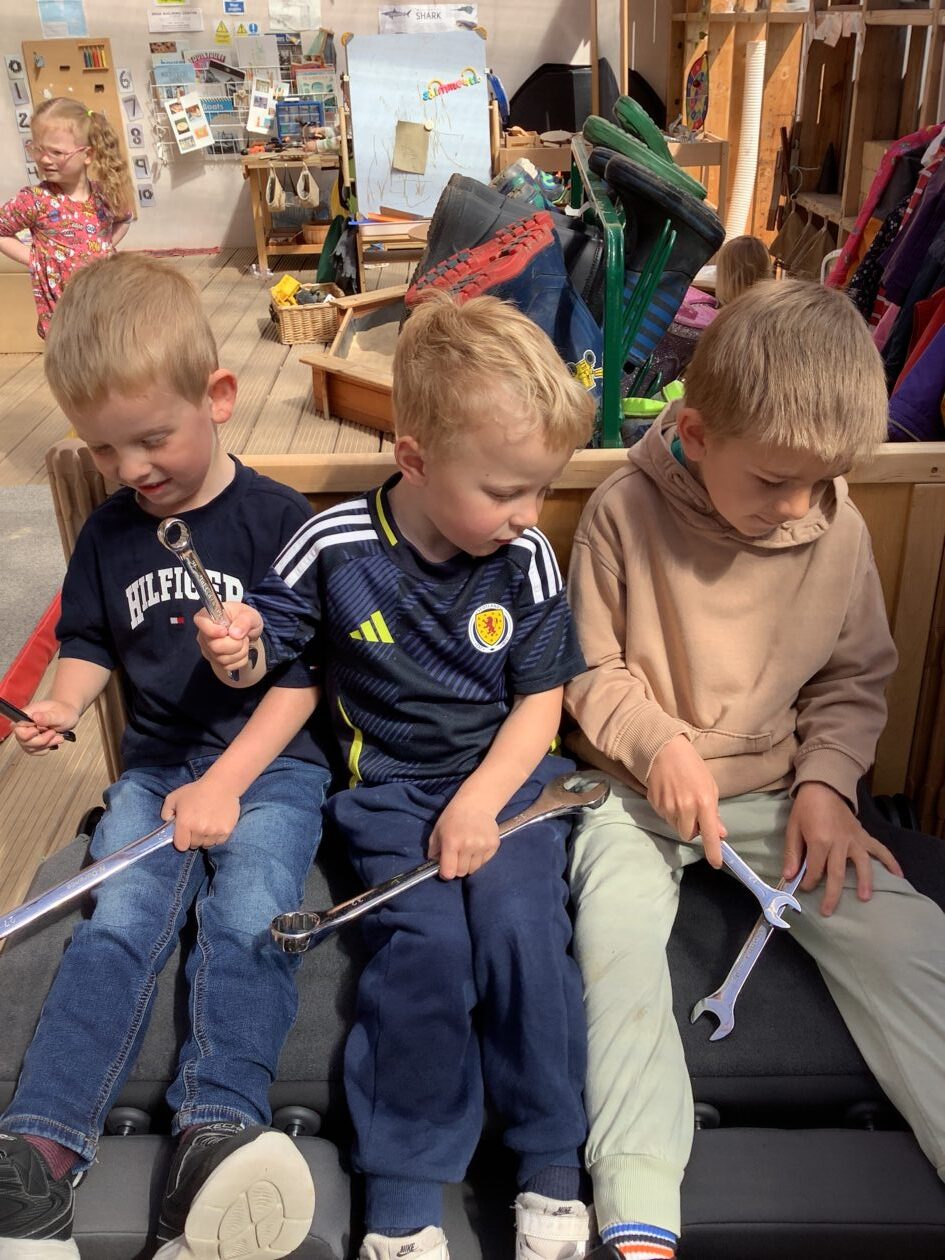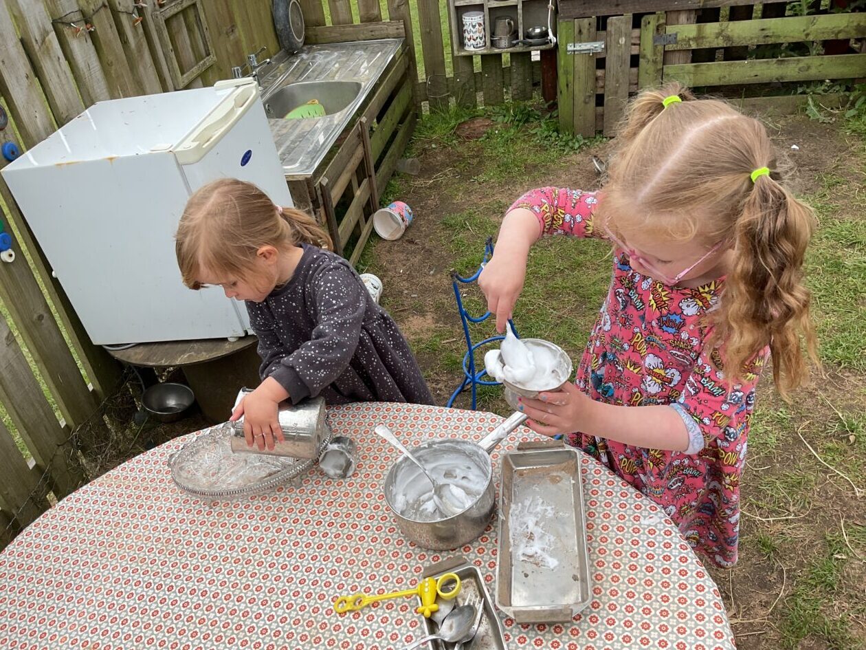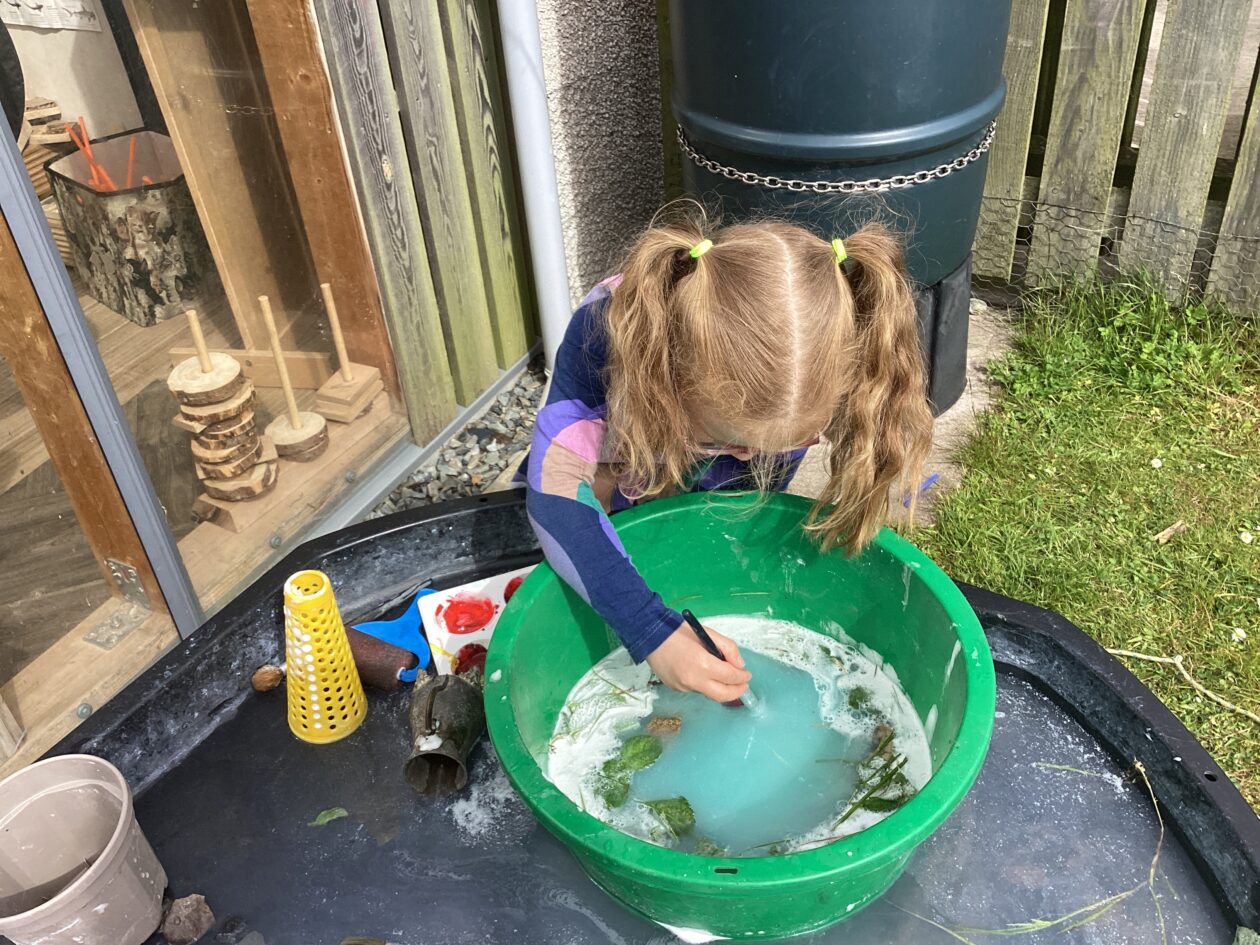 Our outdoor play has focused on water play, bug hunting and singing about the rain. The bairns have been engaged in sensory play with water, paint and shaving foam. Trevor put up our new basketball hoop and we’ve planted neeps.