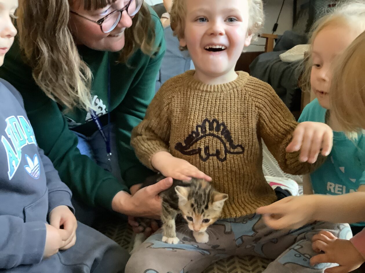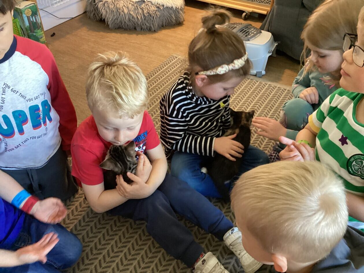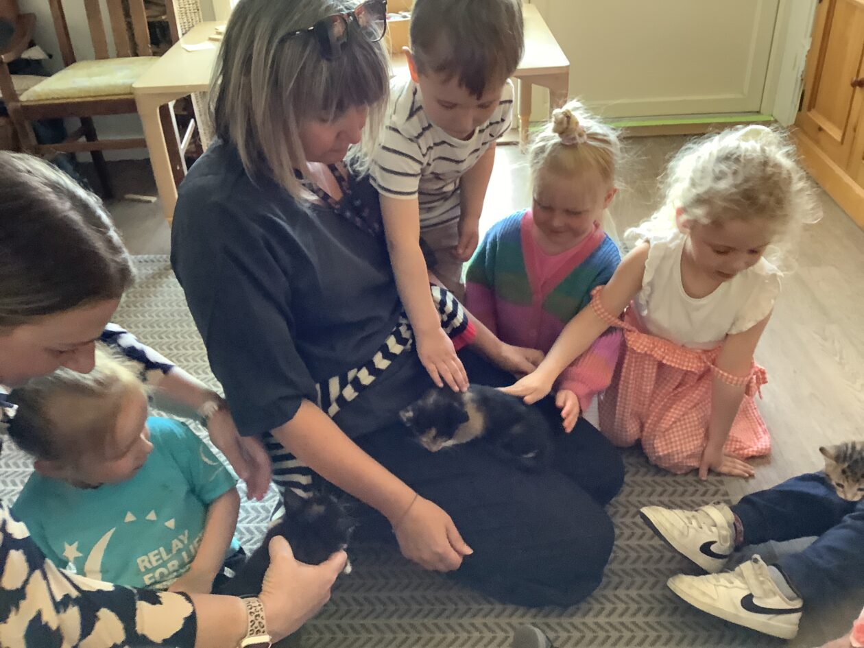 One of our parents brought in their four kettlins for a visit and the bairns were keen to meet these furry friends. The bairns used gentle hands and watched out for claws.