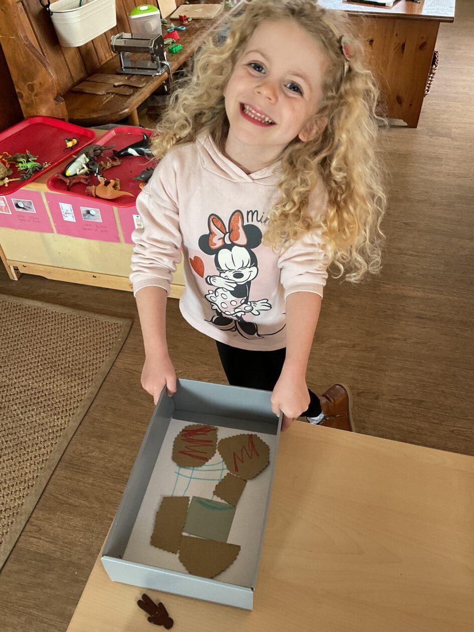 Here is a selection of our play and learning from the reminder of the week.  The bairns have discovered an interest in fossils.  The archeologist used a paintbrush to dust off the fossils in the outdoor room.  We will extend this interest over the next few weeks.