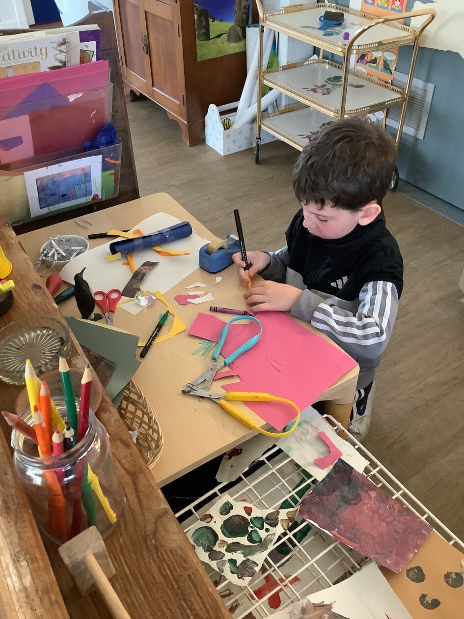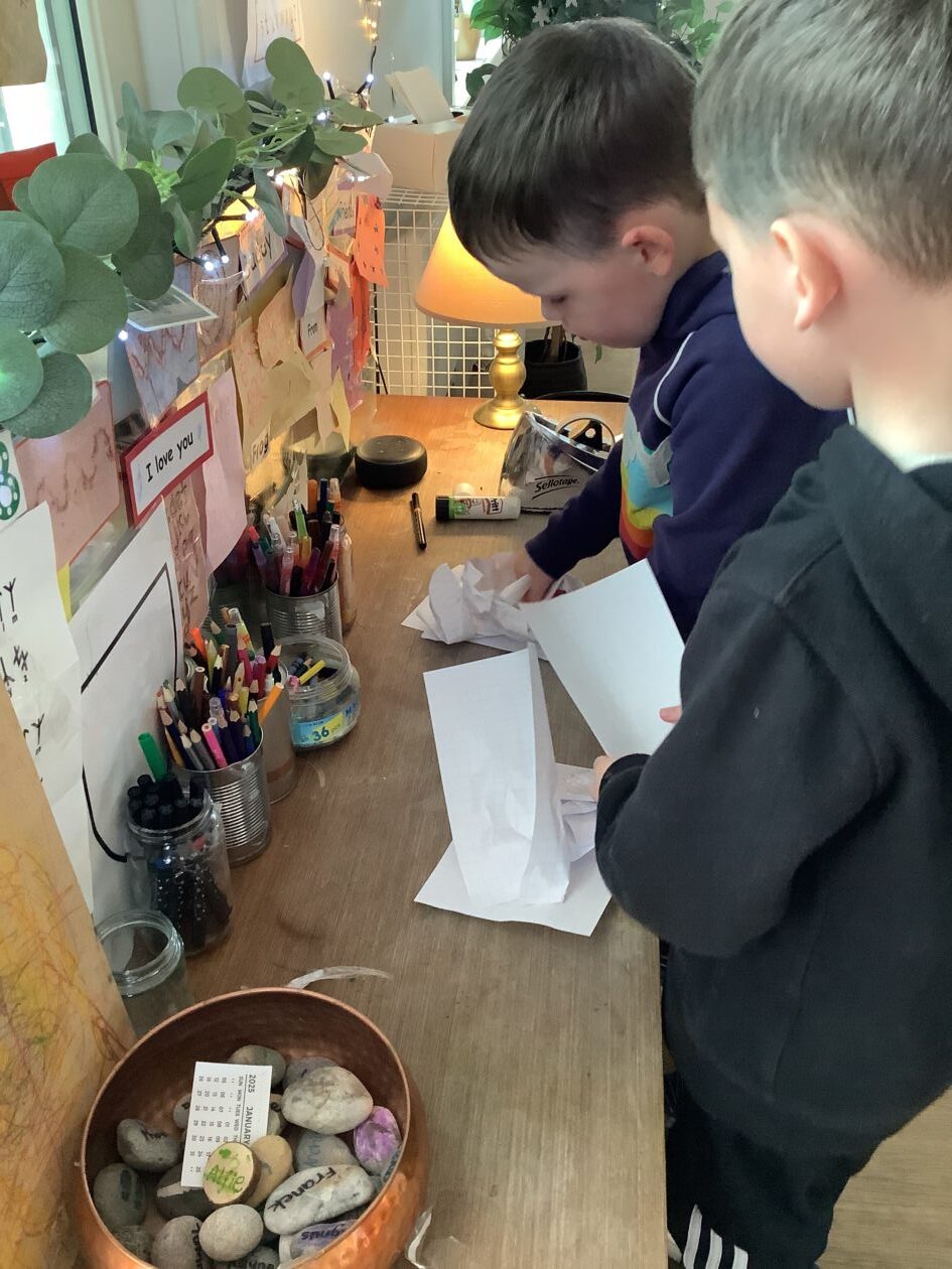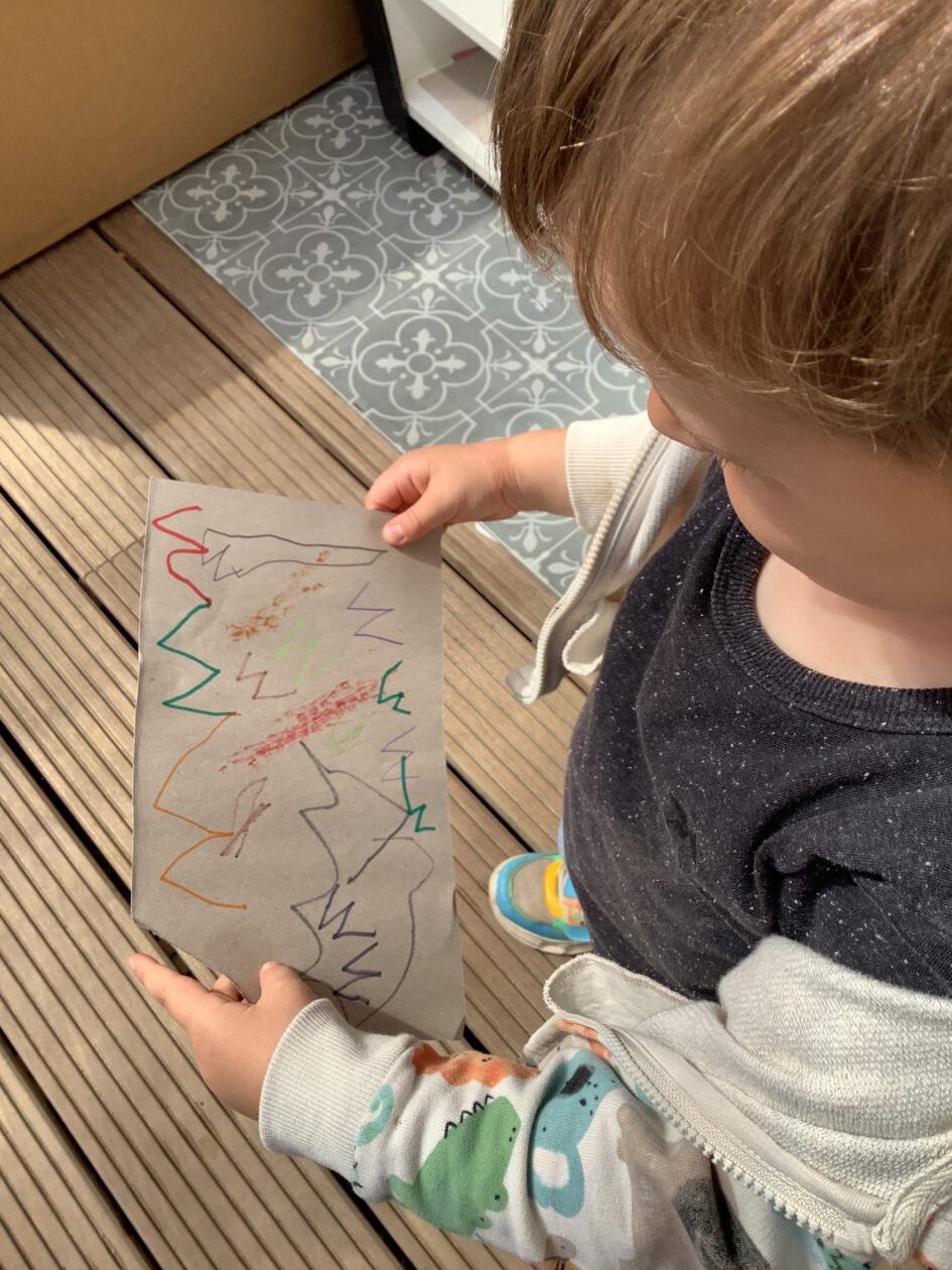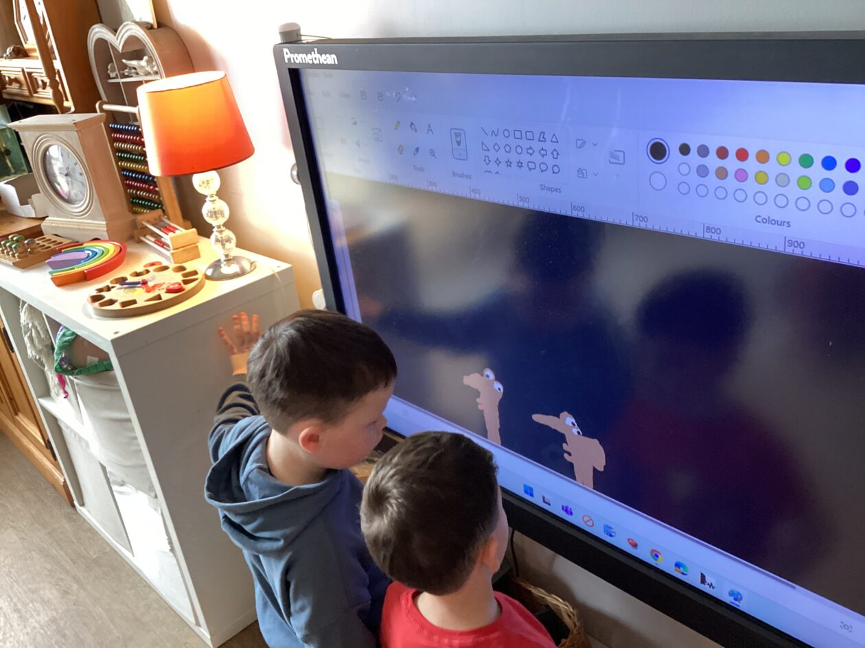 The bairns have been engaged in lots of different creative play this week including drawing, painting, junk modelling, music, paper folding, loose parts structures, playdough models and chalk drawing.  The bairns have also used technology to create pictures on the smart board and a light box drawing tablet.