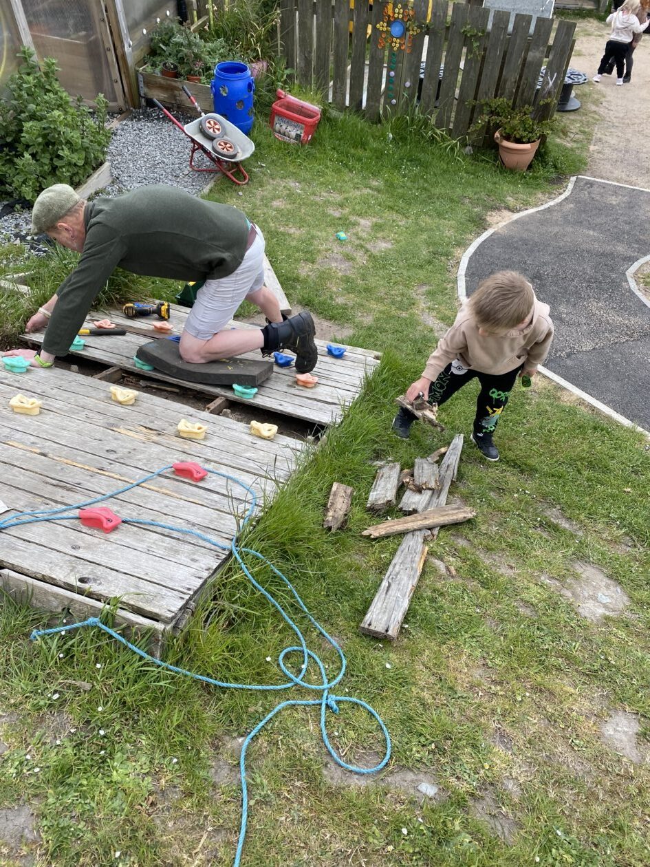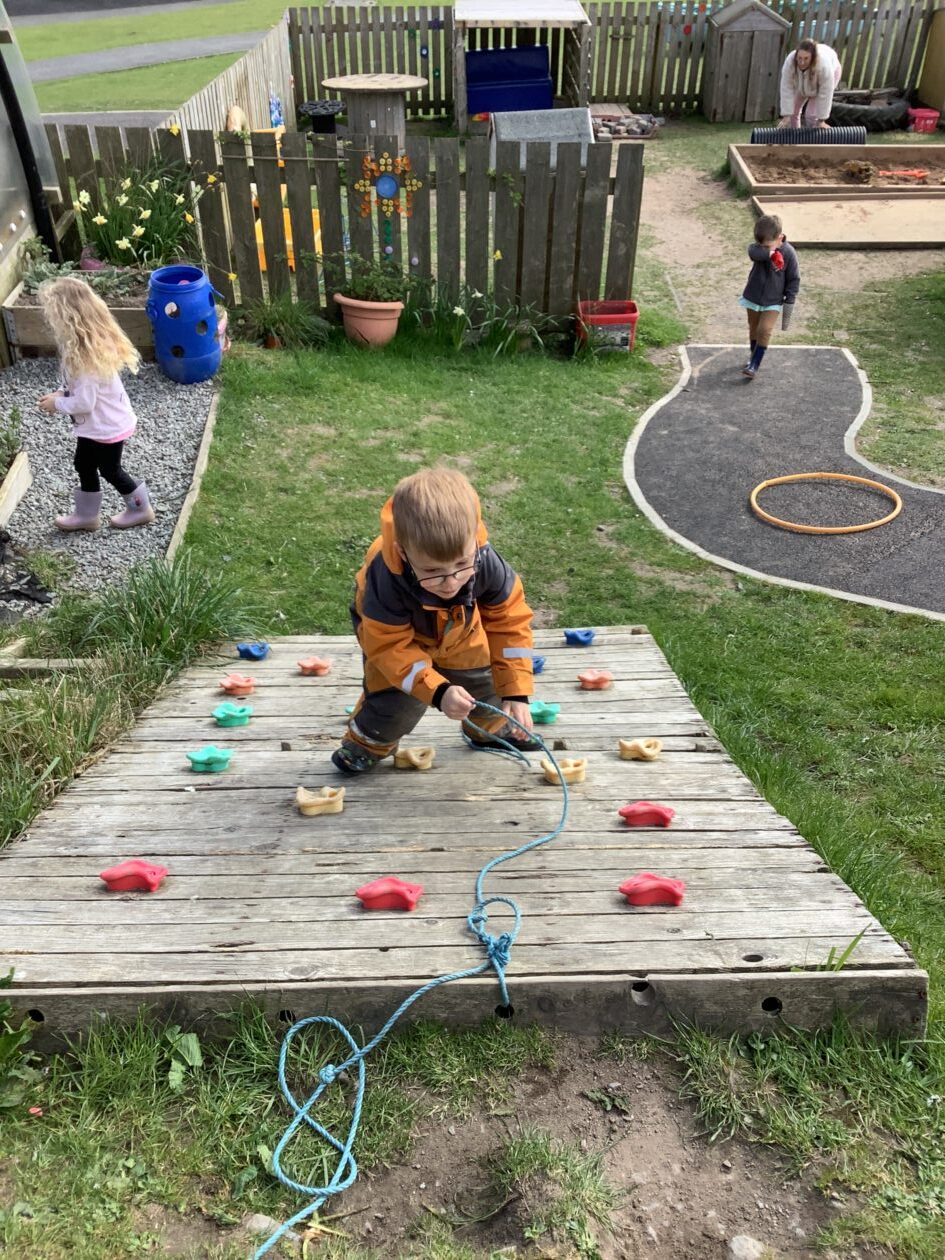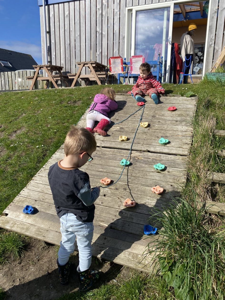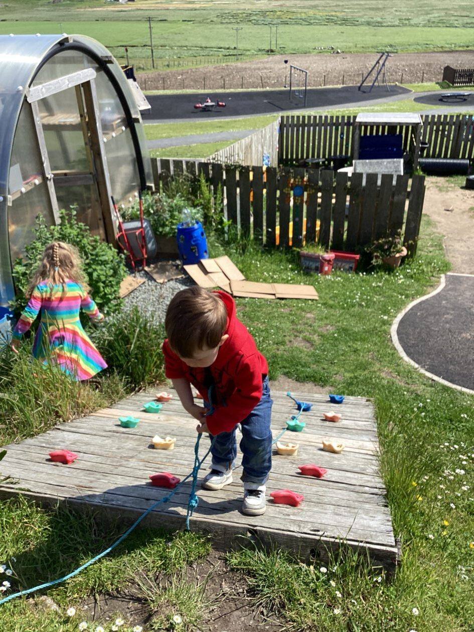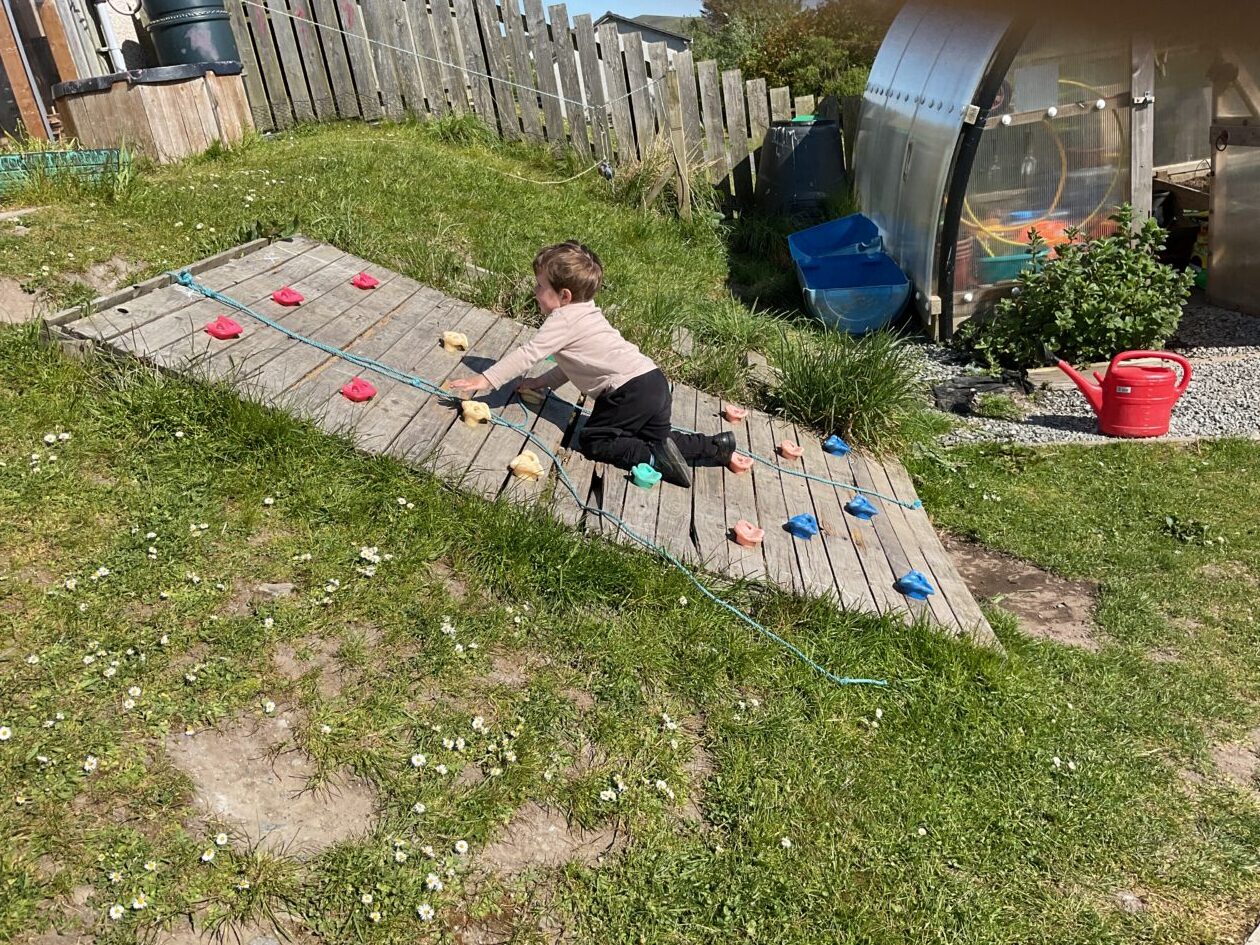 During our outdoor play this week we have made a bug hotel, picked strawberries from the polycrub and played hide and seek.  The bairns have also made a sign to close the climbing wall until Trevor could fix it by replacing a rotten slat.