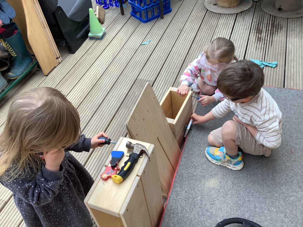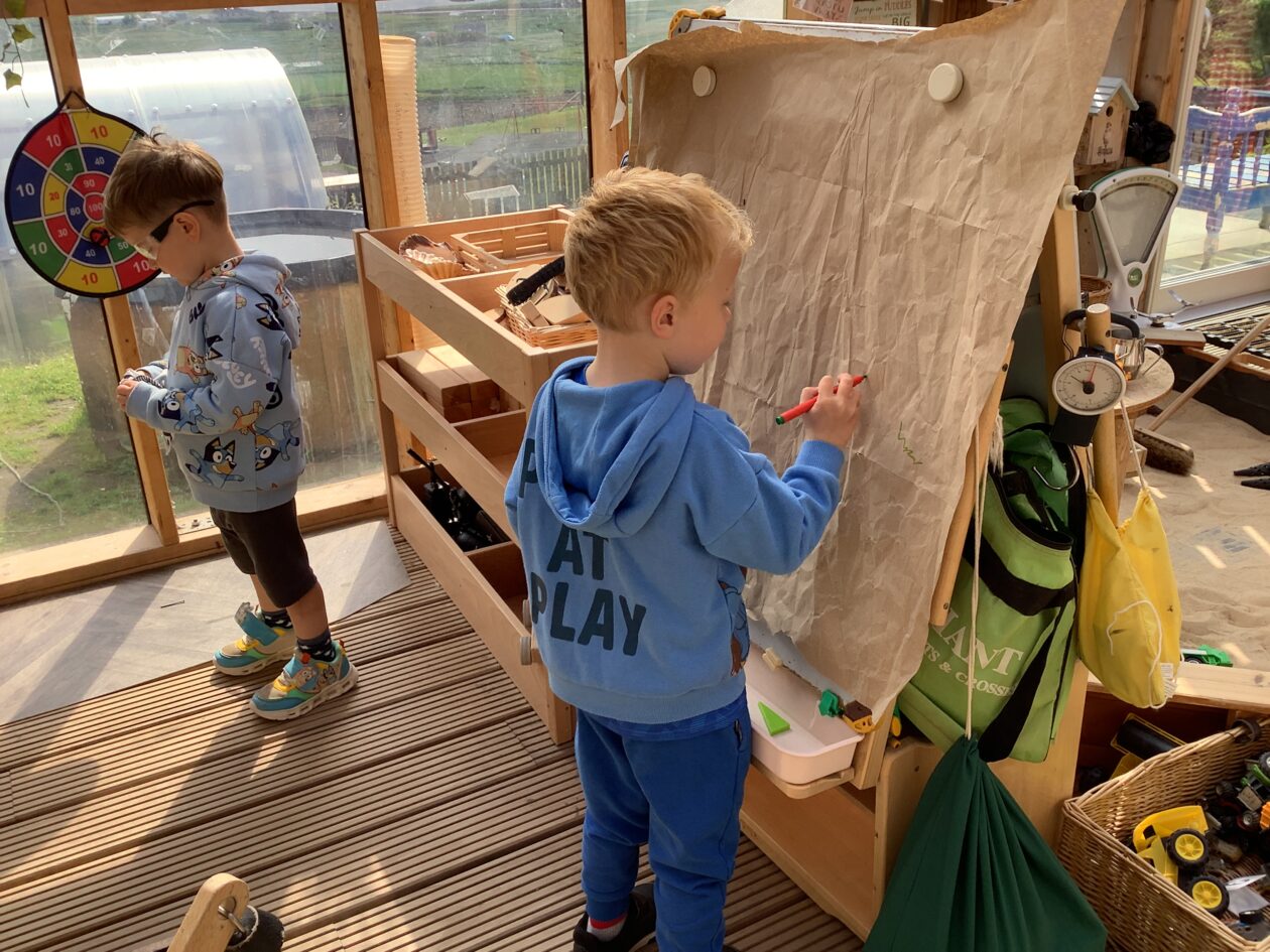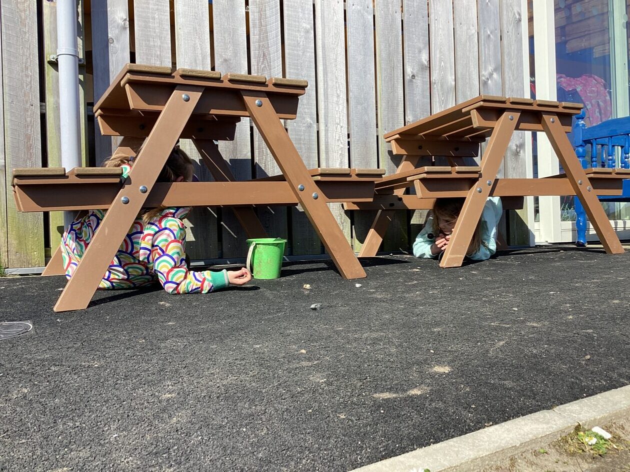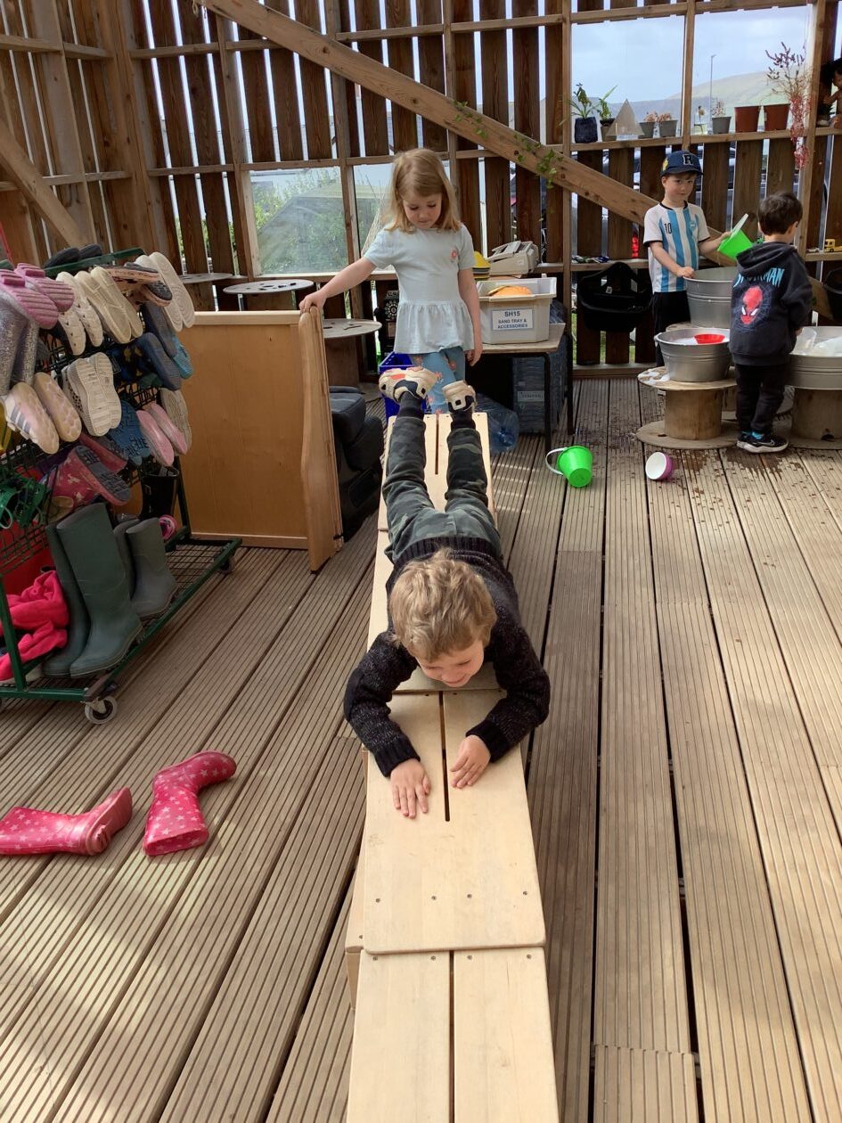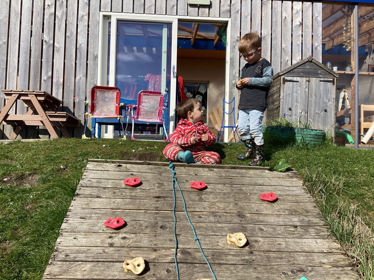 During our outdoor play this week we have made a bug hotel, picked strawberries from the polycrub and played hide and seek.  The bairns have also made a sign to close the climbing wall until Trevor could fix it by replacing a rotten slat.